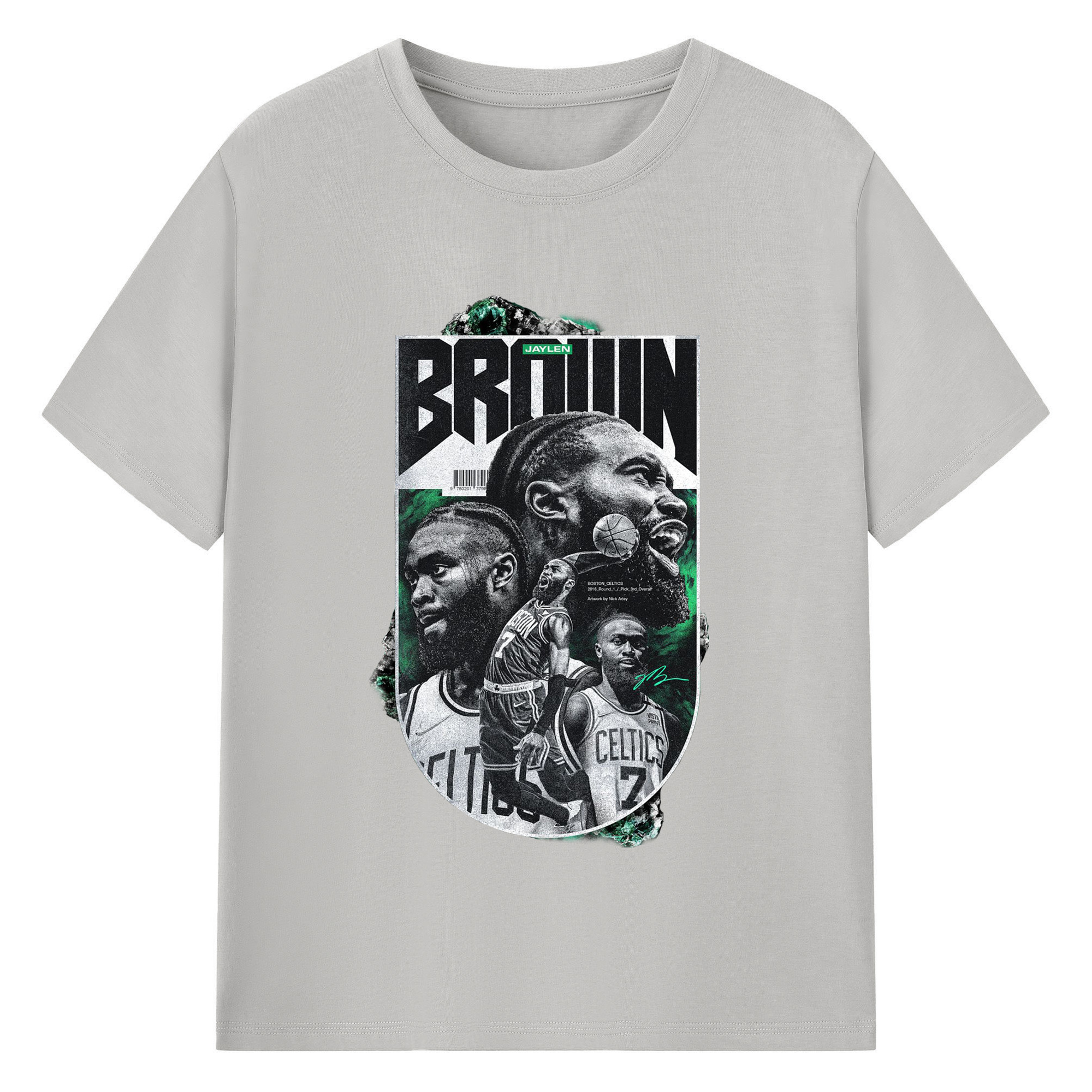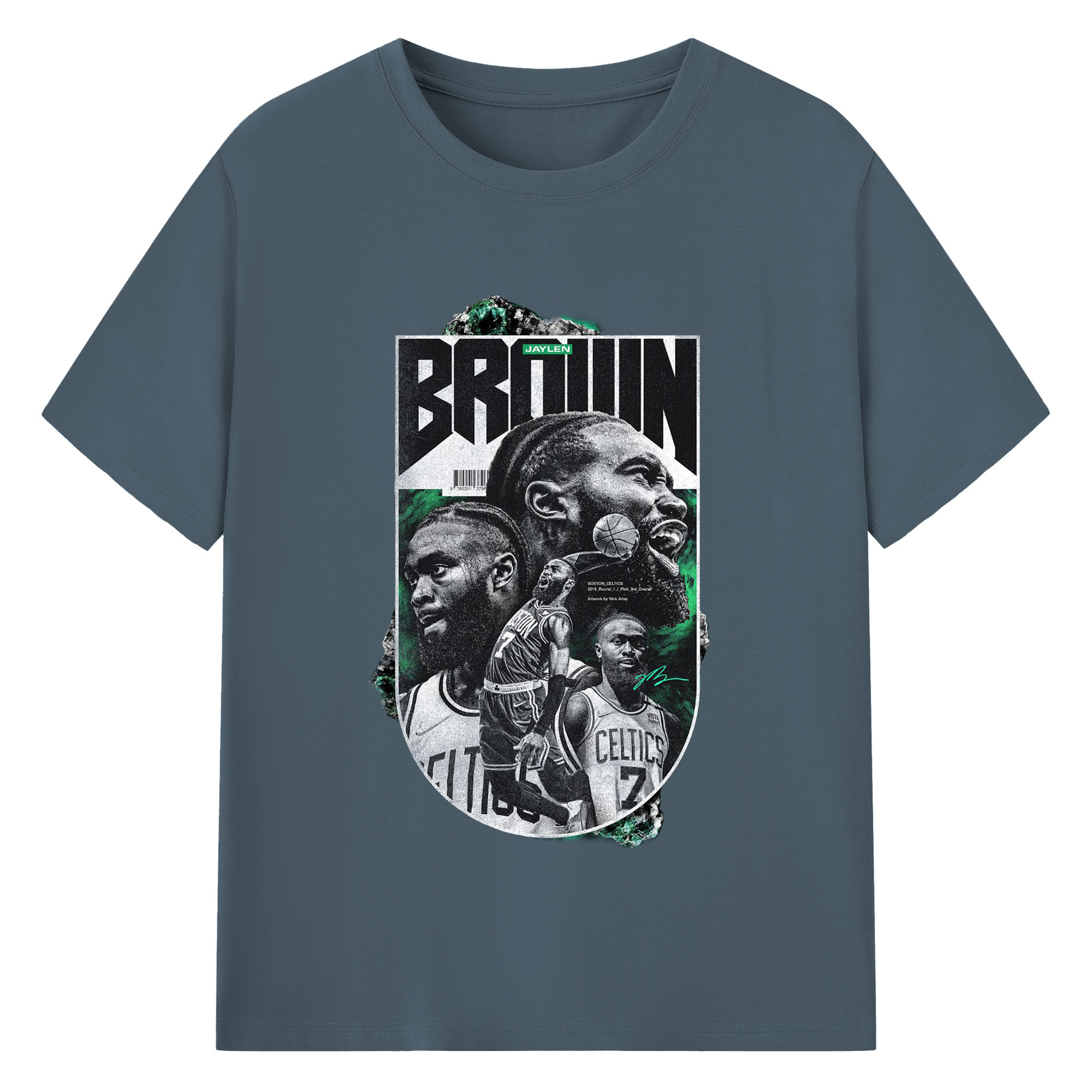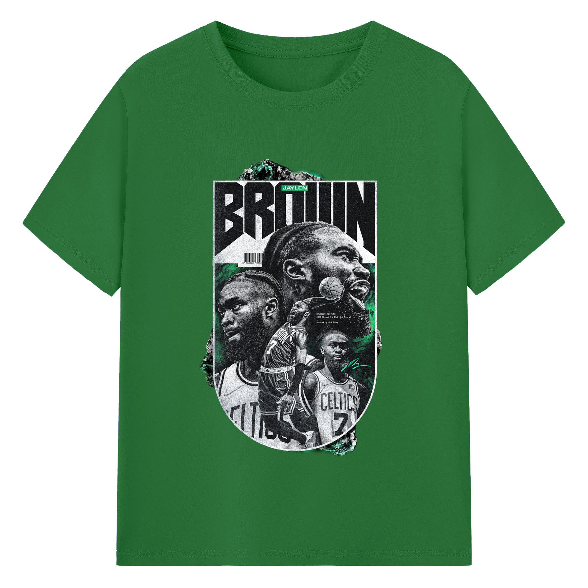 Jaylen Brown Celtics #7 Vintage Black & Green NBA Finals Graphic Shirt - 180g Cotton T-Shirt With Front Heat Transfer Print – Soft, Lightweight, Fitted Design – Comfortable Casual Wear For Sports & Everyday Use