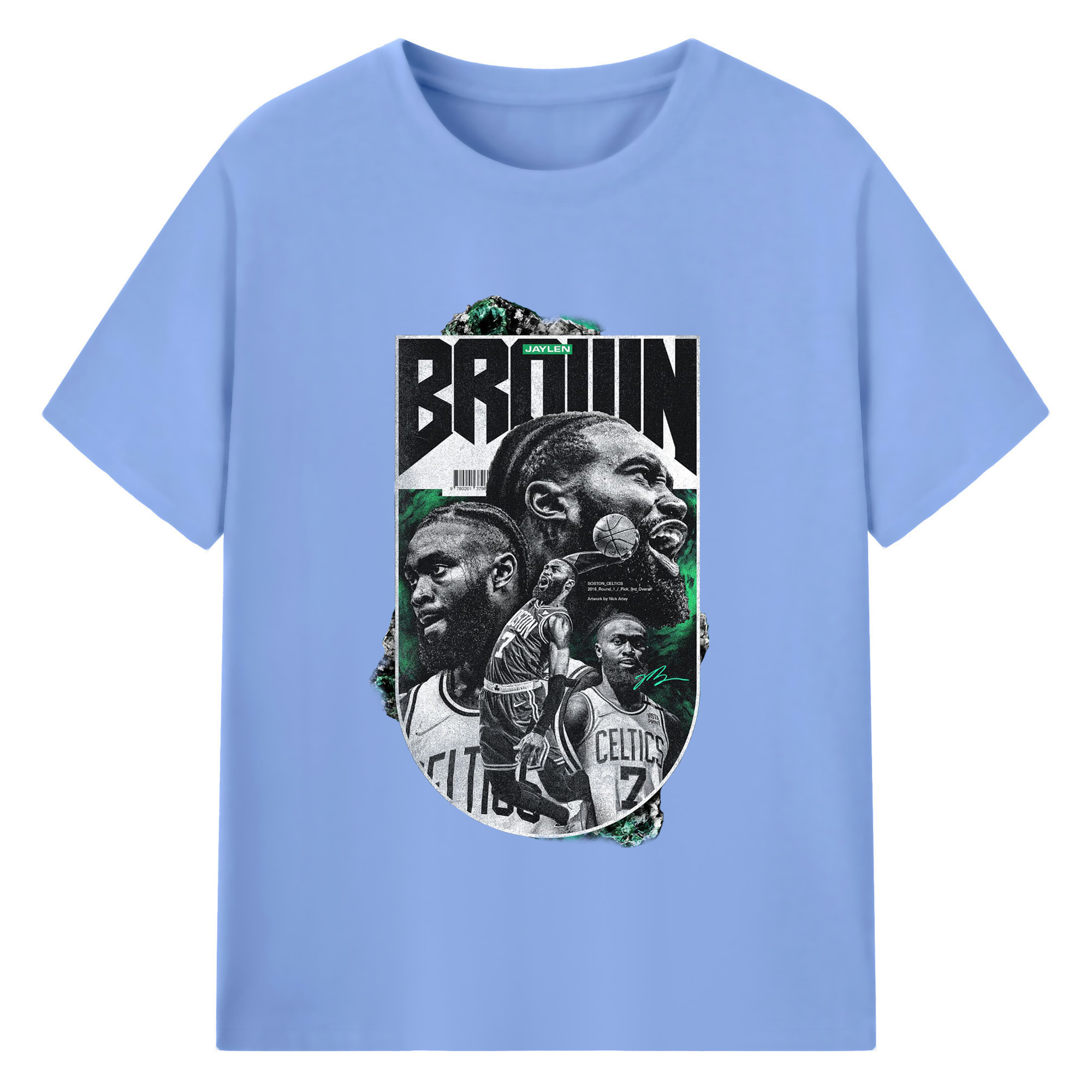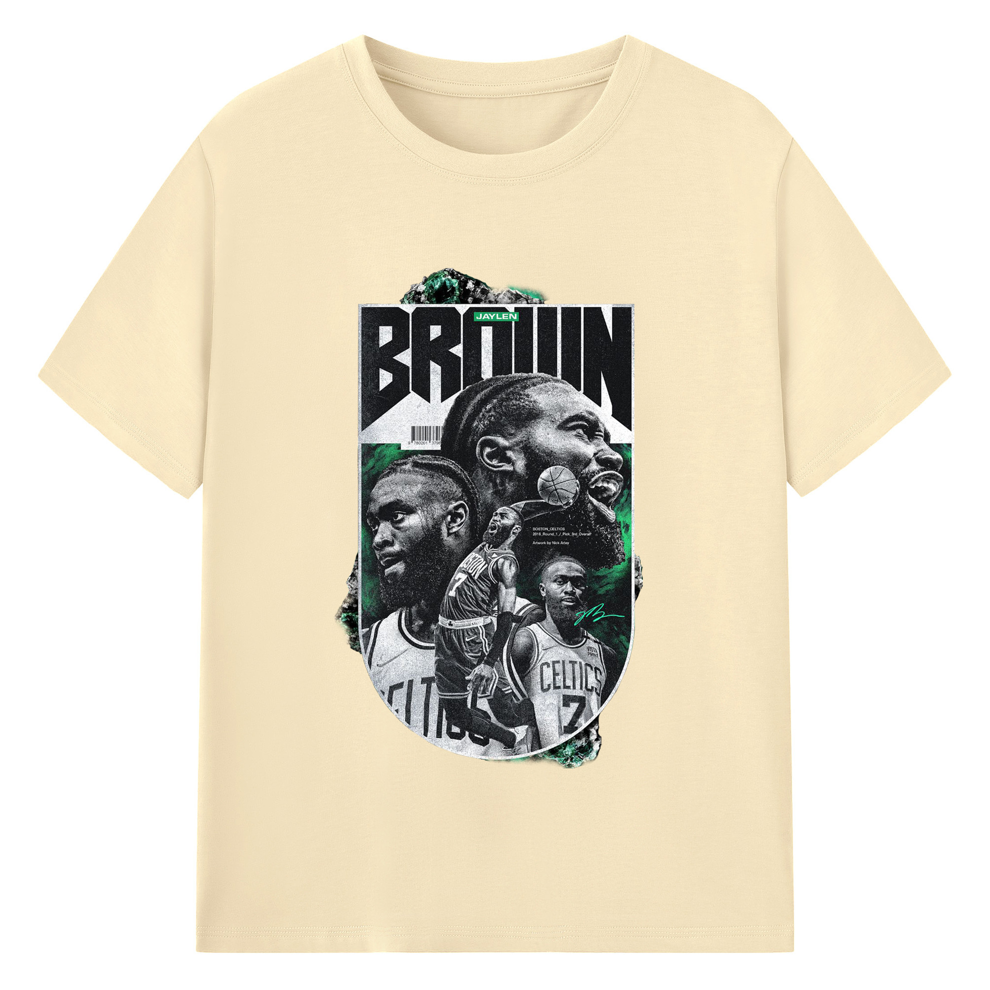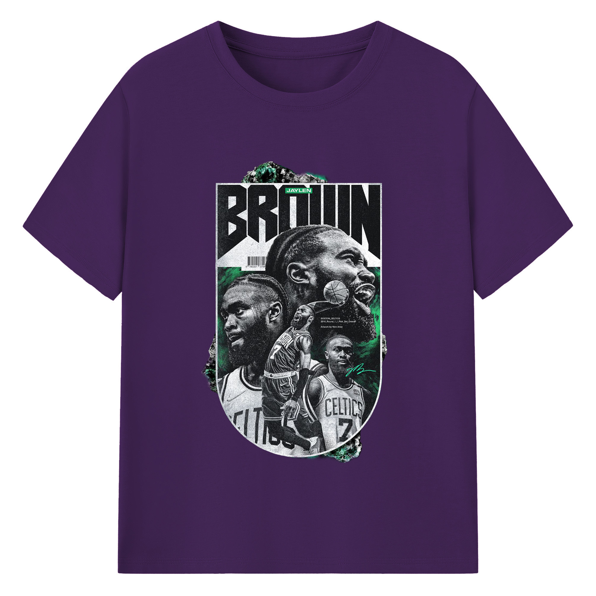 Jaylen Brown Celtics #7 Vintage Black & Green NBA Finals Graphic Shirt - 180g Cotton T-Shirt With Front Heat Transfer Print – Soft, Lightweight, Fitted Design – Comfortable Casual Wear For Sports & Everyday Use