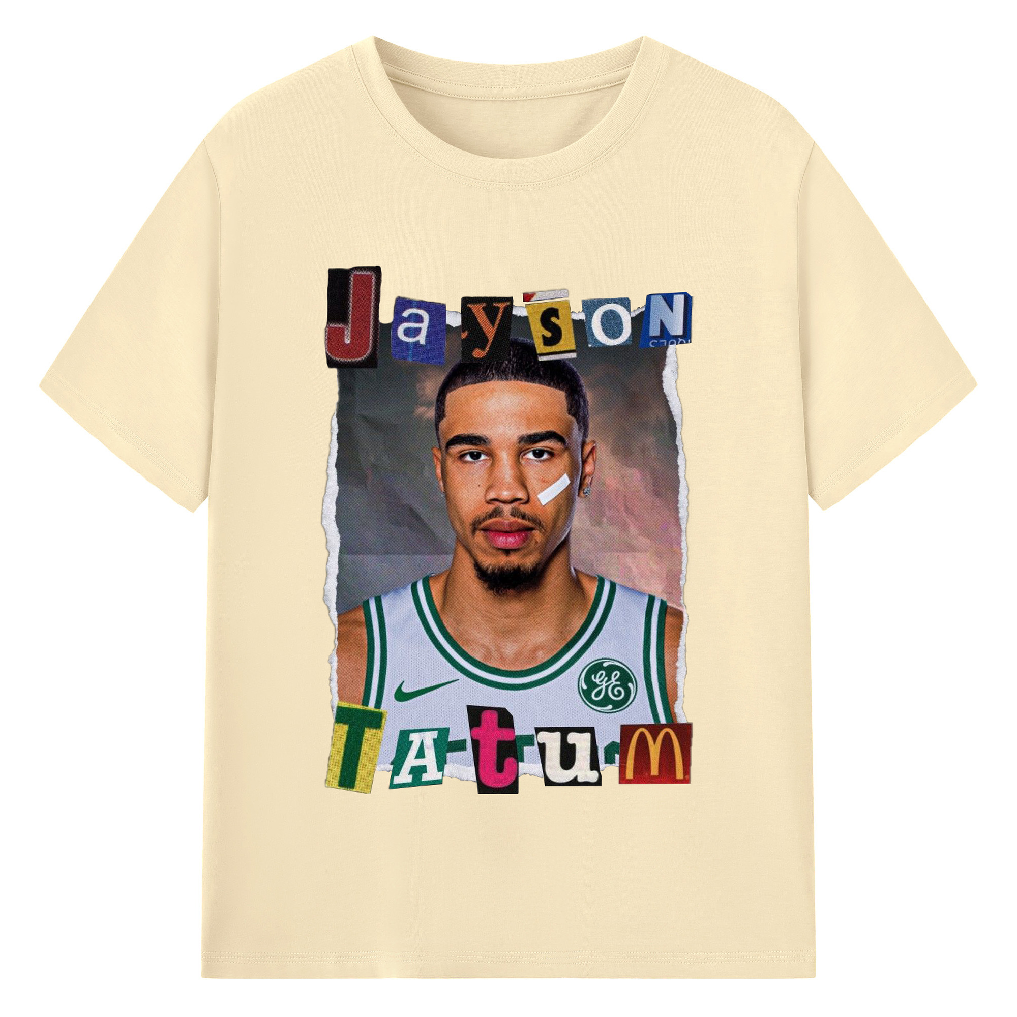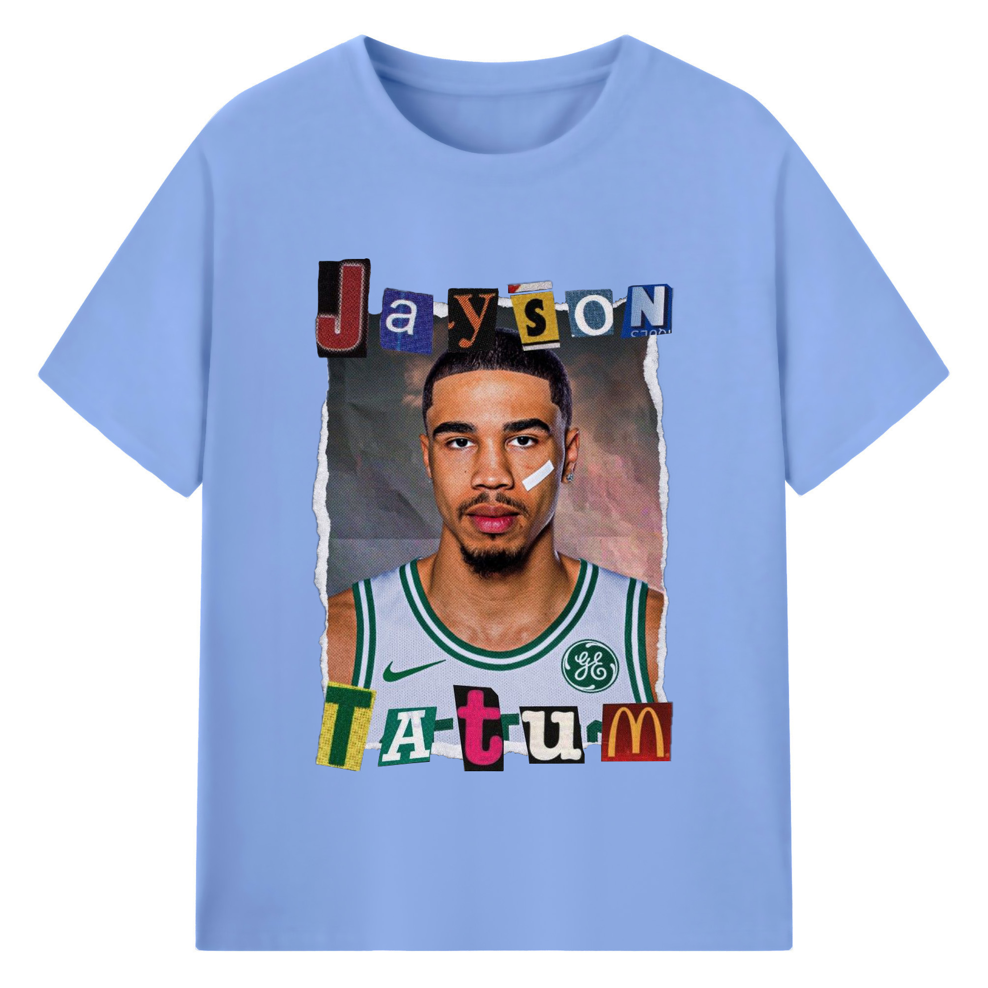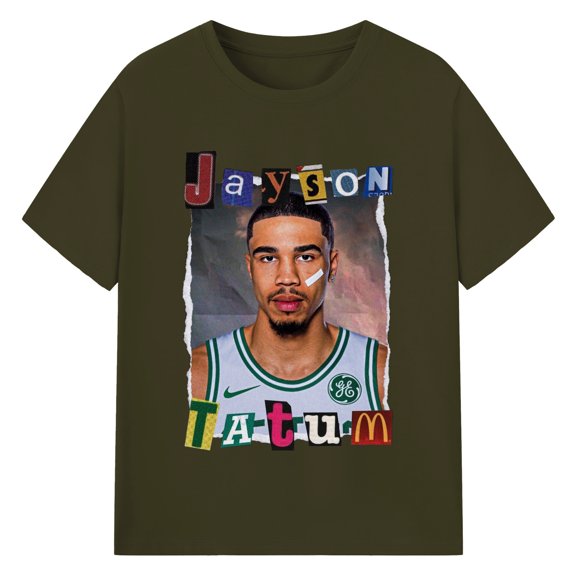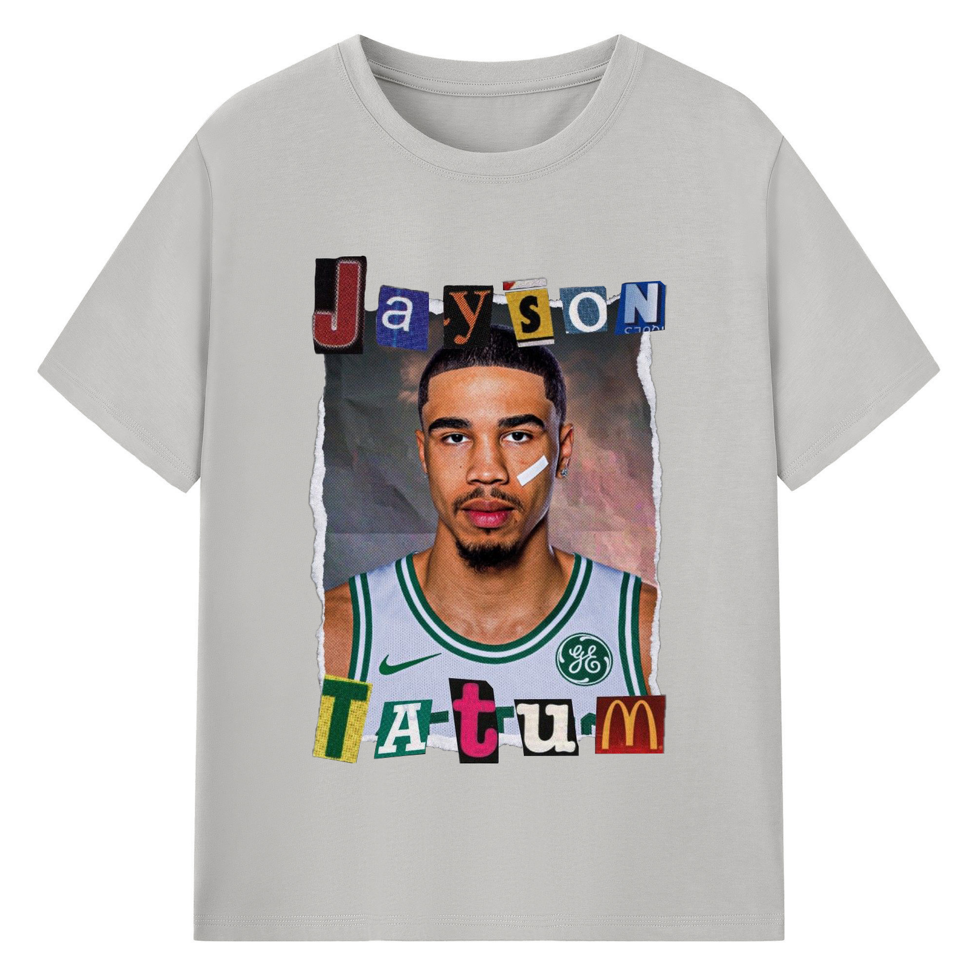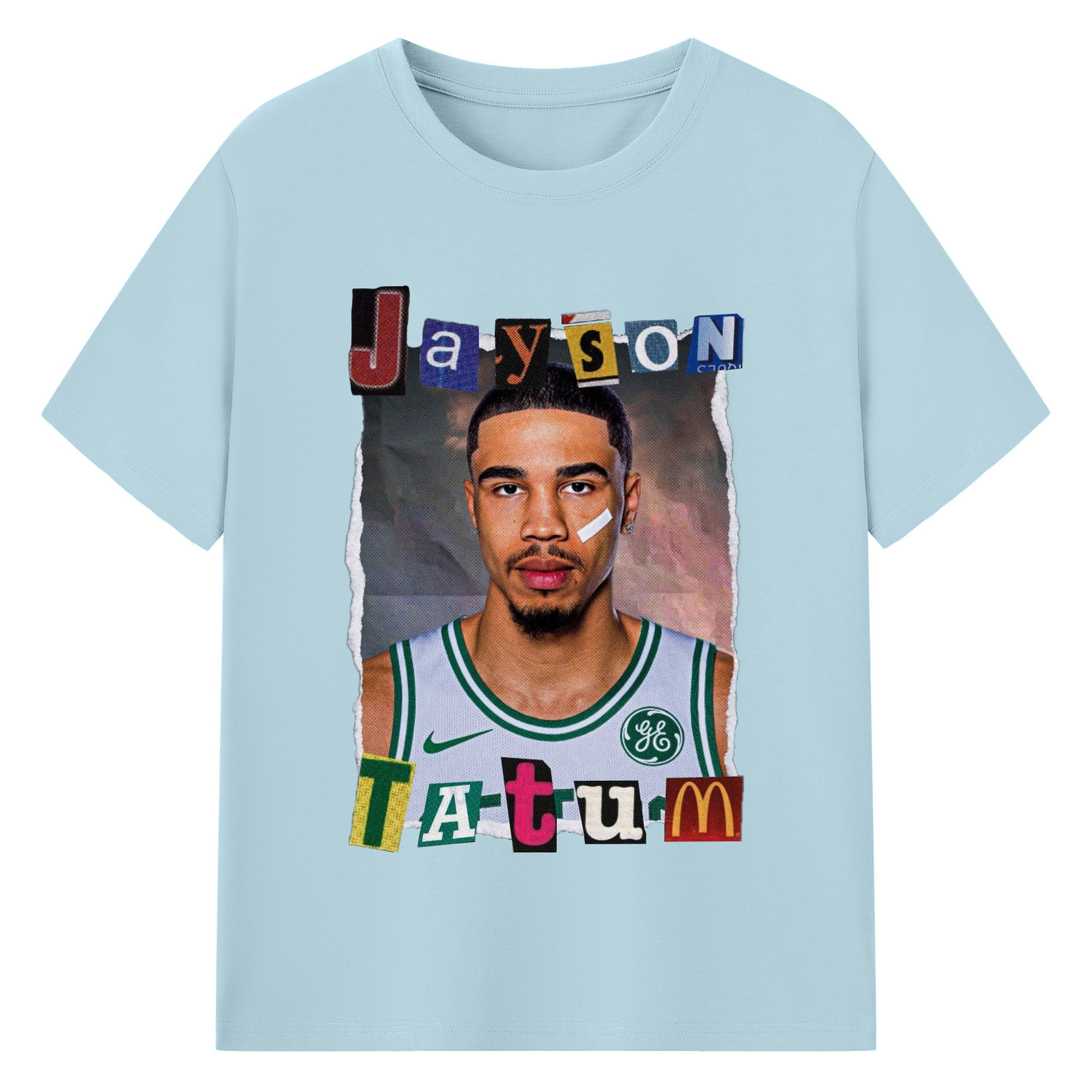 Jayson Tatum Boston Celtics Creative collage design Shirt - 180g Cotton T-Shirt With Front Heat Transfer Print – Soft, Lightweight, Fitted Design – Comfortable Casual Wear For Sports & Everyday Use