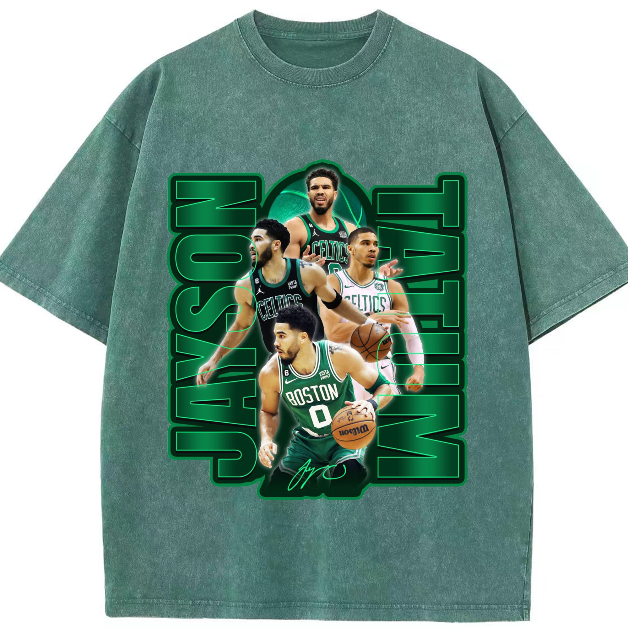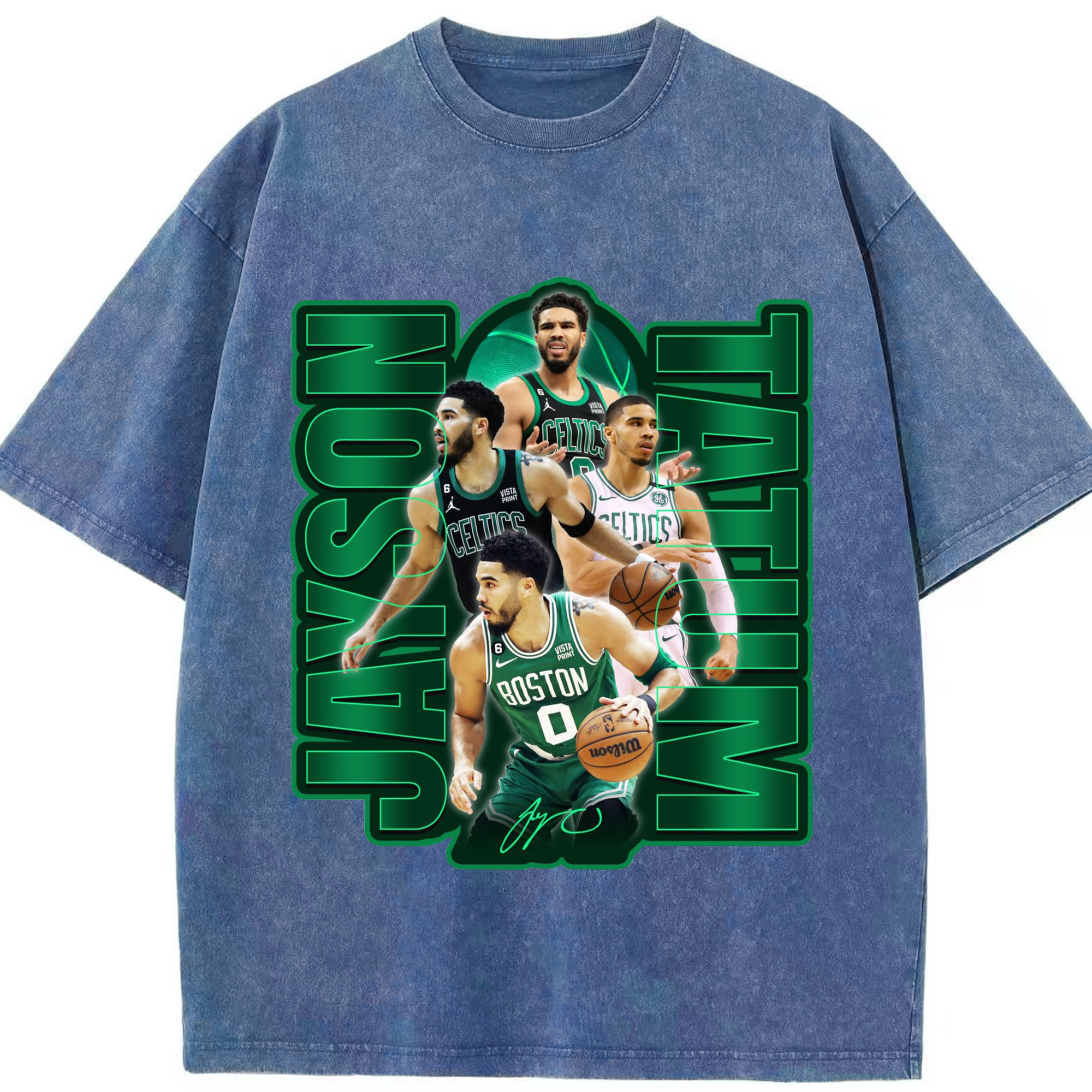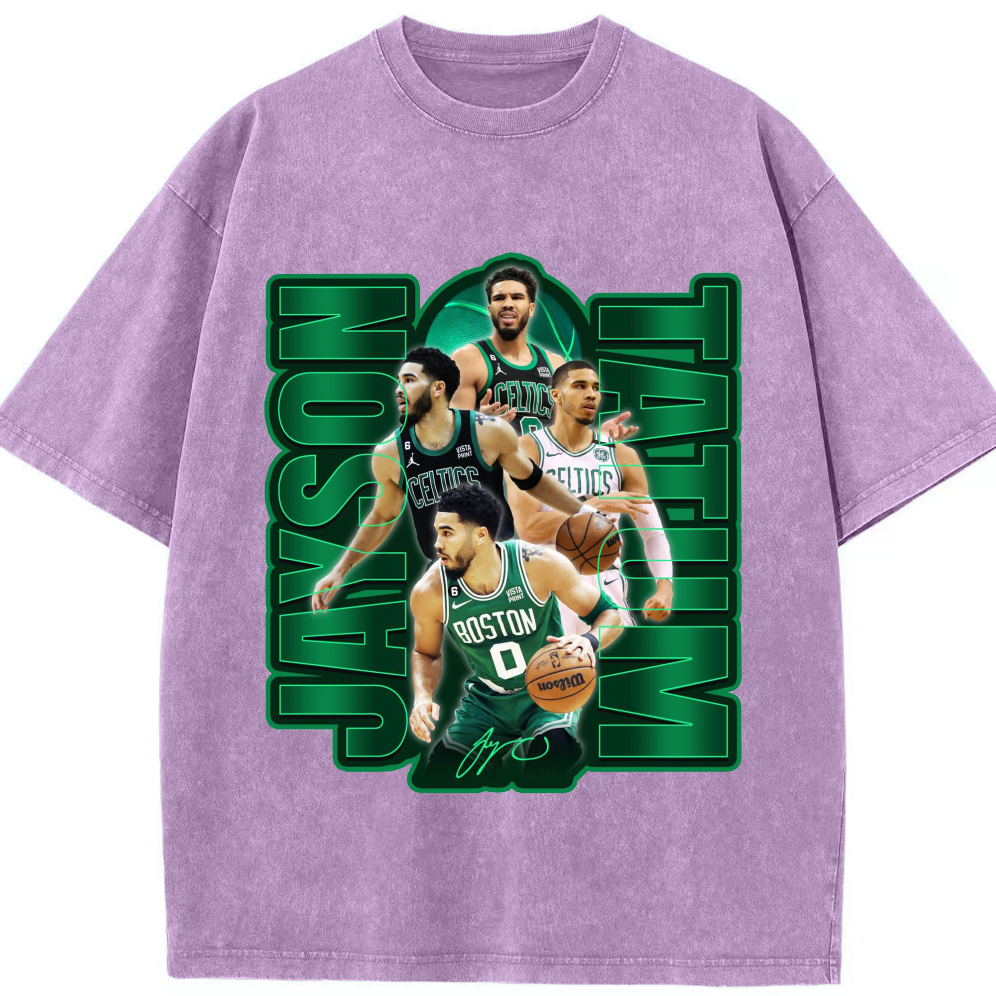 Jayson TatumJersey Graphic Shirt with Neon Signature Design - Washed Vintage Look 230g Cotton Oversized T-Shirt With Front Heat Transfer Print – Soft, Lightweight, Stylish Fit – Comfortable Casual Wear For Sports & Everyday Use