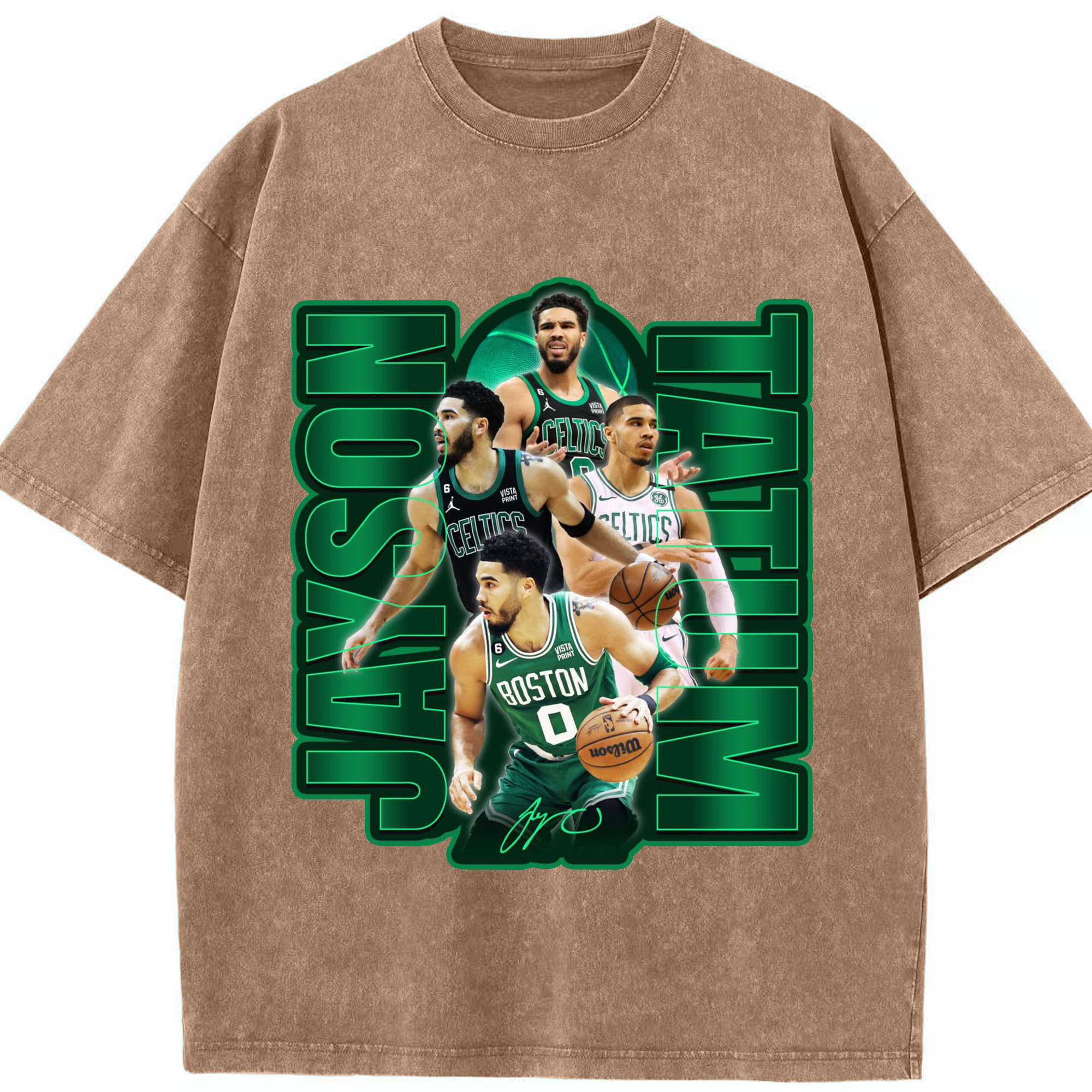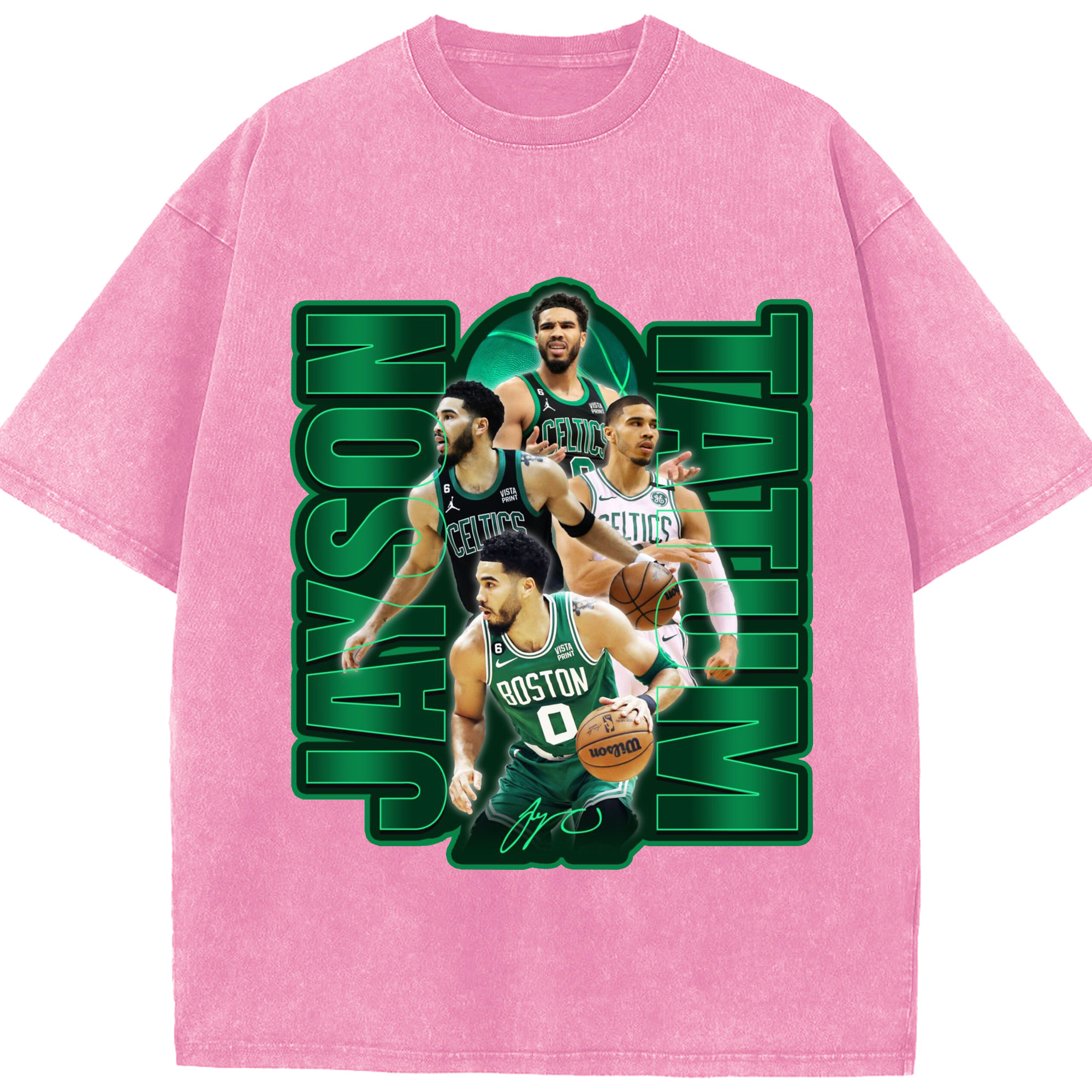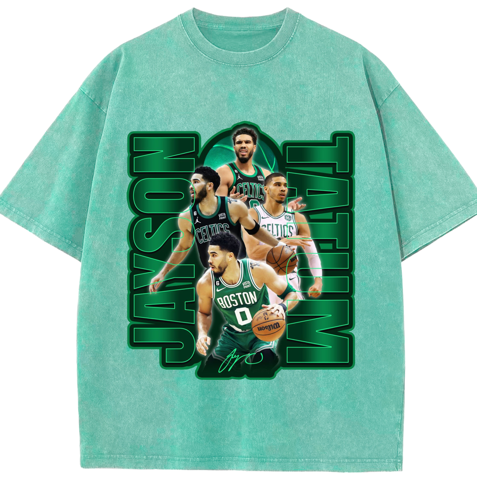 Jayson TatumJersey Graphic Shirt with Neon Signature Design - Washed Vintage Look 230g Cotton Oversized T-Shirt With Front Heat Transfer Print – Soft, Lightweight, Stylish Fit – Comfortable Casual Wear For Sports & Everyday Use
