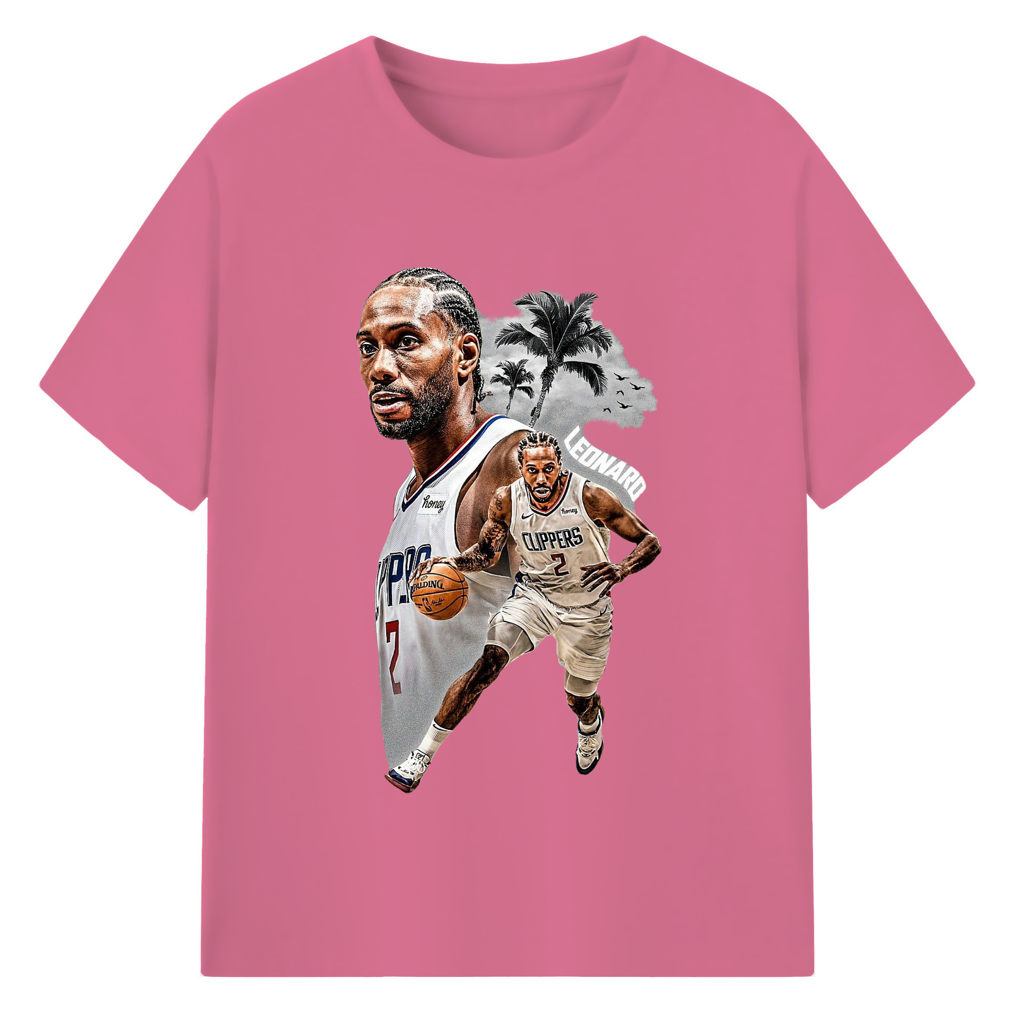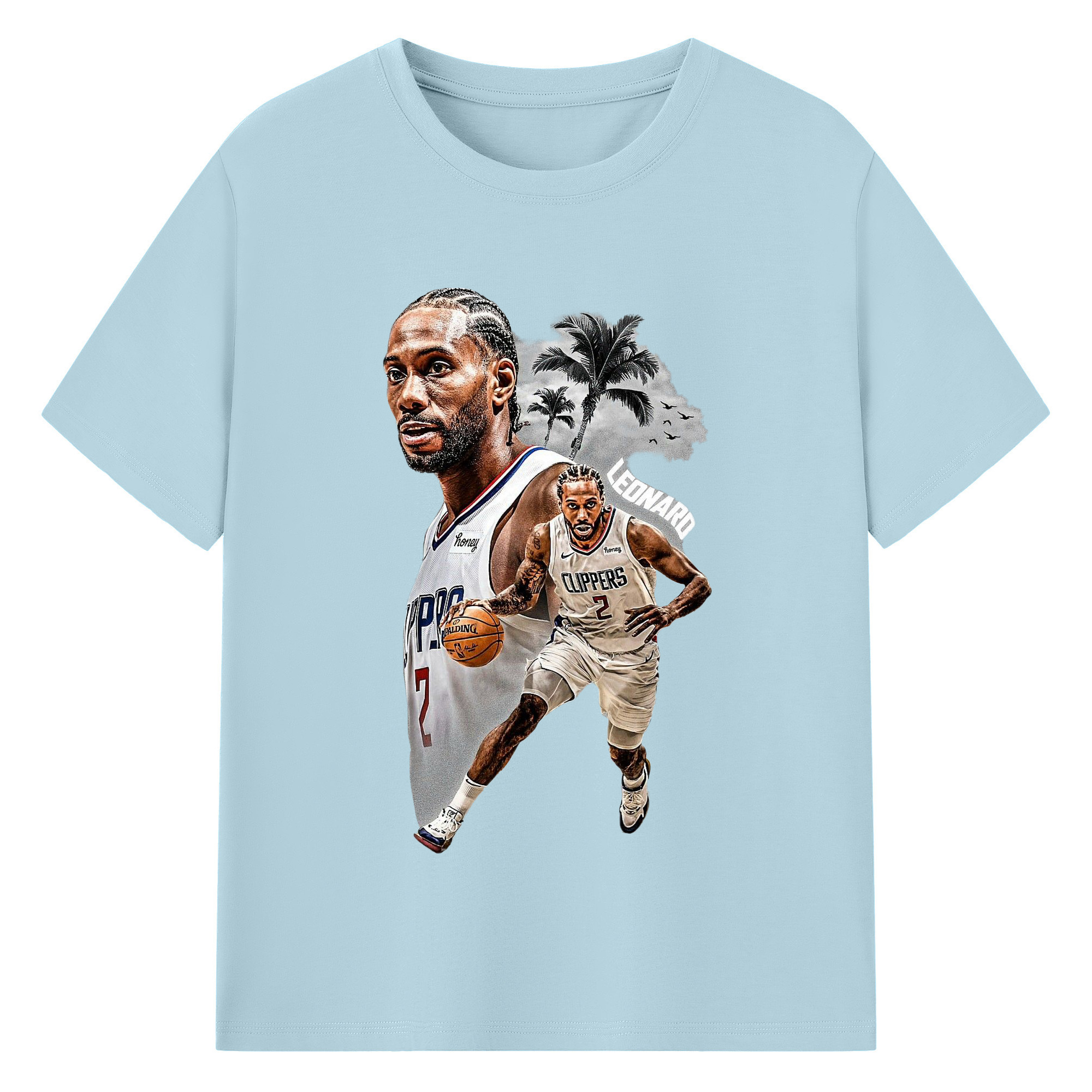 Kawhi Leonard LA Clippers On - Court Palm Tree Style Shirt - 180g Cotton T-Shirt With Front Heat Transfer Print – Soft, Lightweight, Fitted Design – Comfortable Casual Wear For Sports & Everyday Use