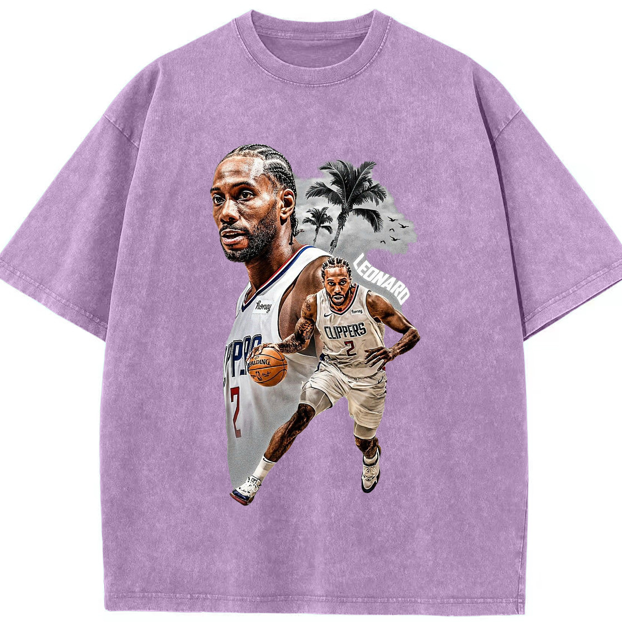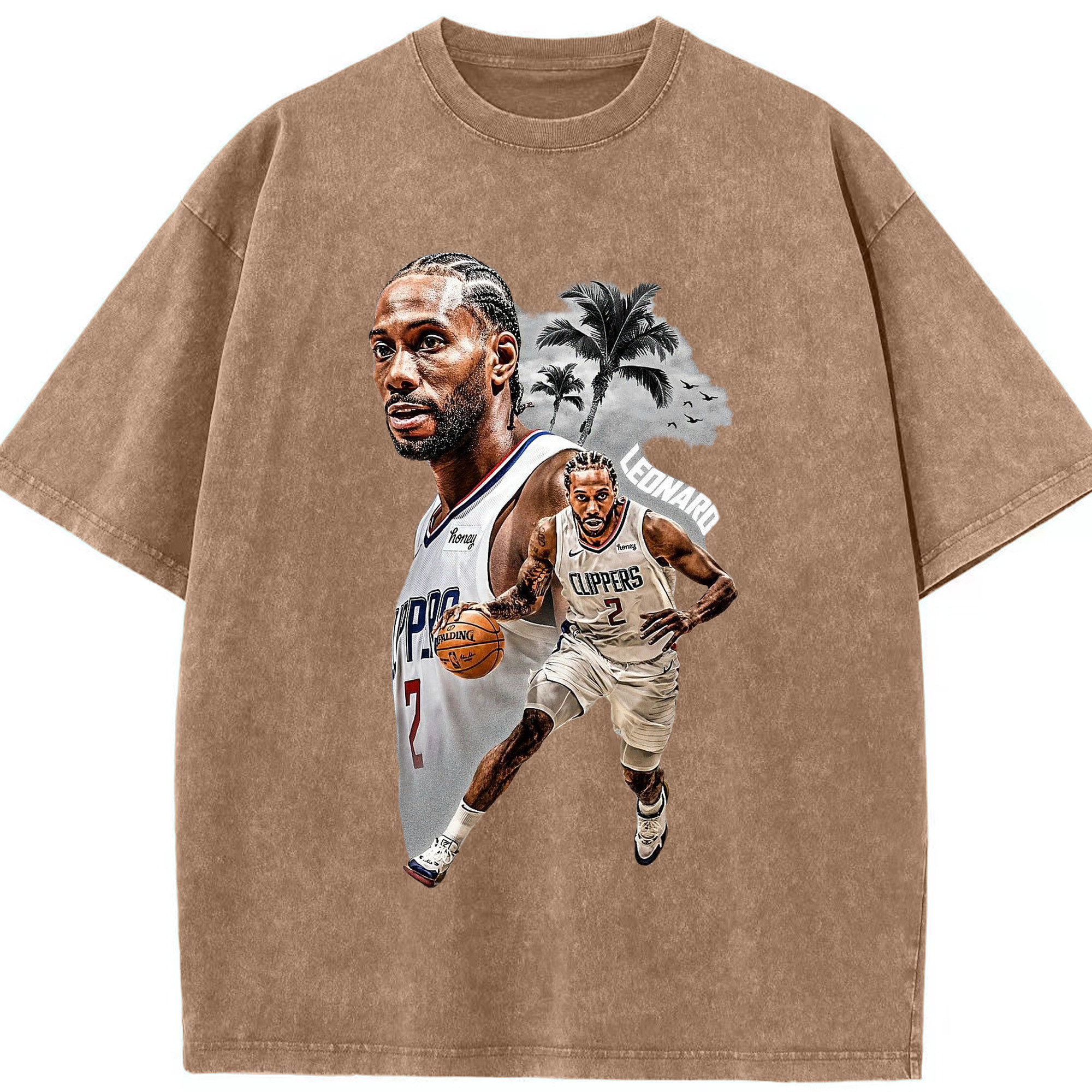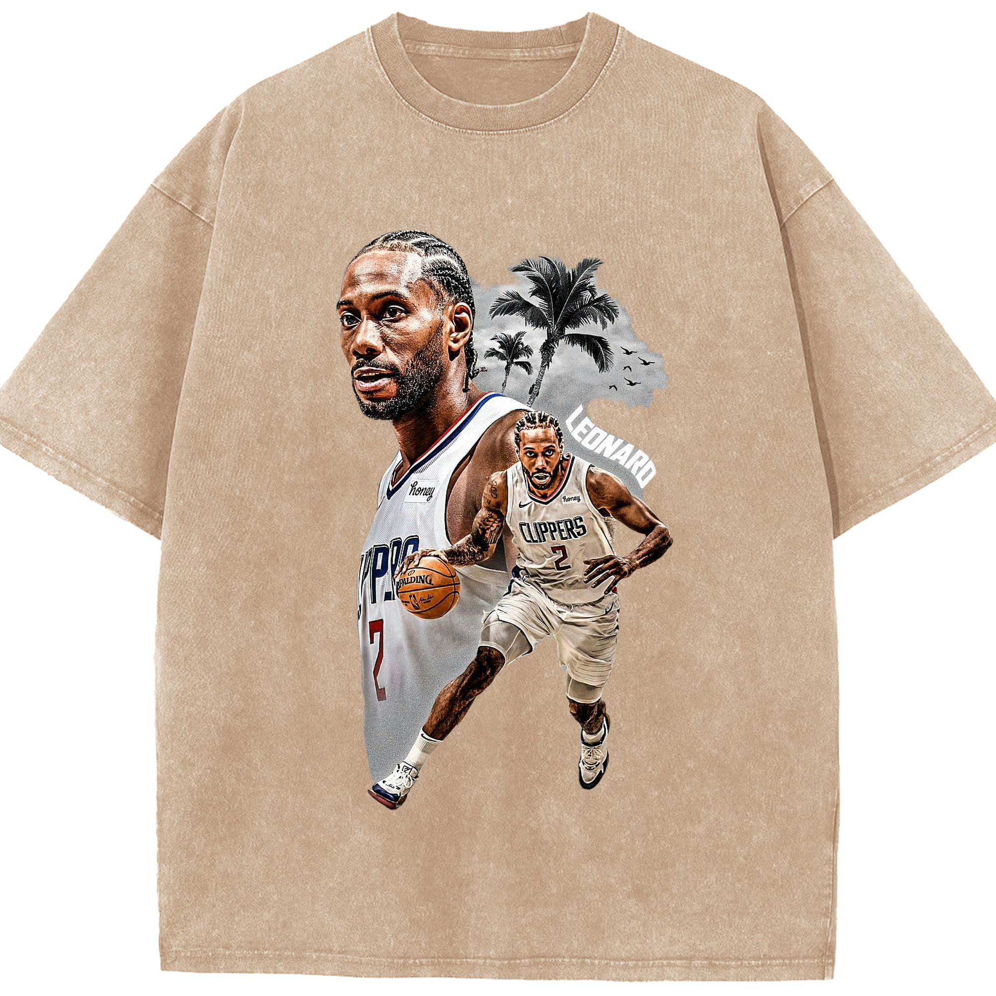 Kawhi Leonard LA Clippers On - Court Palm Tree Style Shirt - Washed Vintage Look 230g Cotton Oversized T-Shirt With Front Heat Transfer Print – Soft, Lightweight, Stylish Fit – Comfortable Casual Wear For Sports & Everyday Use