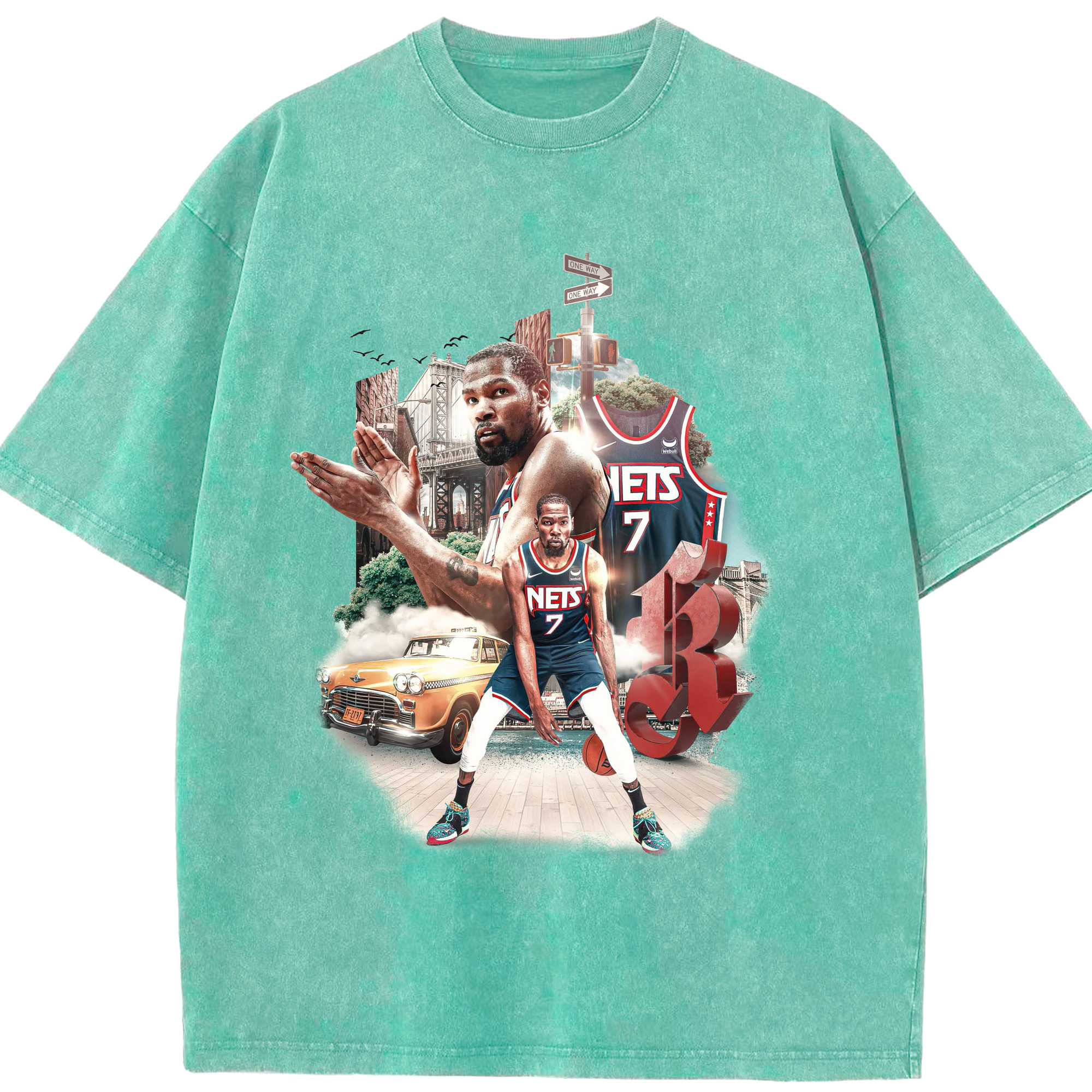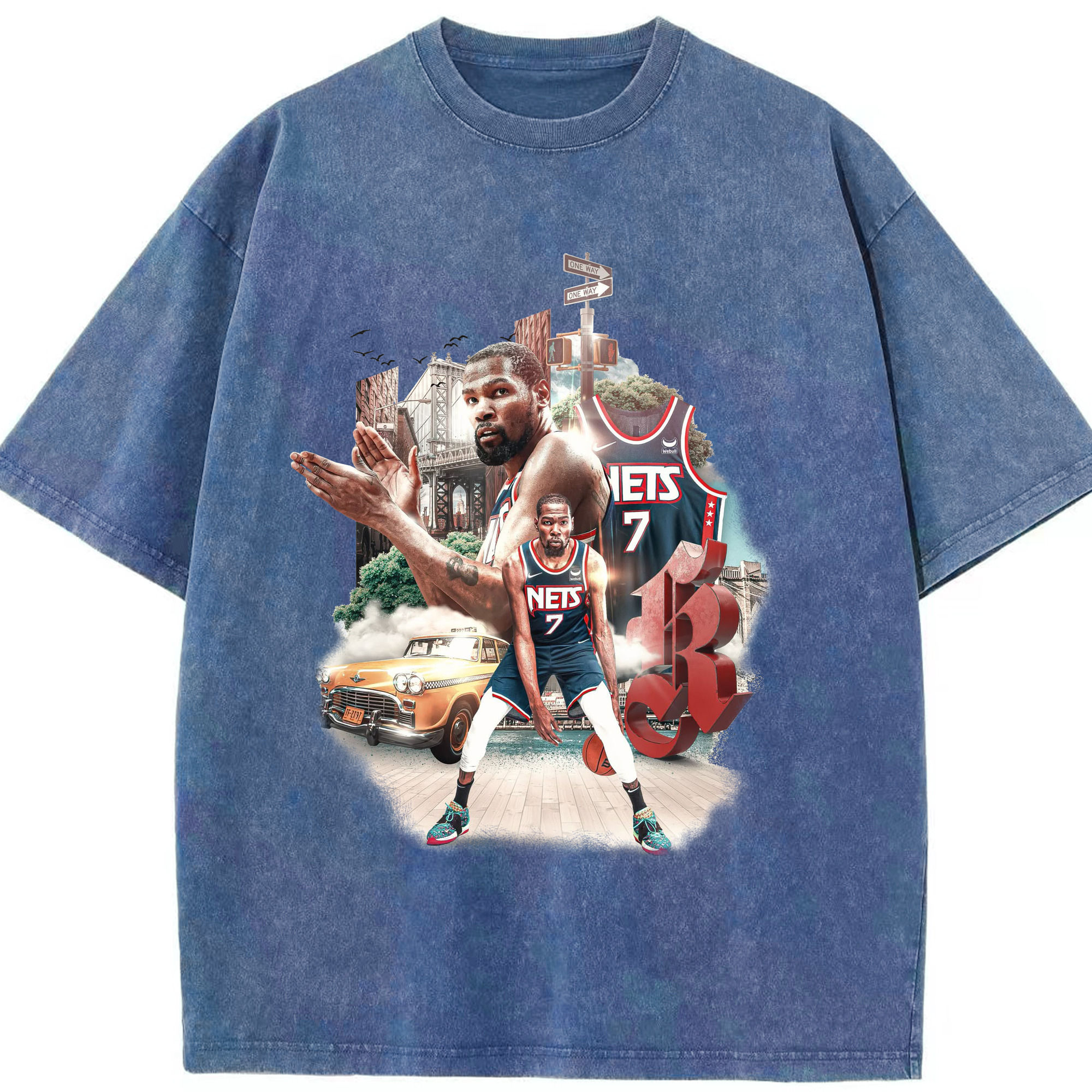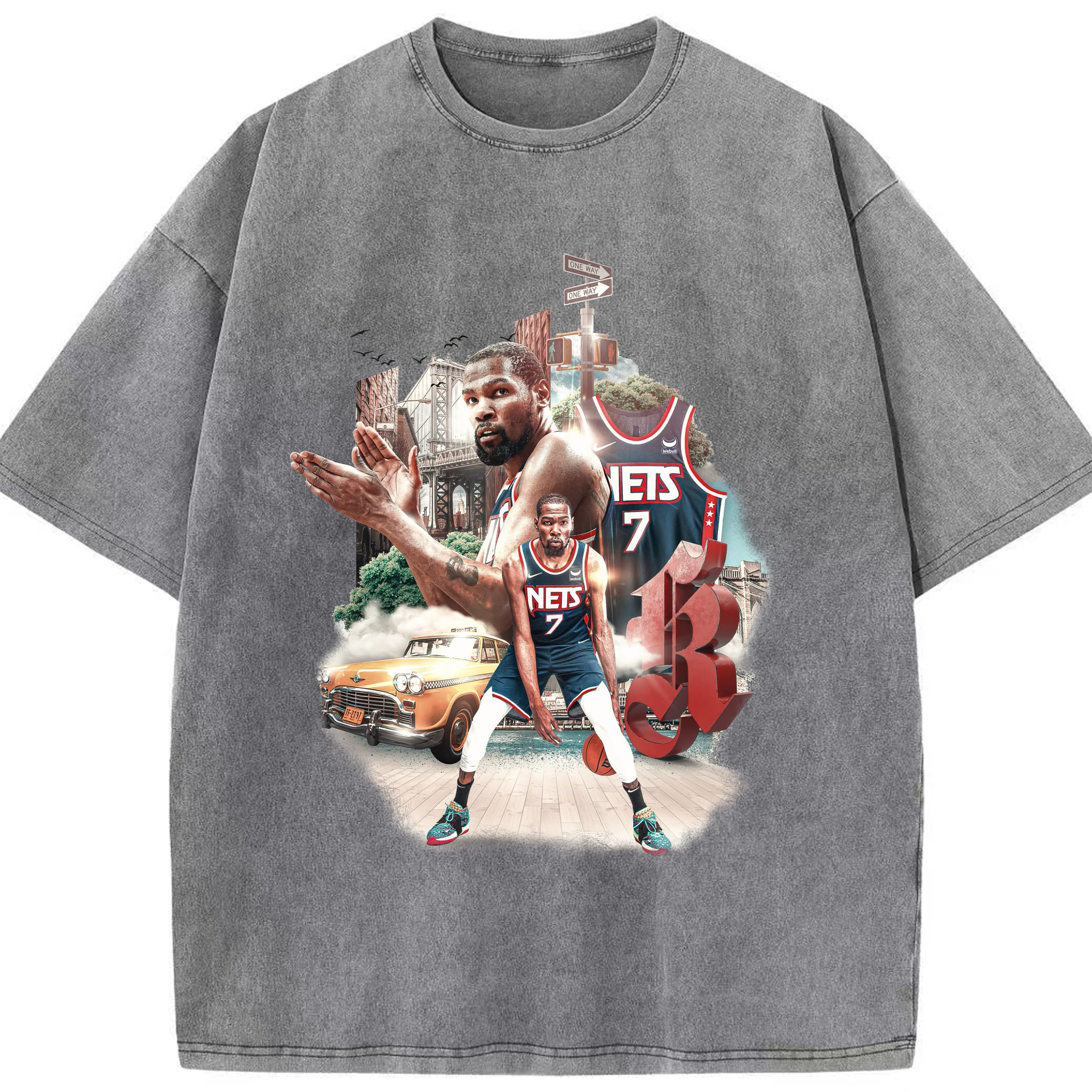 Kevin Durant Brooklyn Nets Limited Edition Jersey Shirt - Washed Vintage Look 230g Cotton Oversized T-Shirt With Front Heat Transfer Print – Soft, Lightweight, Stylish Fit – Comfortable Casual Wear For Sports & Everyday Use