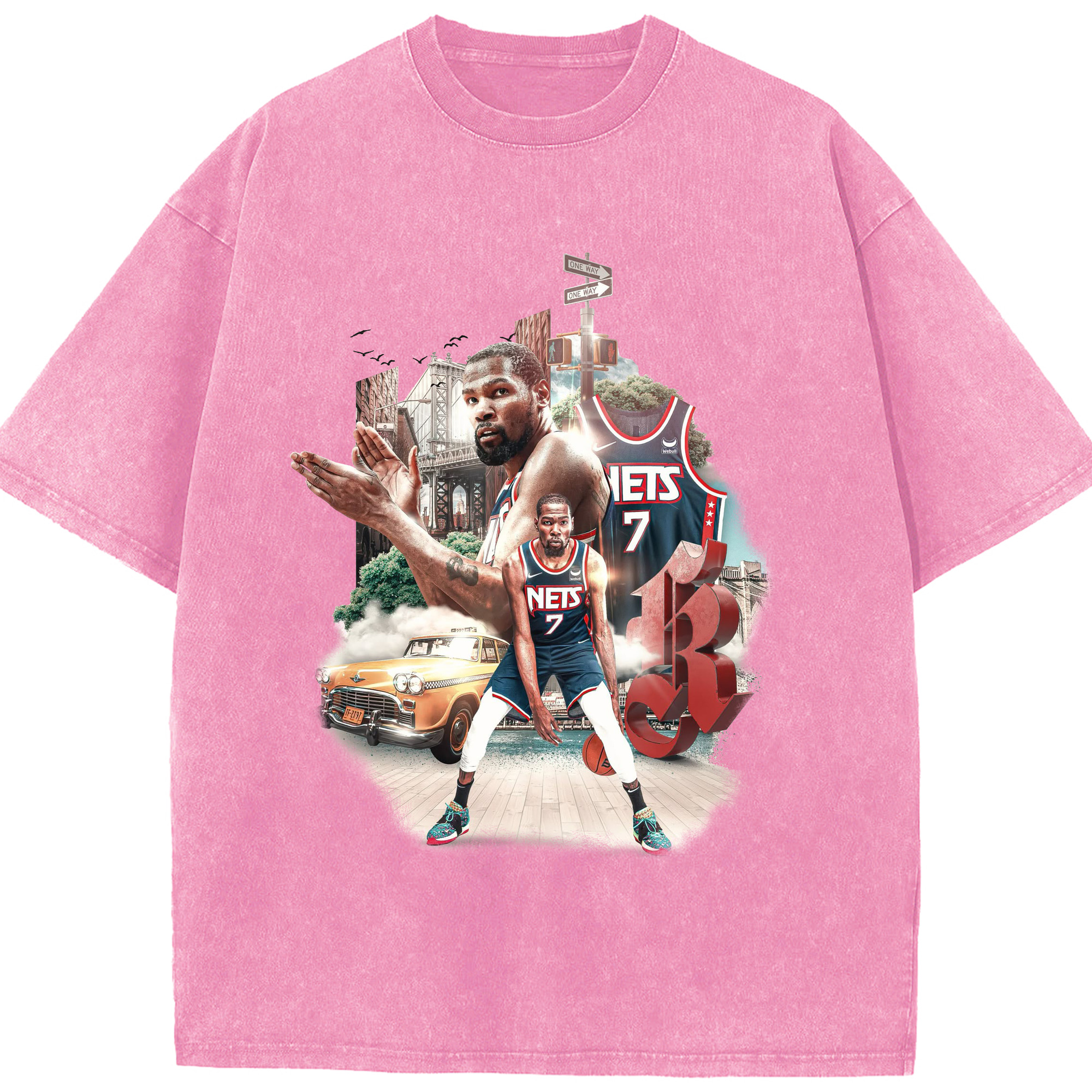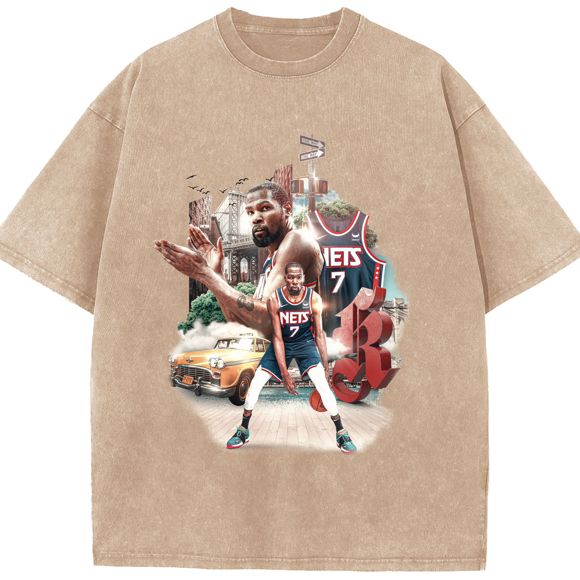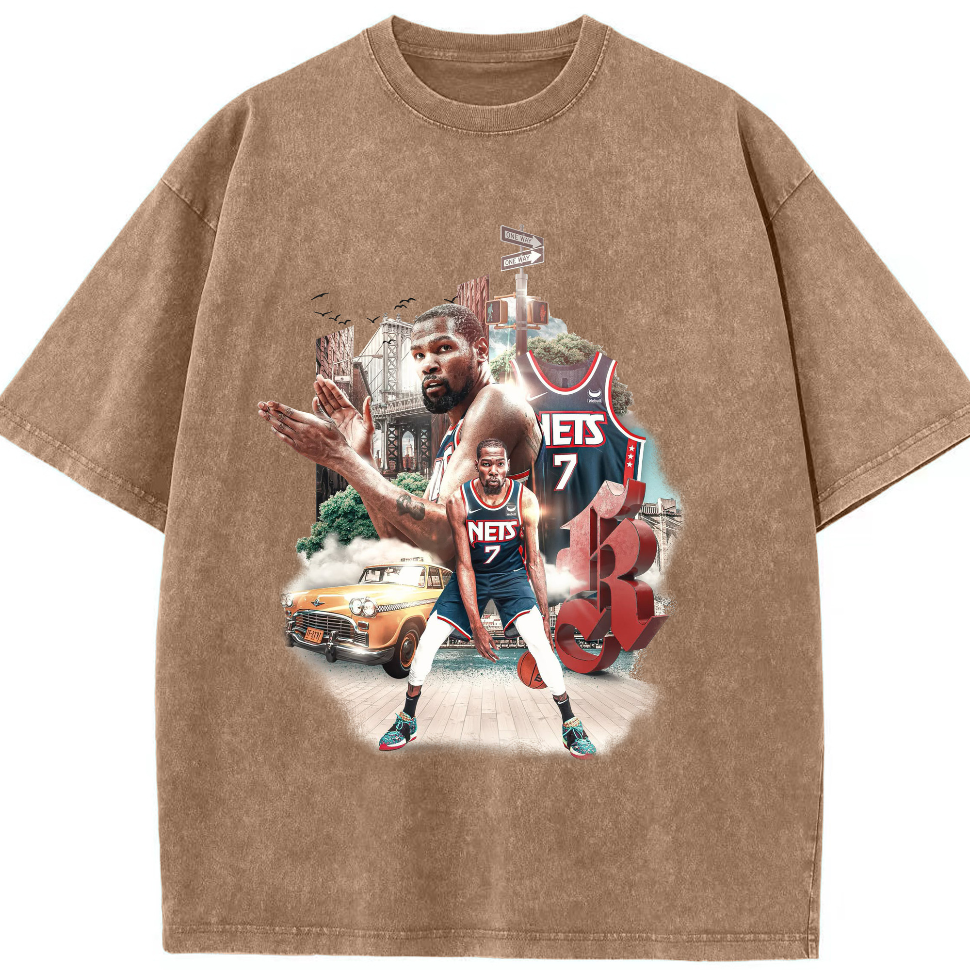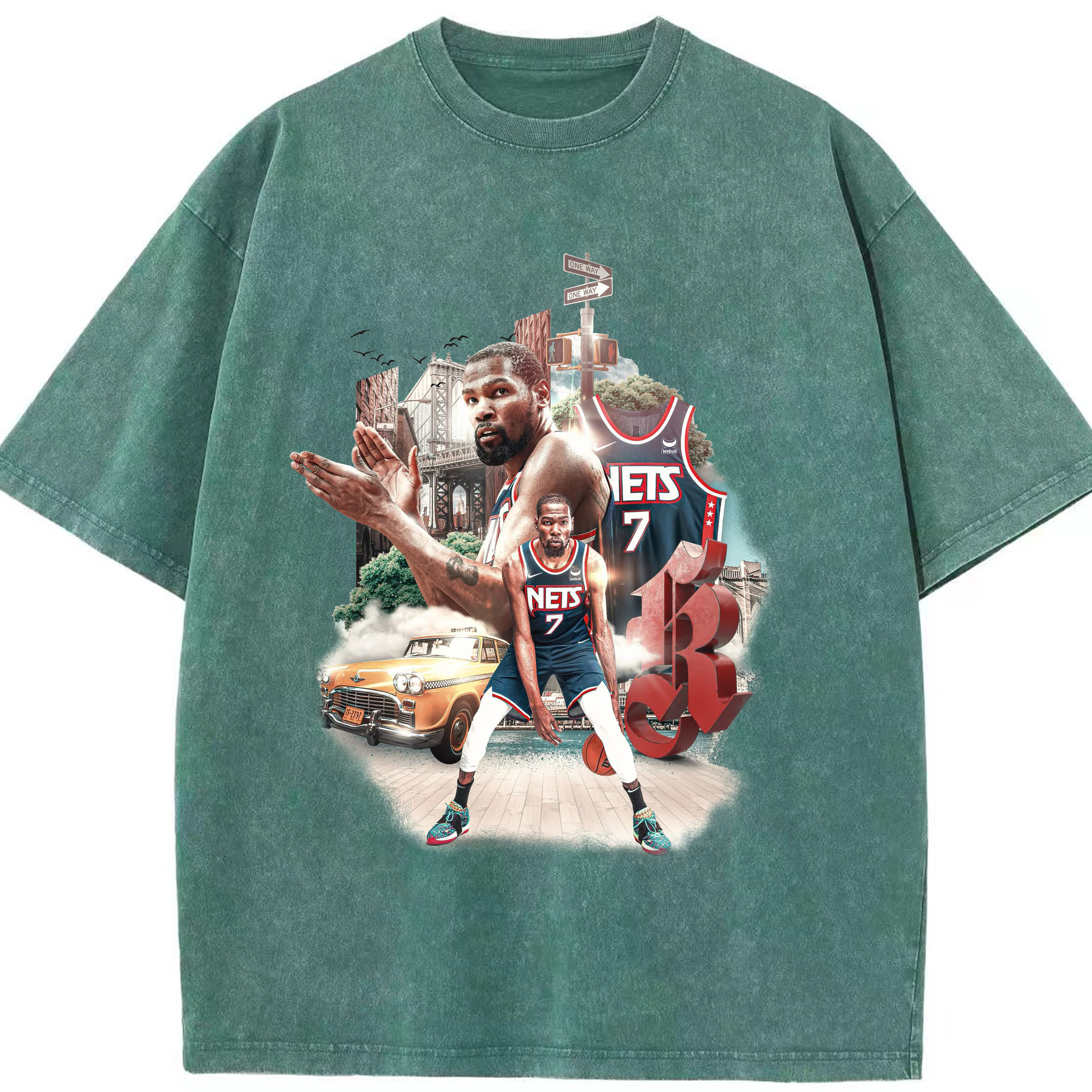 Kevin Durant Brooklyn Nets Limited Edition Jersey Shirt - Washed Vintage Look 230g Cotton Oversized T-Shirt With Front Heat Transfer Print – Soft, Lightweight, Stylish Fit – Comfortable Casual Wear For Sports & Everyday Use