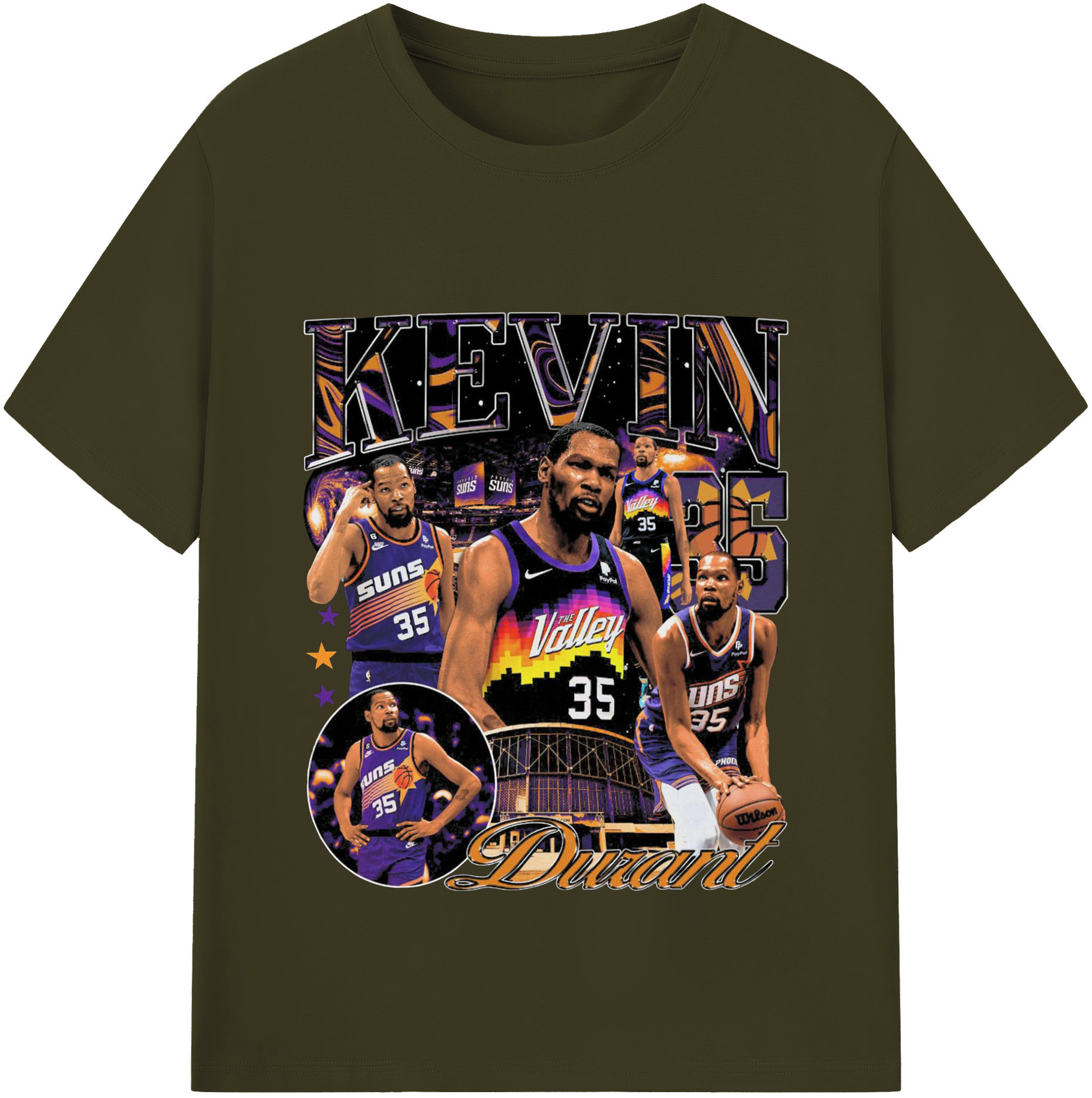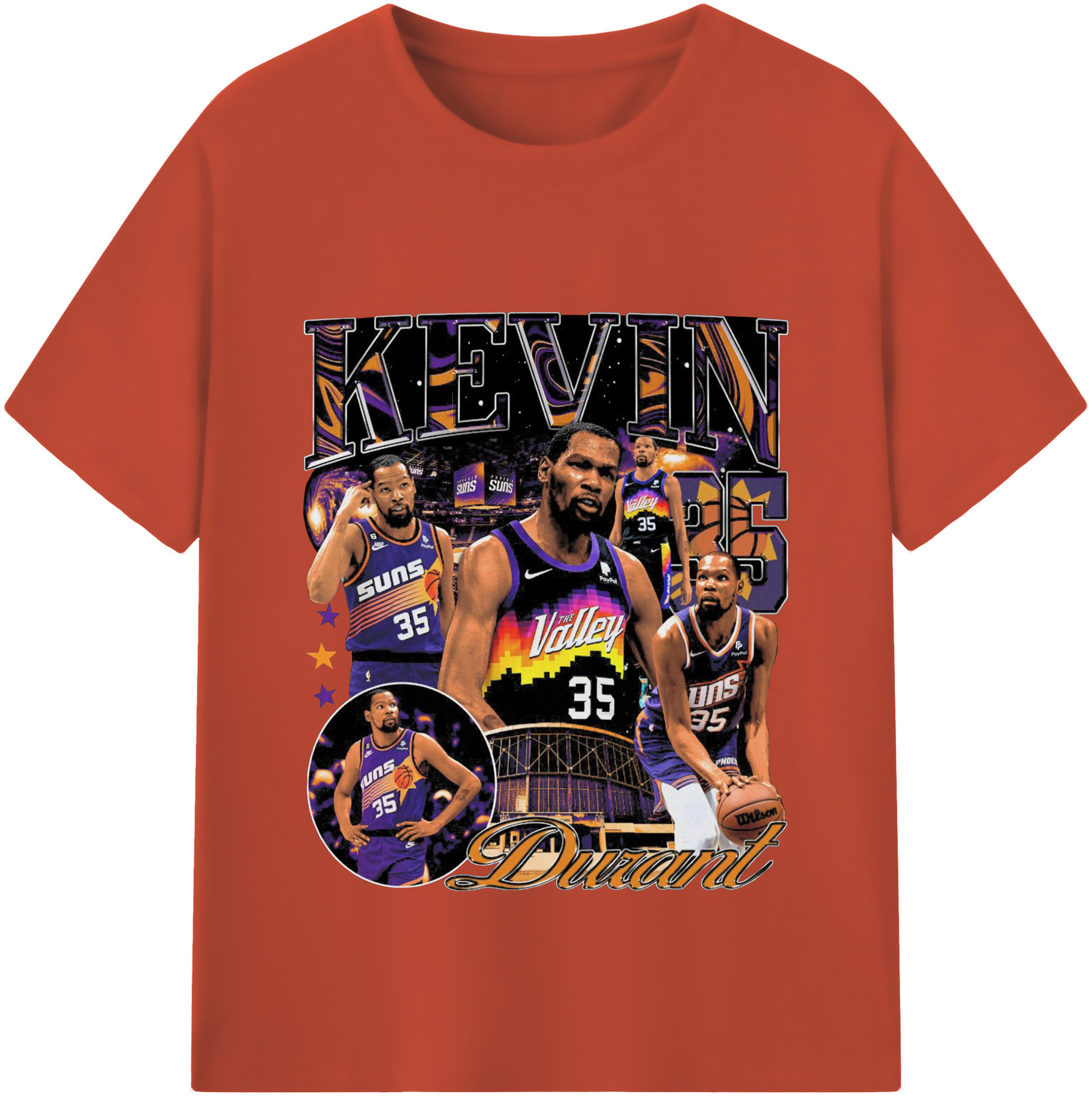 Kevin Durant Phoenix Suns "The Valley" Limited Edition Jersey Shirt - 180g Cotton T-Shirt With Front Heat Transfer Print – Soft, Lightweight, Fitted Design – Comfortable Casual Wear For Sports & Everyday Use