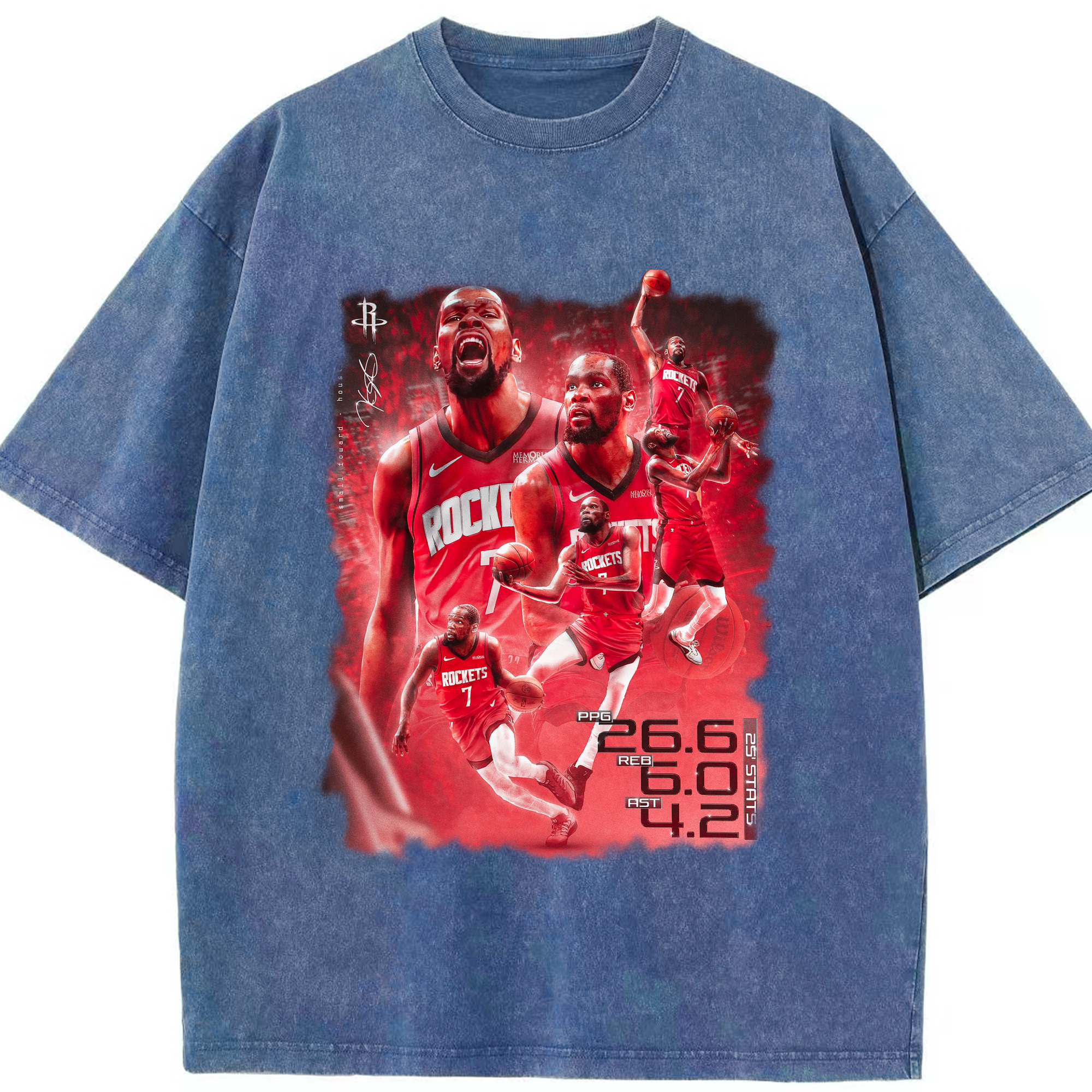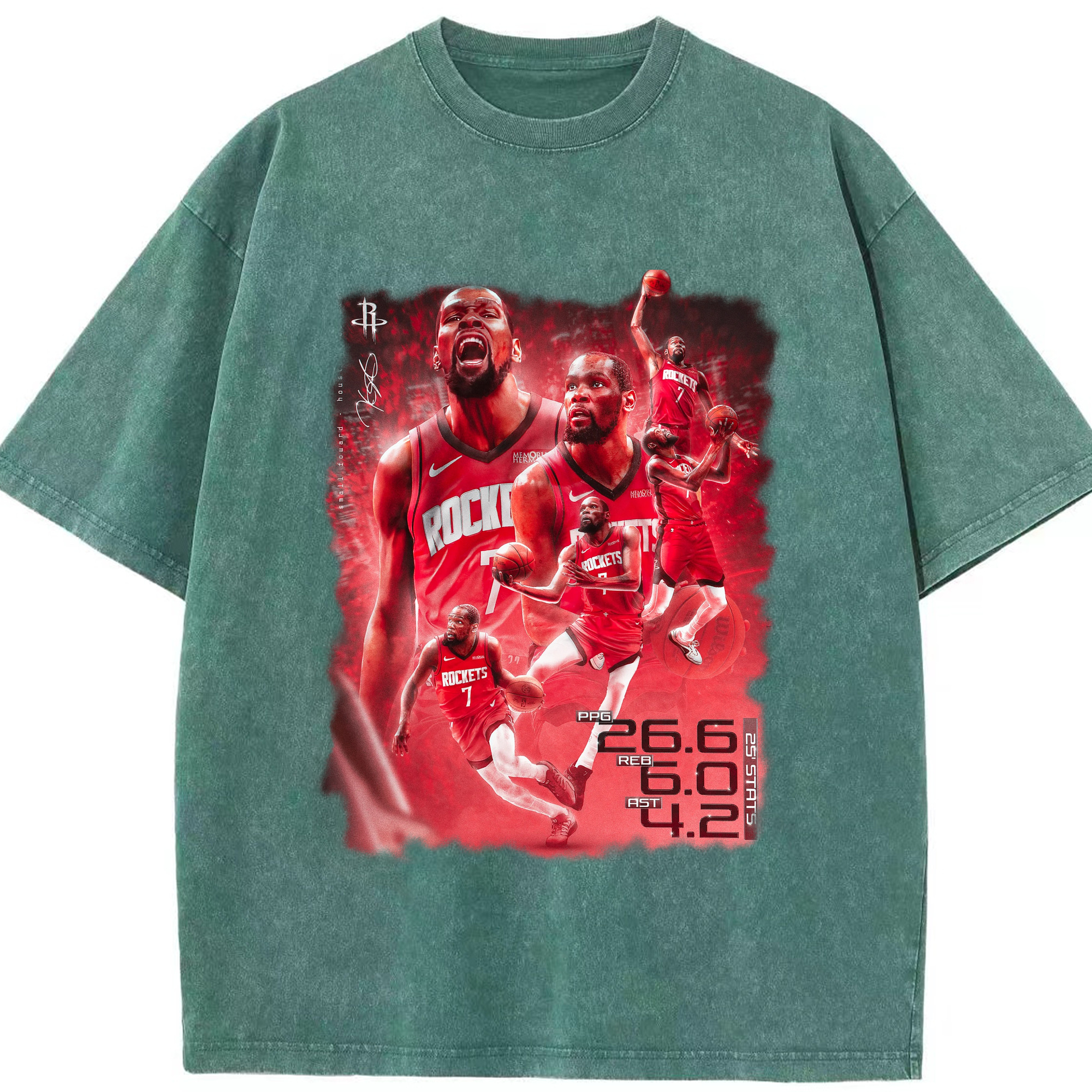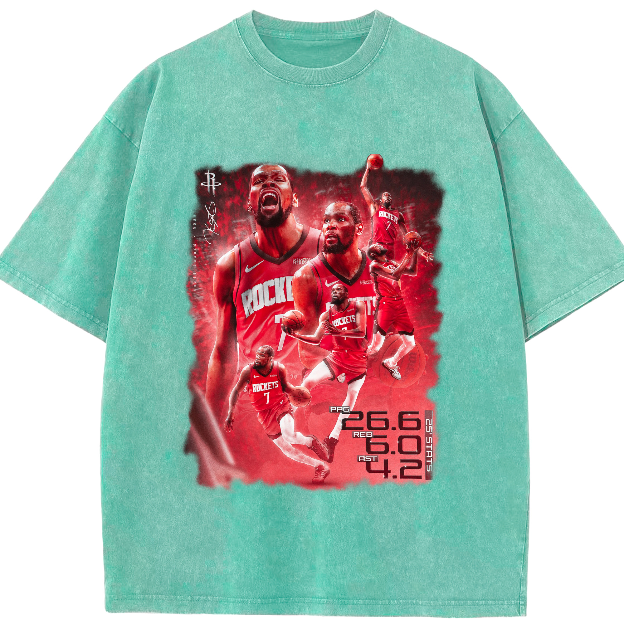 Kevin Durant Rockrets #7 Data Museum Art Shirt - Washed Vintage Look 230g Cotton Oversized T-Shirt With Front Heat Transfer Print – Soft, Lightweight, Stylish Fit – Comfortable Casual Wear For Sports & Everyday Use