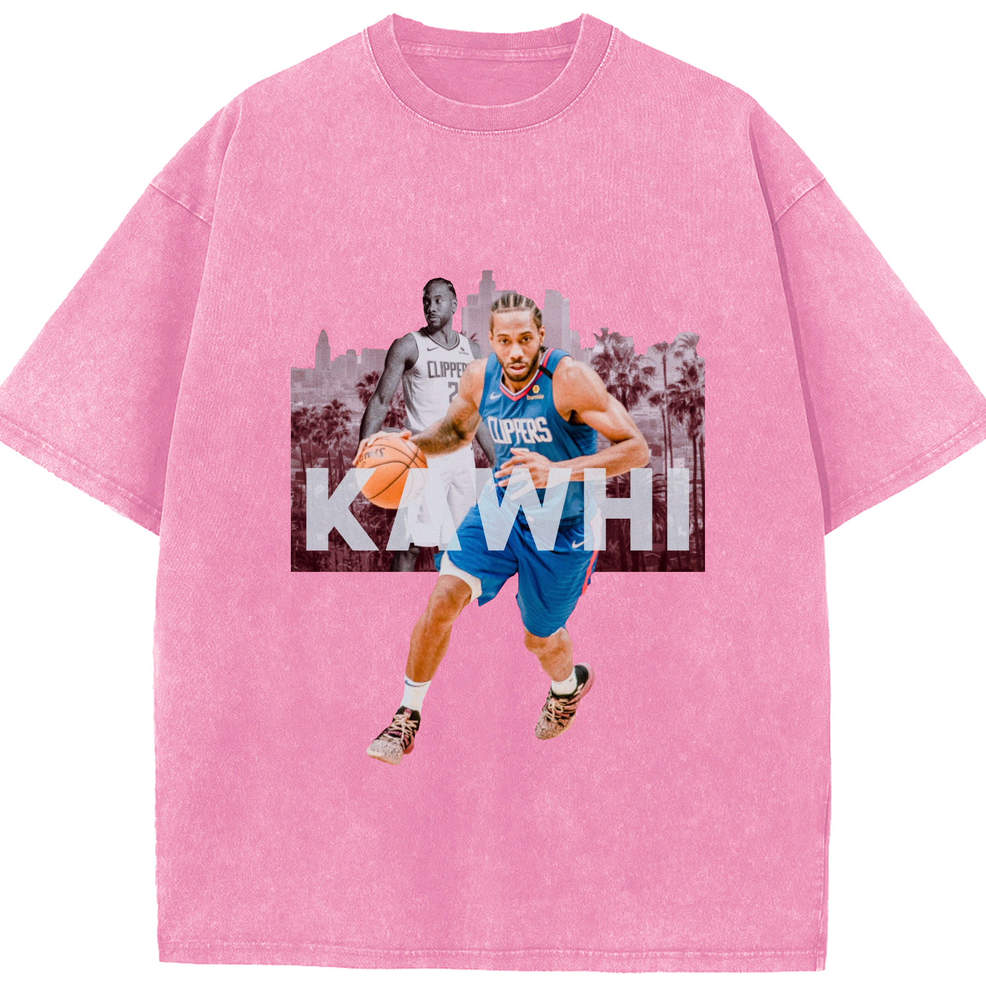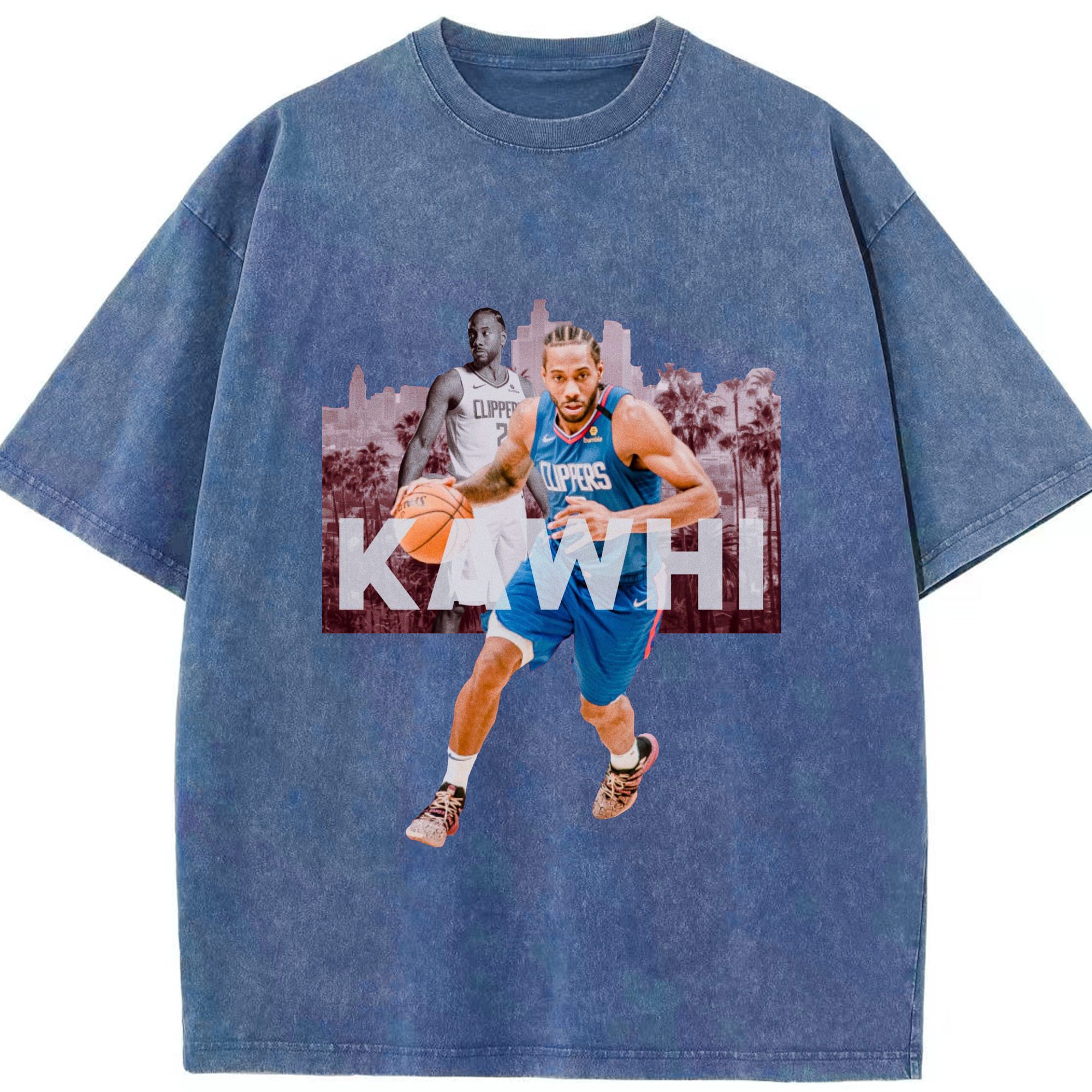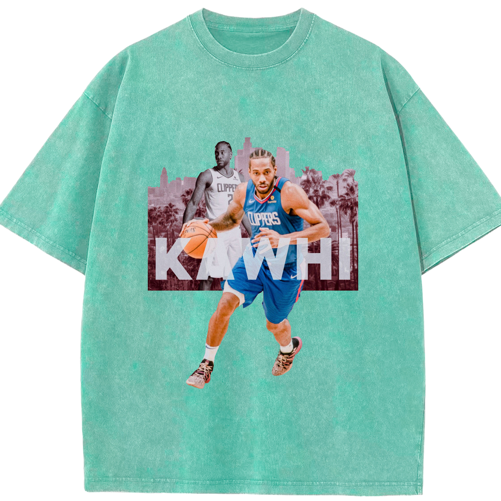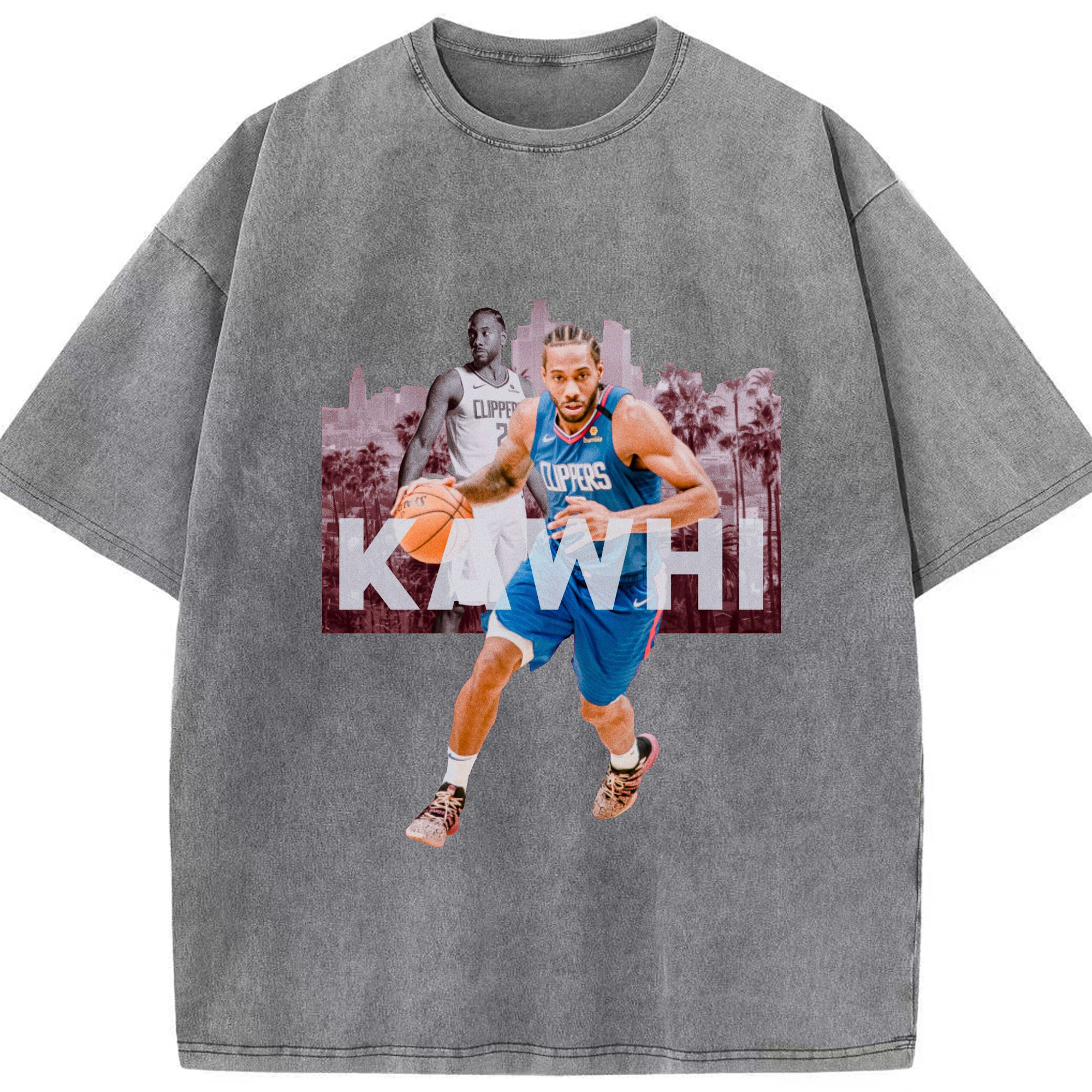 King of LA Clippers:Kawhi Leonard - Washed Vintage Look 230g Cotton Oversized T-Shirt With Front Heat Transfer Print – Soft, Lightweight, Stylish Fit – Comfortable Casual Wear For Sports & Everyday Use