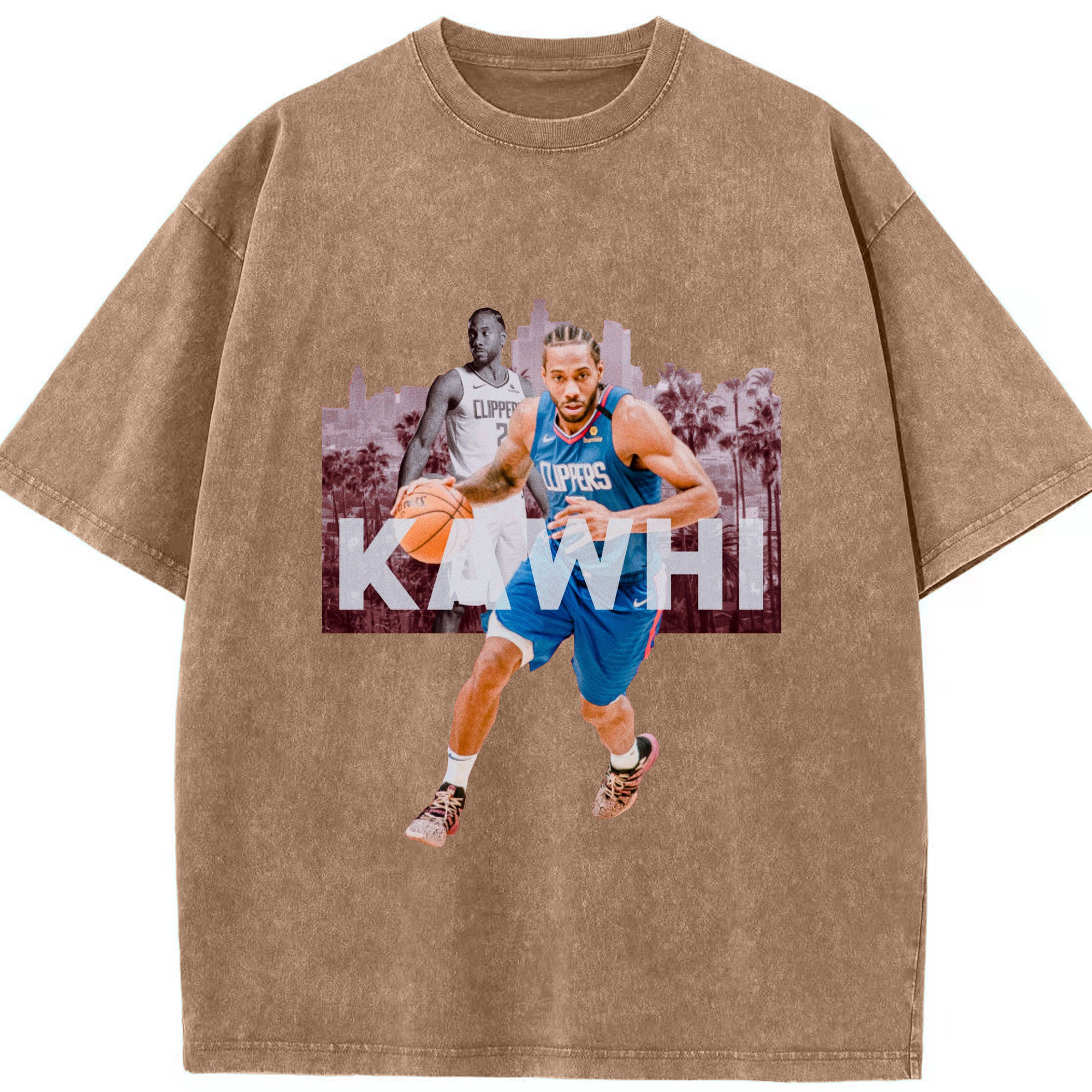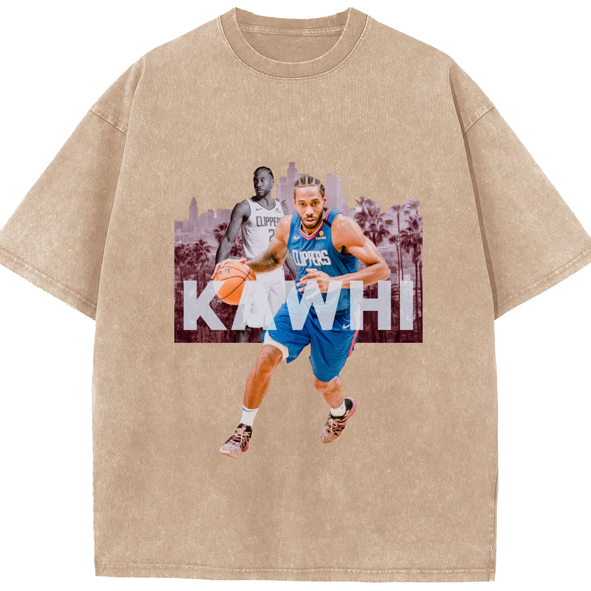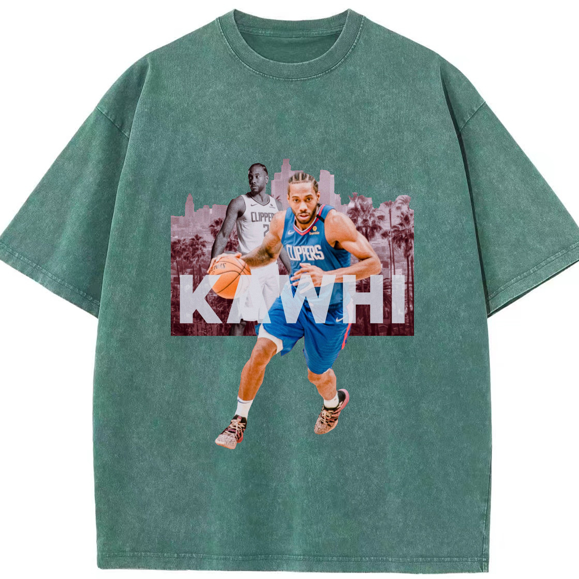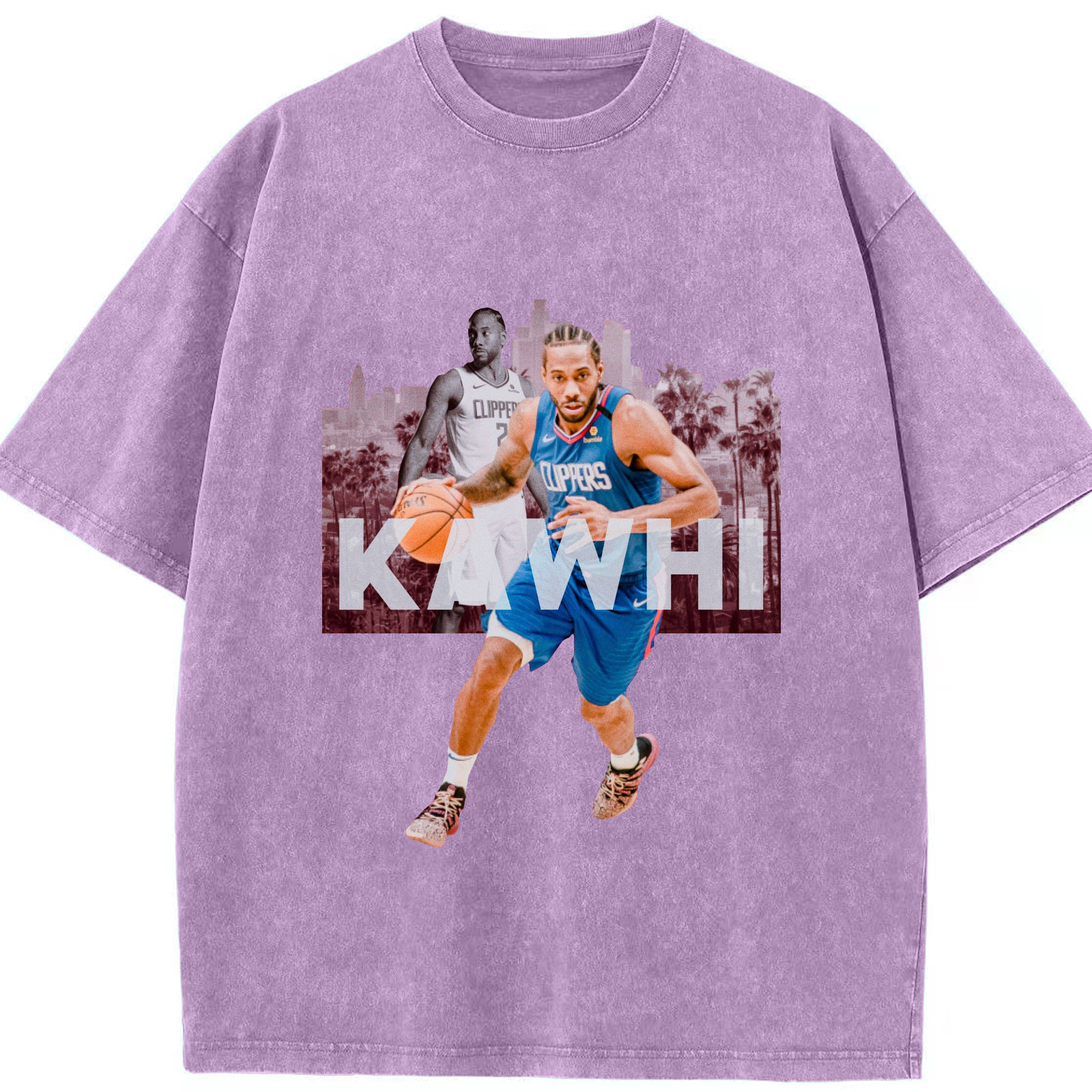King of LA Clippers:Kawhi Leonard - Washed Vintage Look 230g Cotton Oversized T-Shirt With Front Heat Transfer Print – Soft, Lightweight, Stylish Fit – Comfortable Casual Wear For Sports & Everyday Use