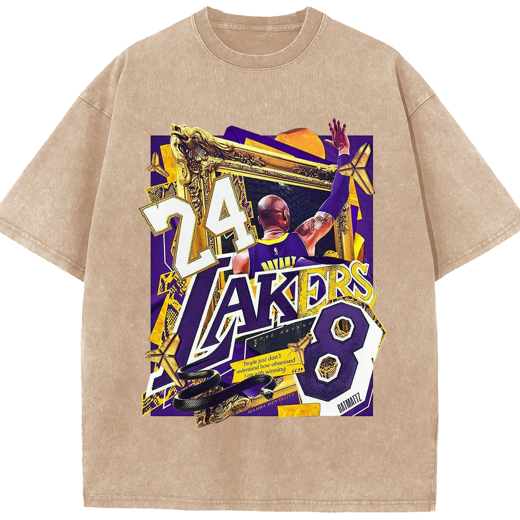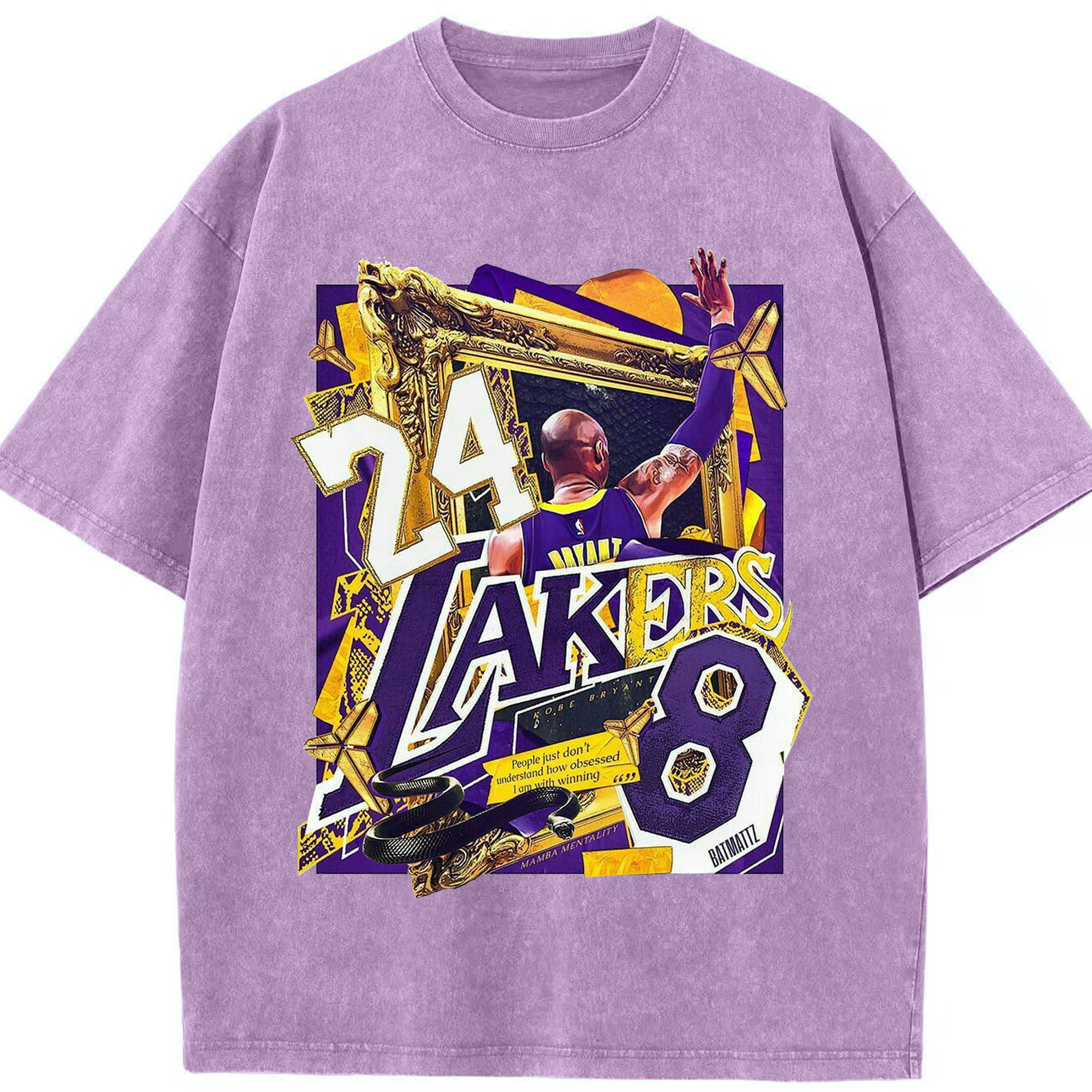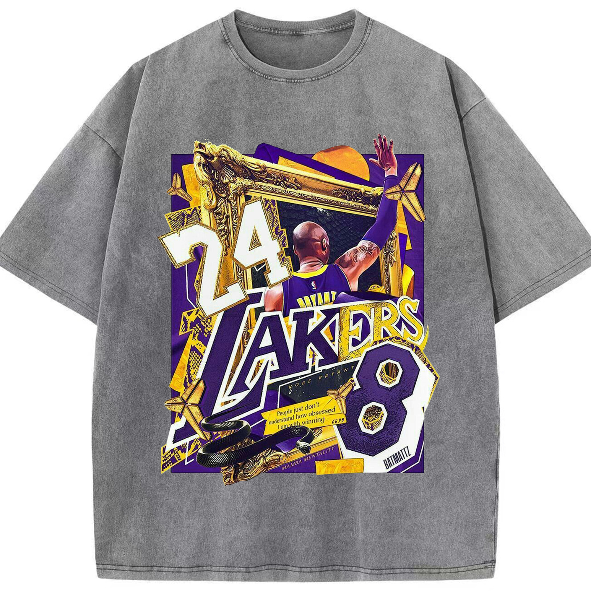 Kobe Bryant Lakers 24 & 8 Mamba Mentality Shirt - Washed Vintage Look 230g Cotton Oversized T-Shirt With Front Heat Transfer Print – Soft, Lightweight, Stylish Fit – Comfortable Casual Wear For Sports & Everyday Use