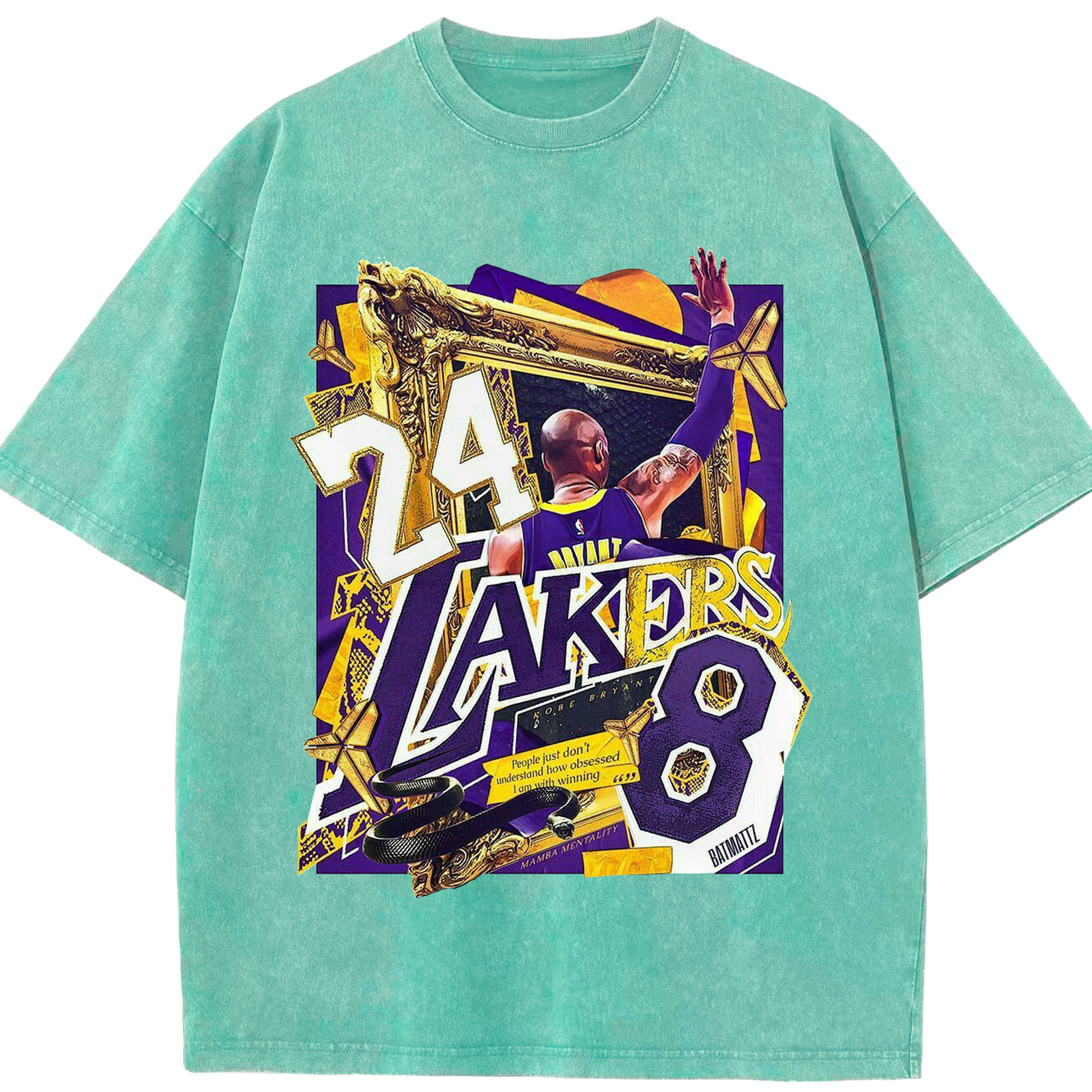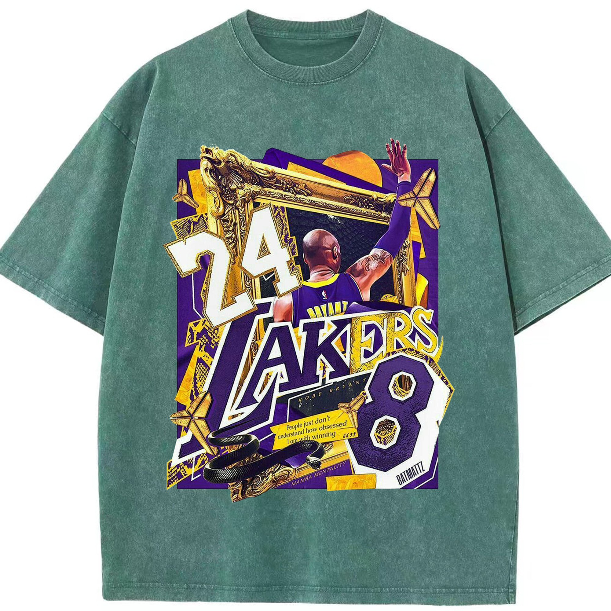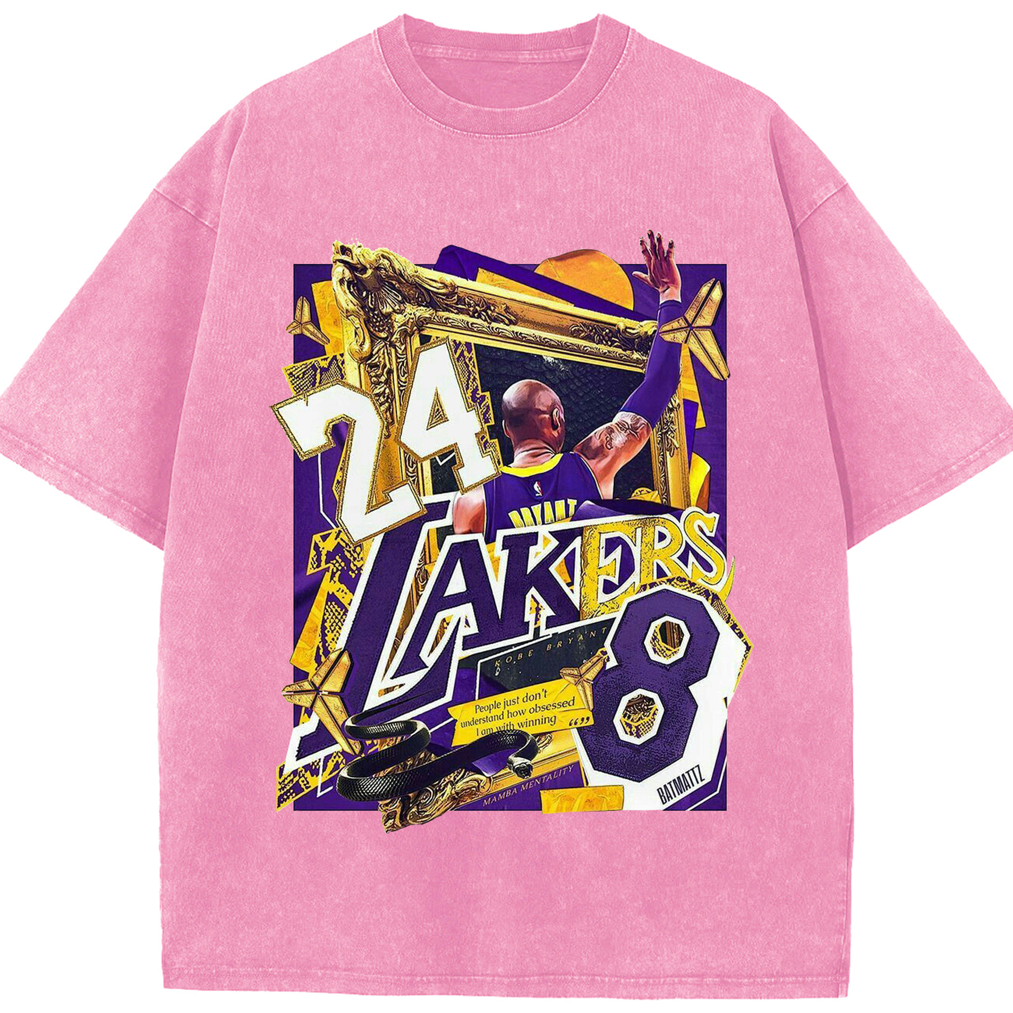 Kobe Bryant Lakers 24 & 8 Mamba Mentality Shirt - Washed Vintage Look 230g Cotton Oversized T-Shirt With Front Heat Transfer Print – Soft, Lightweight, Stylish Fit – Comfortable Casual Wear For Sports & Everyday Use
