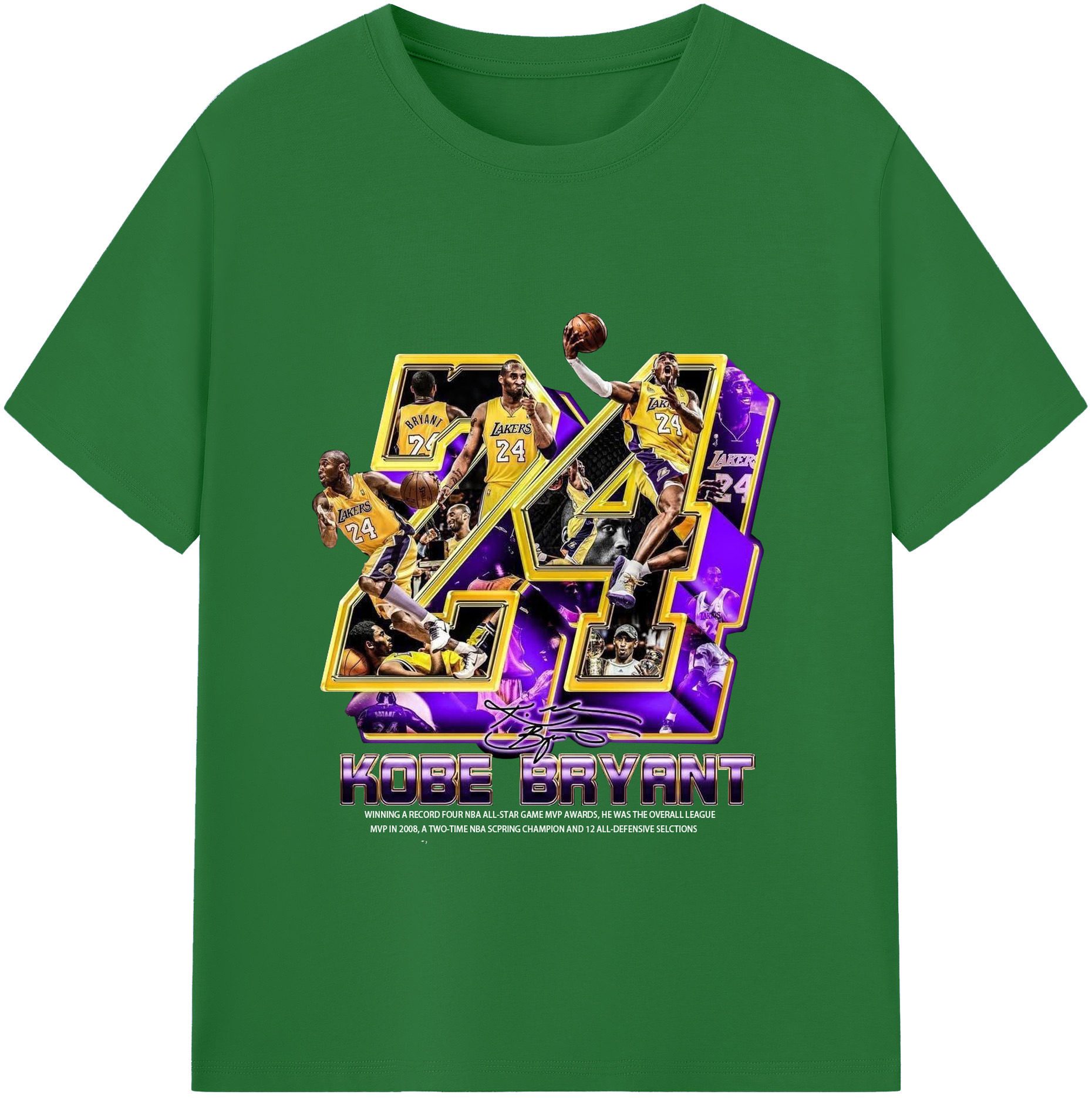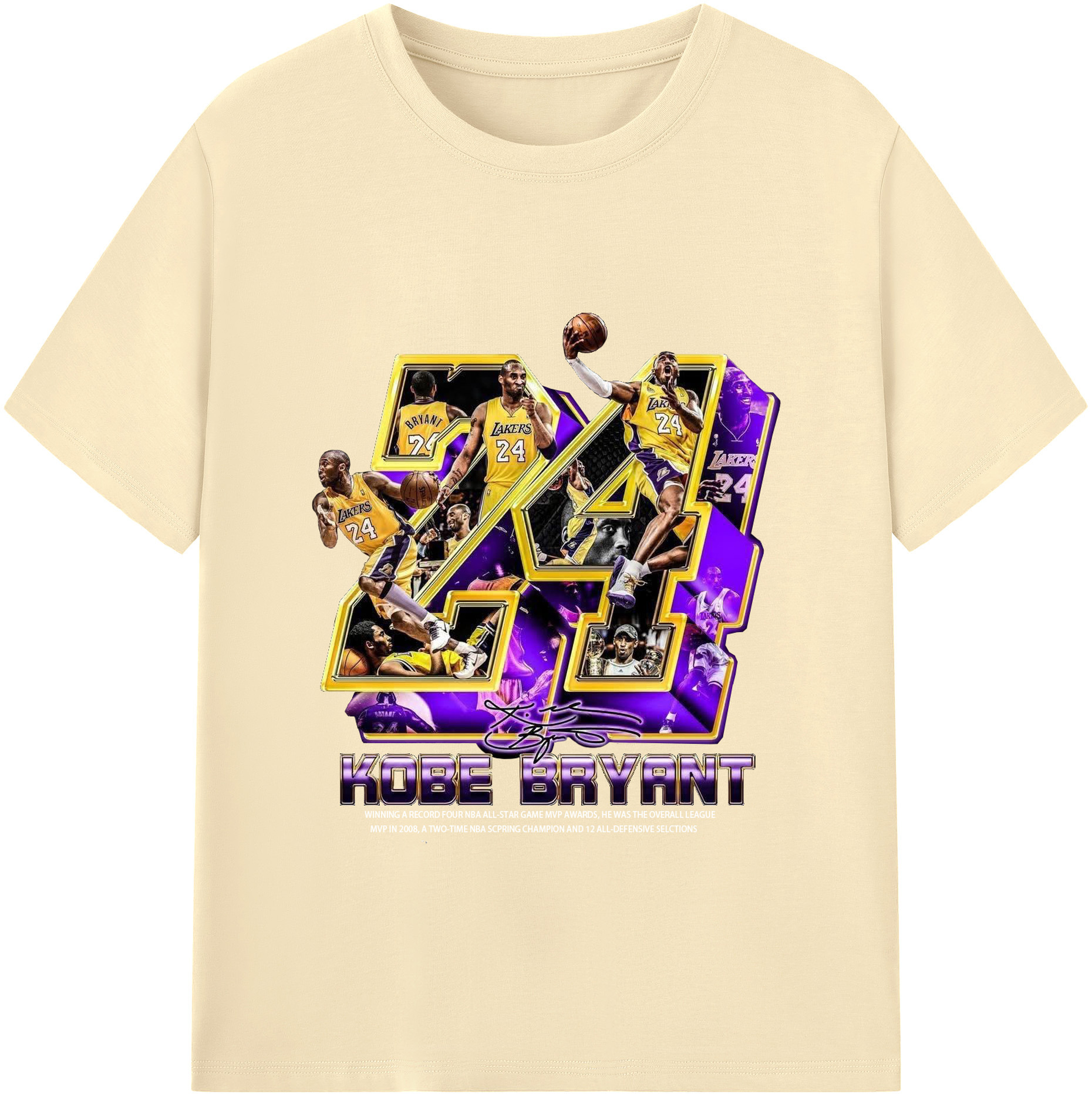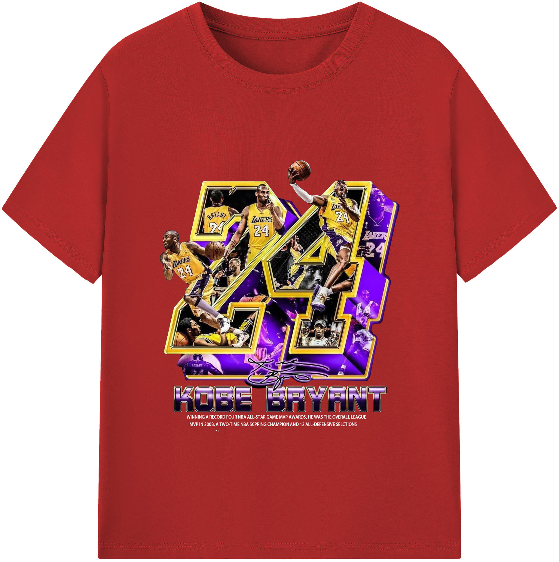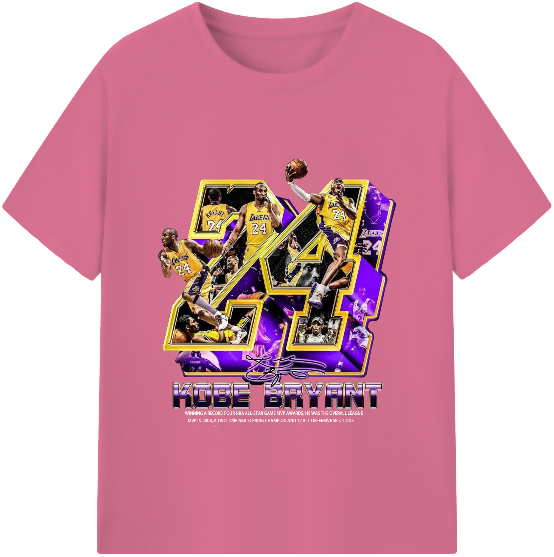 Kobe Bryant No. 24 close-up - 180g Cotton T-Shirt With Front Heat Transfer Print – Soft, Lightweight, Fitted Design – Comfortable Casual Wear For Sports & Everyday Use