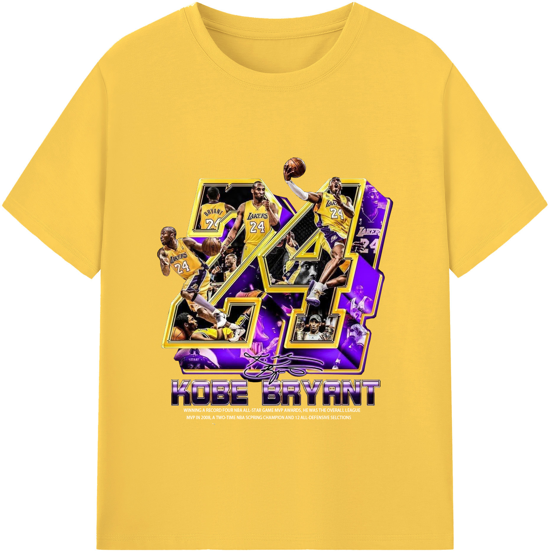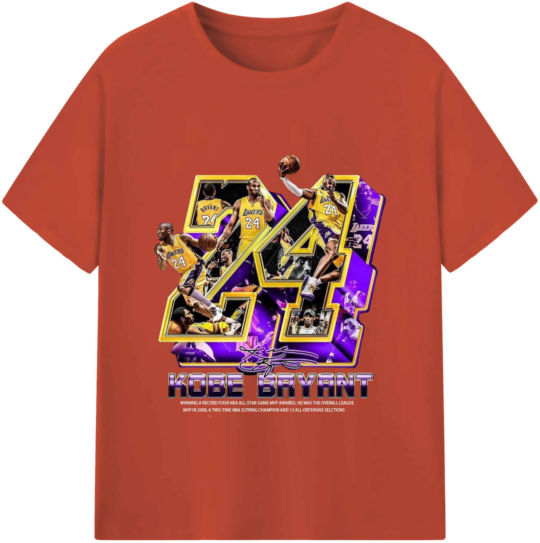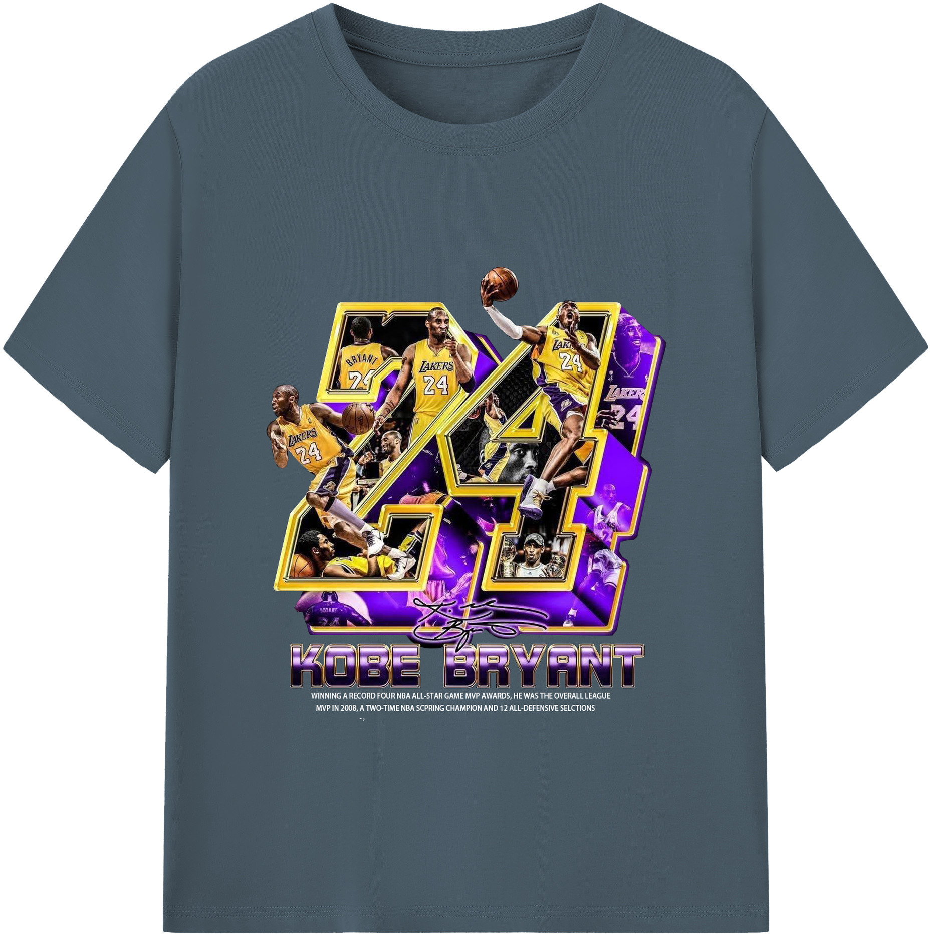 Kobe Bryant No. 24 close-up - 180g Cotton T-Shirt With Front Heat Transfer Print – Soft, Lightweight, Fitted Design – Comfortable Casual Wear For Sports & Everyday Use