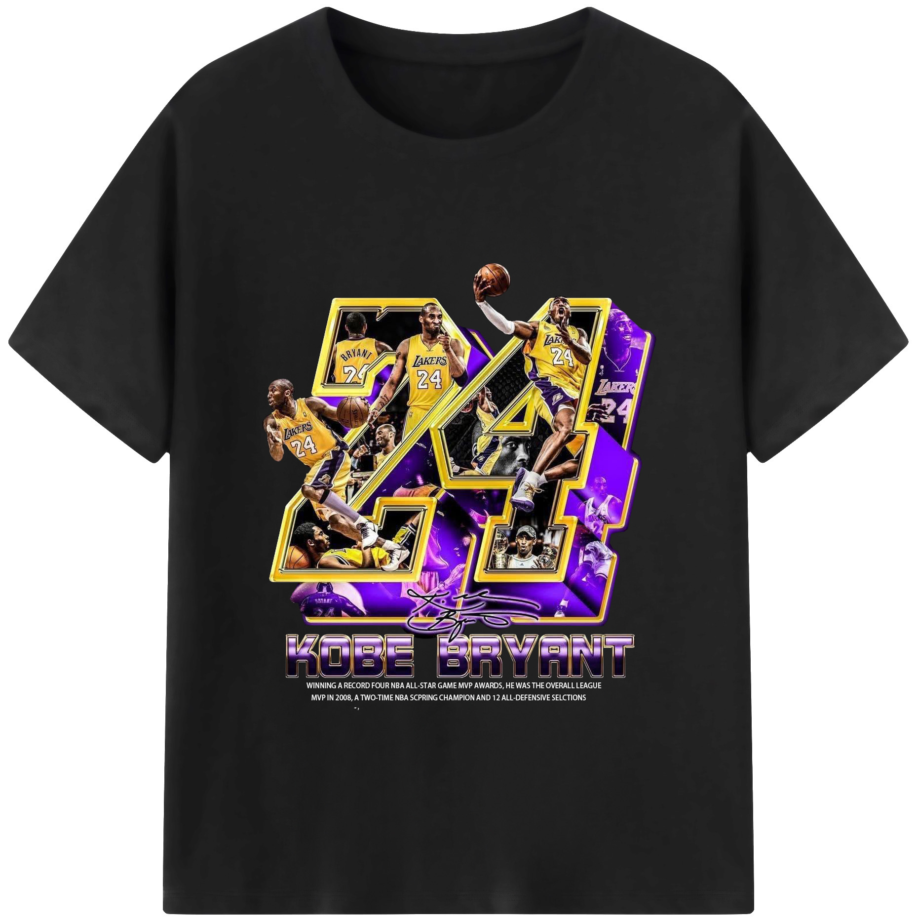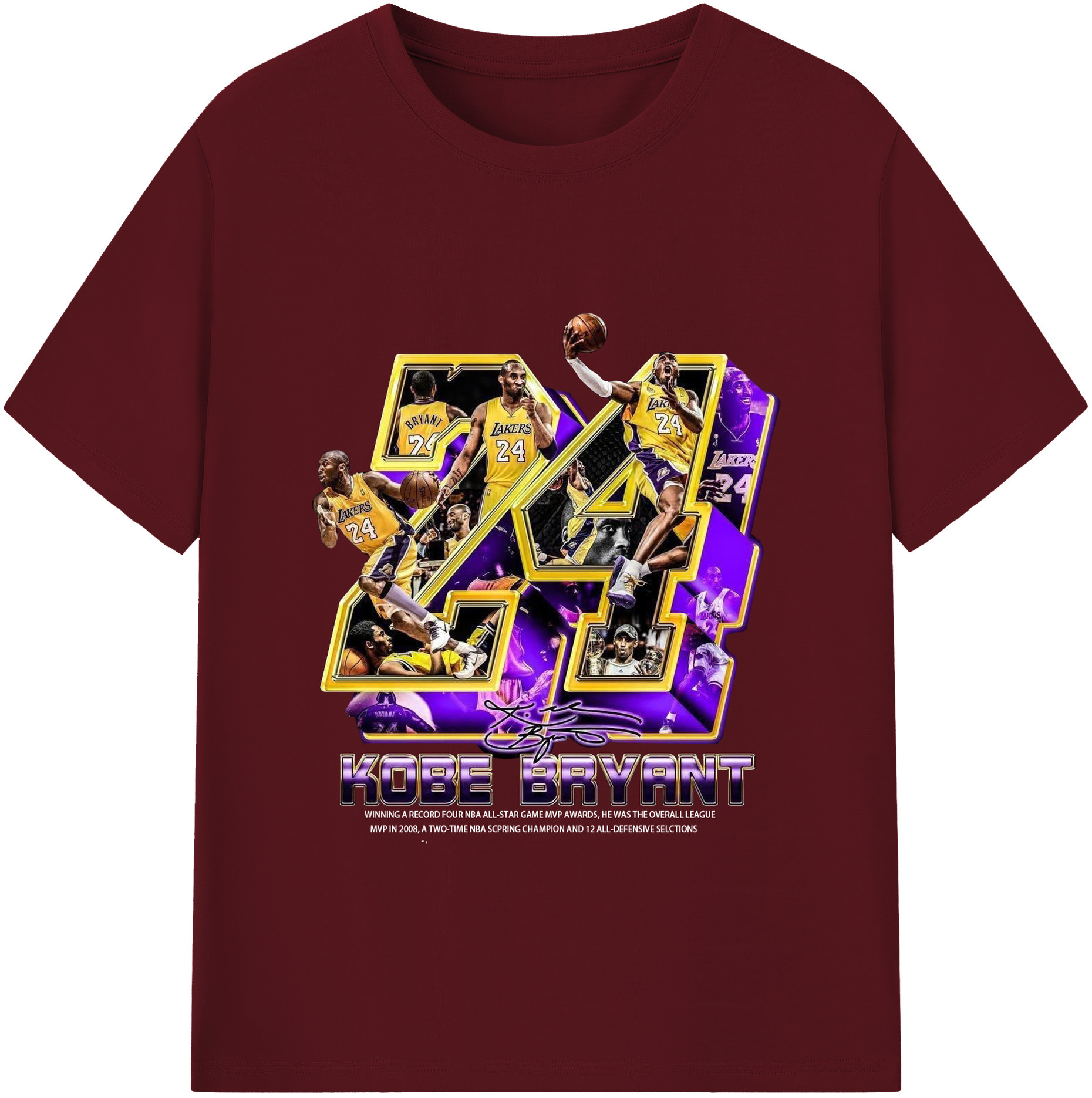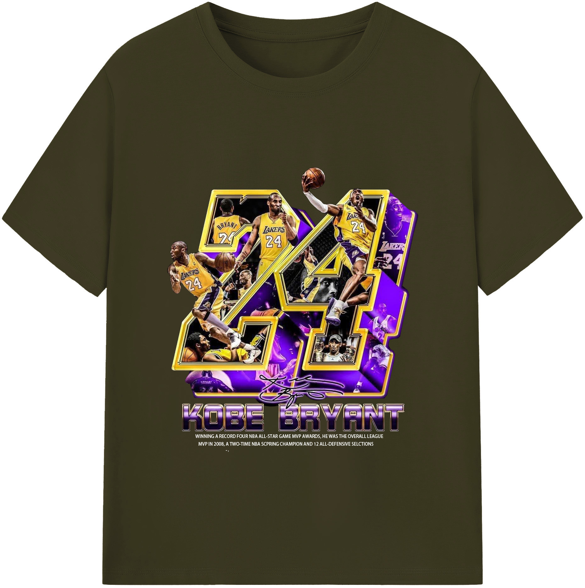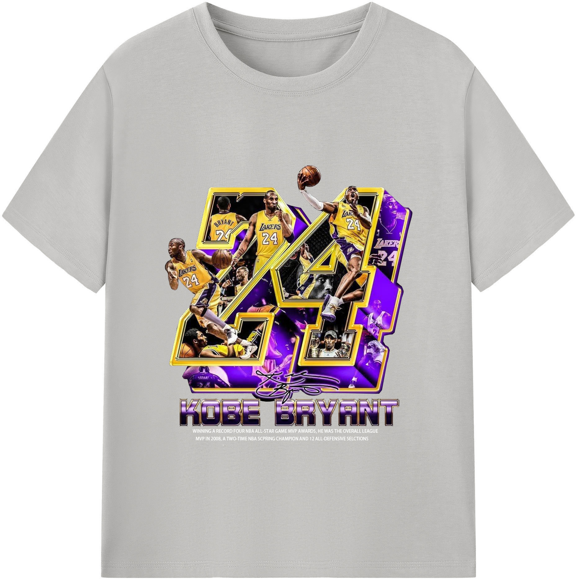 Kobe Bryant No. 24 close-up - 180g Cotton T-Shirt With Front Heat Transfer Print – Soft, Lightweight, Fitted Design – Comfortable Casual Wear For Sports & Everyday Use