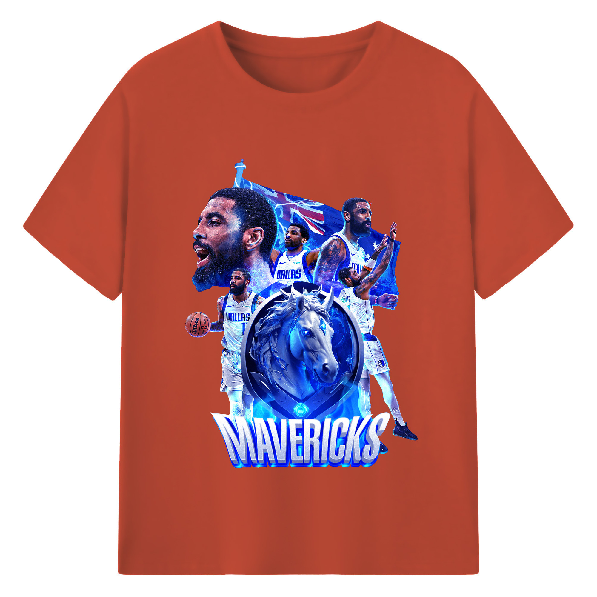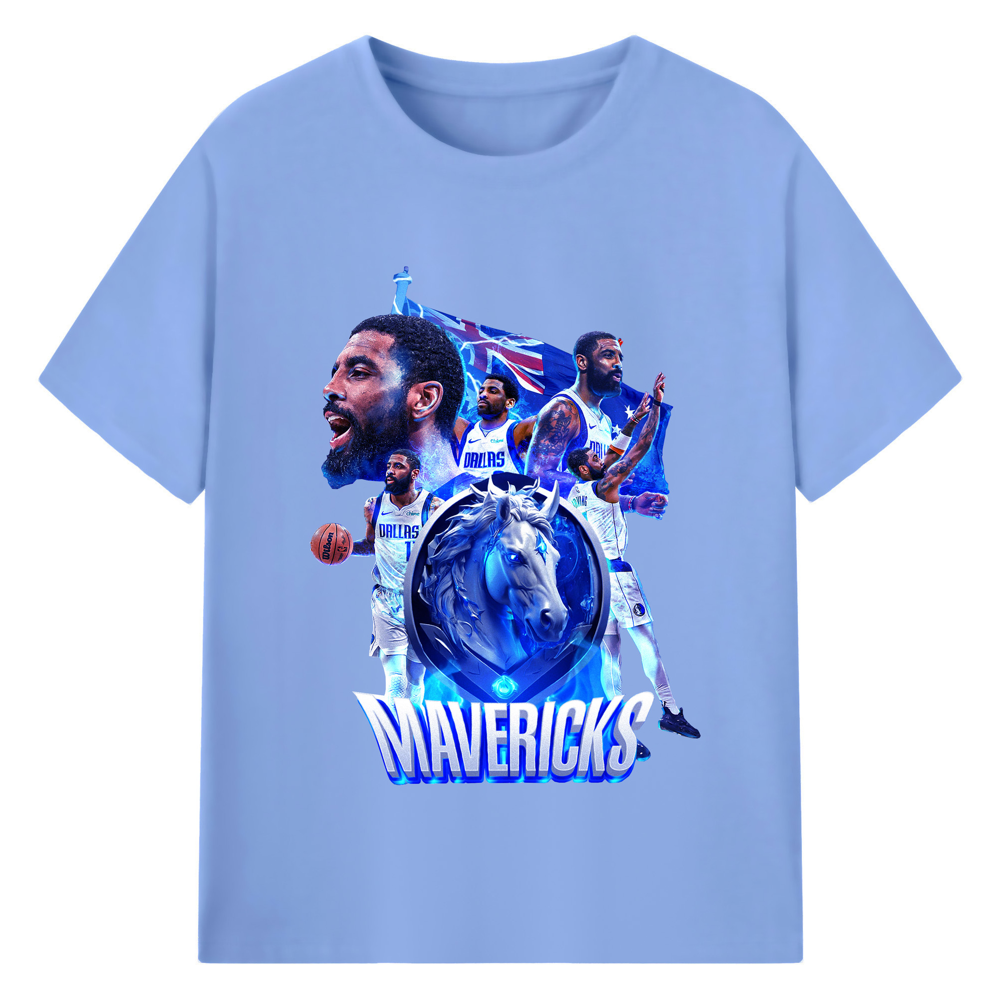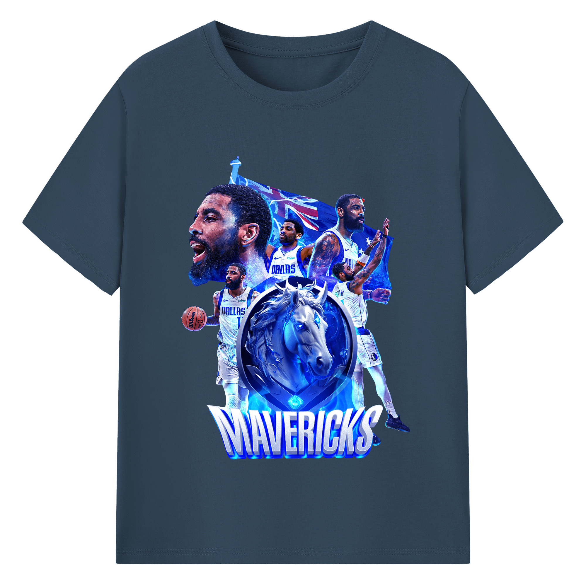 Kyrie Irving Dallas Mavericks 3D team logo POP Shirt - 180g Cotton T-Shirt With Front Heat Transfer Print – Soft, Lightweight, Fitted Design – Comfortable Casual Wear For Sports & Everyday Use