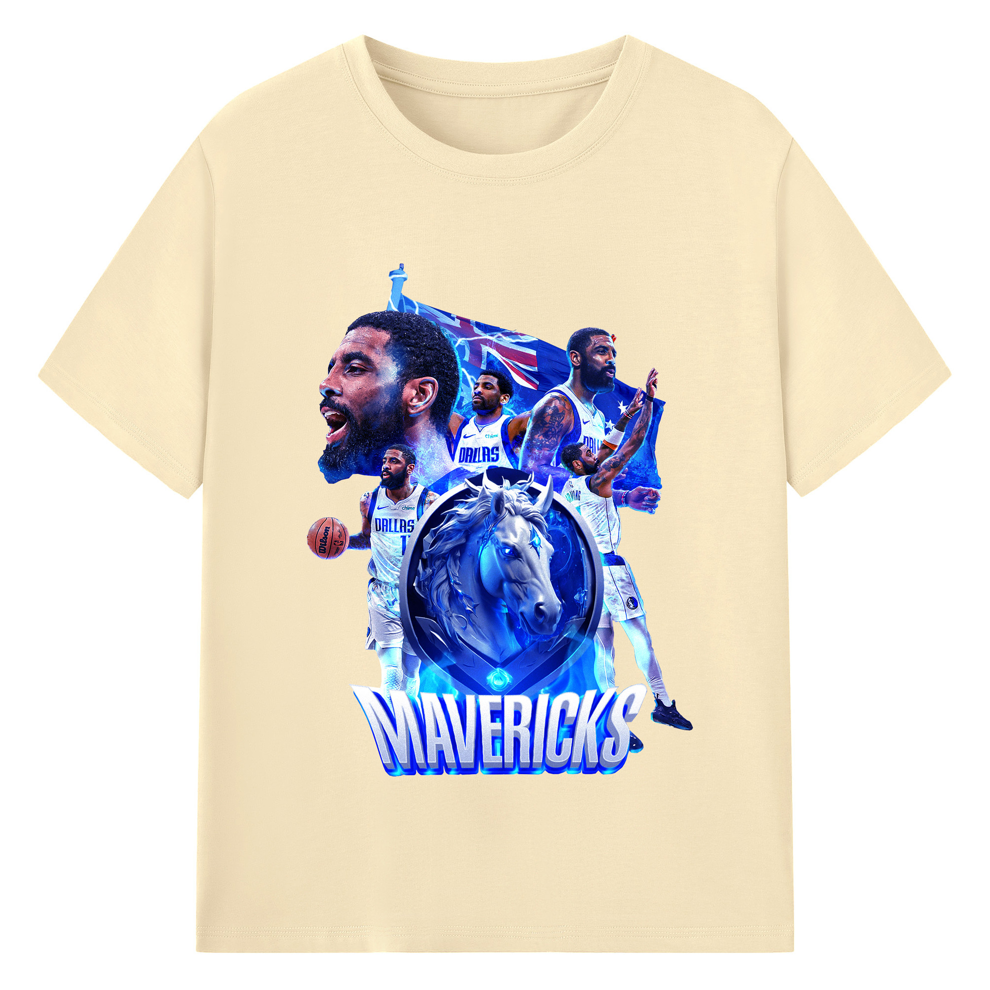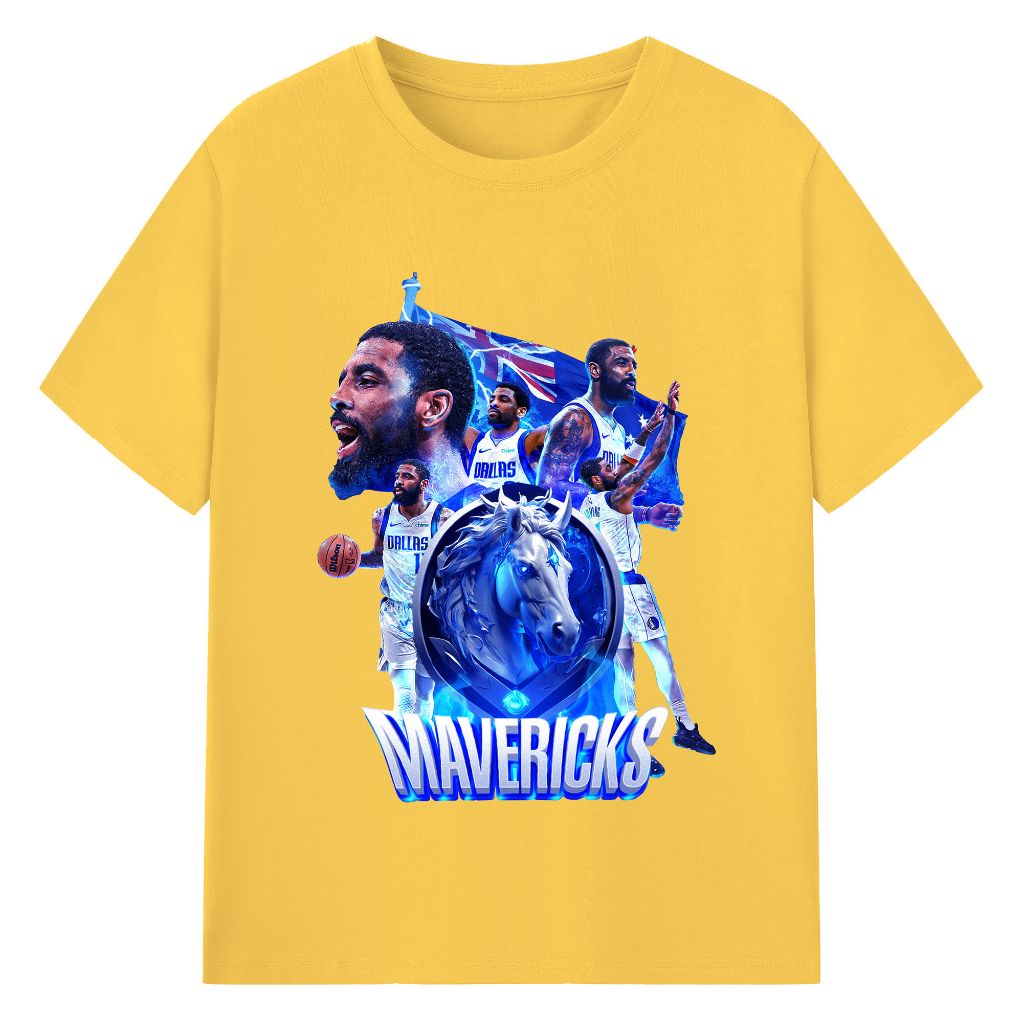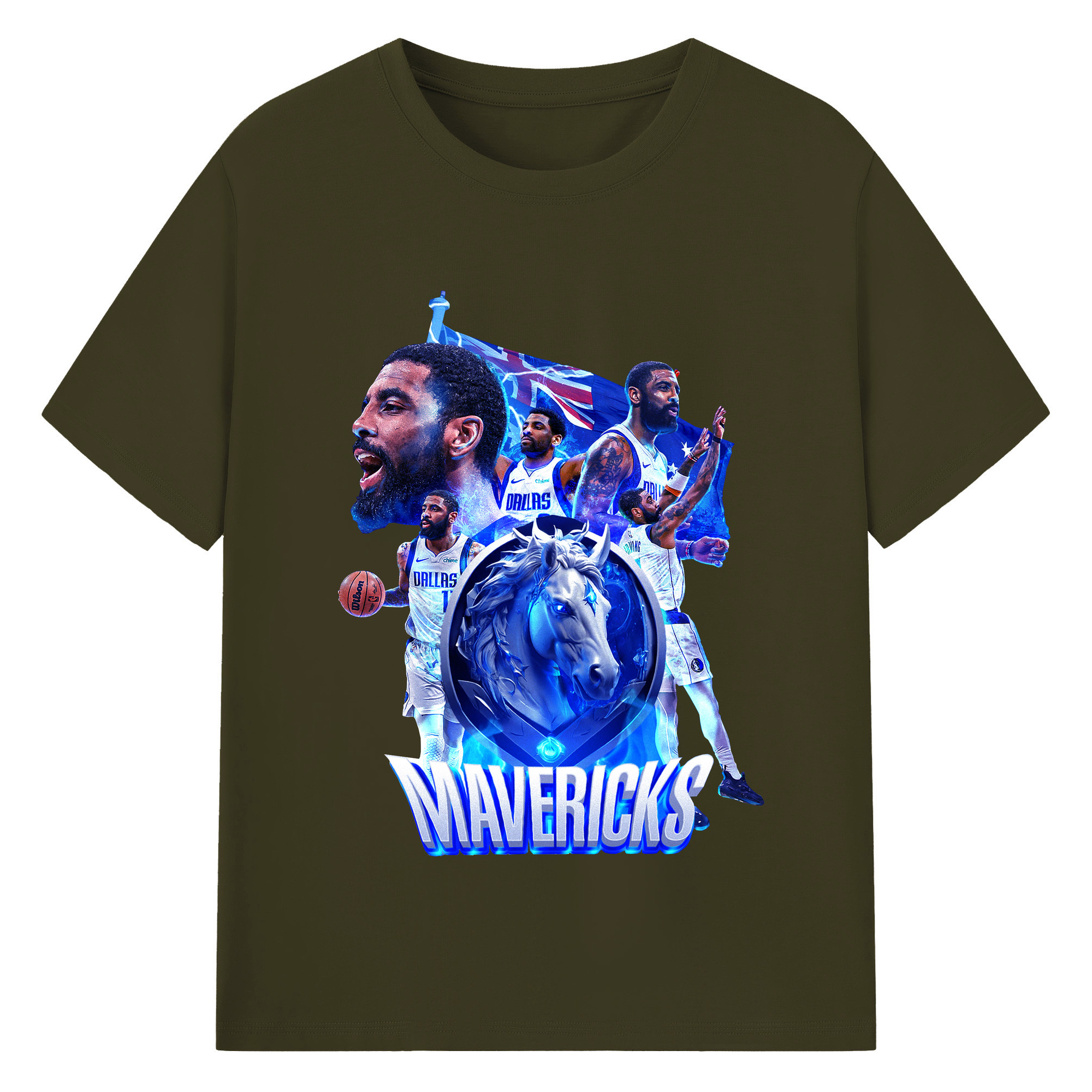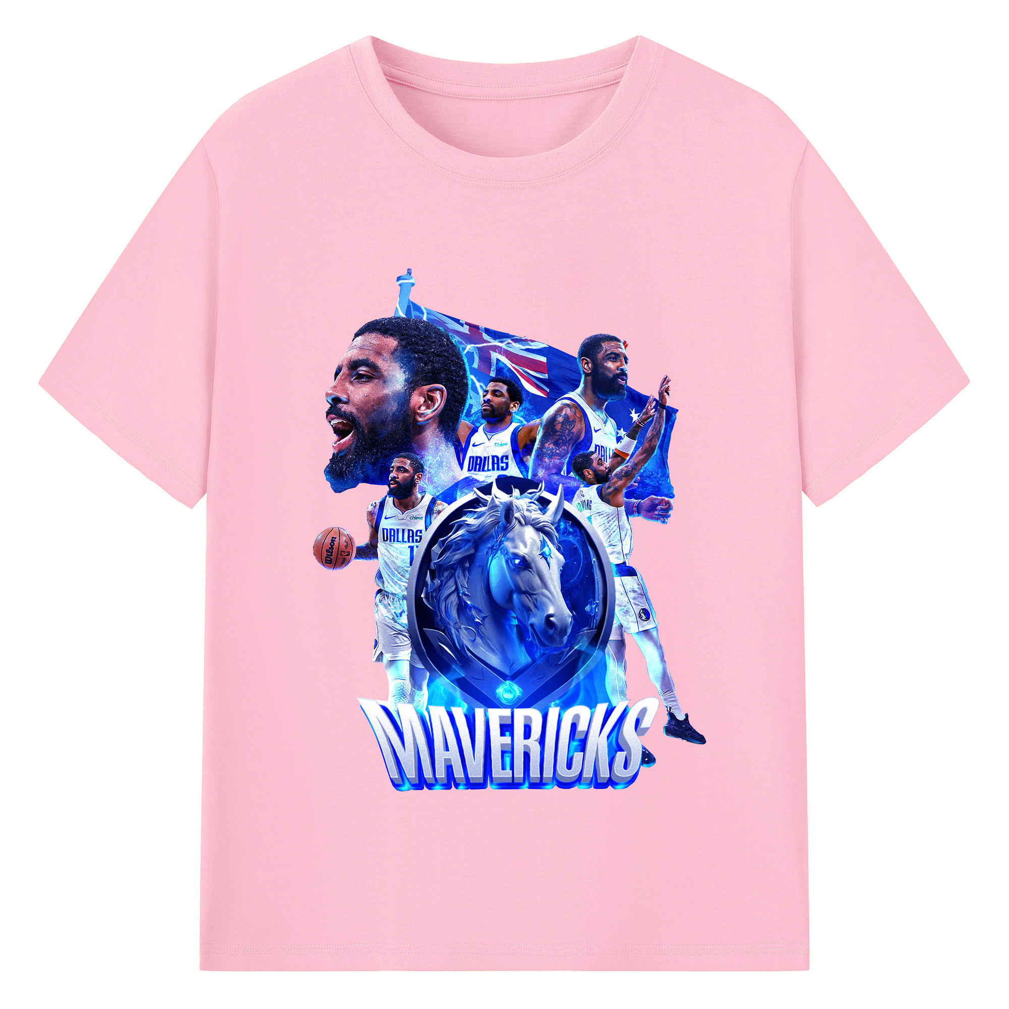 Kyrie Irving Dallas Mavericks 3D team logo POP Shirt - 180g Cotton T-Shirt With Front Heat Transfer Print – Soft, Lightweight, Fitted Design – Comfortable Casual Wear For Sports & Everyday Use