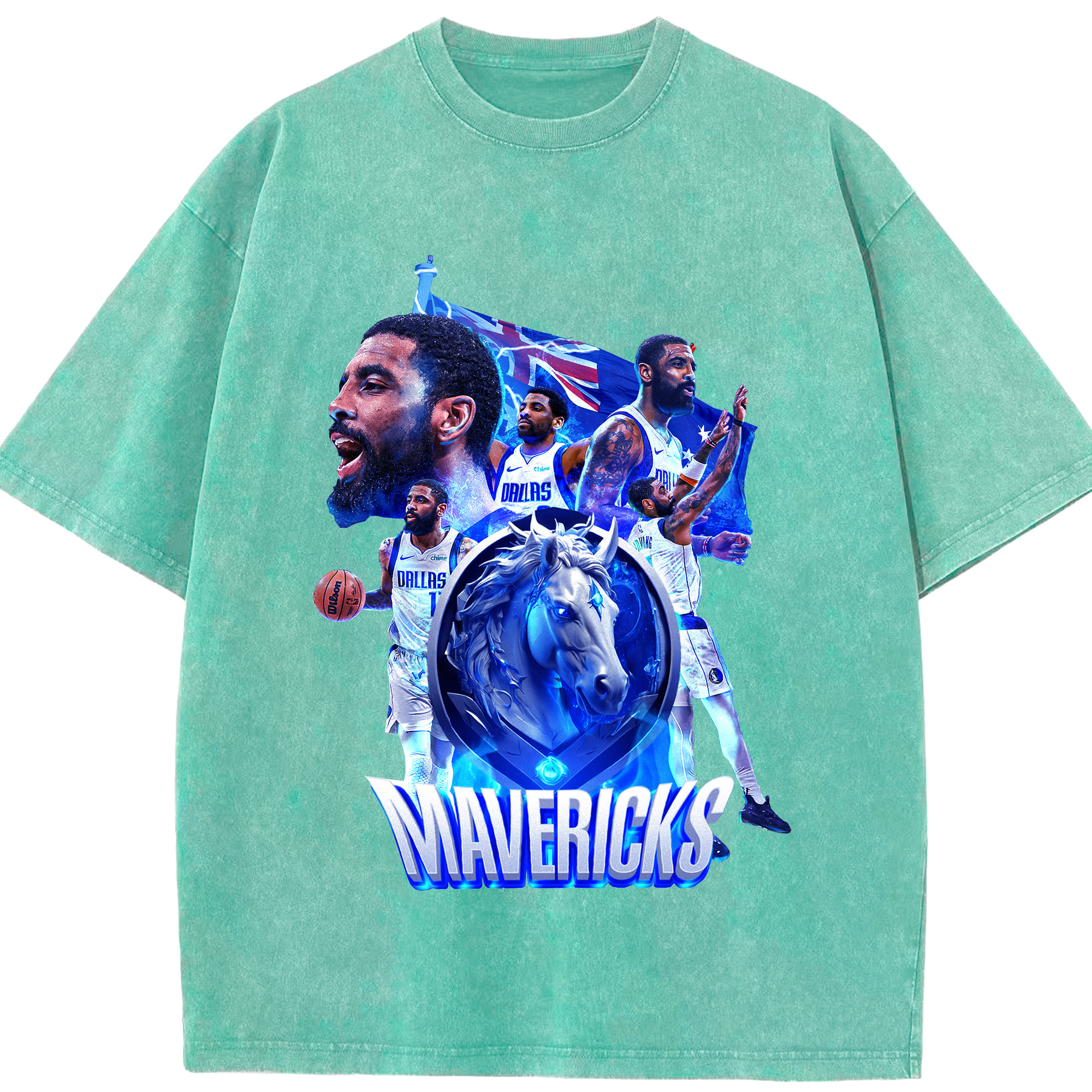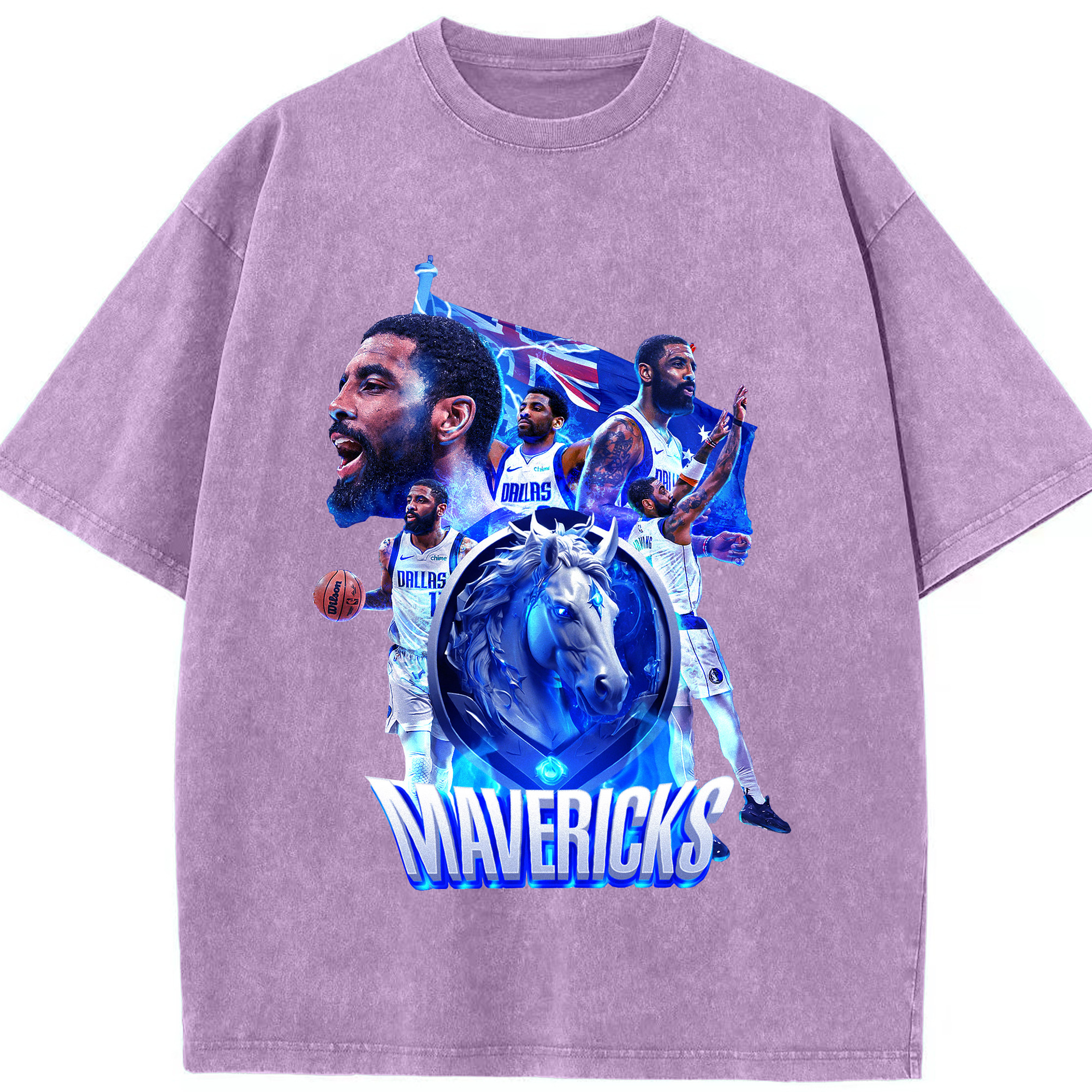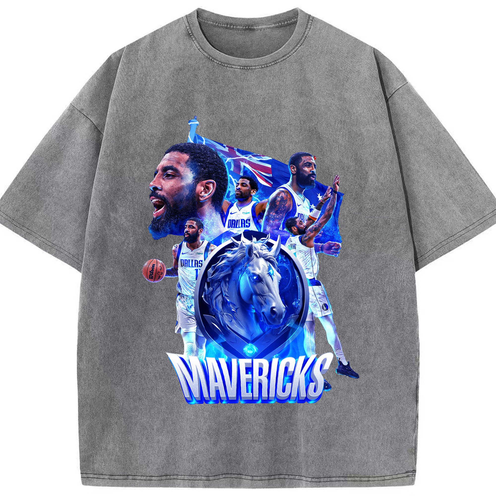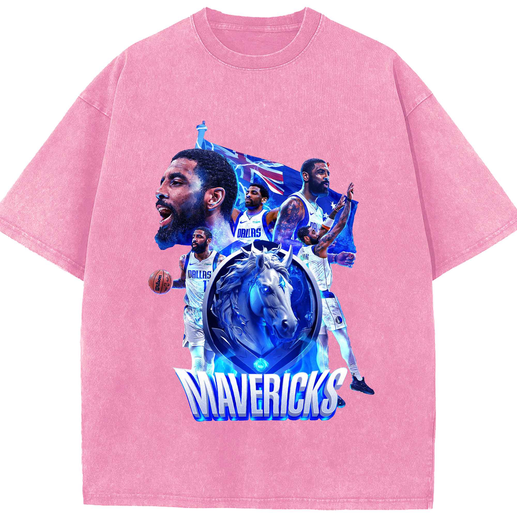 Kyrie Irving Dallas Mavericks 3D team logo POP Shirt - Washed Vintage Look 230g Cotton Oversized T-Shirt With Front Heat Transfer Print – Soft, Lightweight, Stylish Fit – Comfortable Casual Wear For Sports & Everyday Use