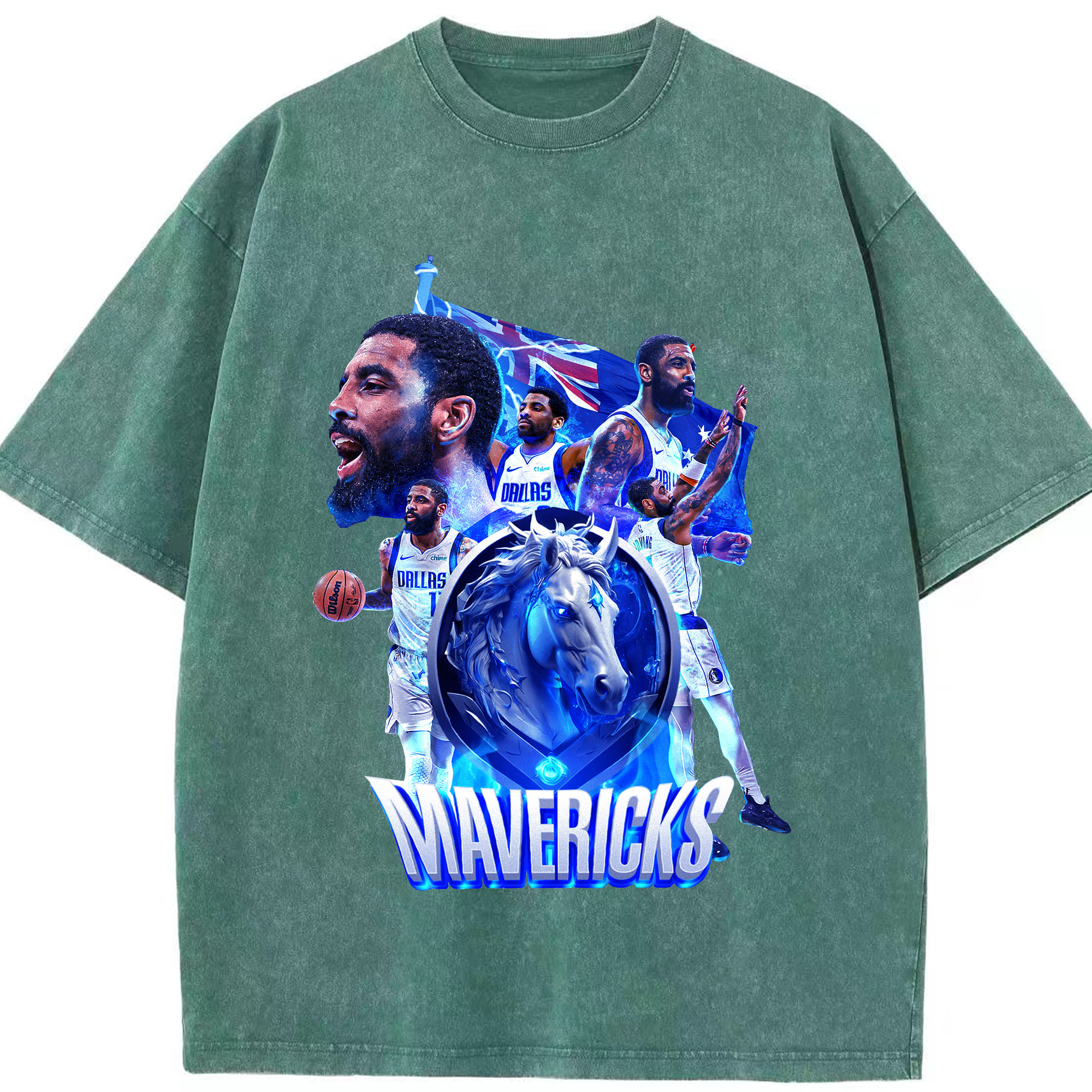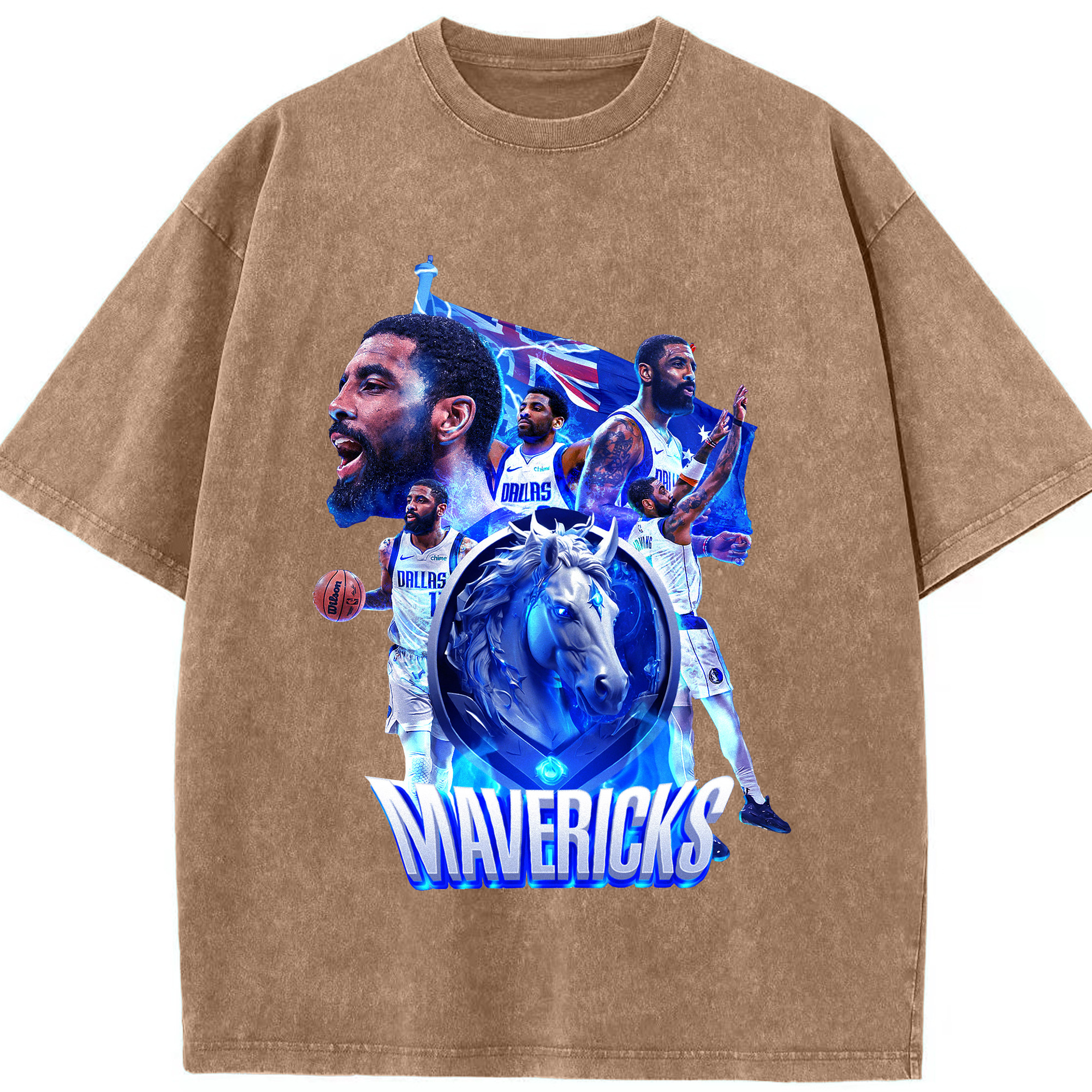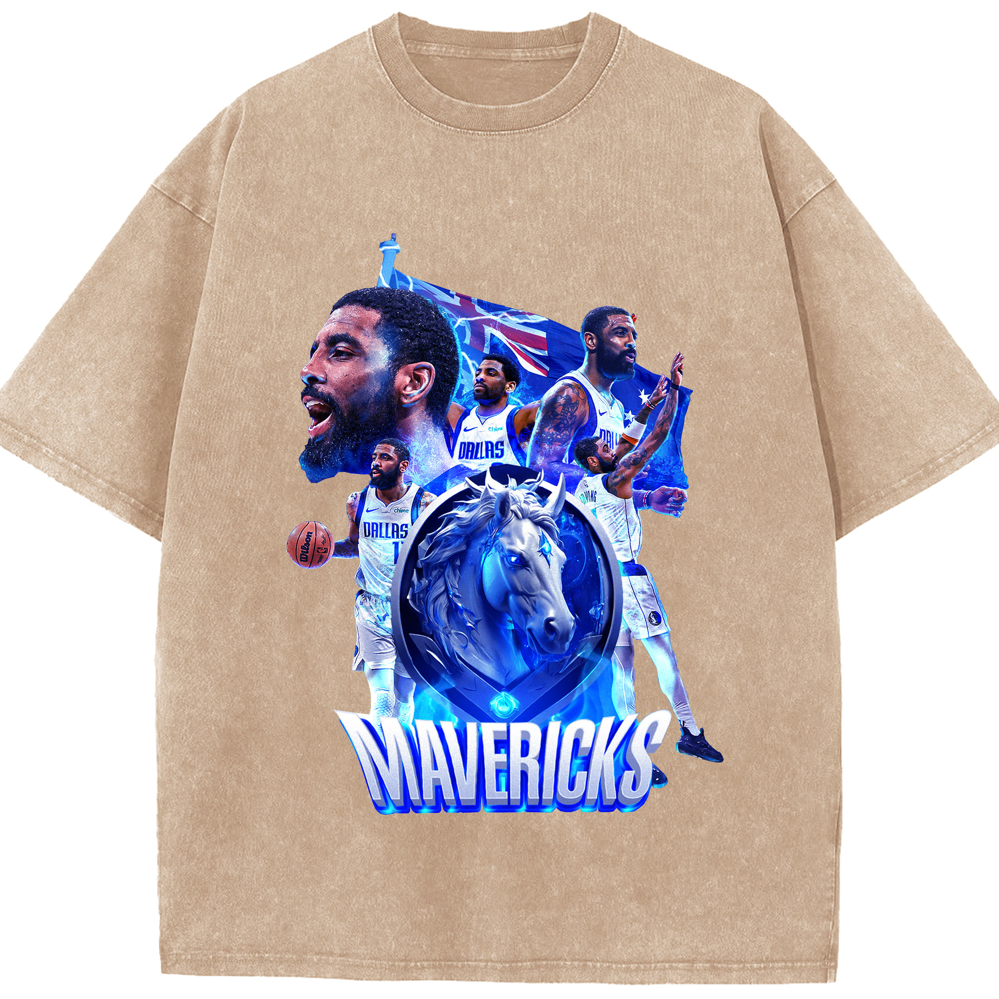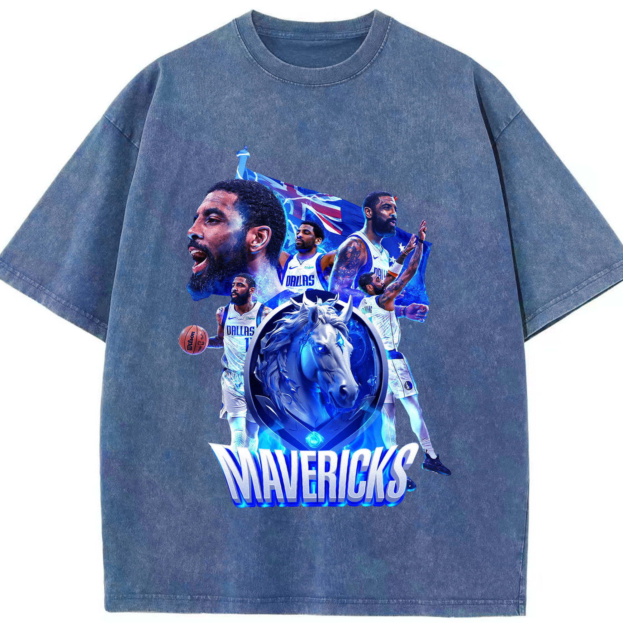 Kyrie Irving Dallas Mavericks 3D team logo POP Shirt - Washed Vintage Look 230g Cotton Oversized T-Shirt With Front Heat Transfer Print – Soft, Lightweight, Stylish Fit – Comfortable Casual Wear For Sports & Everyday Use
