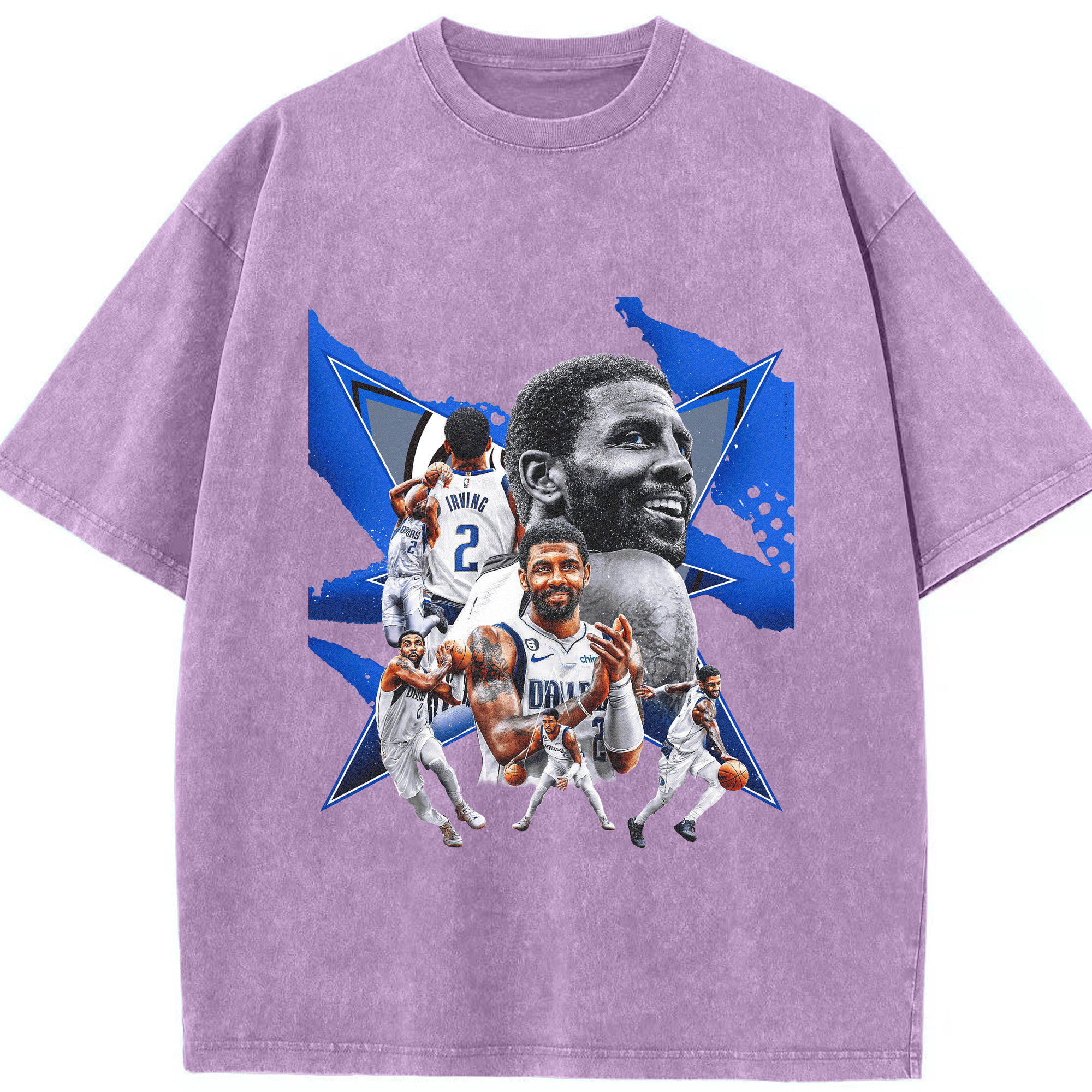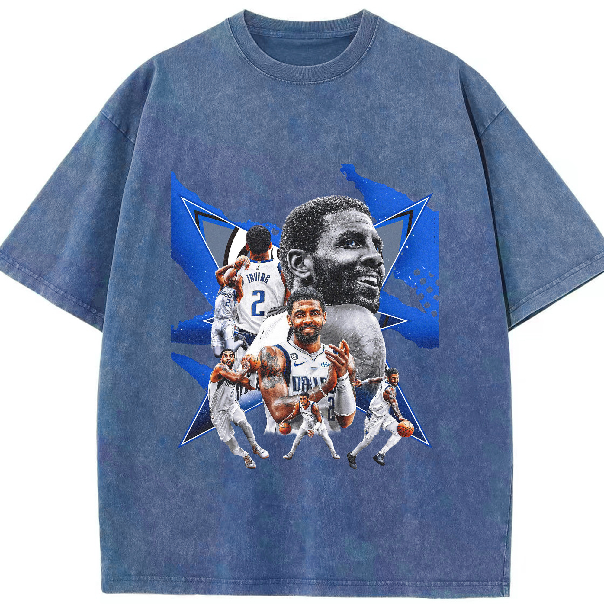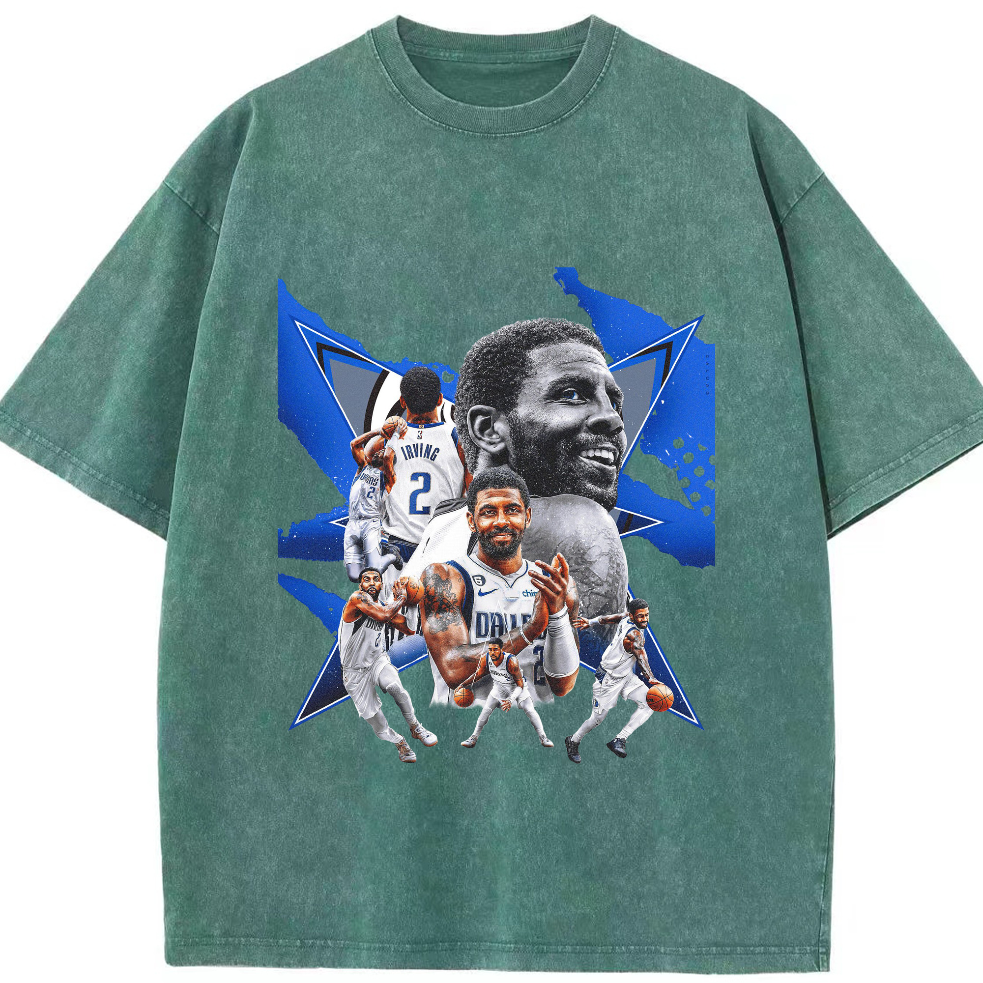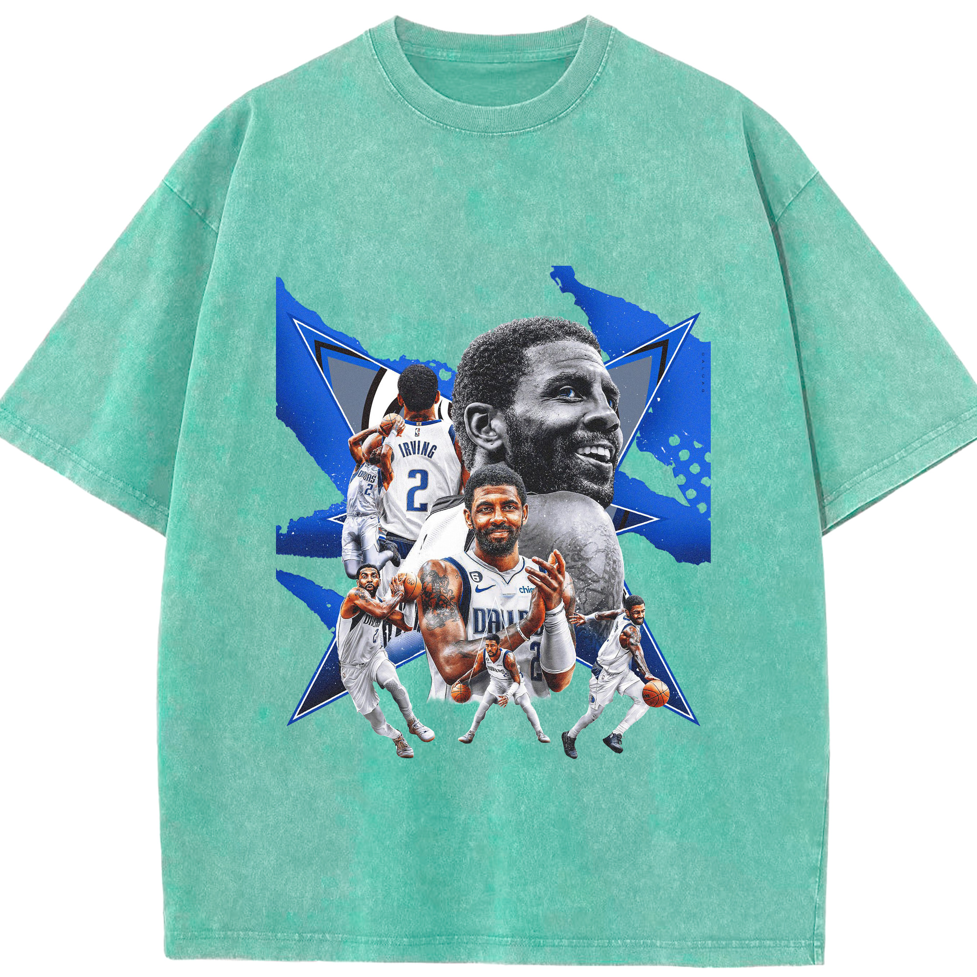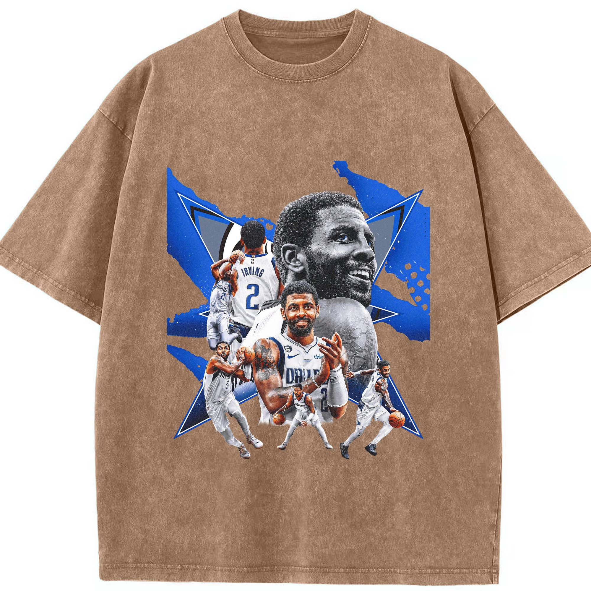 Kyrie Irving Dallas Mavericks Dynamic Basketball Shirt - Washed Vintage Look 230g Cotton Oversized T-Shirt With Front Heat Transfer Print – Soft, Lightweight, Stylish Fit – Comfortable Casual Wear For Sports & Everyday Use