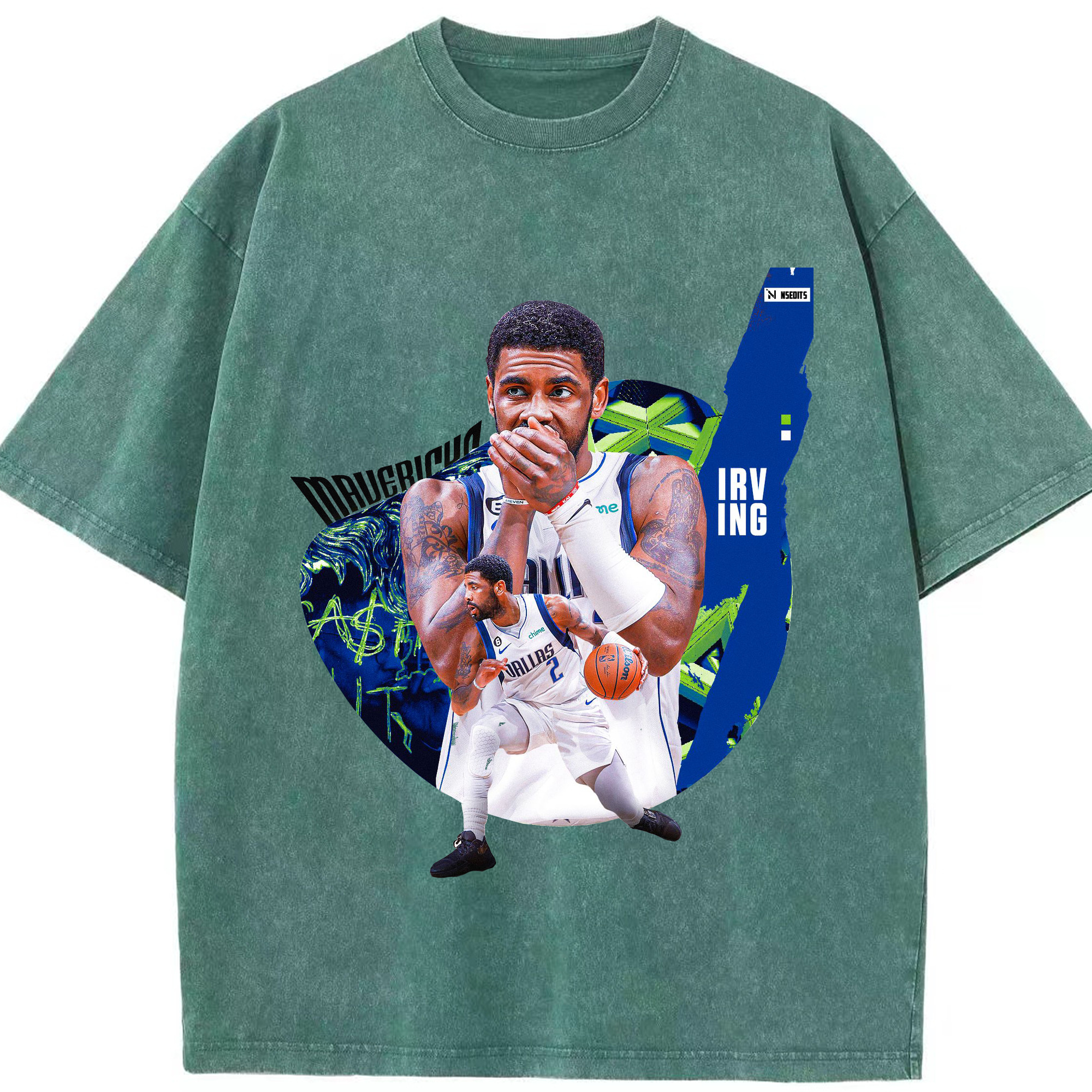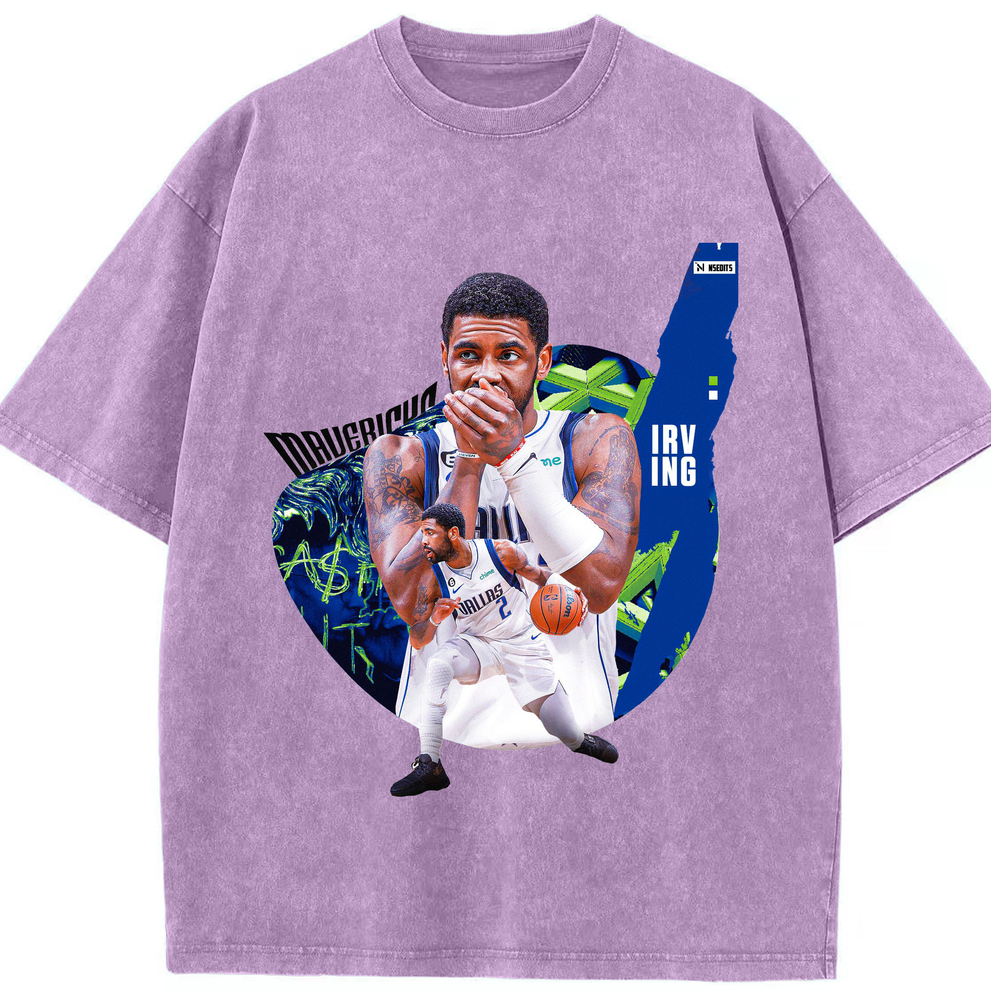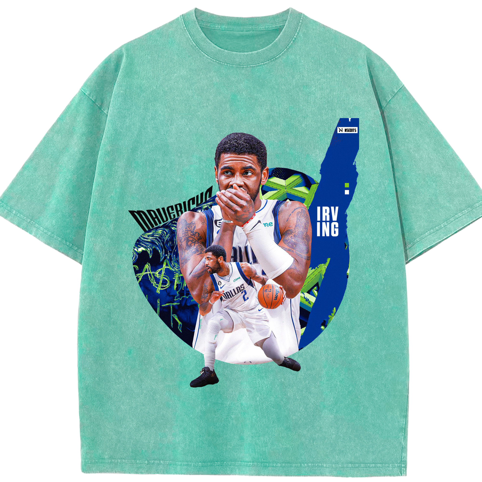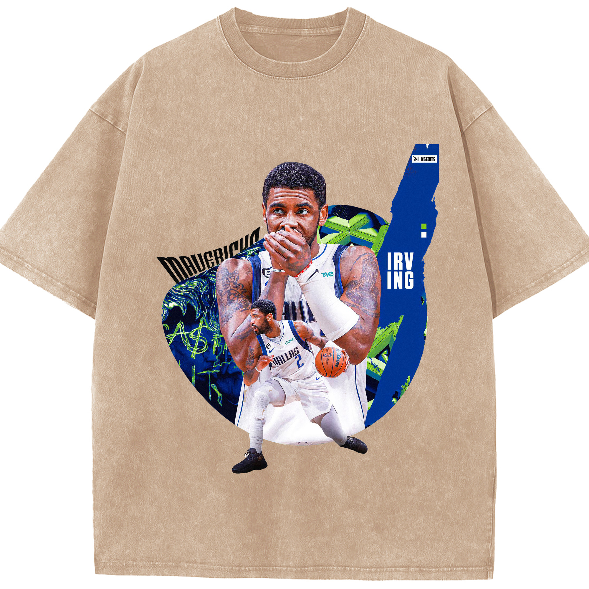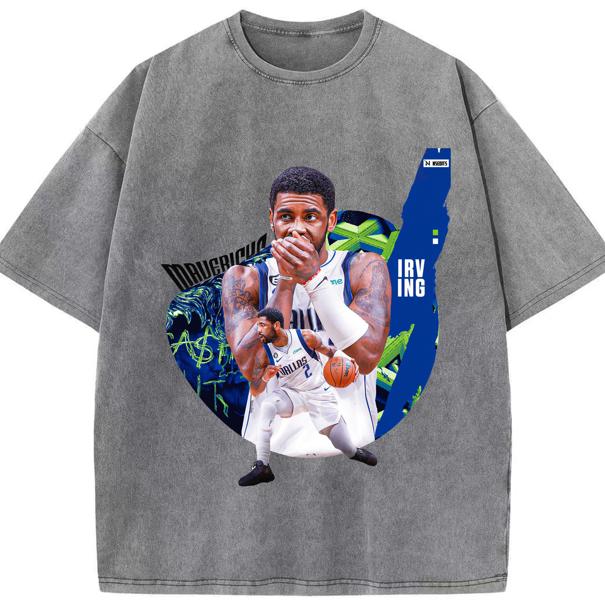 Kyrie Irving Dallas Mavericks Graphic - Washed Vintage Look 230g Cotton Oversized T-Shirt With Front Heat Transfer Print – Soft, Lightweight, Stylish Fit – Comfortable Casual Wear For Sports & Everyday Use