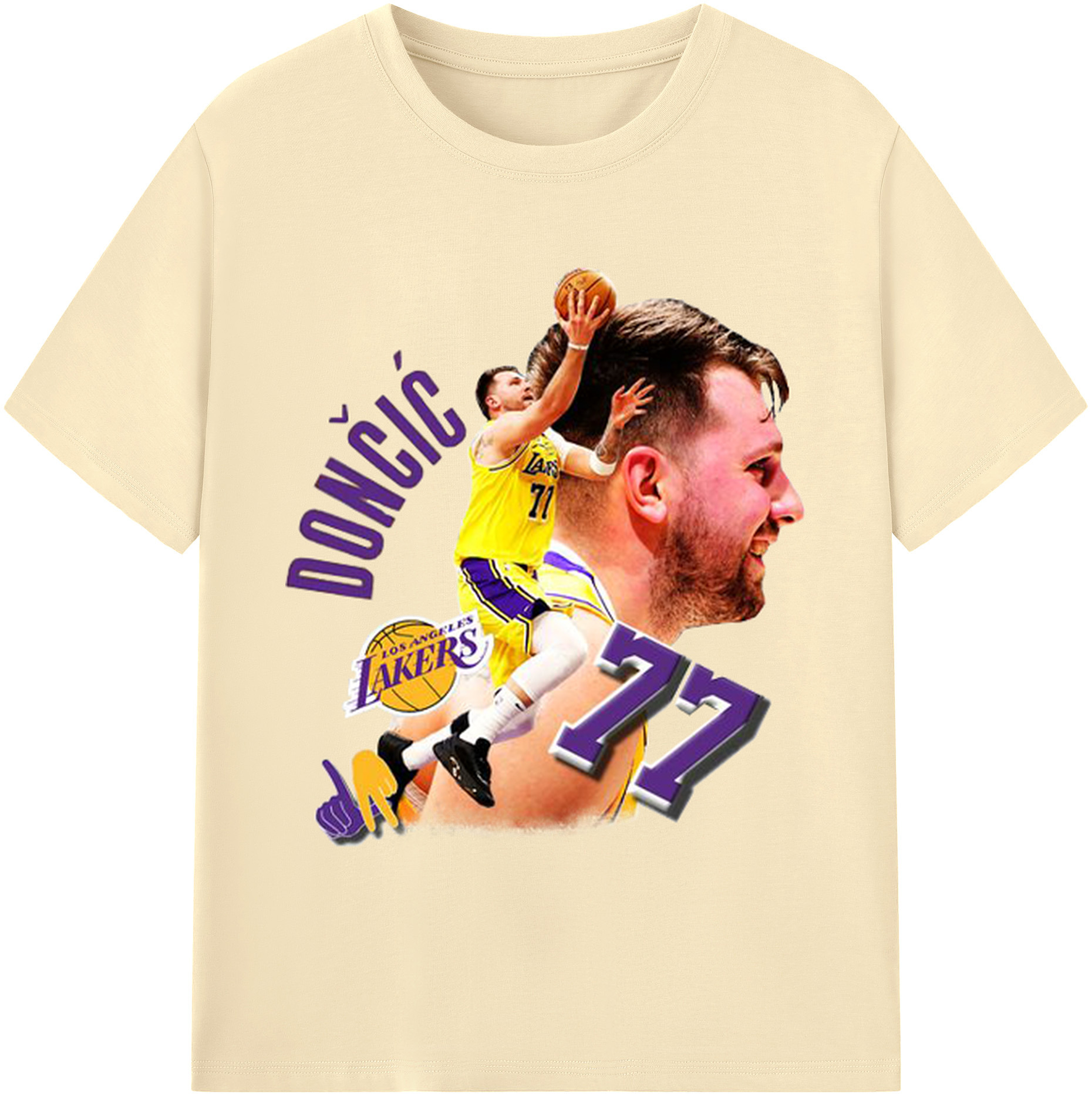 Lakers Luka’s Playmaking Shirt - 180g Cotton T-Shirt With Front Heat Transfer Print – Soft, Lightweight, Fitted Design – Comfortable Casual Wear For Sports & Everyday Use