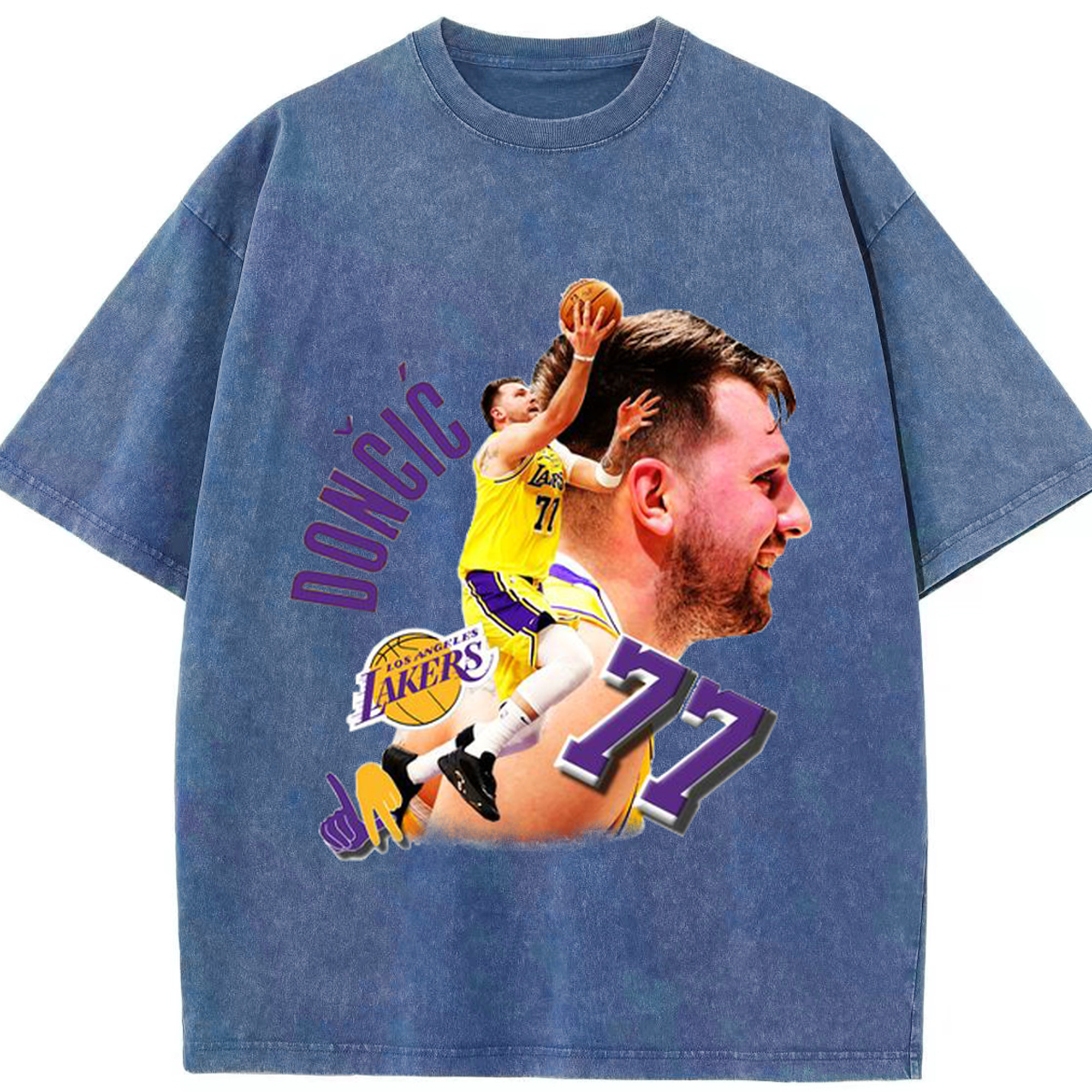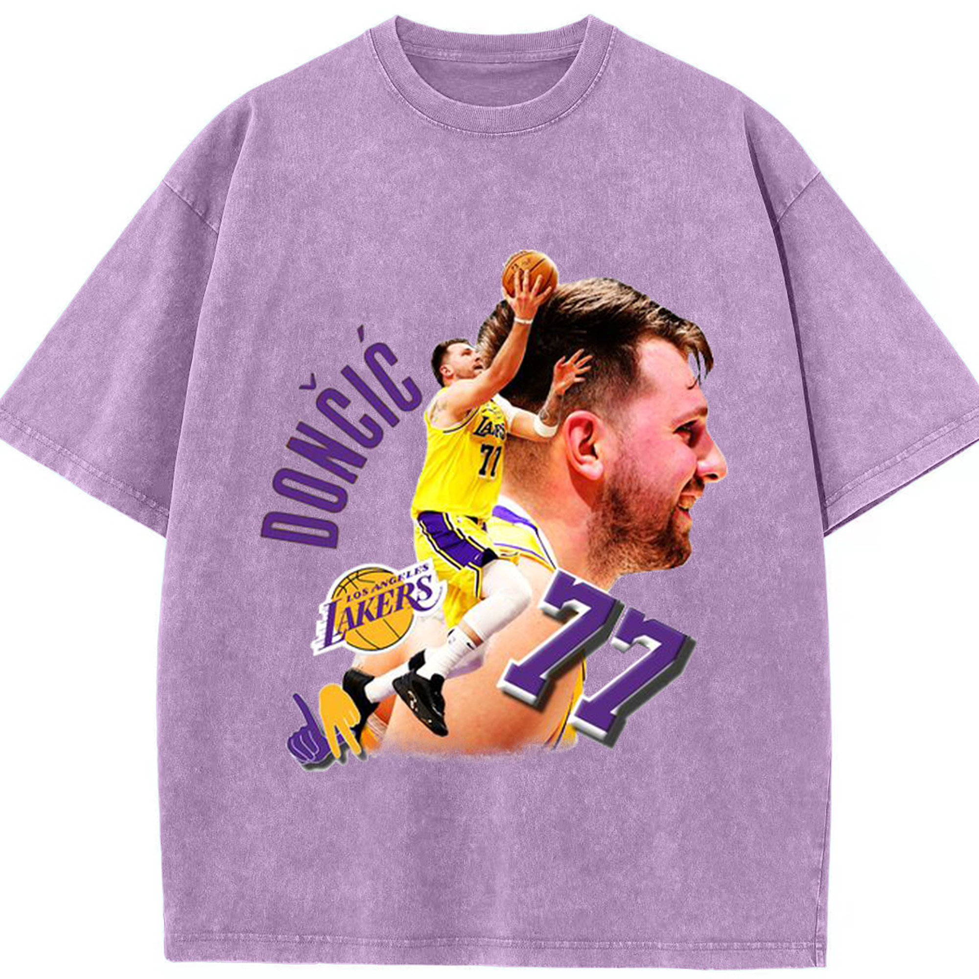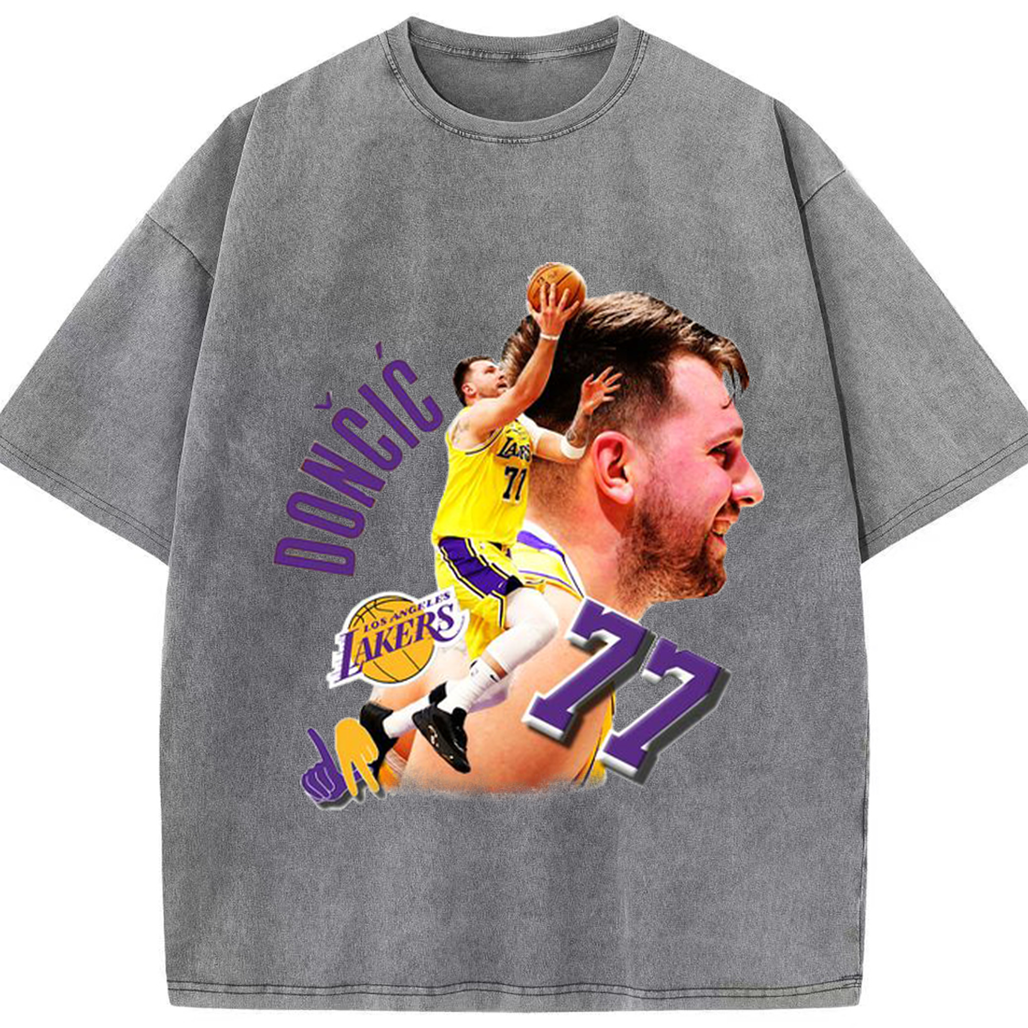 Lakers Luka’s Playmaking Shirt - Washed Vintage Look 230g Cotton Oversized T-Shirt With Front Heat Transfer Print – Soft, Lightweight, Stylish Fit – Comfortable Casual Wear For Sports & Everyday Use