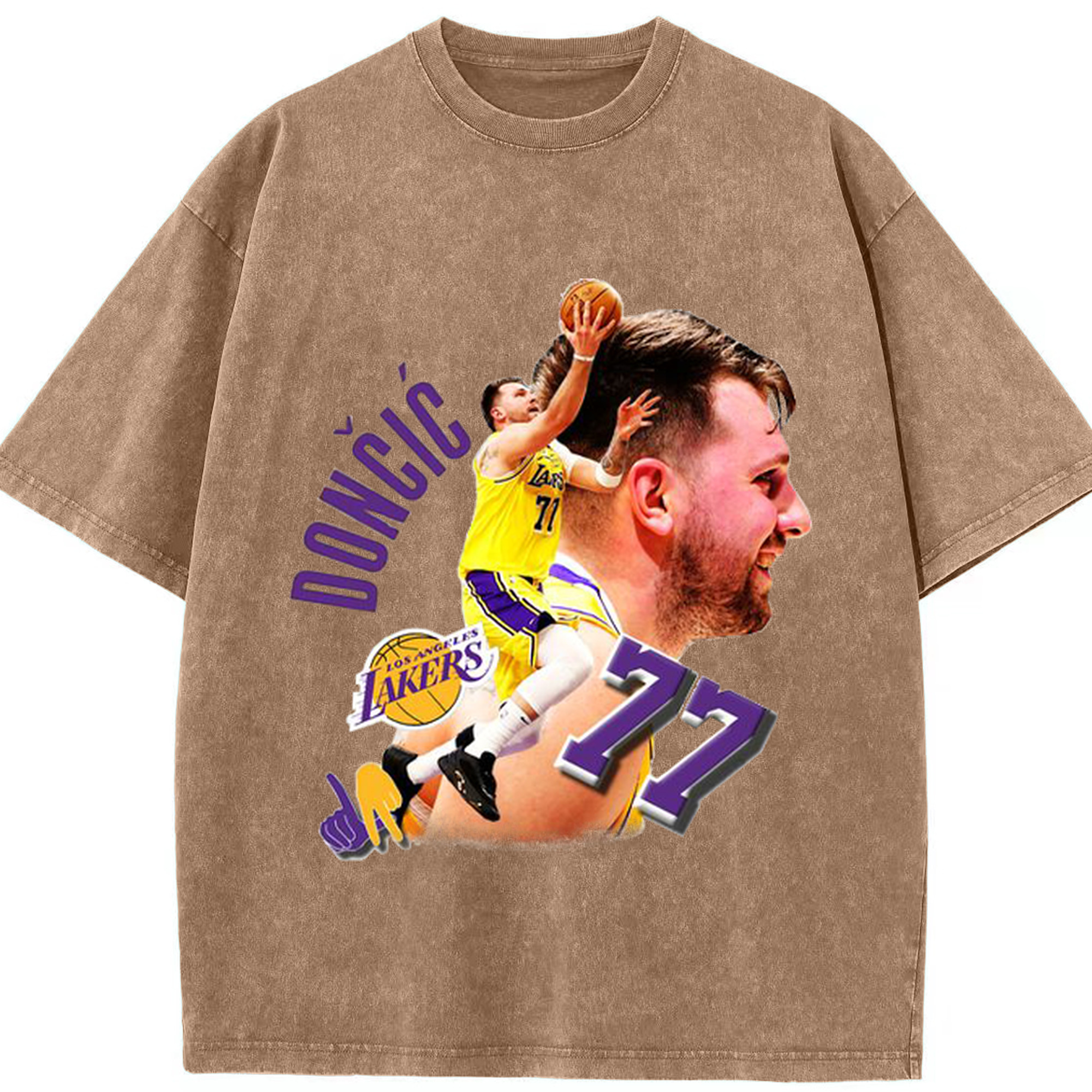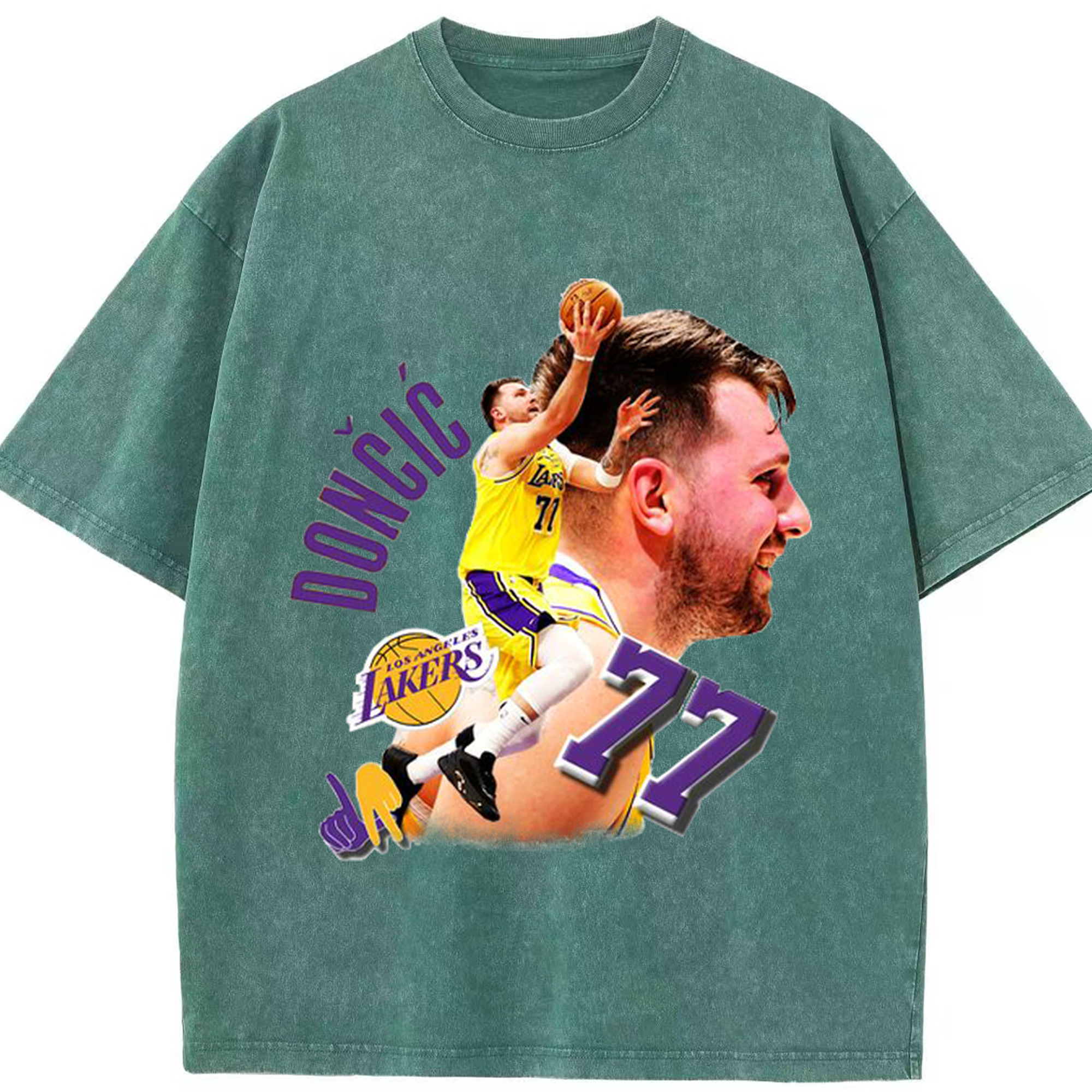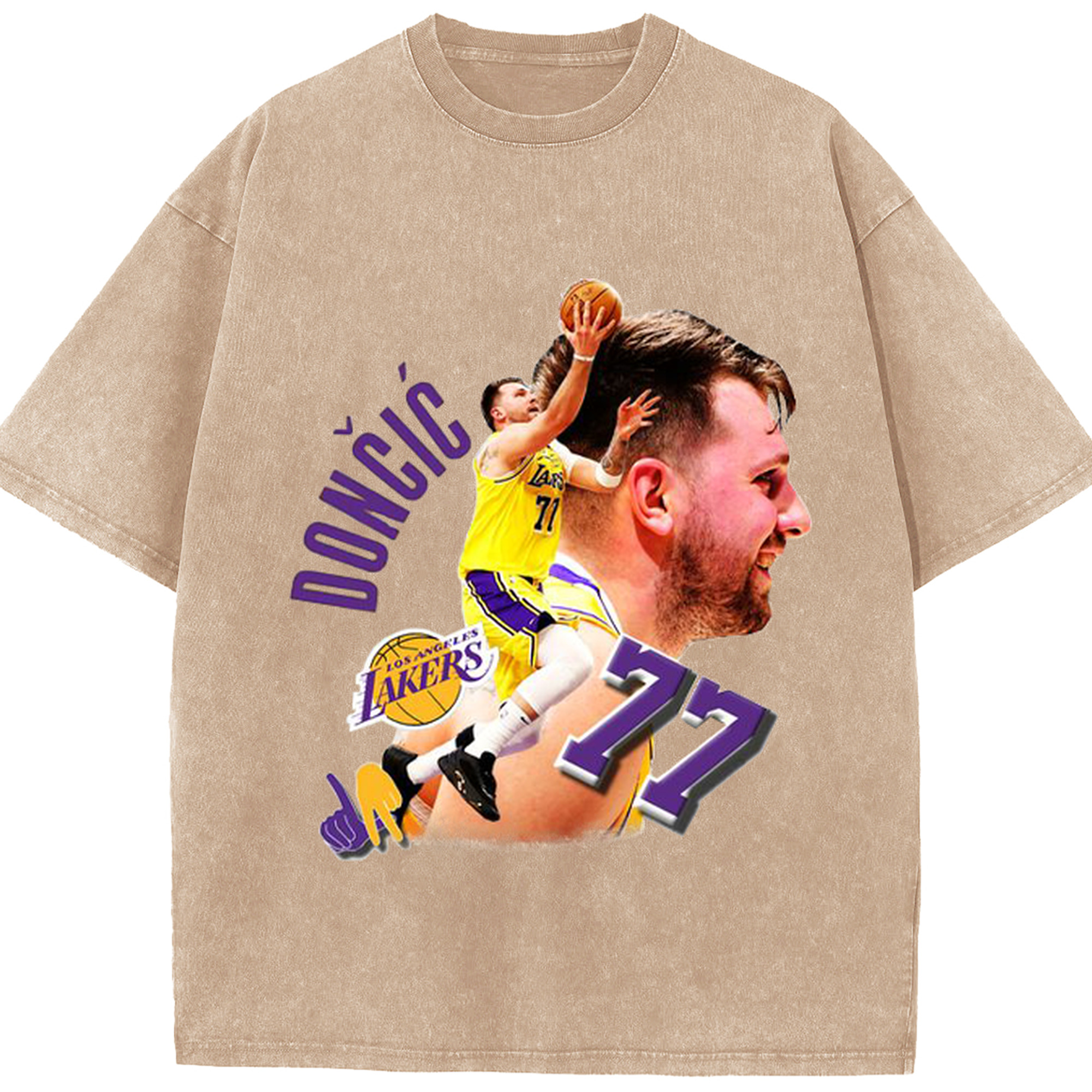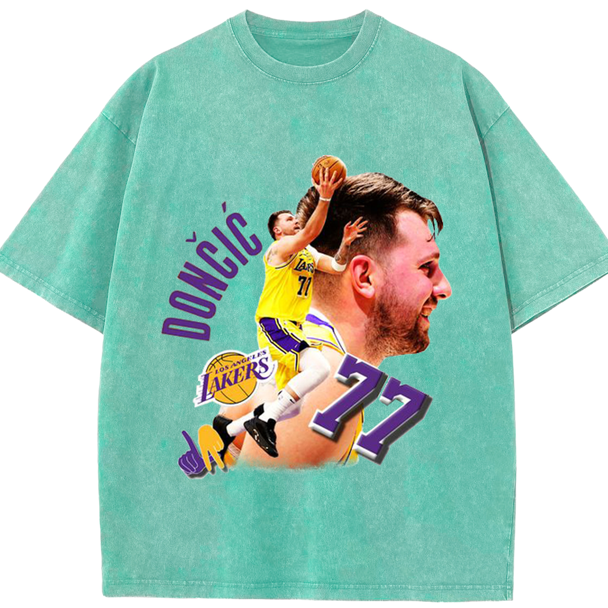 Lakers Luka’s Playmaking Shirt - Washed Vintage Look 230g Cotton Oversized T-Shirt With Front Heat Transfer Print – Soft, Lightweight, Stylish Fit – Comfortable Casual Wear For Sports & Everyday Use