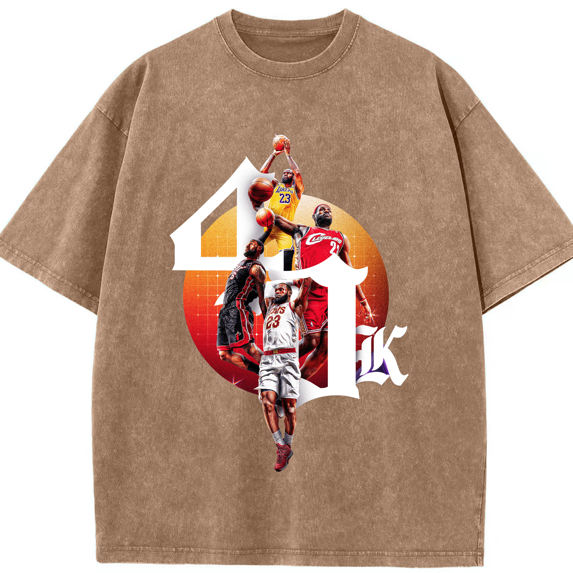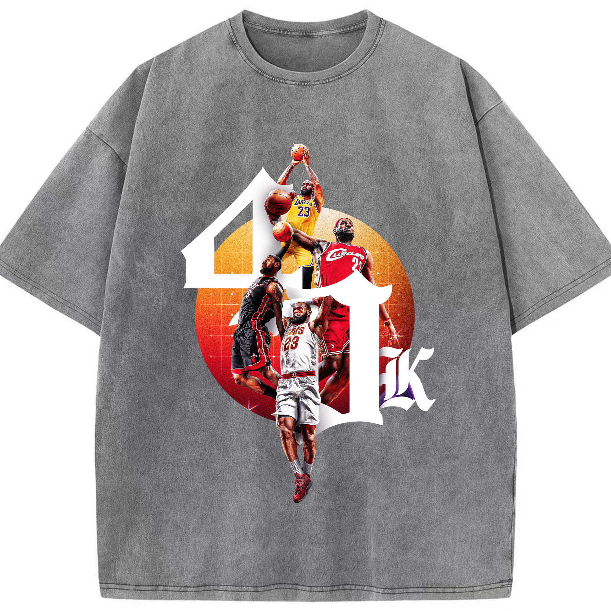 LeBron James 4 teams achieved 40,000 points Shirt - Washed Vintage Look 230g Cotton Oversized T-Shirt With Front Heat Transfer Print – Soft, Lightweight, Stylish Fit – Comfortable Casual Wear For Sports & Everyday Use
