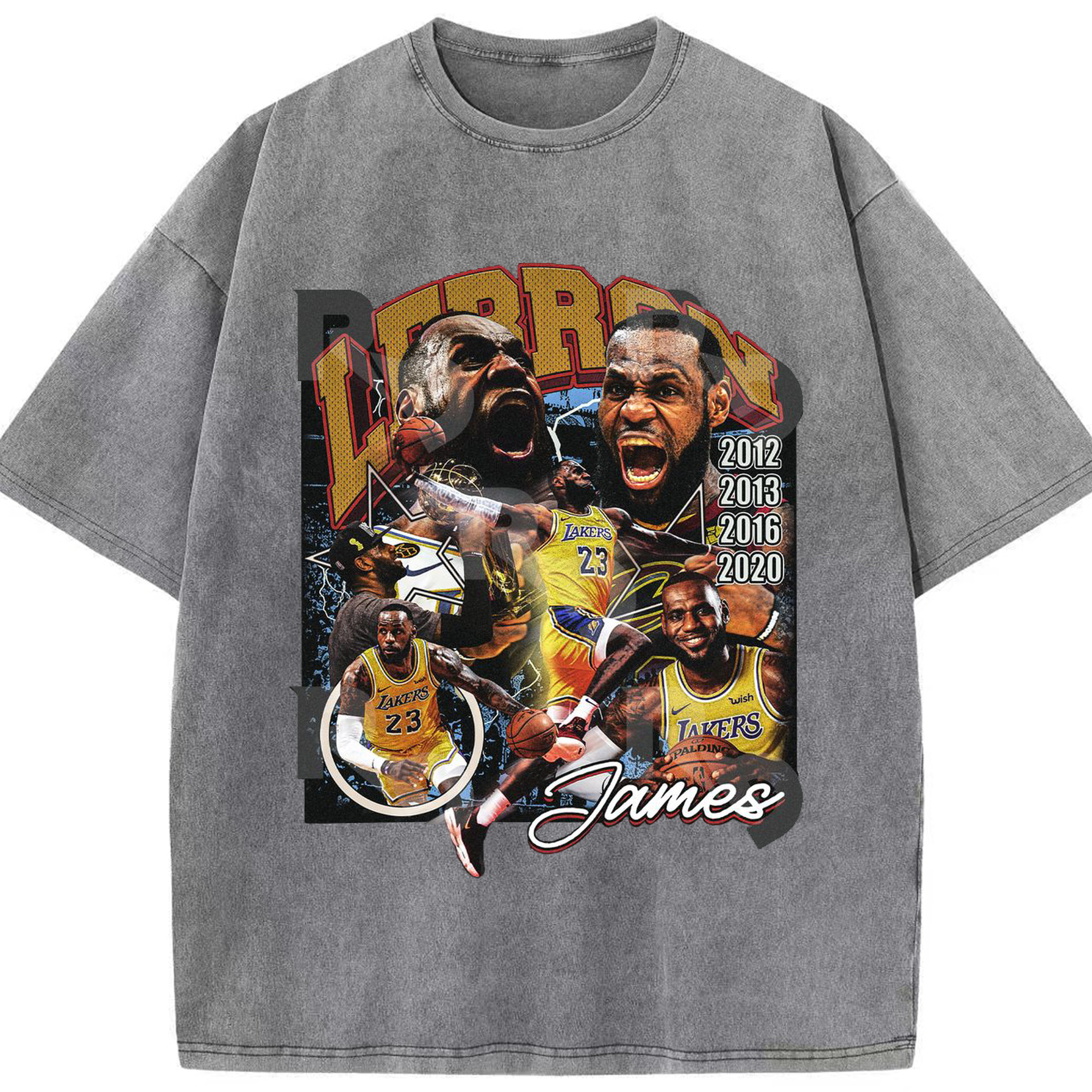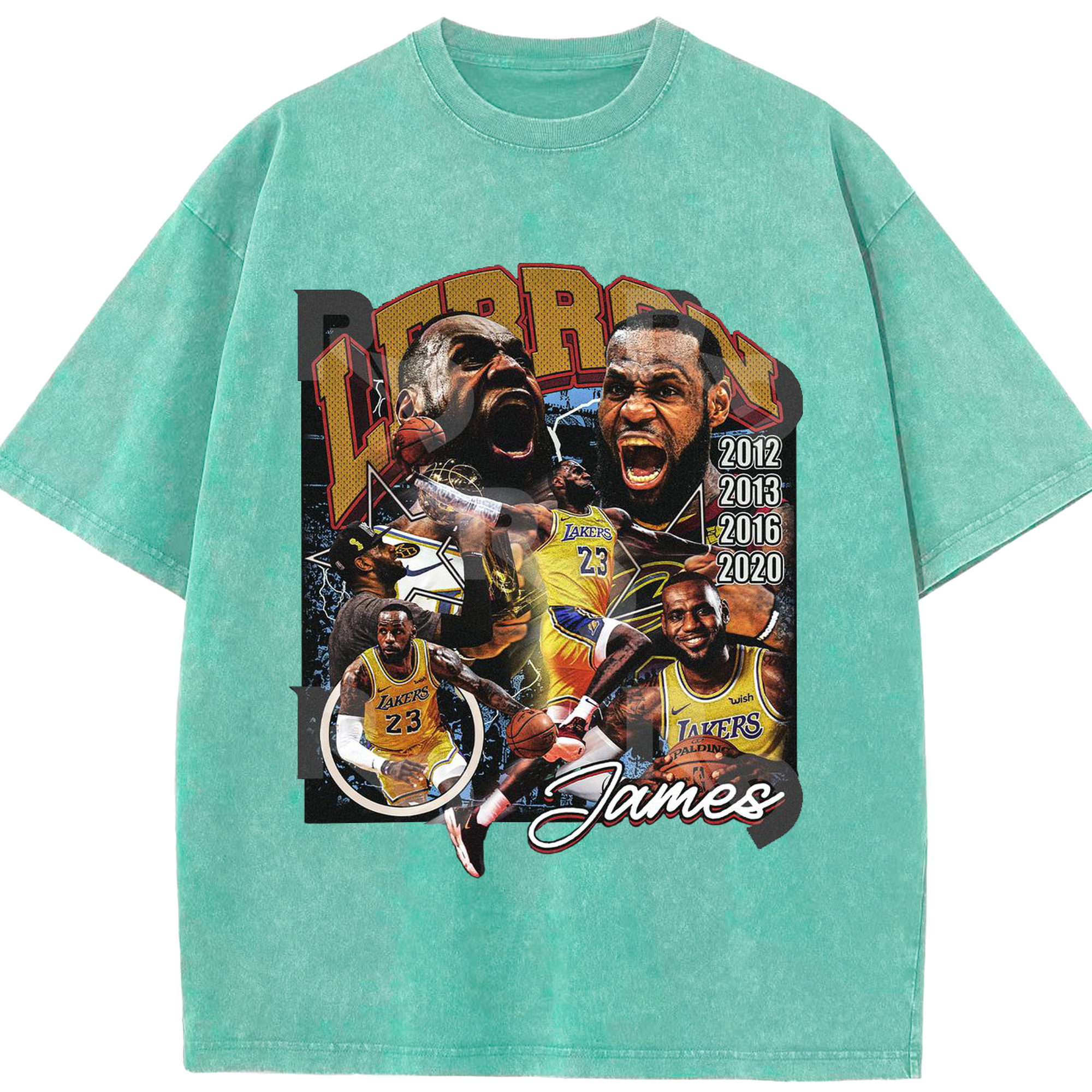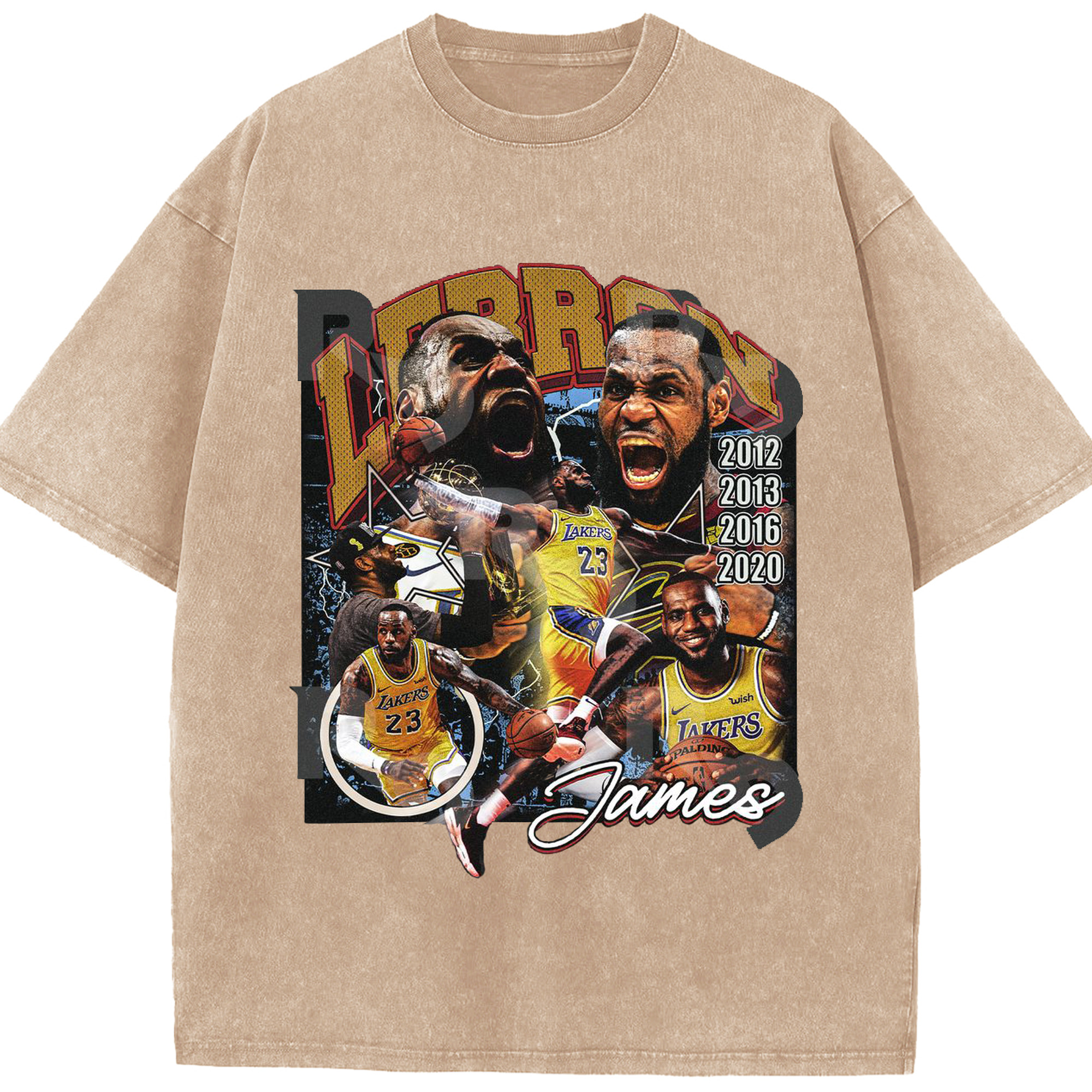 LeBron James Championship Journey Shirt - Washed Vintage Look 230g Cotton Oversized T-Shirt With Front Heat Transfer Print – Soft, Lightweight, Stylish Fit – Comfortable Casual Wear For Sports & Everyday Use