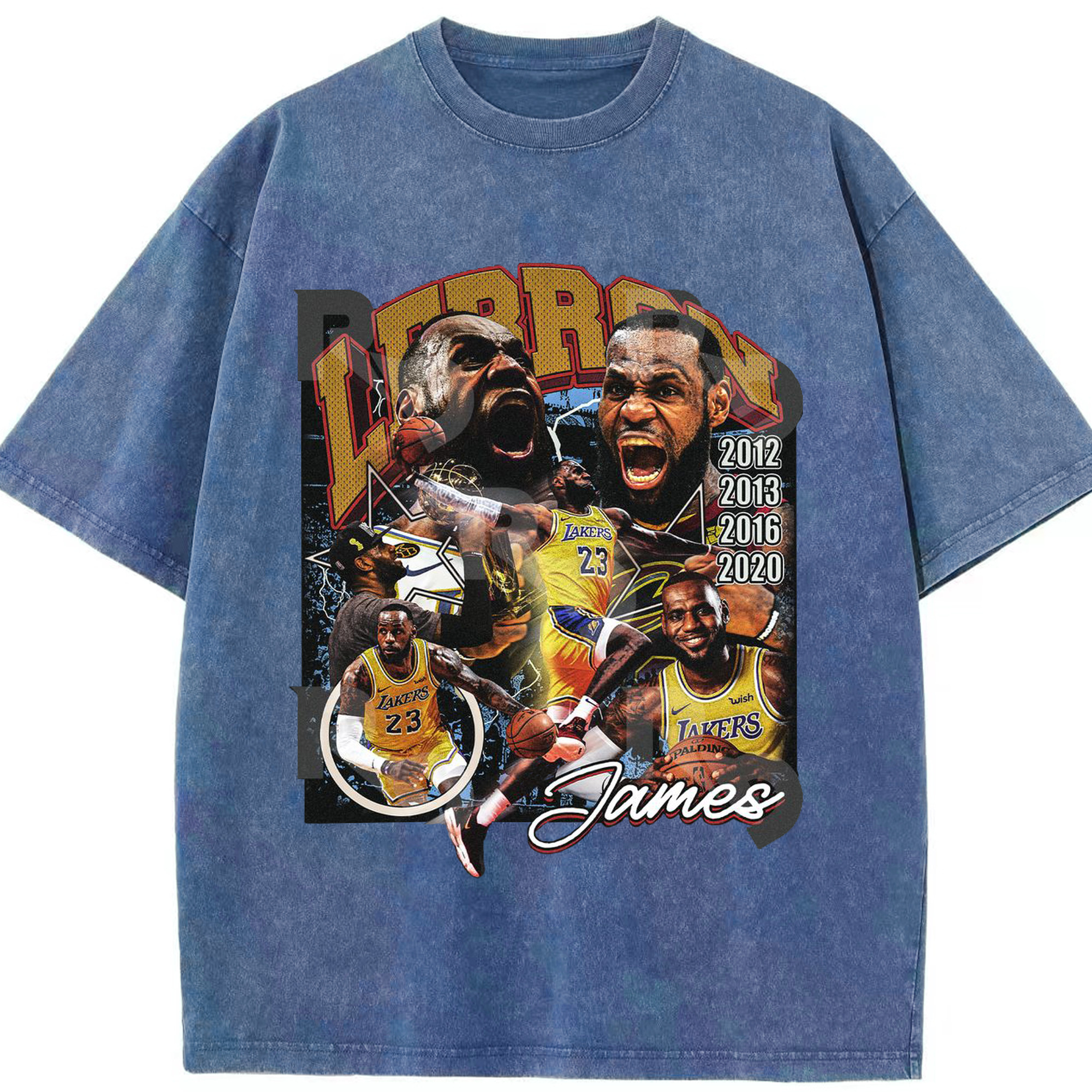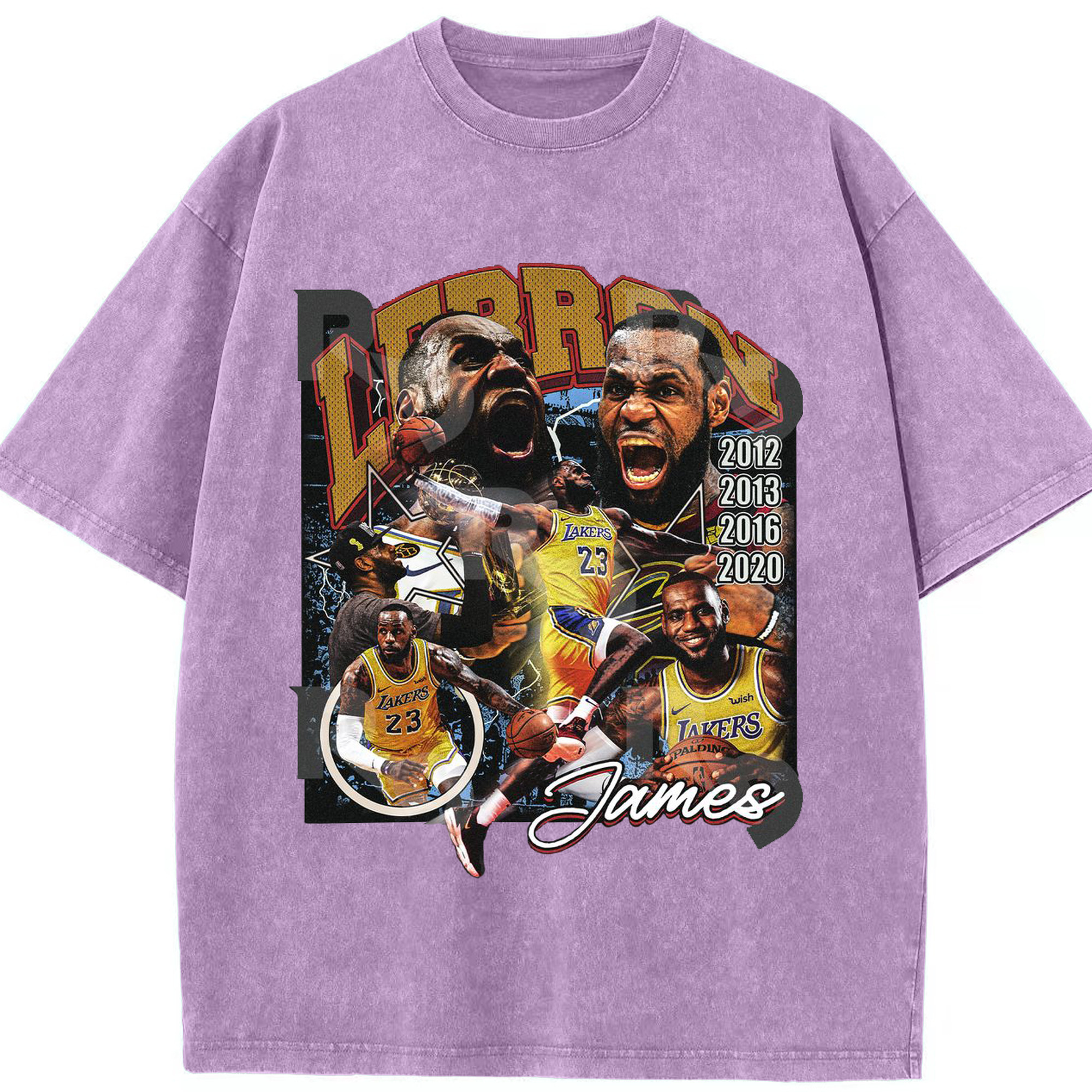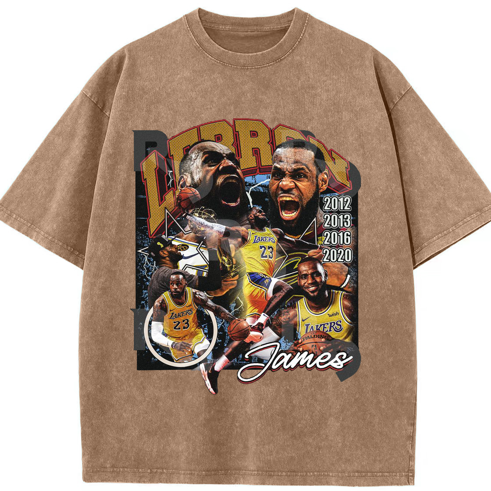 LeBron James Championship Journey Shirt - Washed Vintage Look 230g Cotton Oversized T-Shirt With Front Heat Transfer Print – Soft, Lightweight, Stylish Fit – Comfortable Casual Wear For Sports & Everyday Use