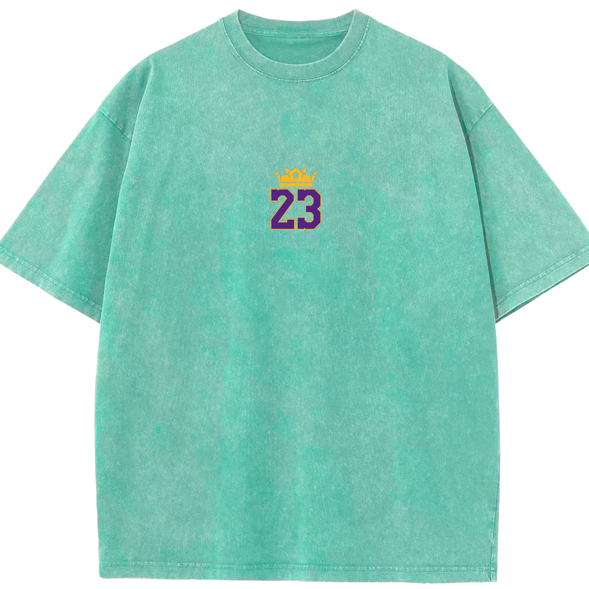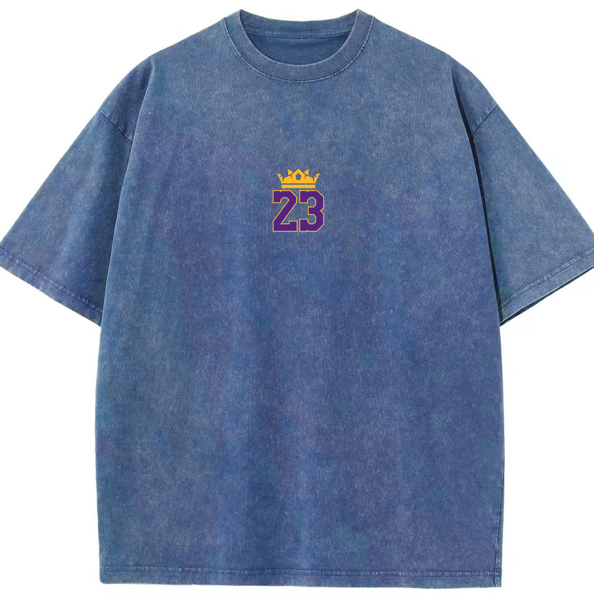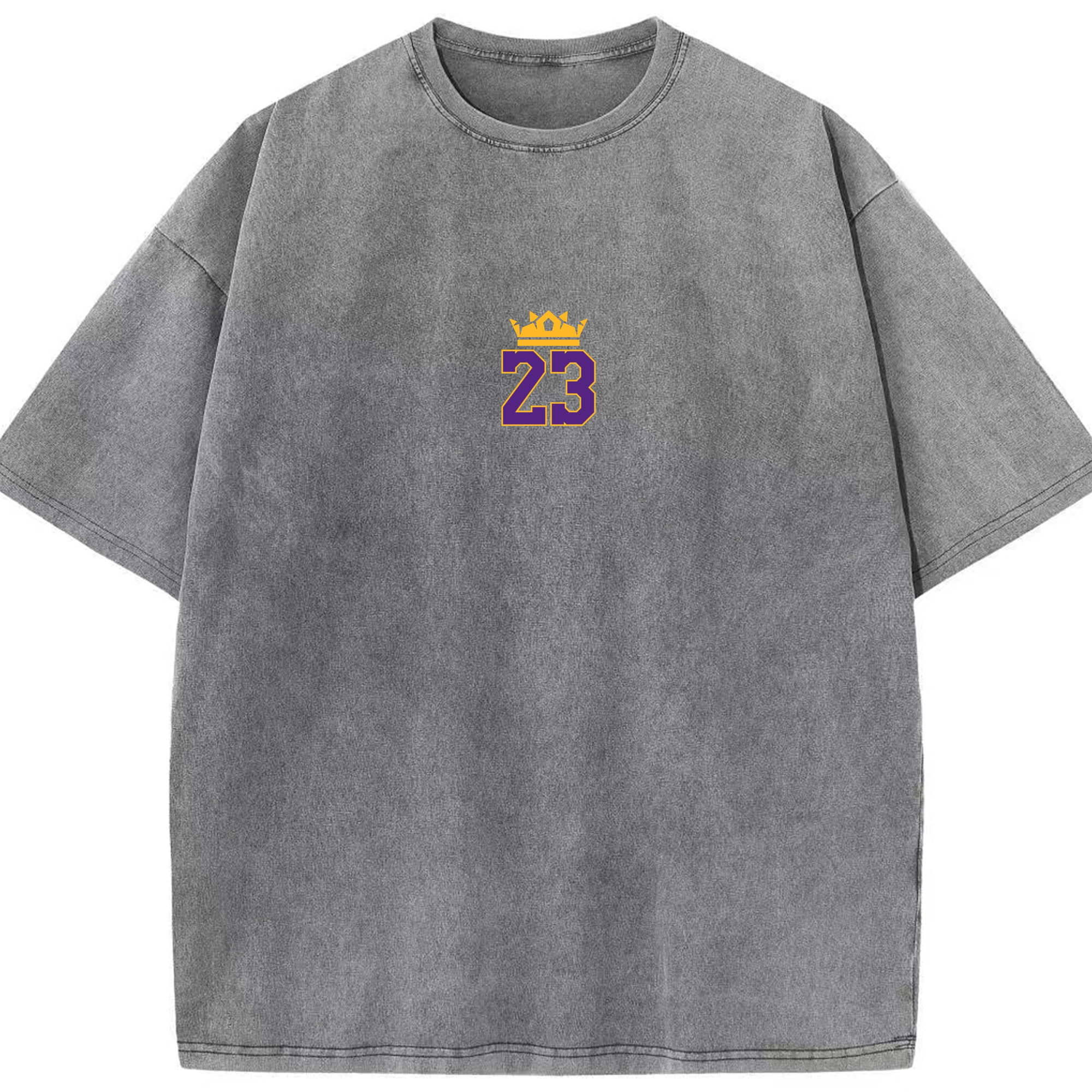 LeBron James crown&23 Logo Shirt - Washed Vintage Look 230g Cotton Oversized T-Shirt With Front Heat Transfer Print – Soft, Lightweight, Stylish Fit – Comfortable Casual Wear For Sports & Everyday Use