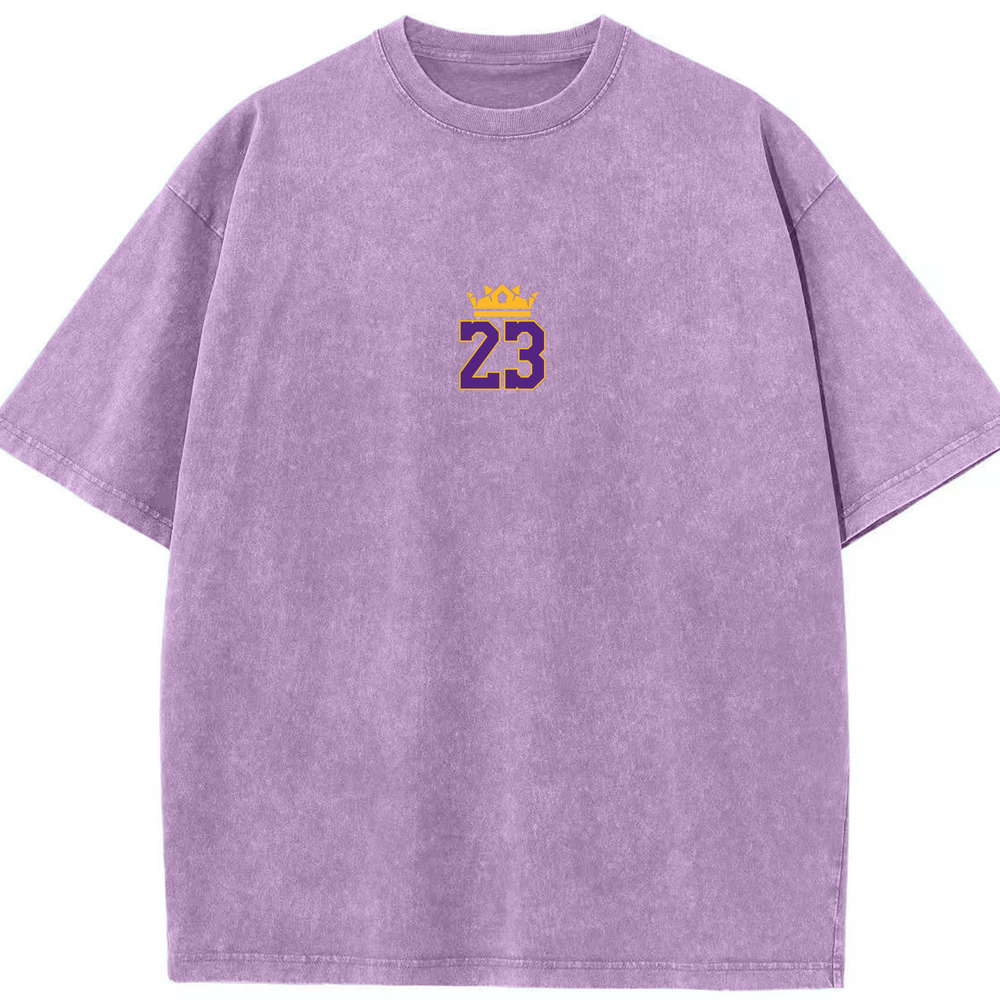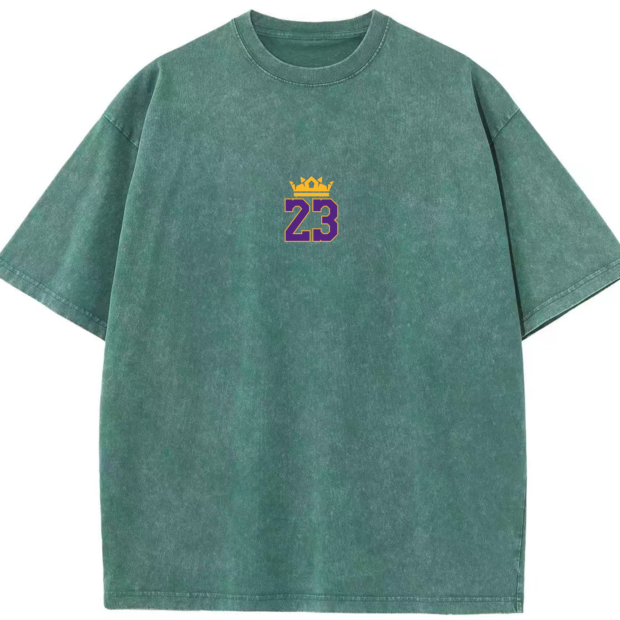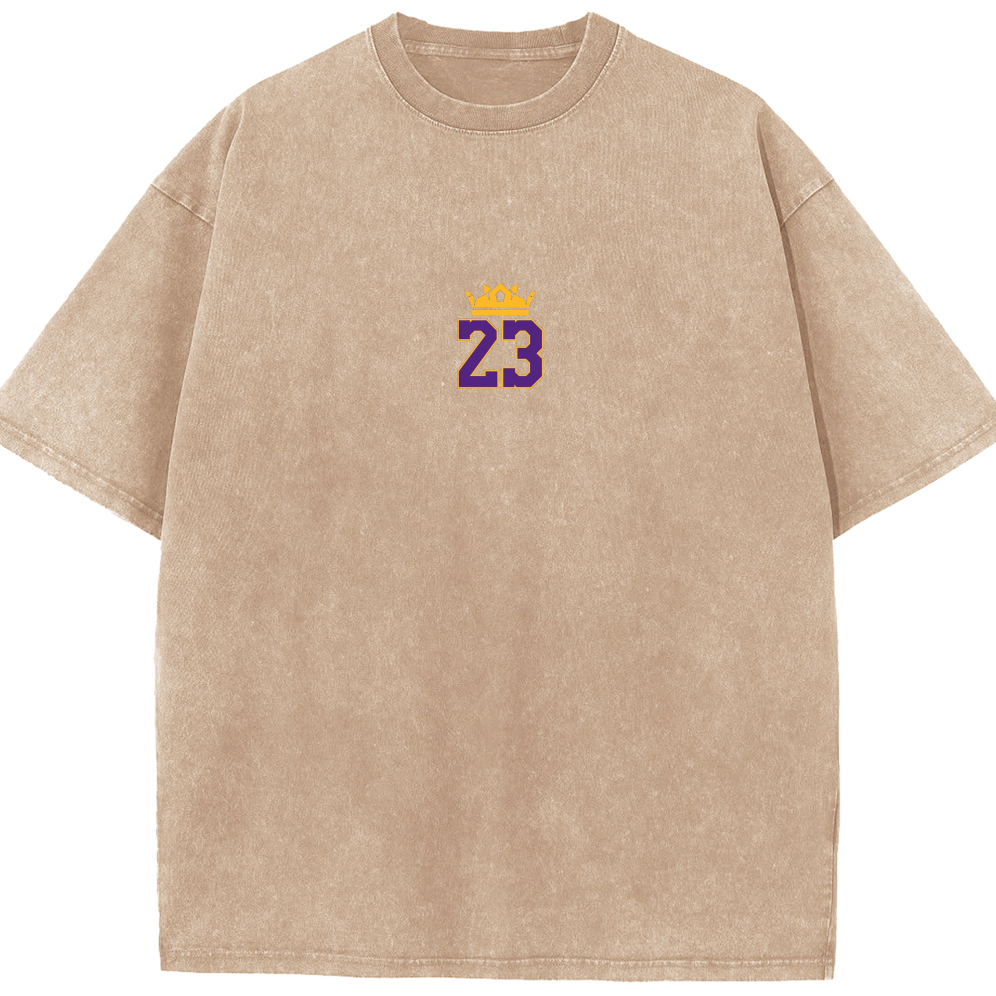 LeBron James crown&23 Logo Shirt - Washed Vintage Look 230g Cotton Oversized T-Shirt With Front Heat Transfer Print – Soft, Lightweight, Stylish Fit – Comfortable Casual Wear For Sports & Everyday Use