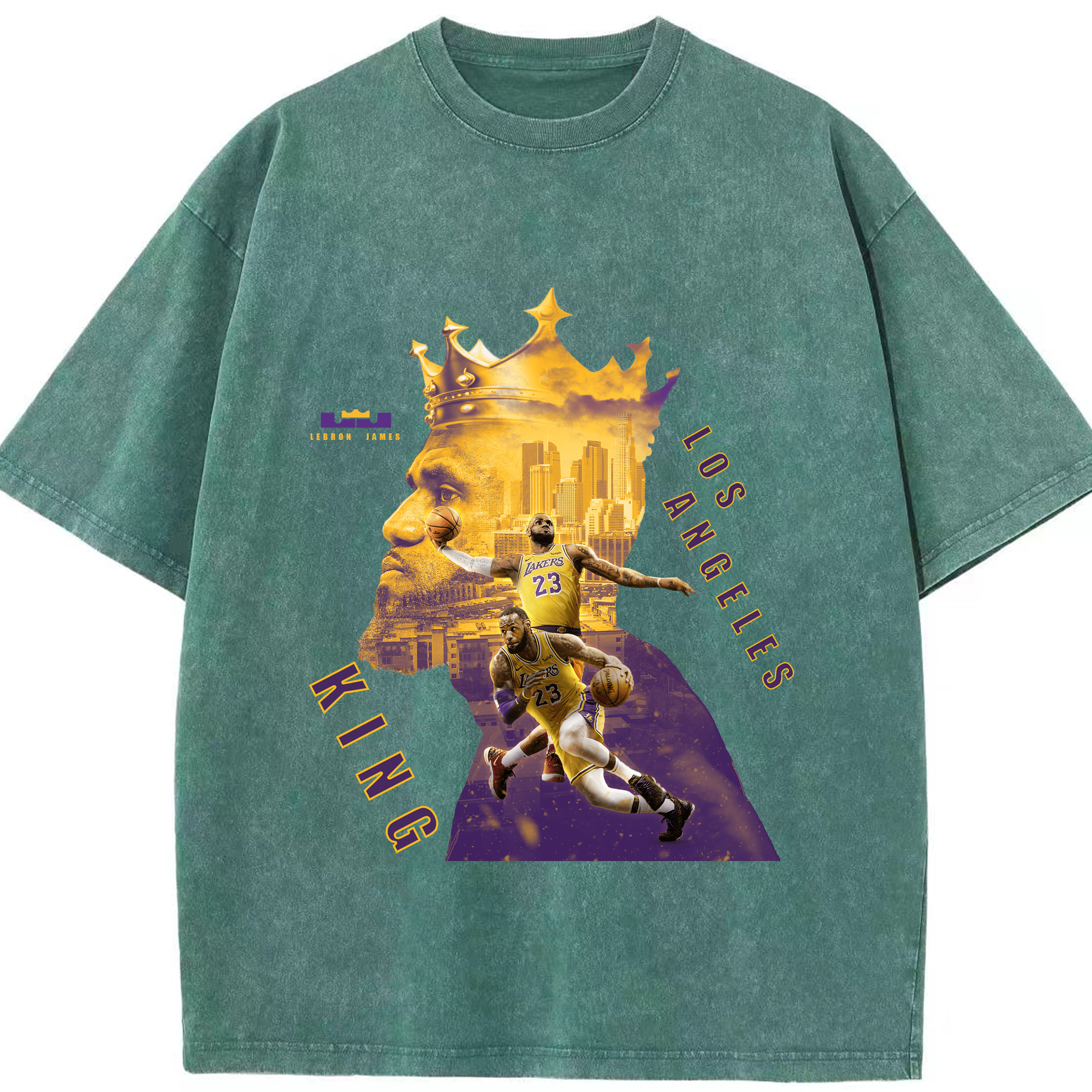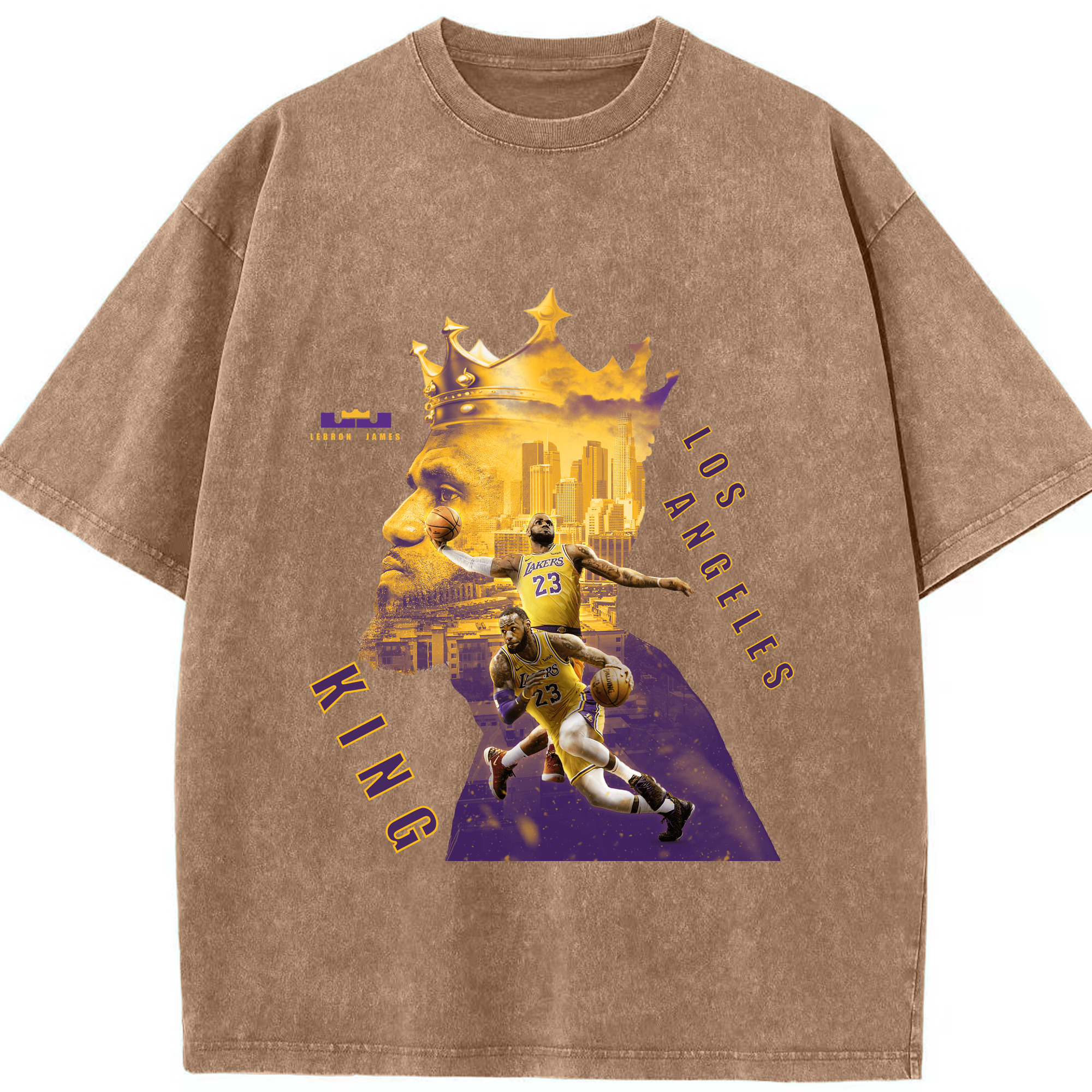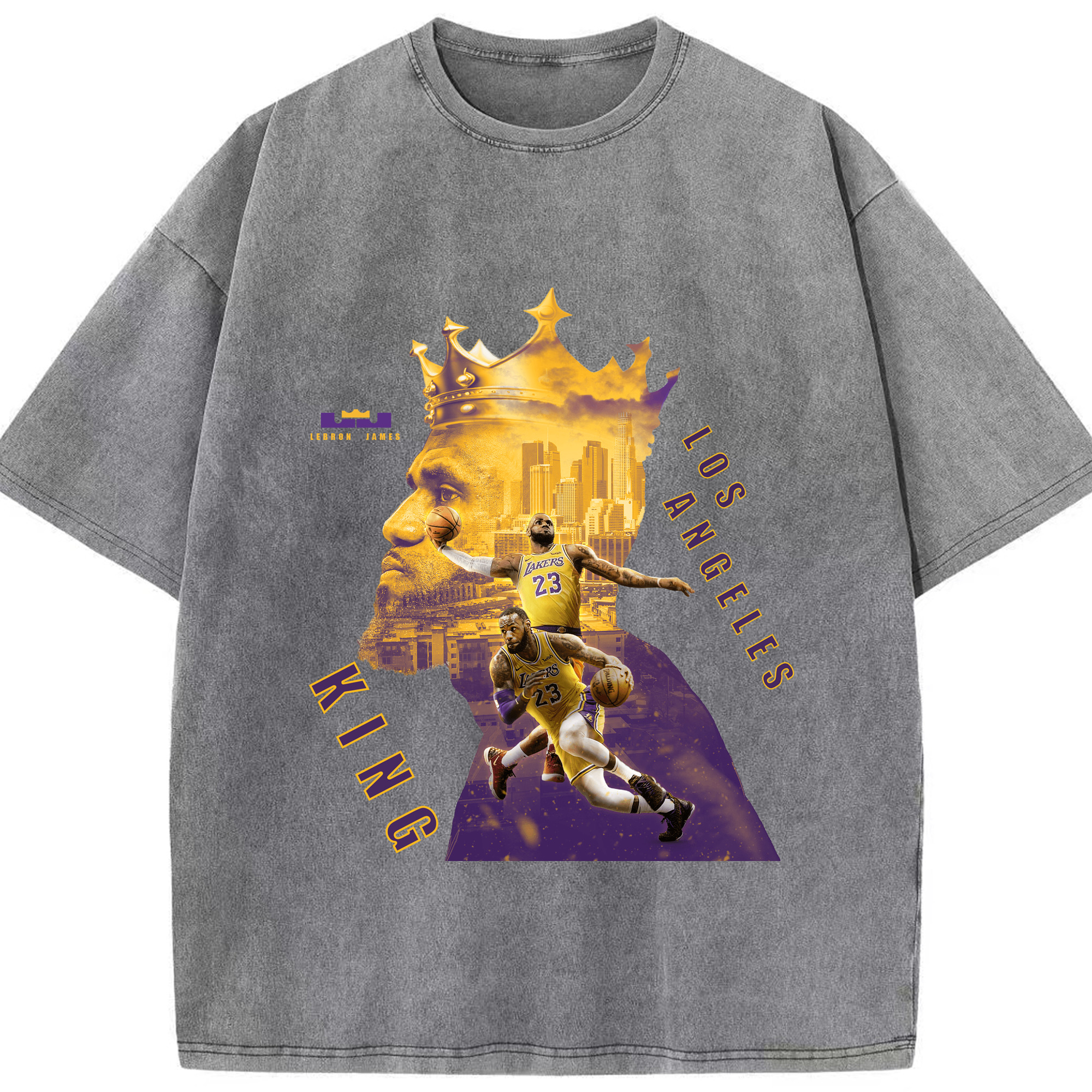 LeBron James Los Angeles Lakers King Graphic Shirt - Washed Vintage Look 230g Cotton Oversized T-Shirt With Front Heat Transfer Print – Soft, Lightweight, Stylish Fit – Comfortable Casual Wear For Sports & Everyday Use