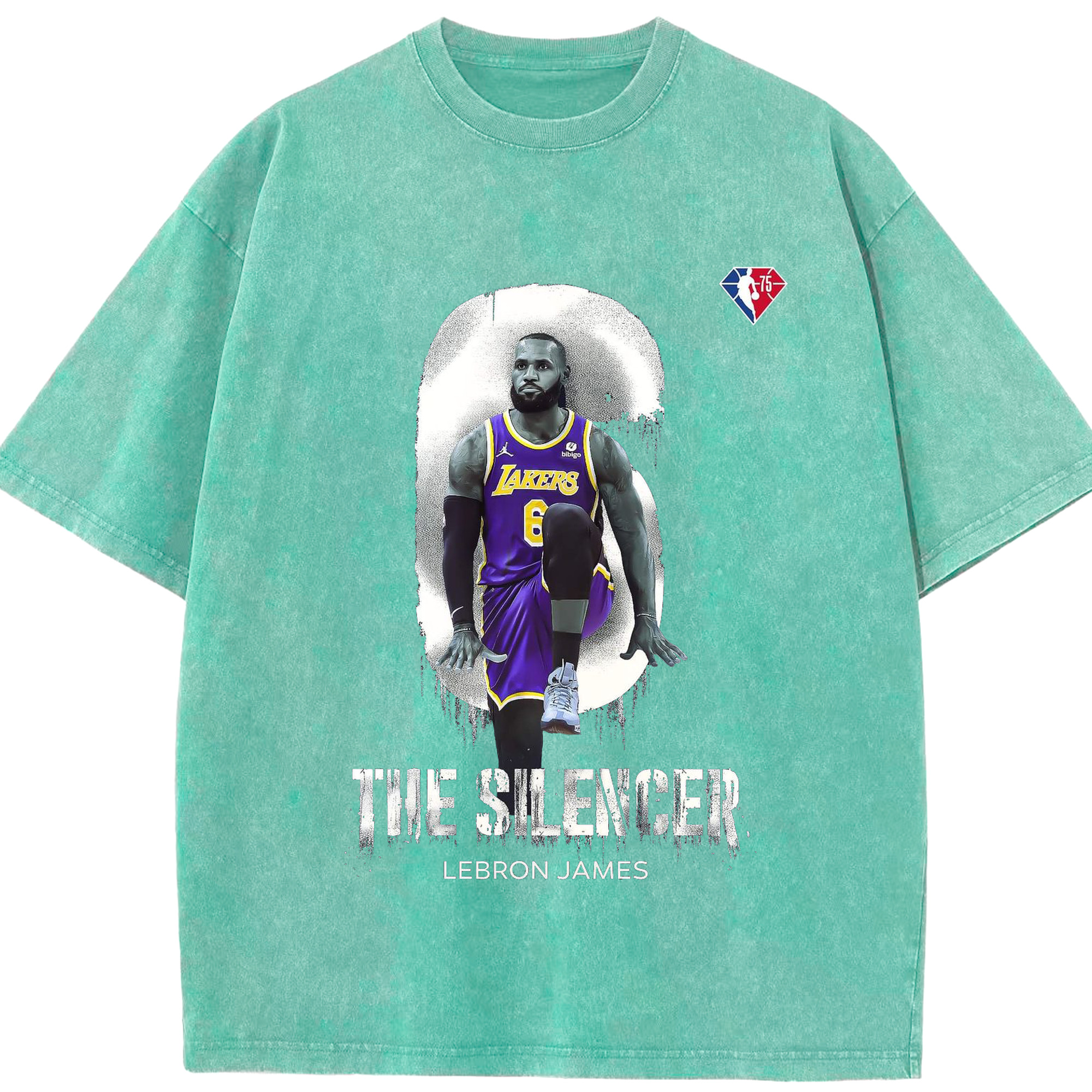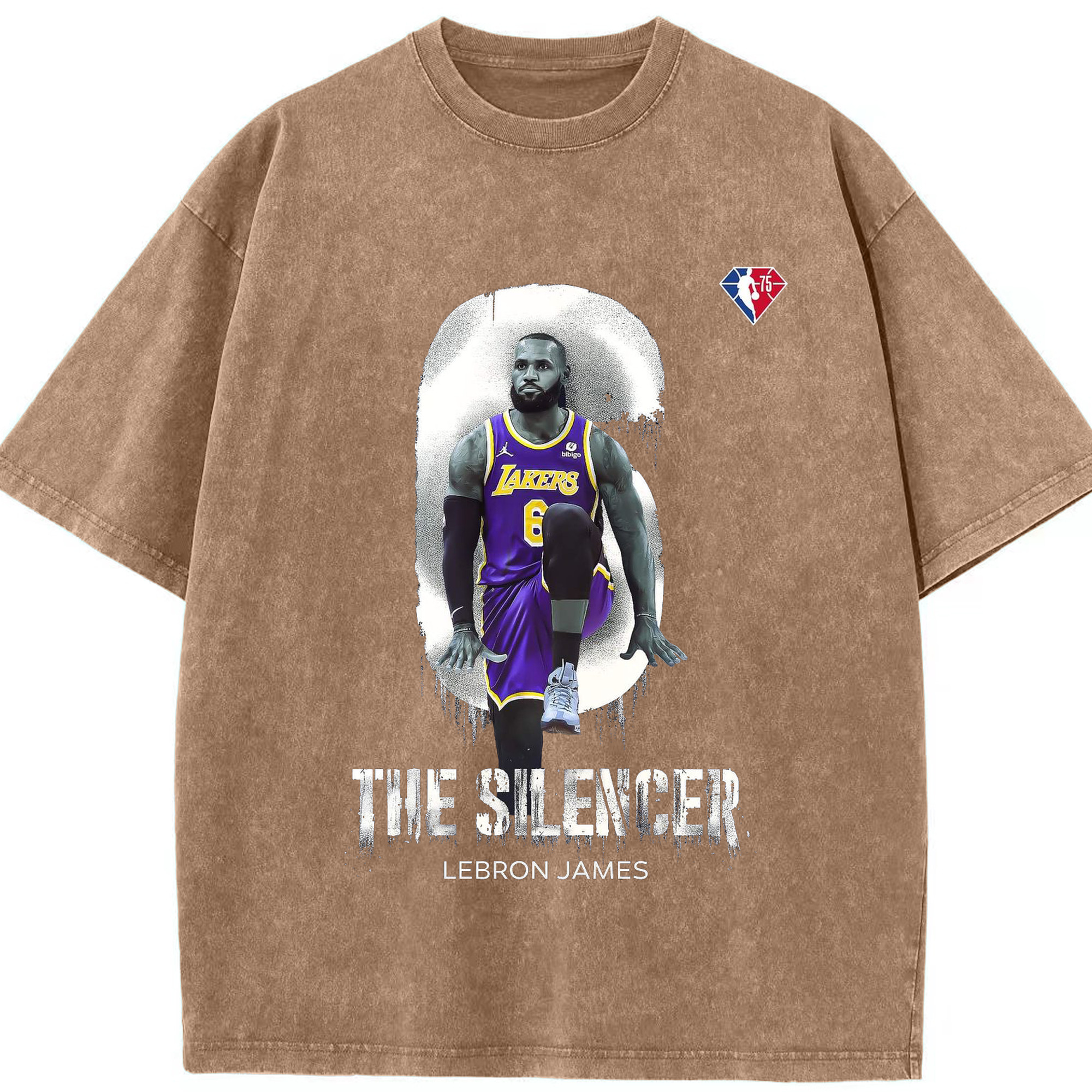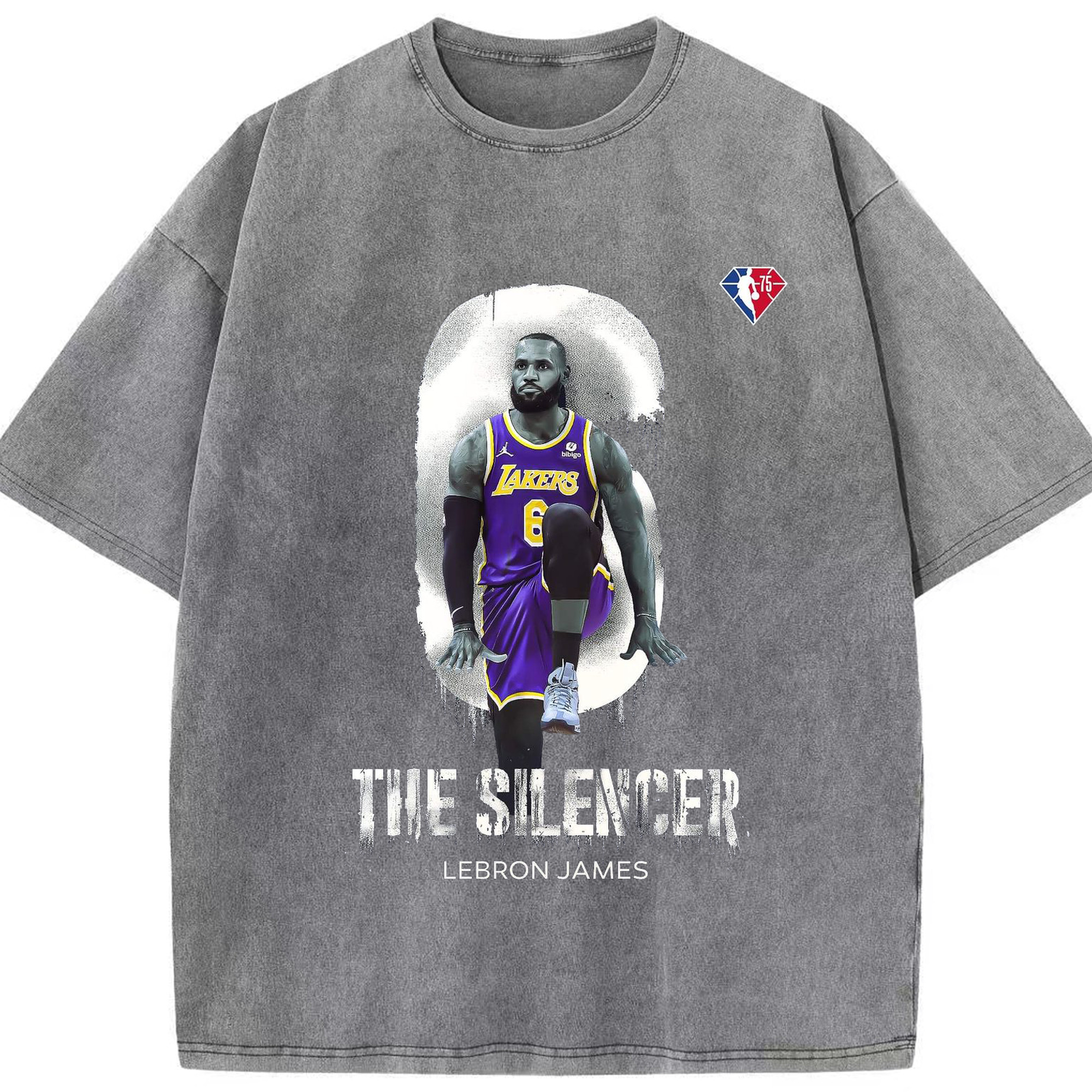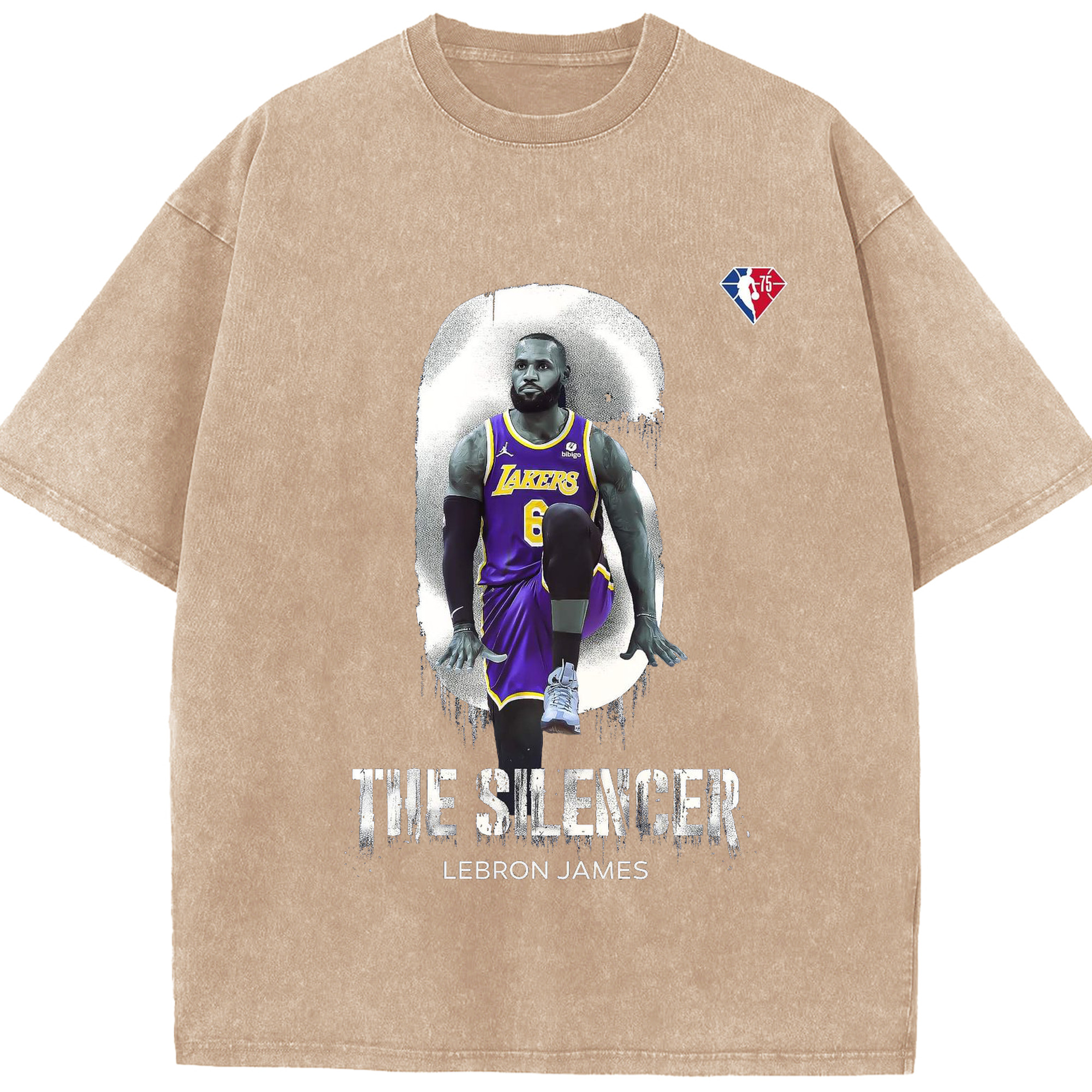 LeBron James "The Silencer" 75 Superstars Graphic Shirt - Washed Vintage Look 230g Cotton Oversized T-Shirt With Front Heat Transfer Print – Soft, Lightweight, Stylish Fit – Comfortable Casual Wear For Sports & Everyday Use