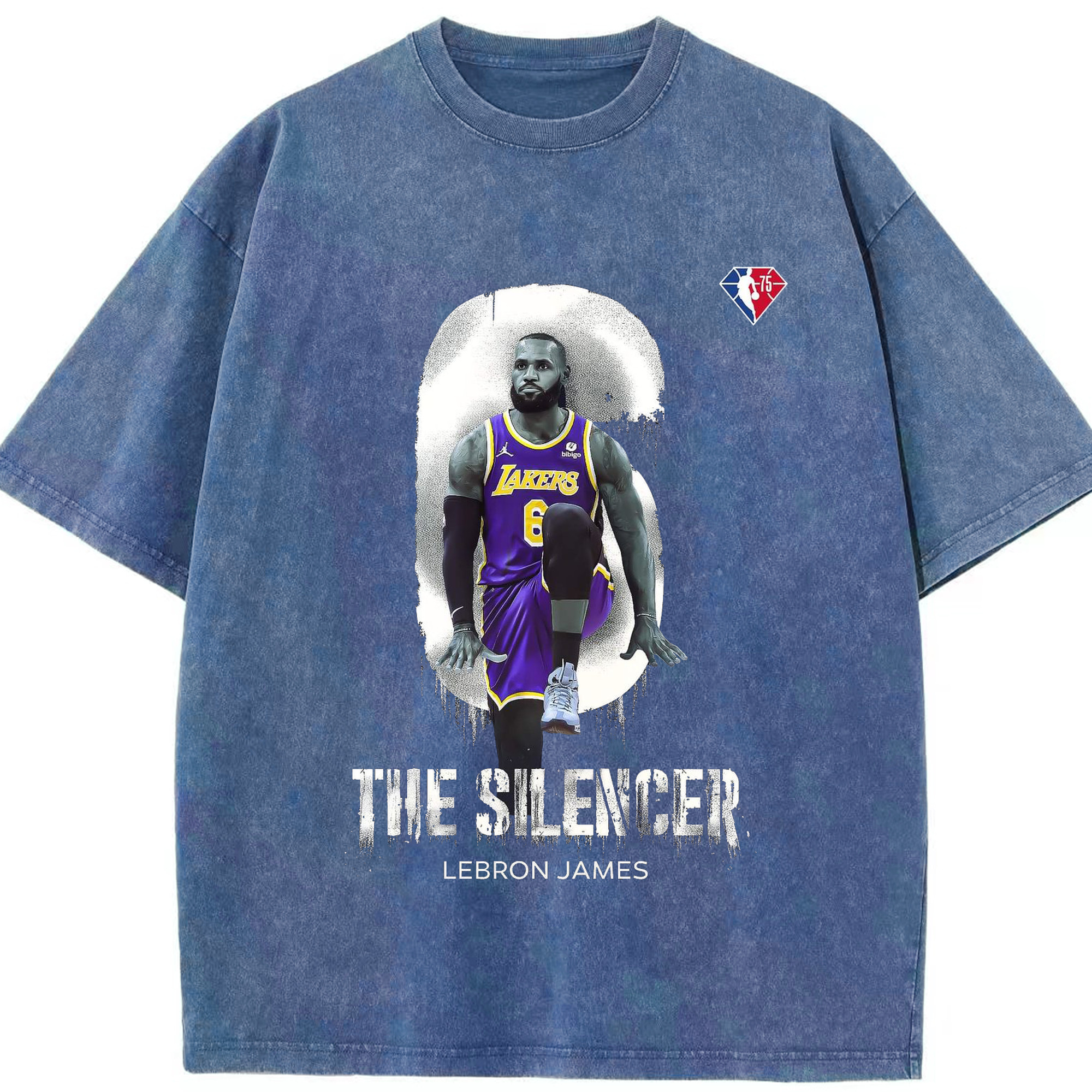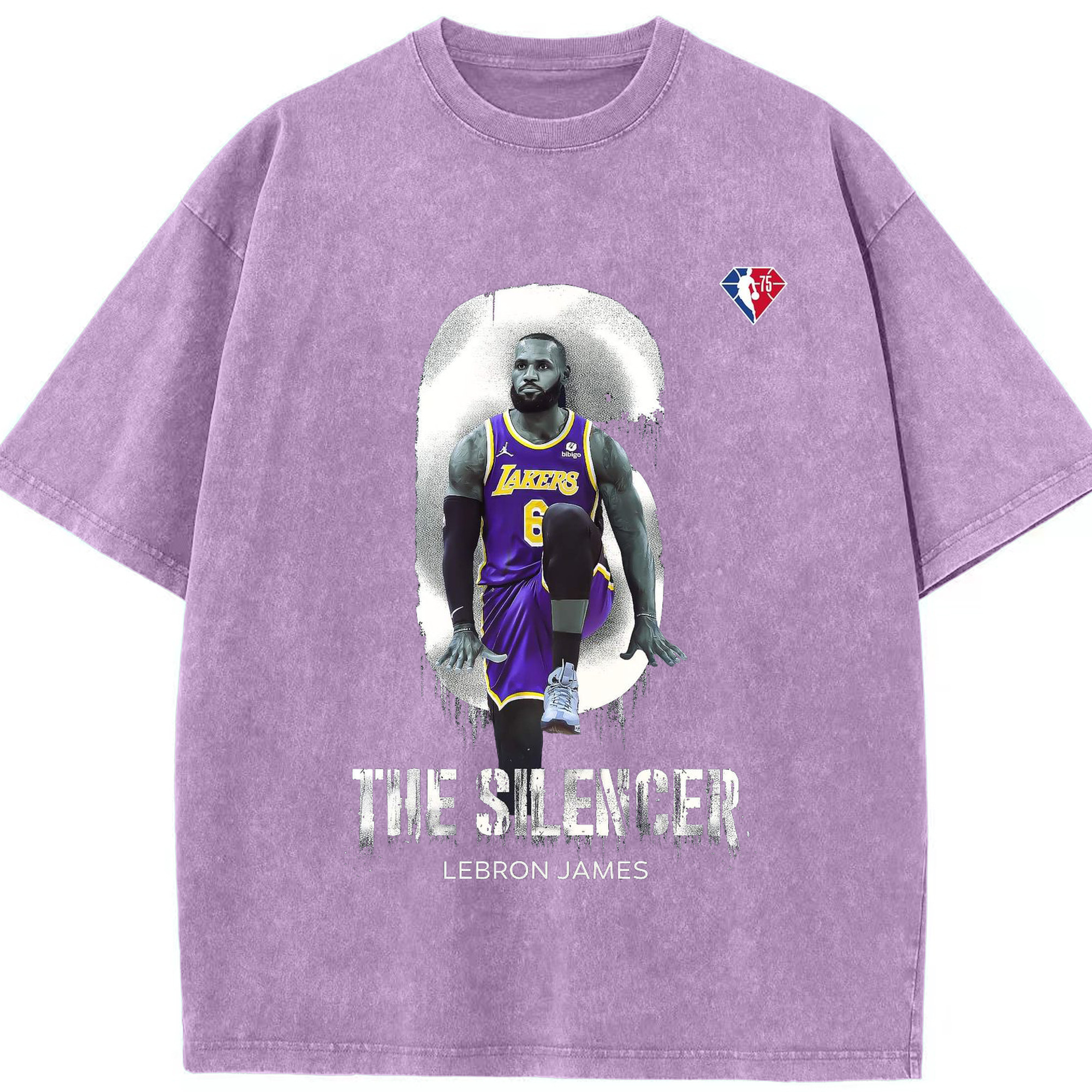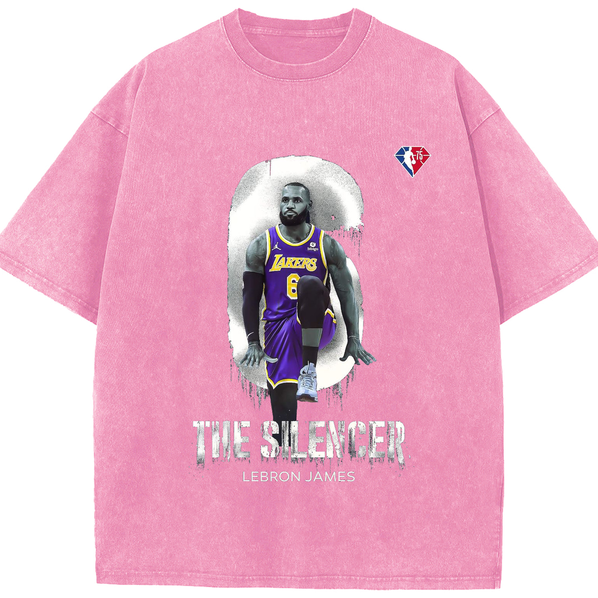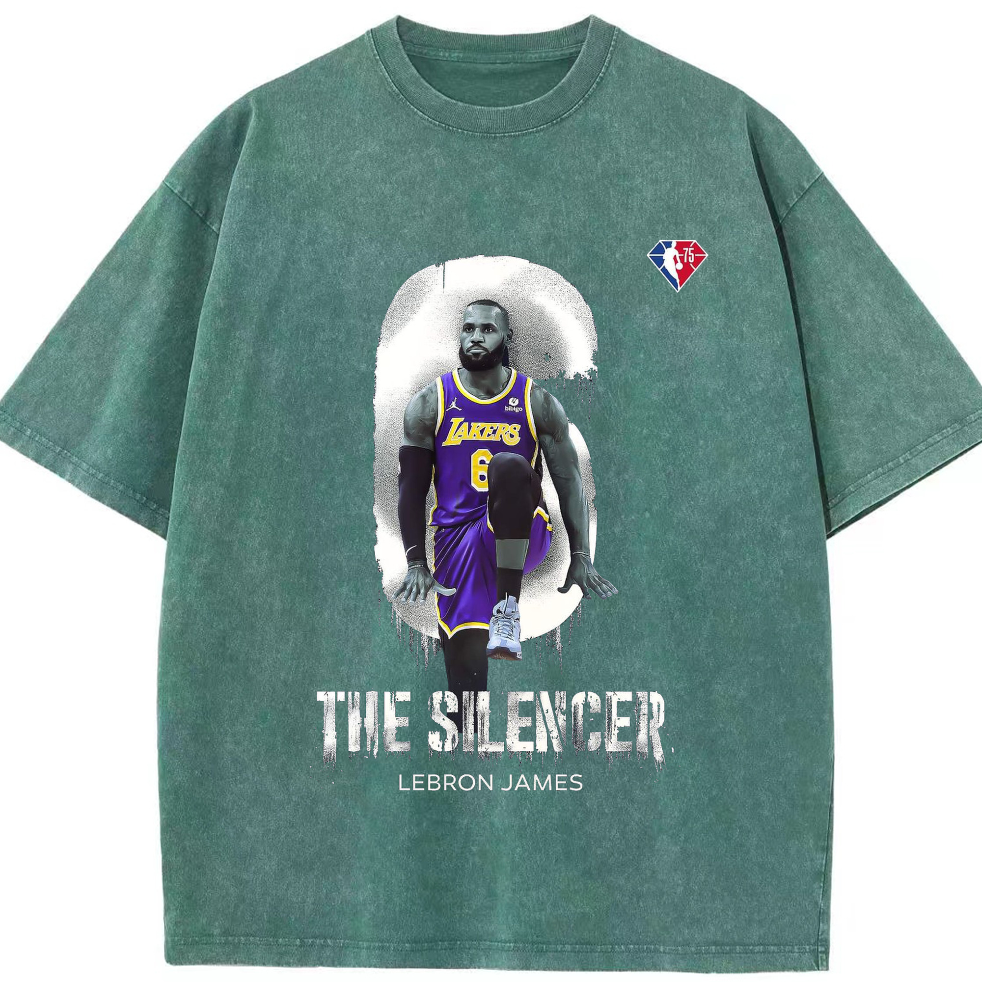 LeBron James "The Silencer" 75 Superstars Graphic Shirt - Washed Vintage Look 230g Cotton Oversized T-Shirt With Front Heat Transfer Print – Soft, Lightweight, Stylish Fit – Comfortable Casual Wear For Sports & Everyday Use