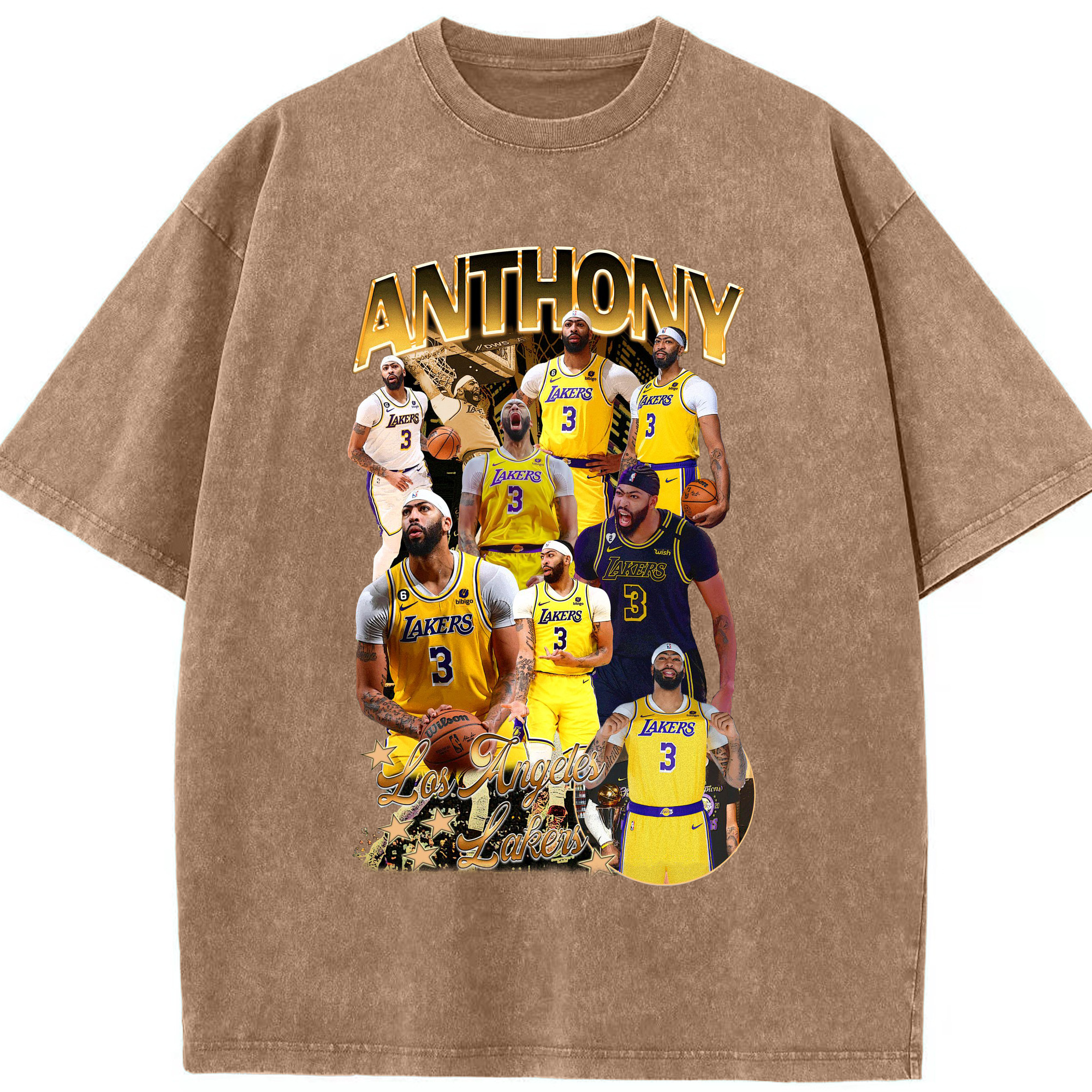 Los Angeles Lakers Anthony Davis Multi-Moment Shirt - Washed Vintage Look 230g Cotton Oversized T-Shirt With Front Heat Transfer Print – Soft, Lightweight, Stylish Fit – Comfortable Casual Wear For Sports & Everyday Use