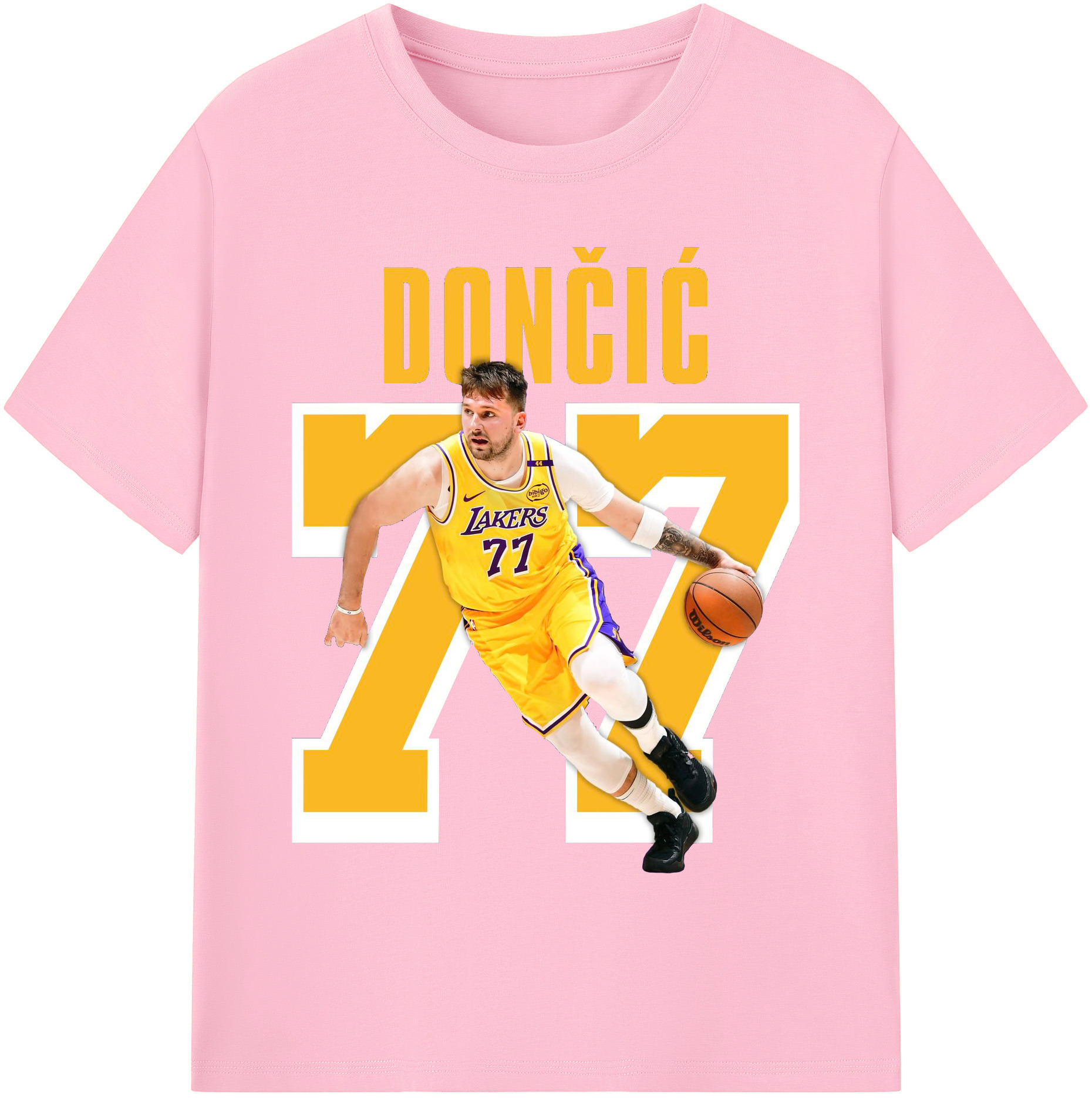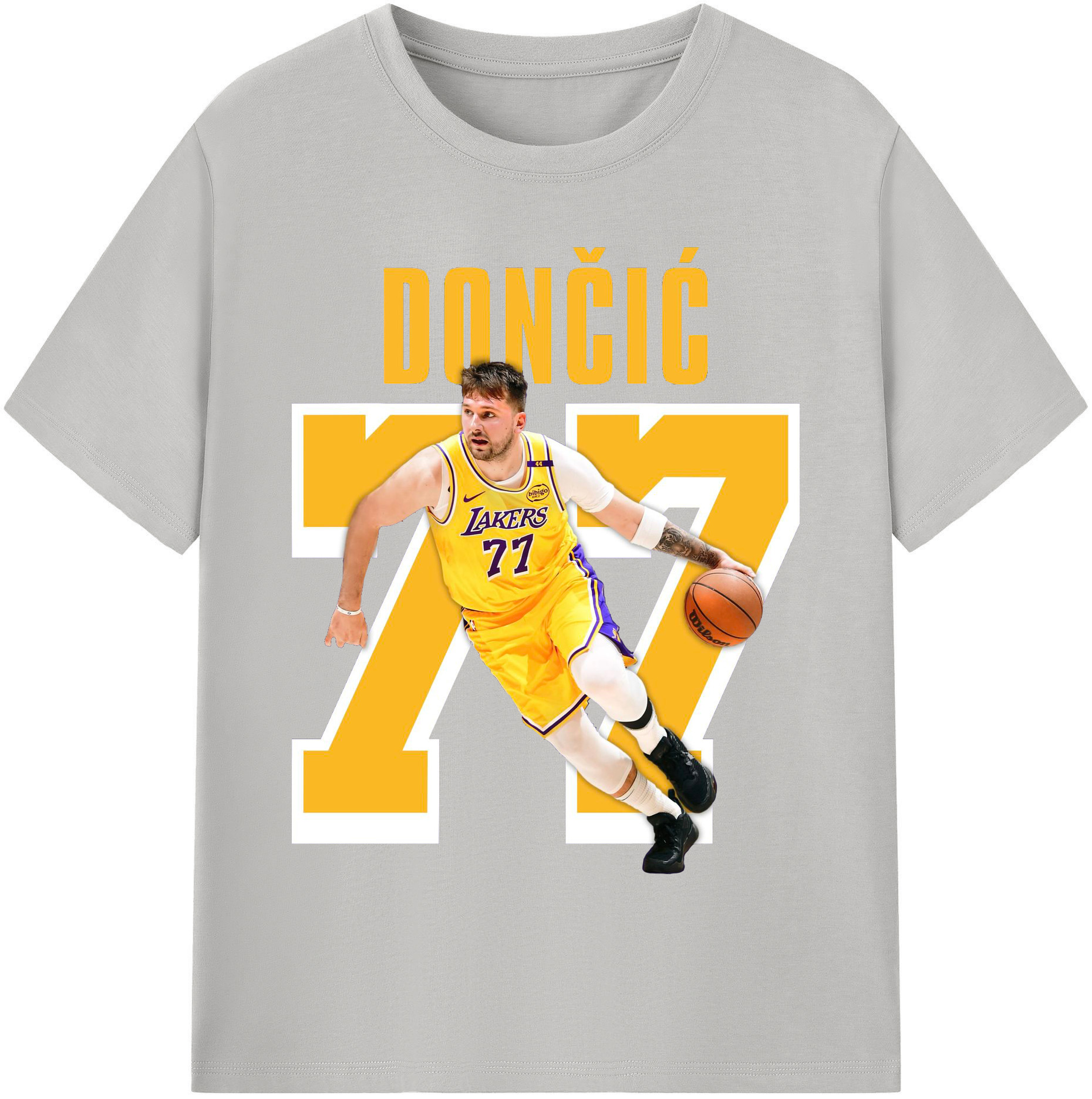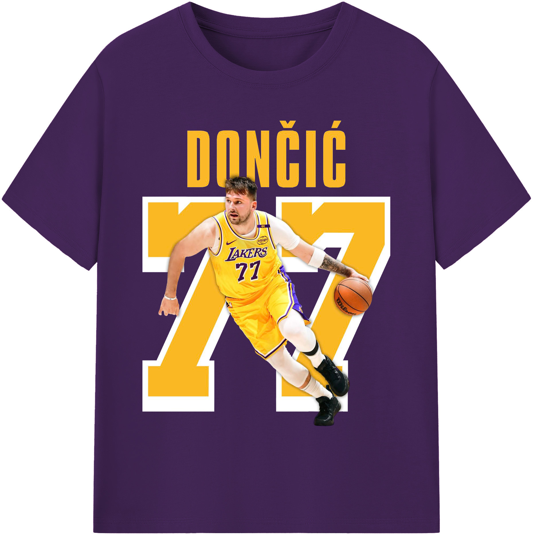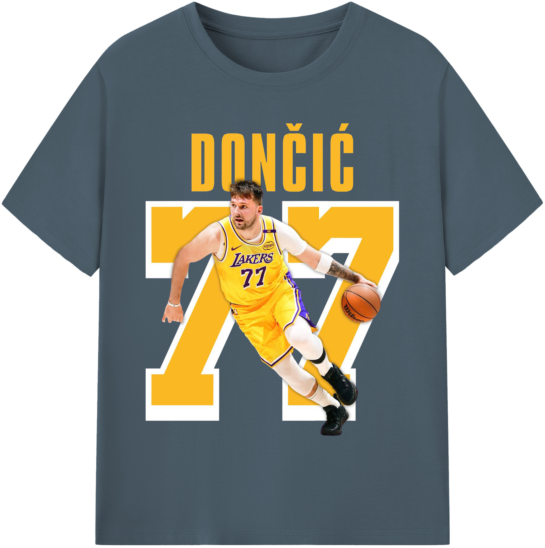 Luka Dončić #77 Lakers Shirt - 180g Cotton T-Shirt With Front Heat Transfer Print – Soft, Lightweight, Fitted Design – Comfortable Casual Wear For Sports & Everyday Use