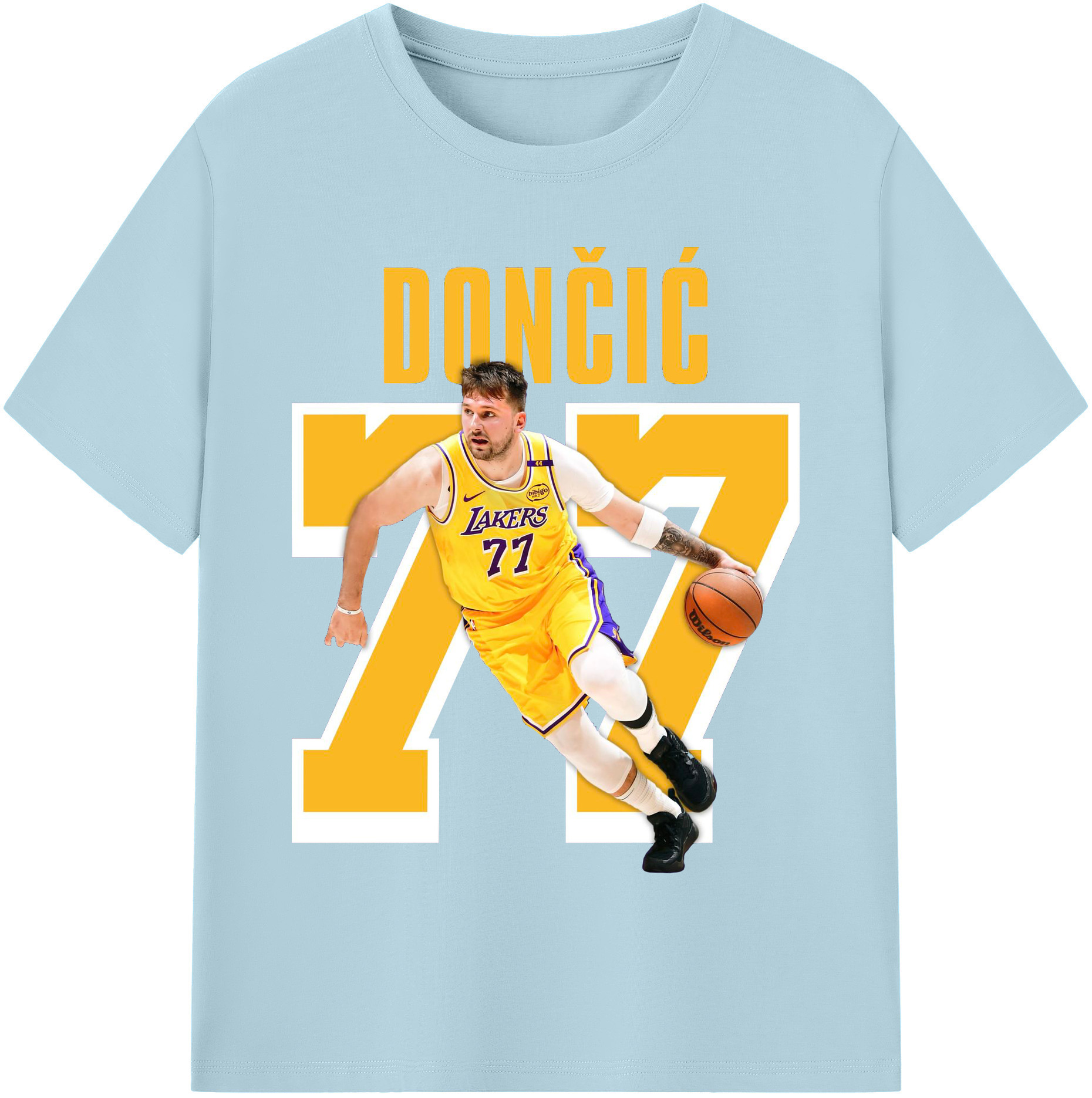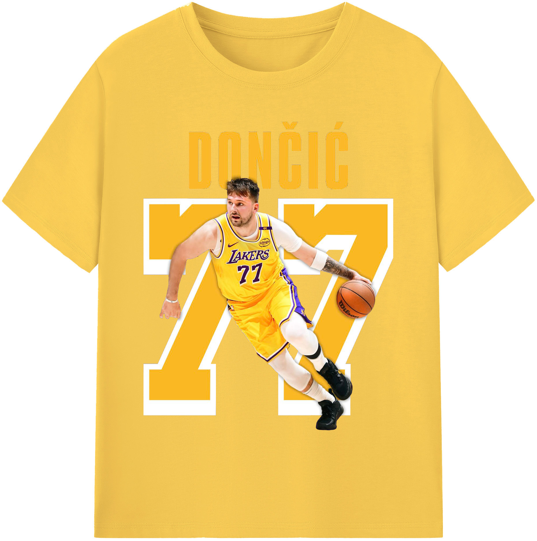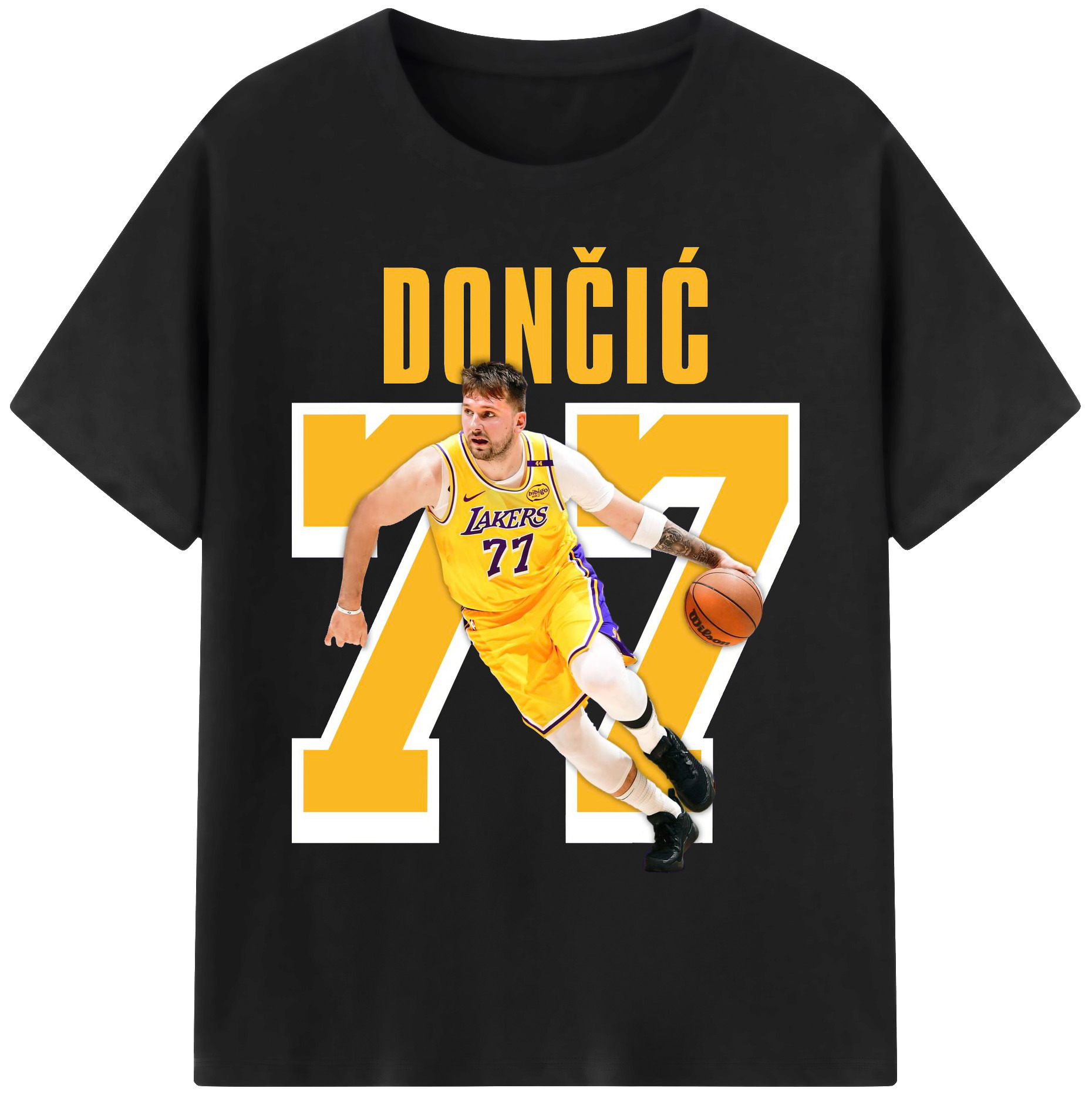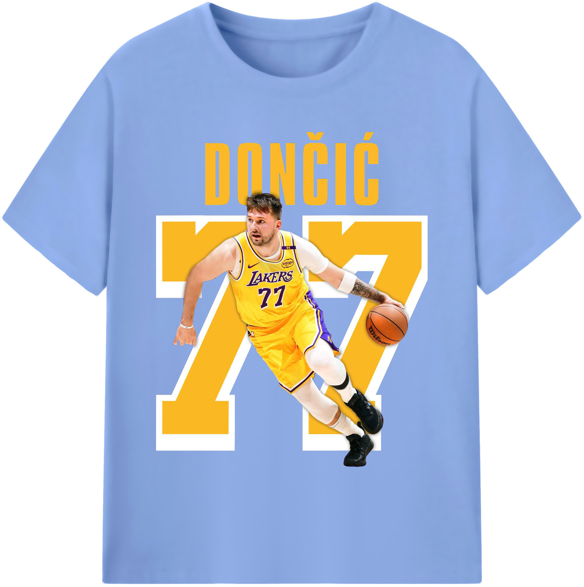 Luka Dončić #77 Lakers Shirt - 180g Cotton T-Shirt With Front Heat Transfer Print – Soft, Lightweight, Fitted Design – Comfortable Casual Wear For Sports & Everyday Use