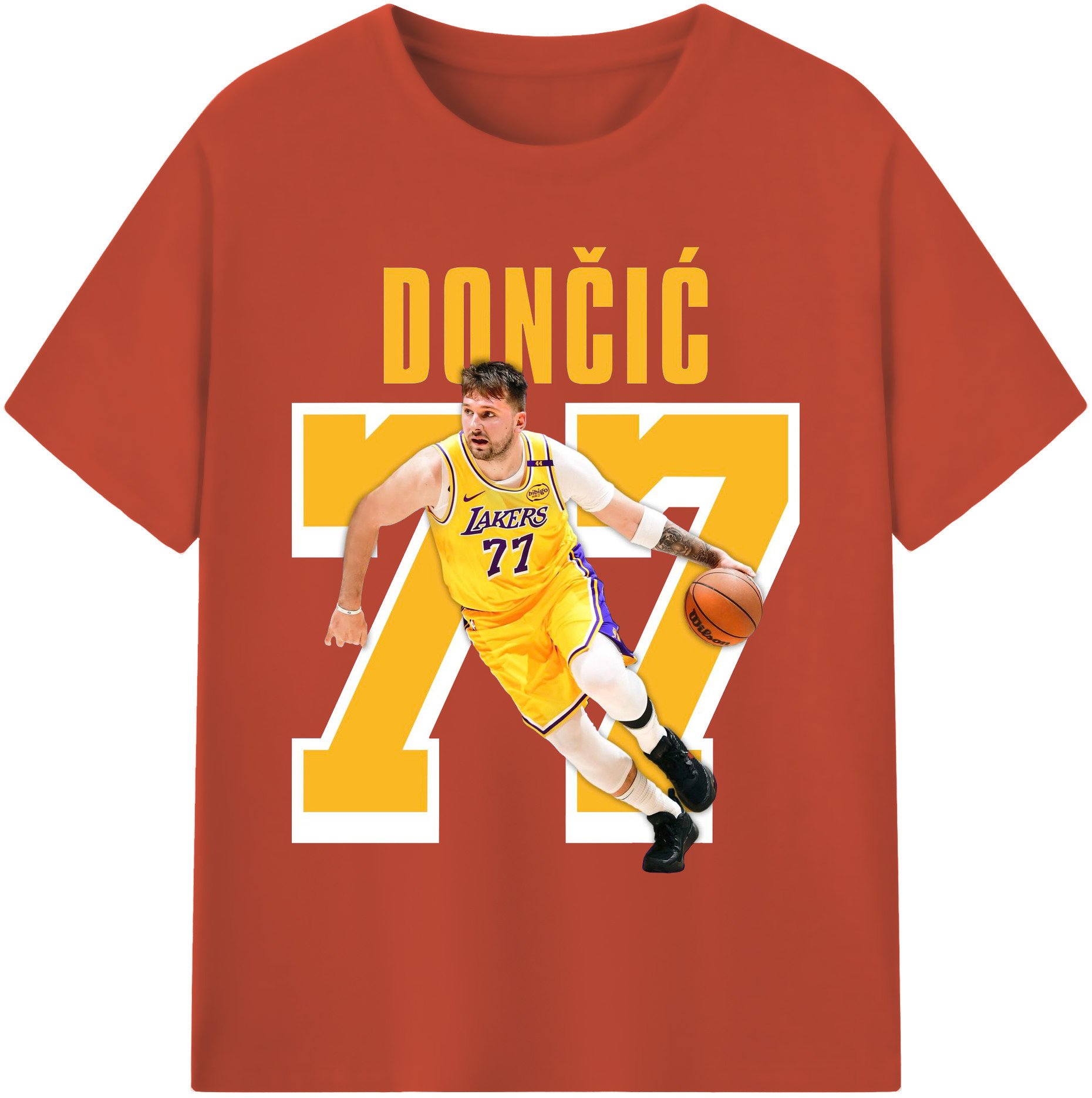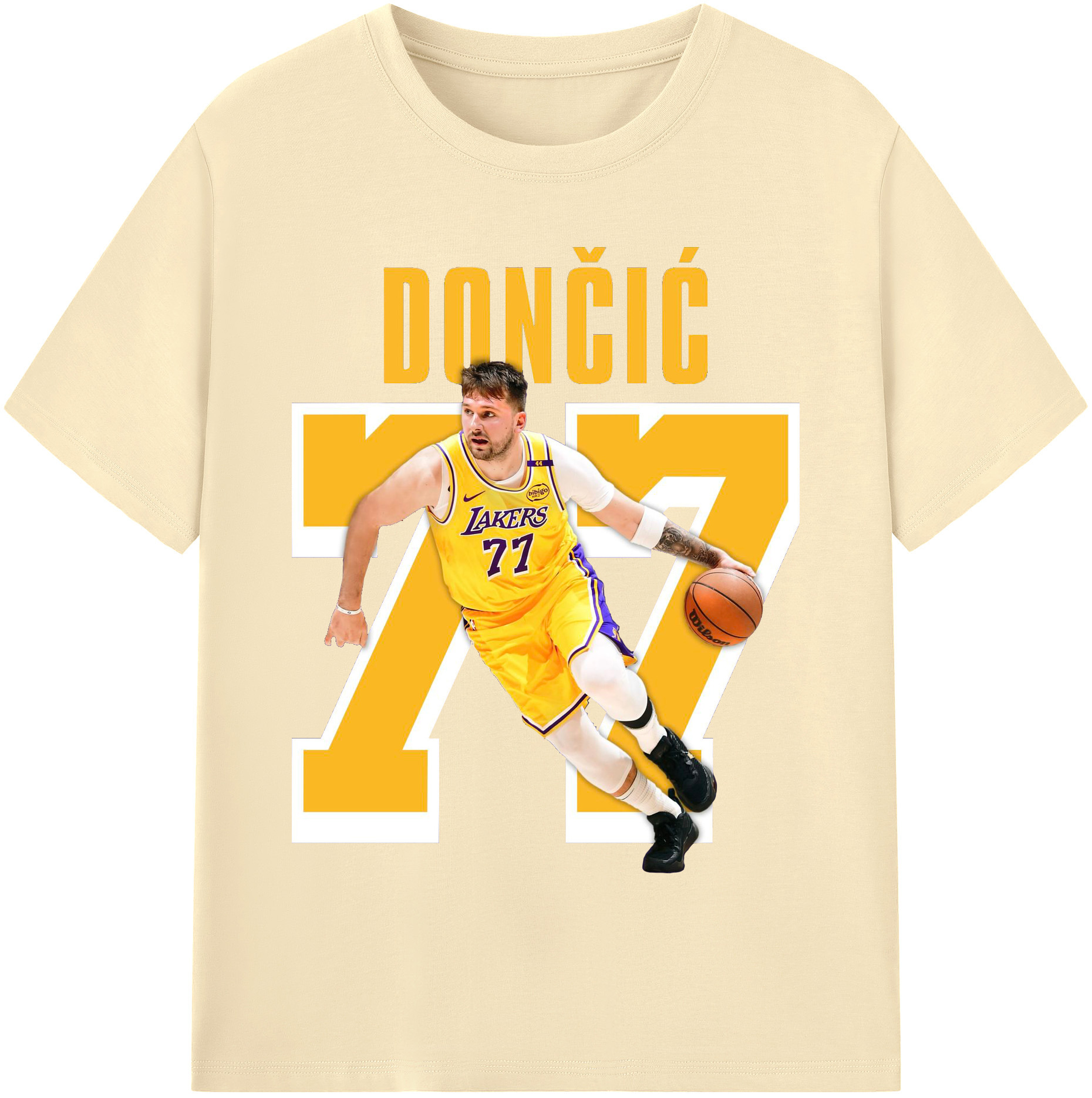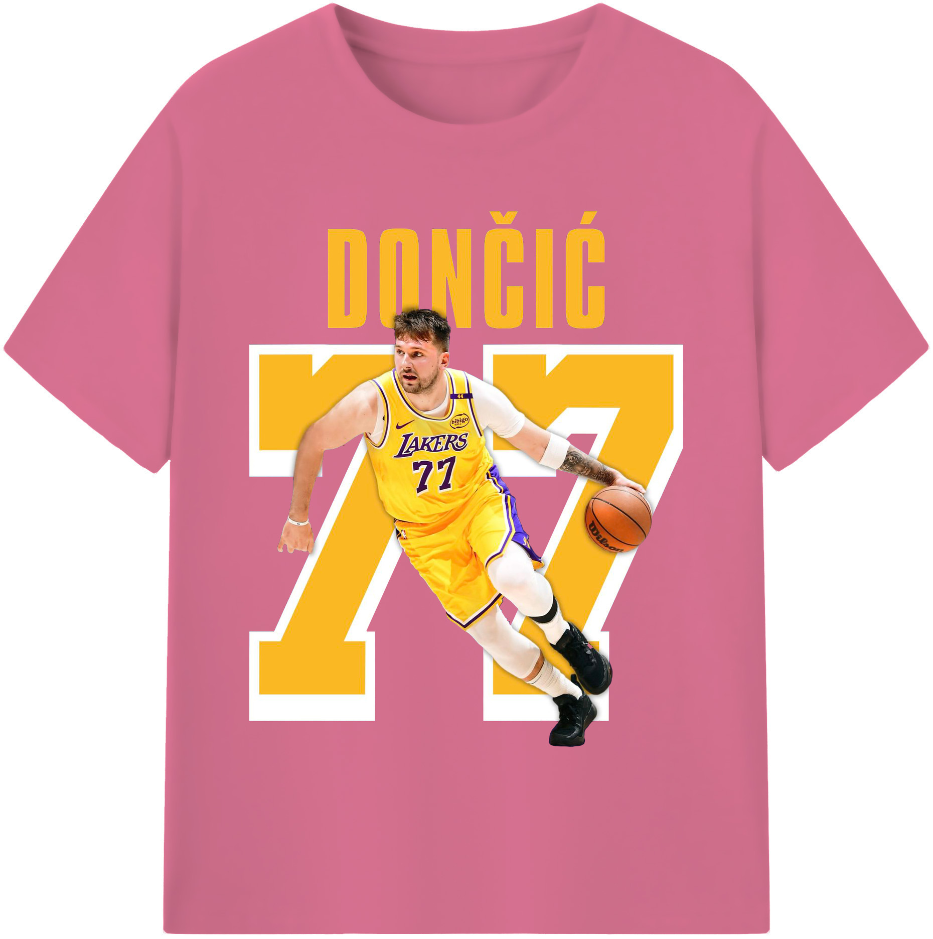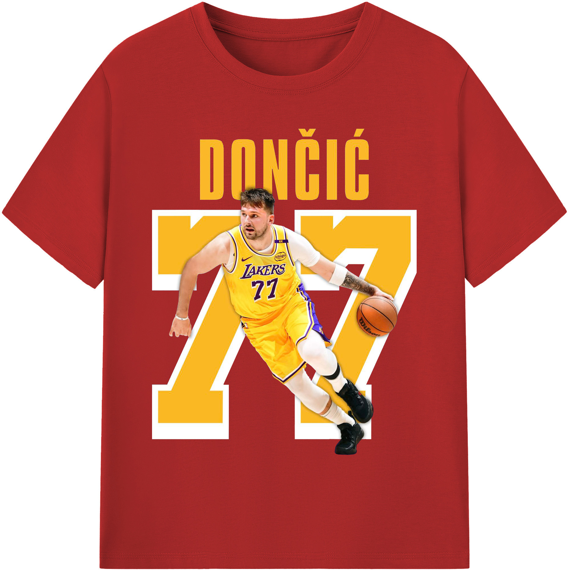 Luka Dončić #77 Lakers Shirt - 180g Cotton T-Shirt With Front Heat Transfer Print – Soft, Lightweight, Fitted Design – Comfortable Casual Wear For Sports & Everyday Use