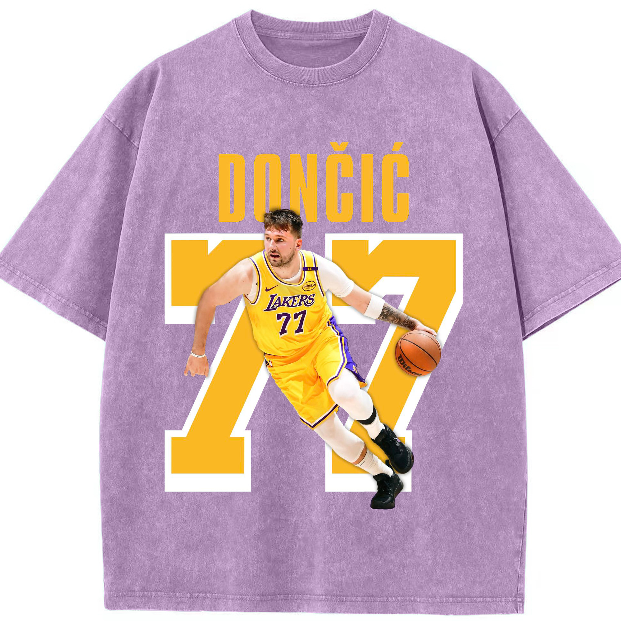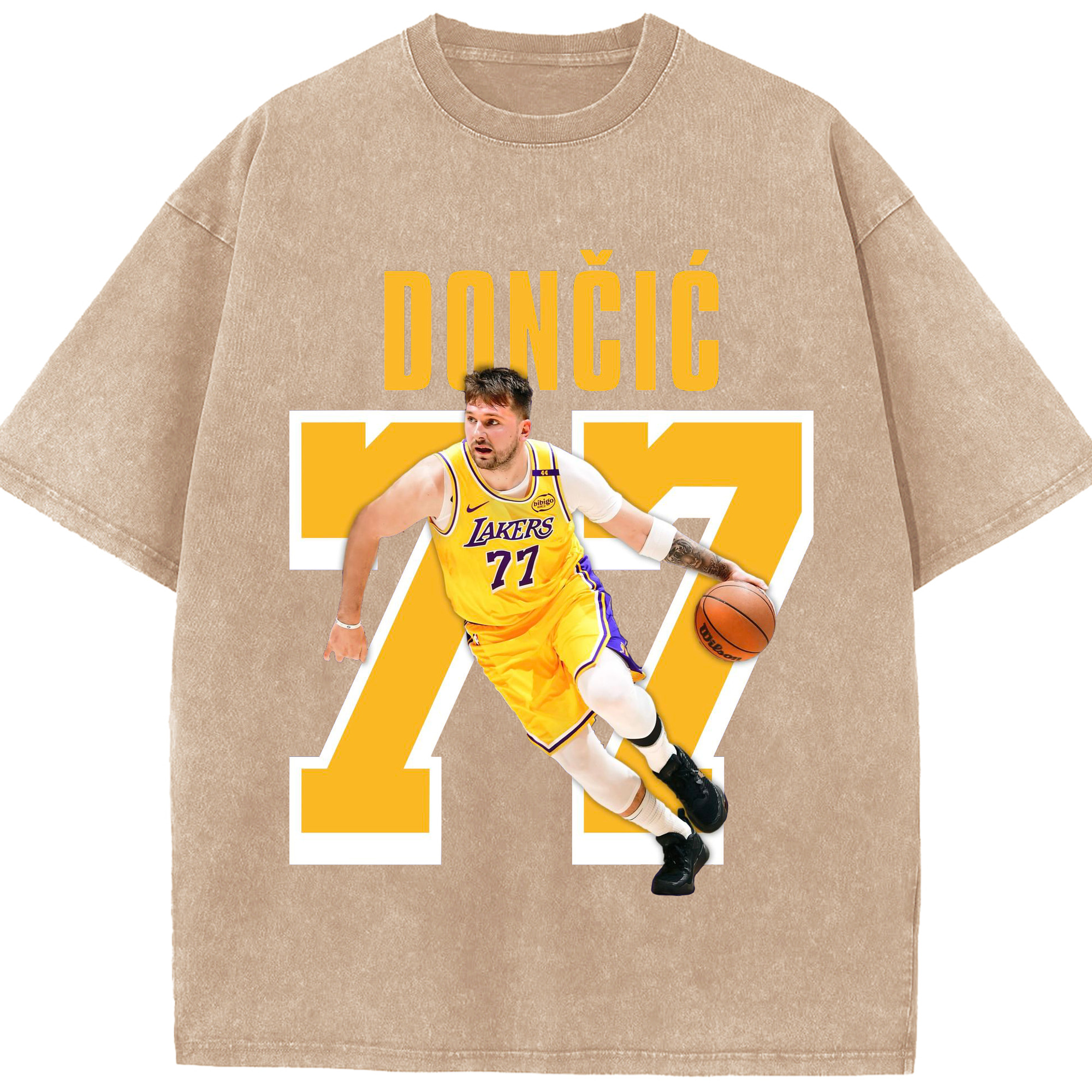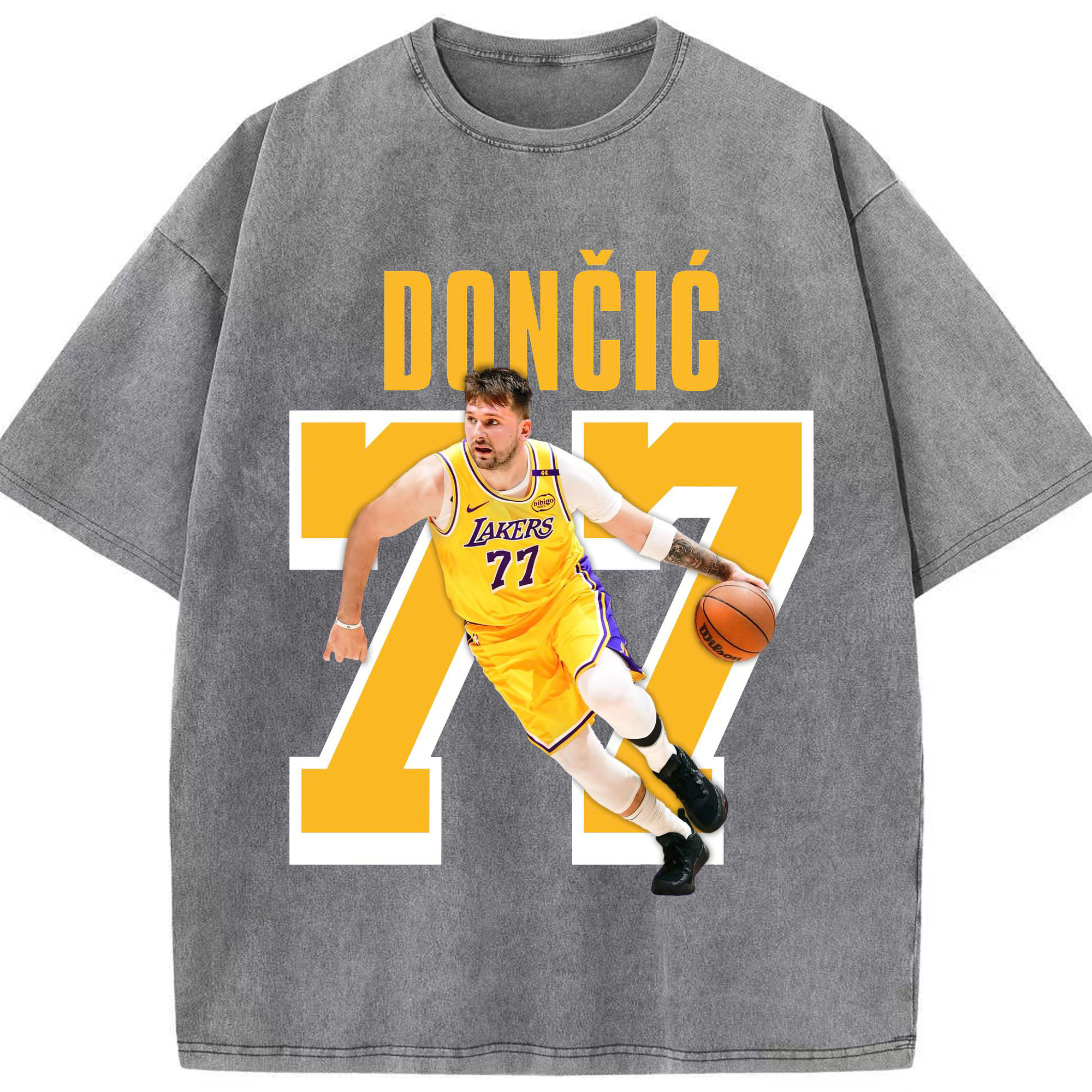 Luka Dončić #77 Lakers Shirt - Washed Vintage Look 230g Cotton Oversized T-Shirt With Front Heat Transfer Print – Soft, Lightweight, Stylish Fit – Comfortable Casual Wear For Sports & Everyday Use