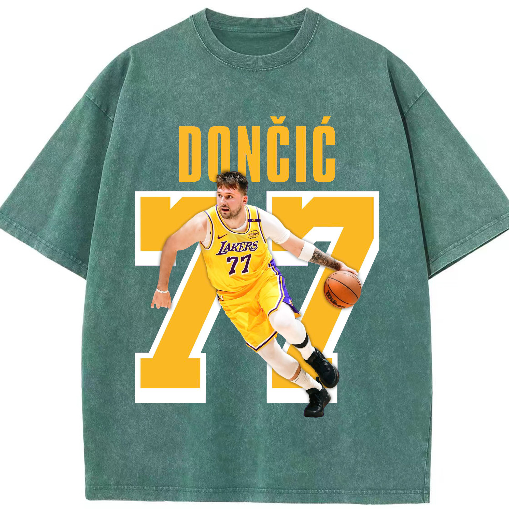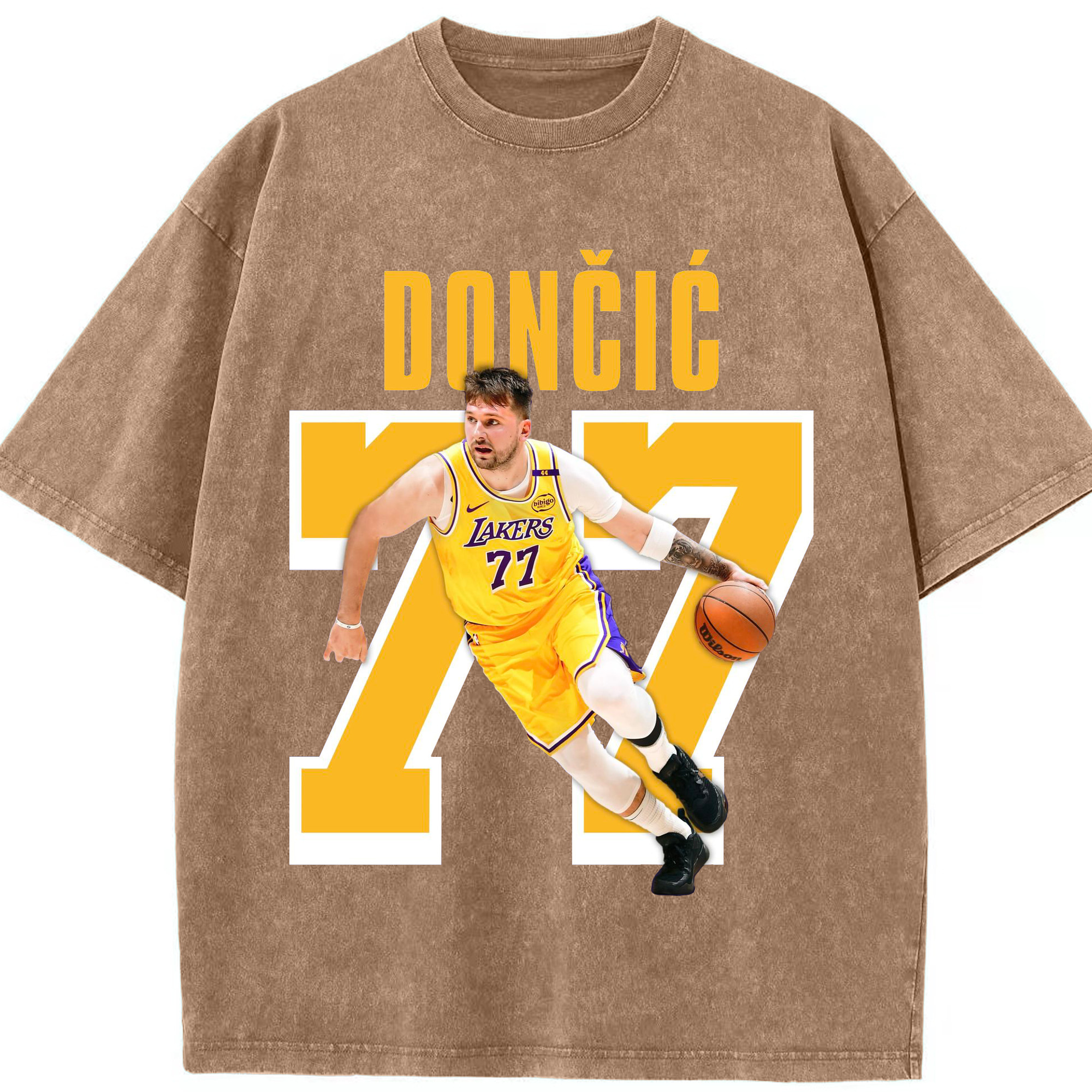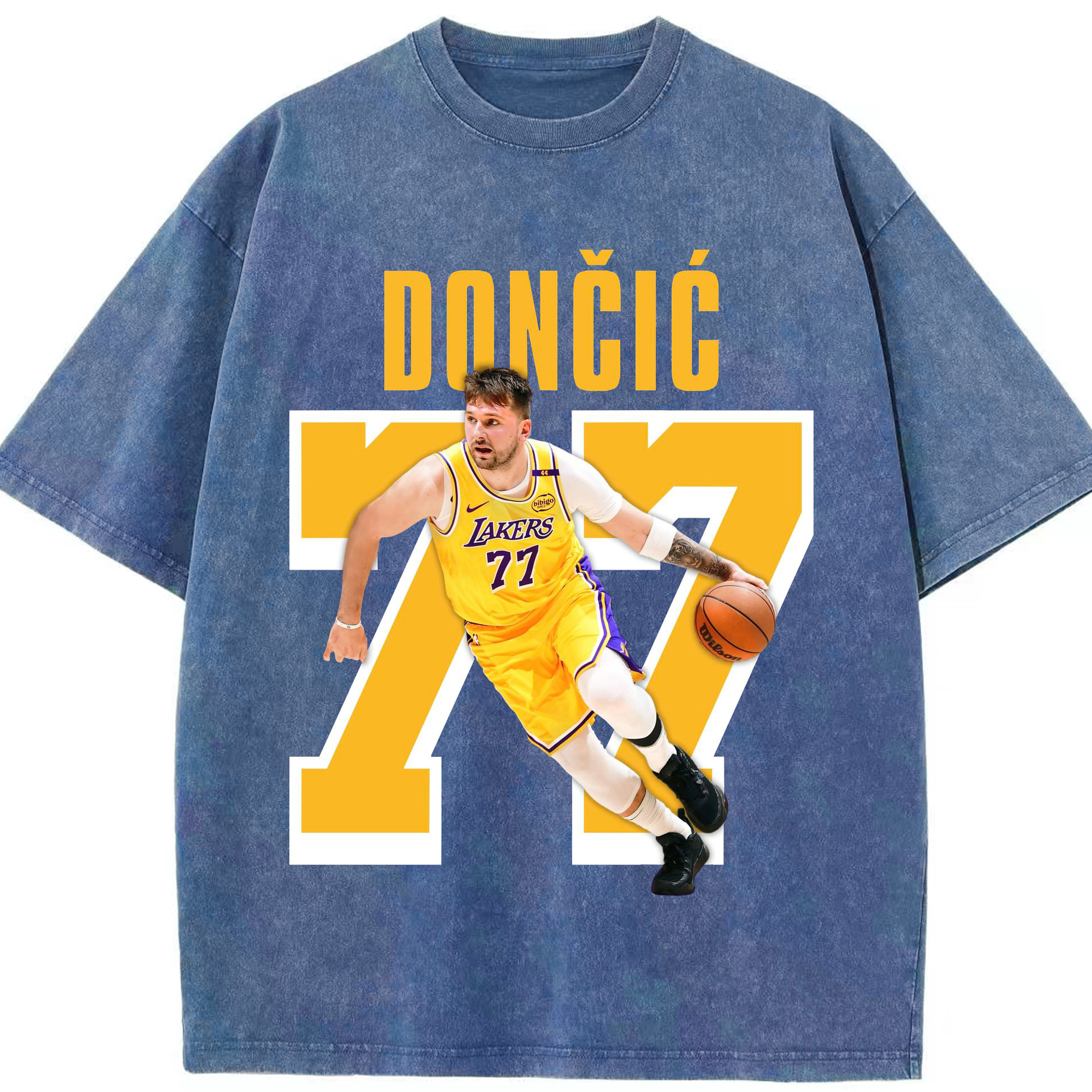 Luka Dončić #77 Lakers Shirt - Washed Vintage Look 230g Cotton Oversized T-Shirt With Front Heat Transfer Print – Soft, Lightweight, Stylish Fit – Comfortable Casual Wear For Sports & Everyday Use