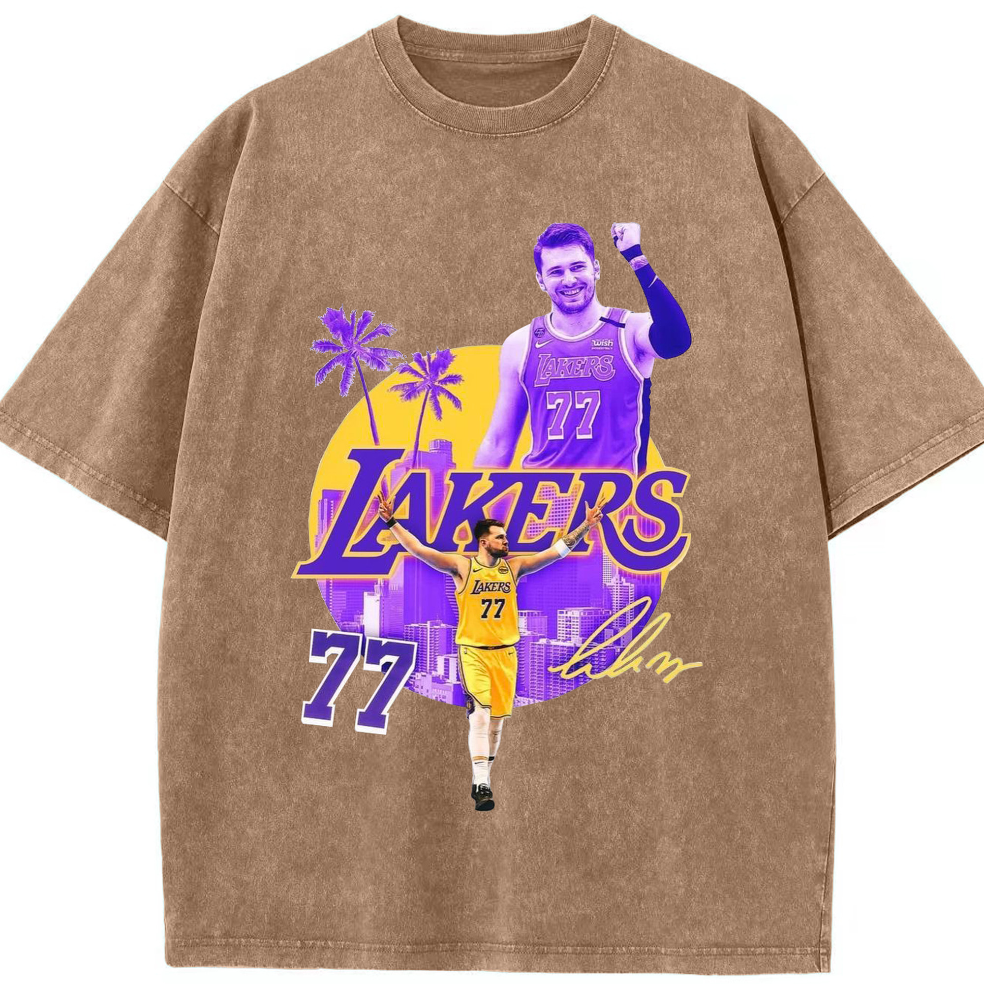 Luka Dončić Los Angeles City Shirt - Washed Vintage Look 230g Cotton Oversized T-Shirt With Front Heat Transfer Print – Soft, Lightweight, Stylish Fit – Comfortable Casual Wear For Sports & Everyday Use