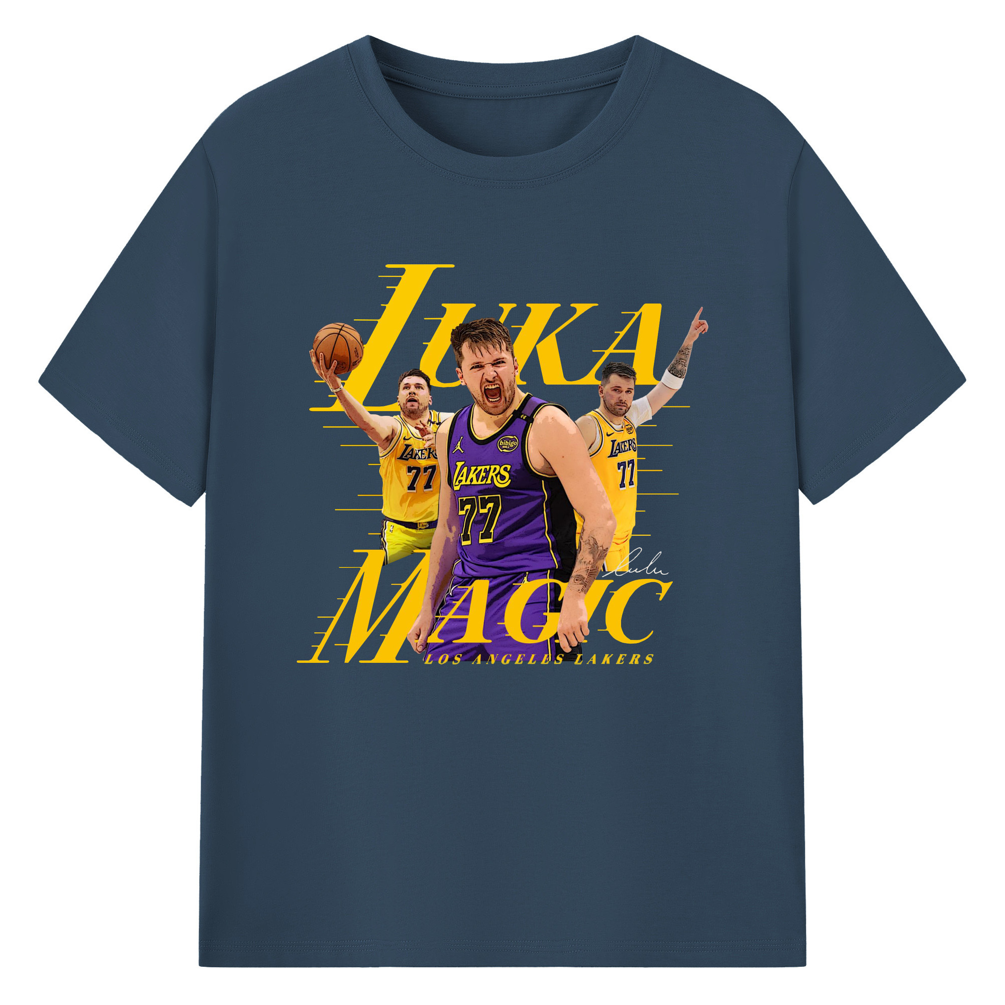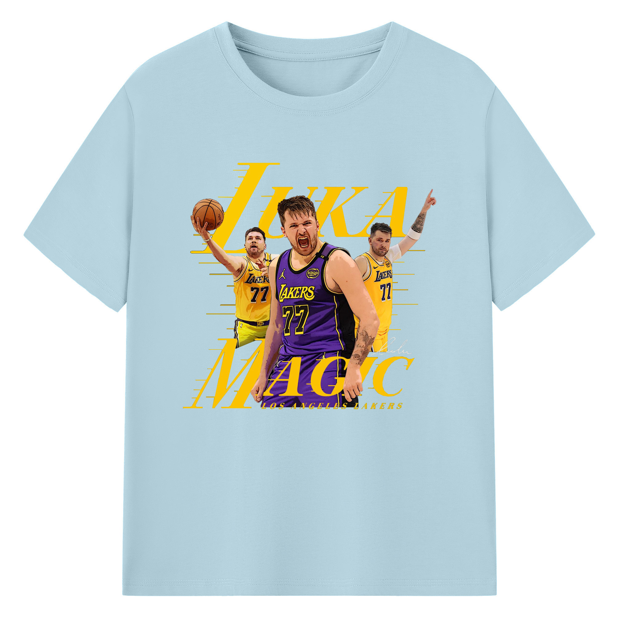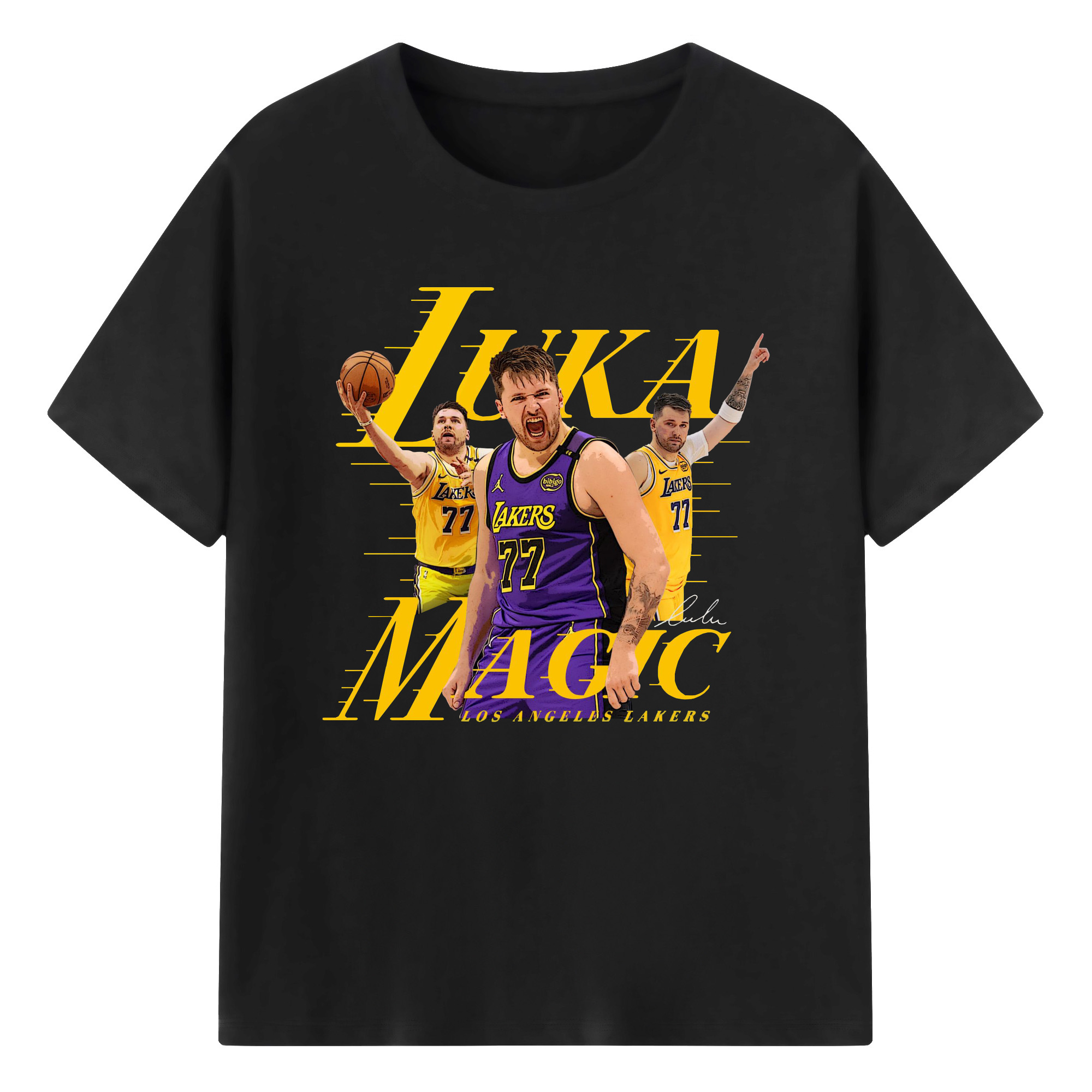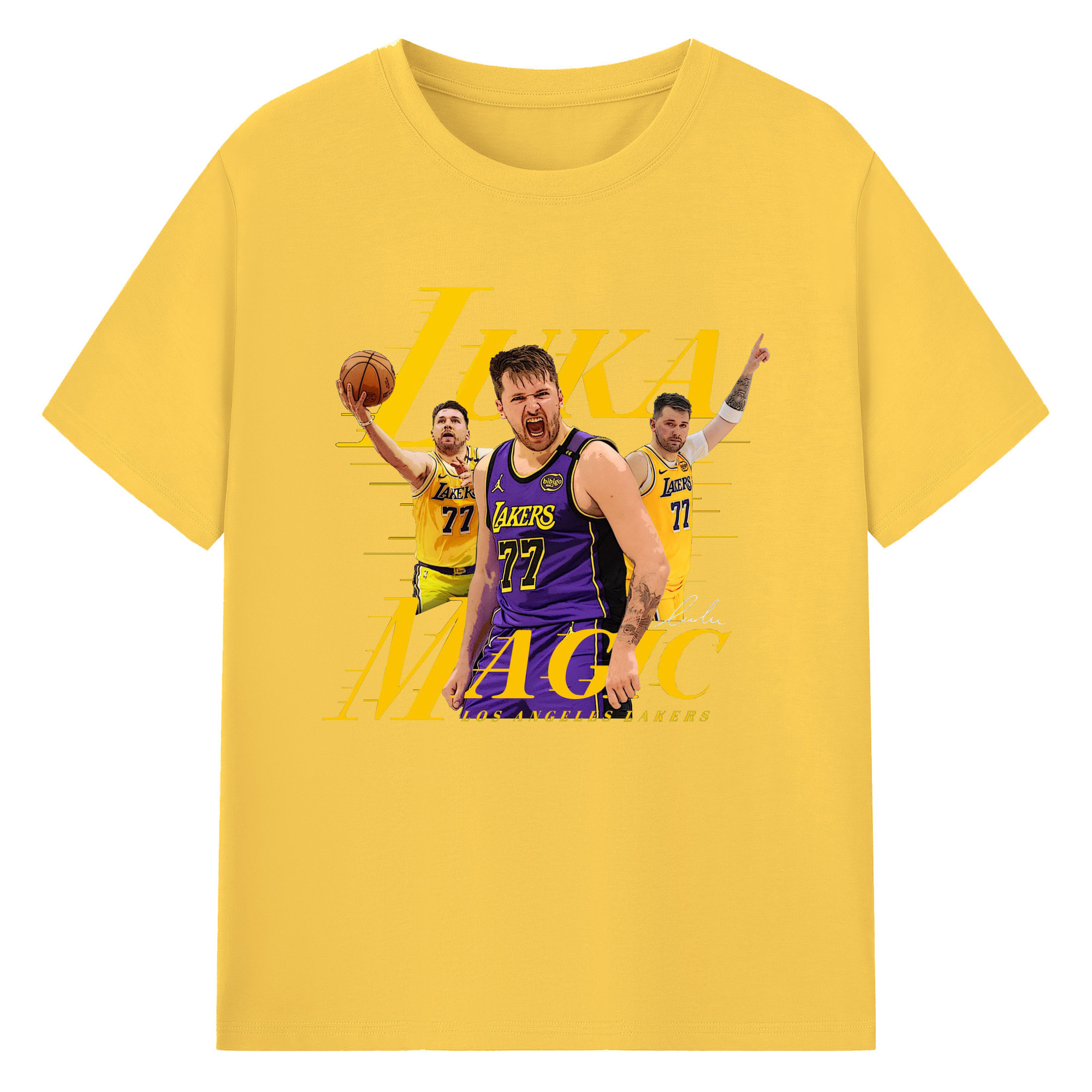 Luka Magic 77 Lakers Jersey Shirt - 180g Cotton T-Shirt With Front Heat Transfer Print – Soft, Lightweight, Fitted Design – Comfortable Casual Wear For Sports & Everyday Use