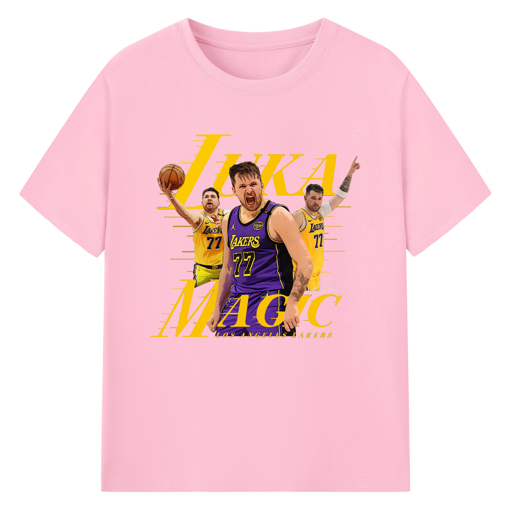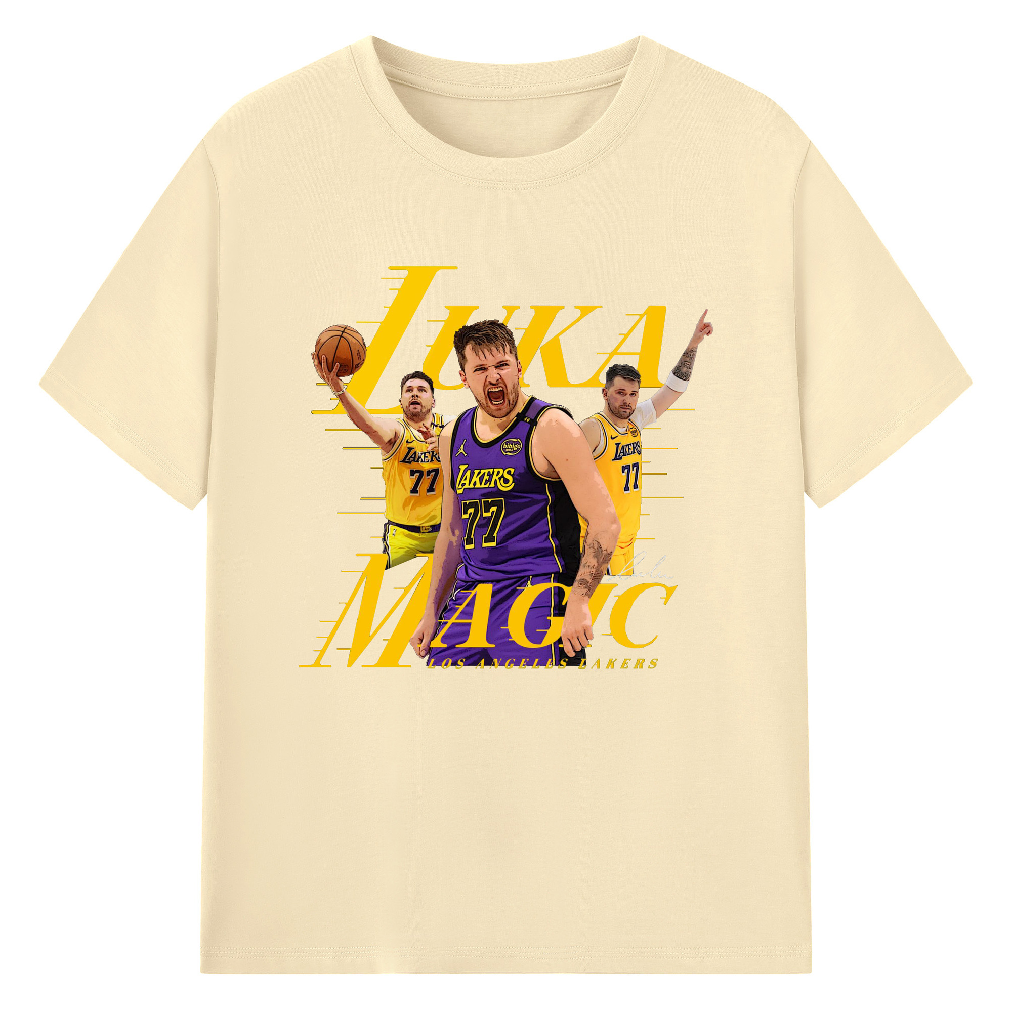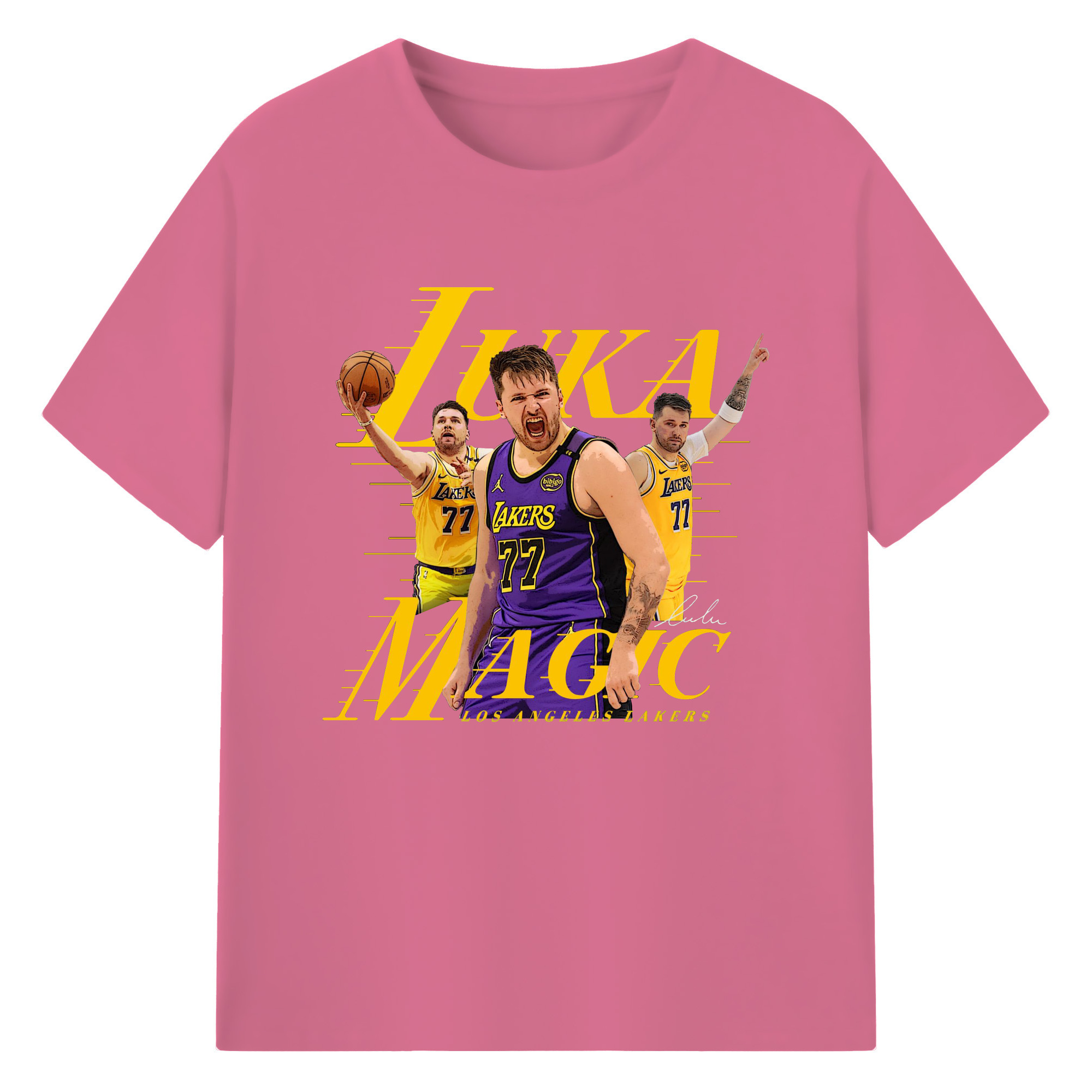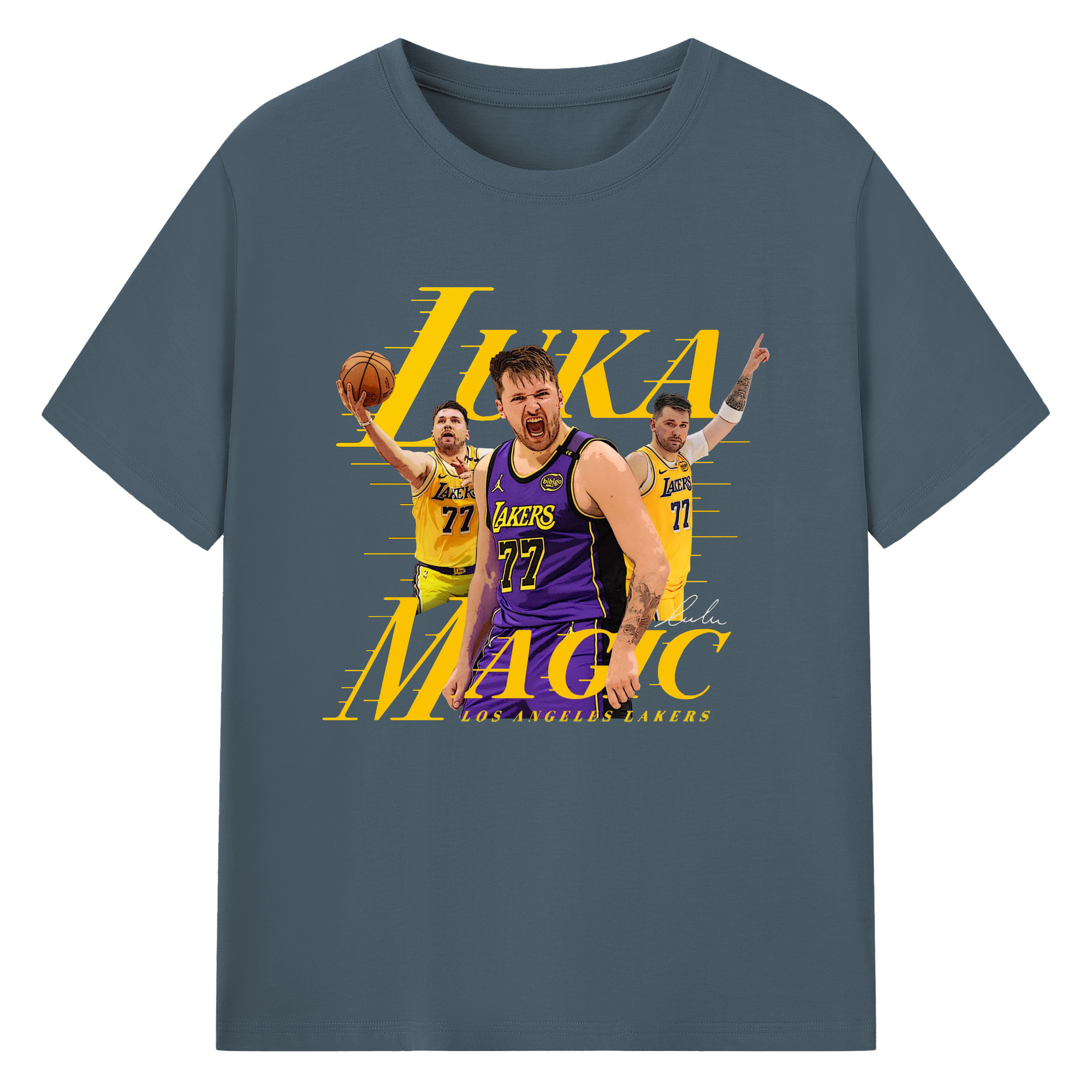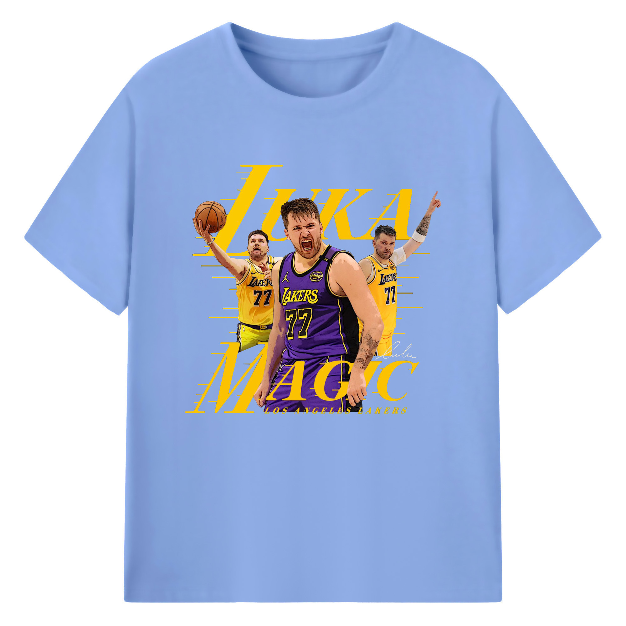 Luka Magic 77 Lakers Jersey Shirt - 180g Cotton T-Shirt With Front Heat Transfer Print – Soft, Lightweight, Fitted Design – Comfortable Casual Wear For Sports & Everyday Use