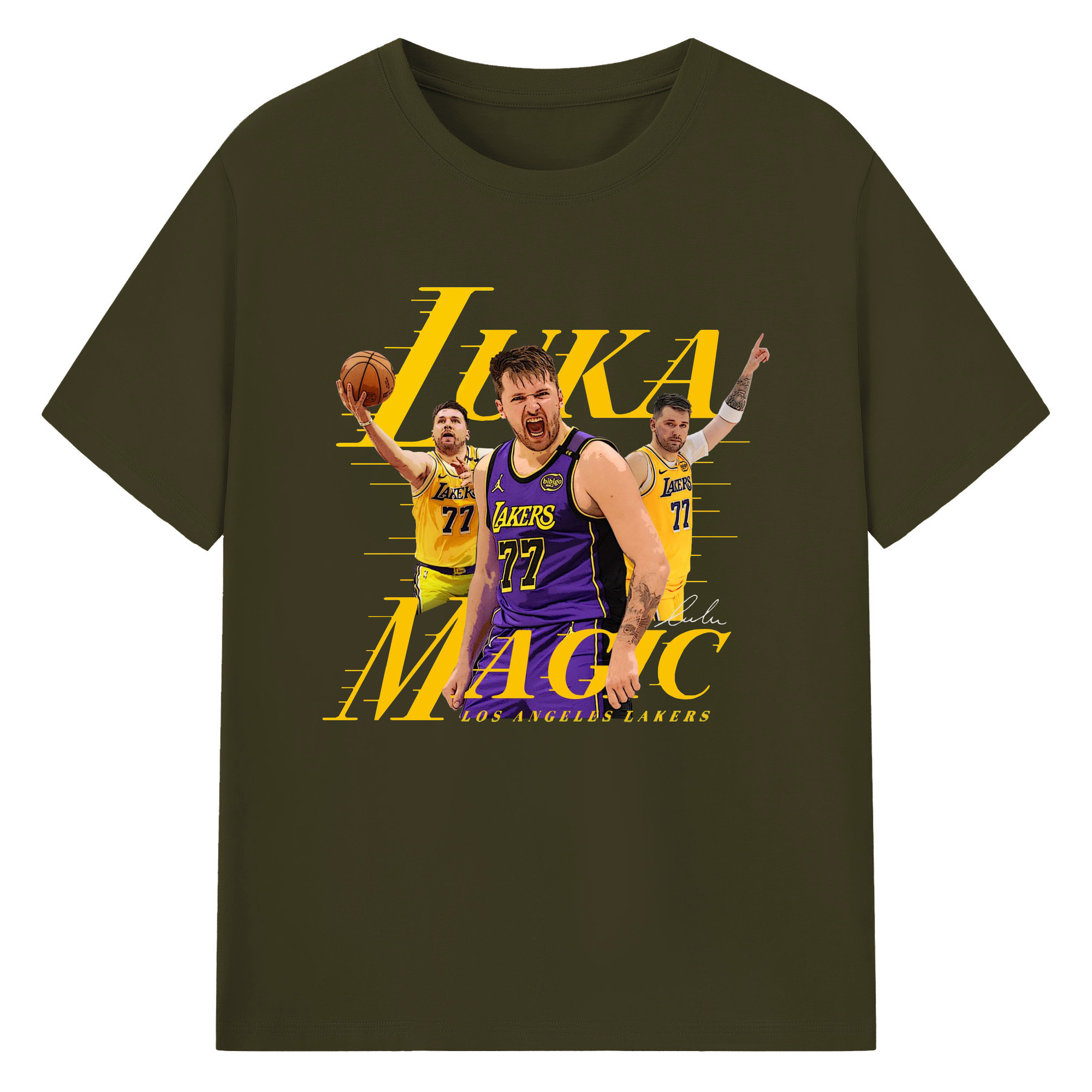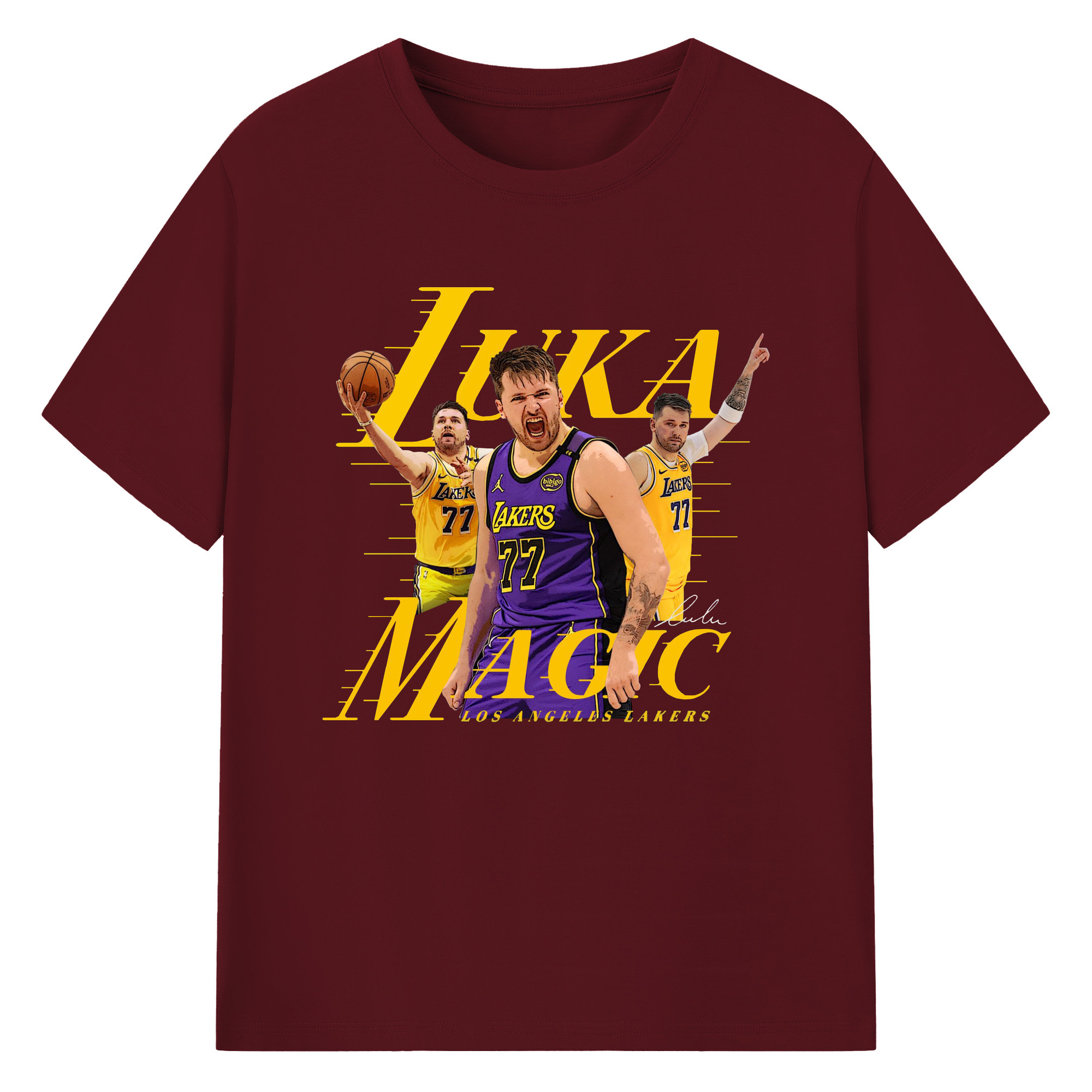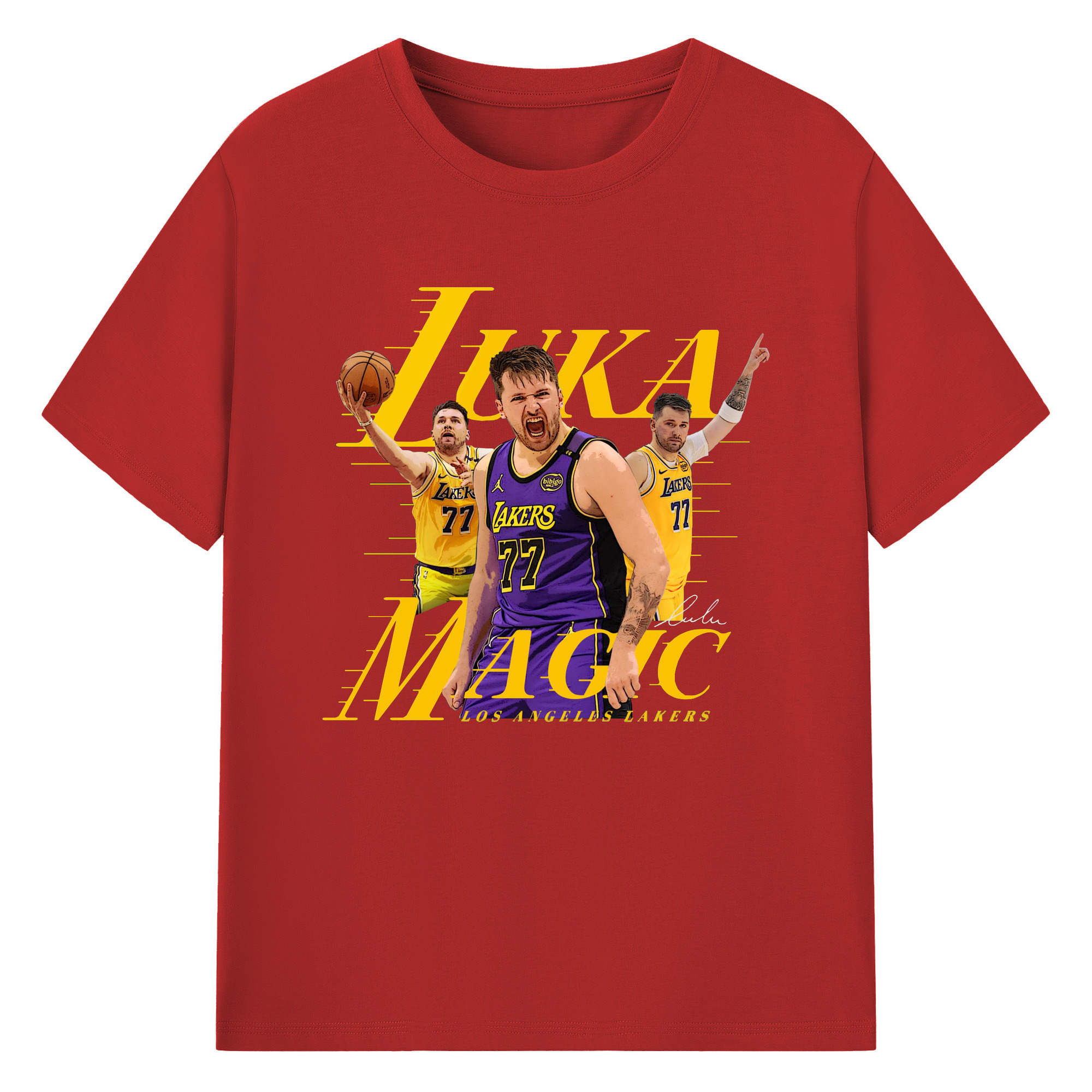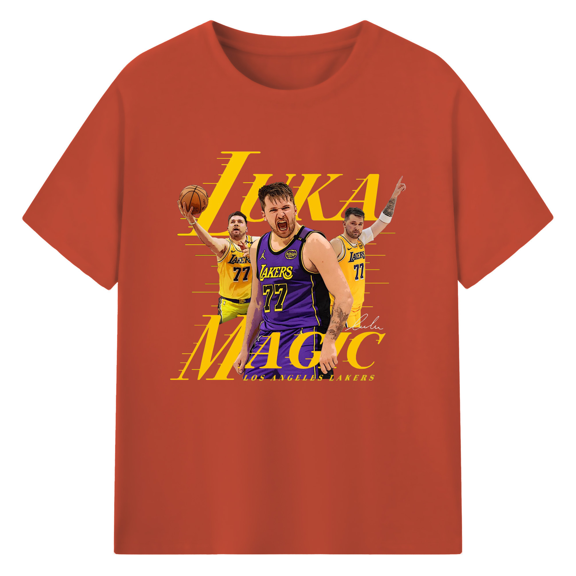 Luka Magic 77 Lakers Jersey Shirt - 180g Cotton T-Shirt With Front Heat Transfer Print – Soft, Lightweight, Fitted Design – Comfortable Casual Wear For Sports & Everyday Use