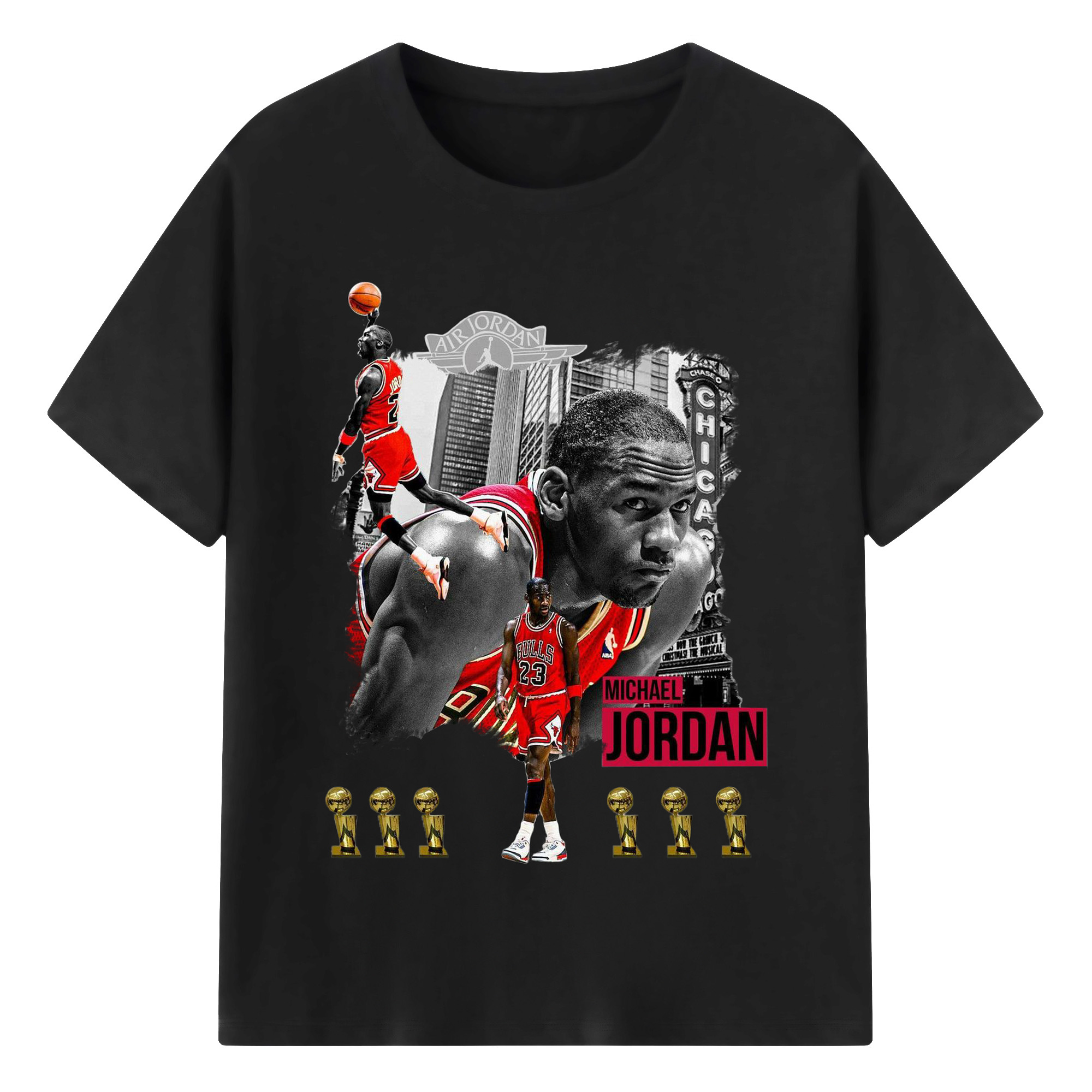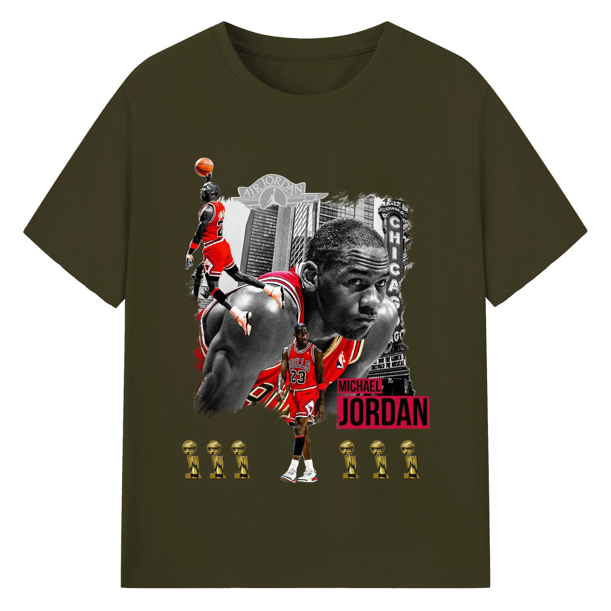 Michael Jordan 6x NBA Champion Shirt - 180g Cotton T-Shirt With Front Heat Transfer Print – Soft, Lightweight, Fitted Design – Comfortable Casual Wear For Sports & Everyday Use