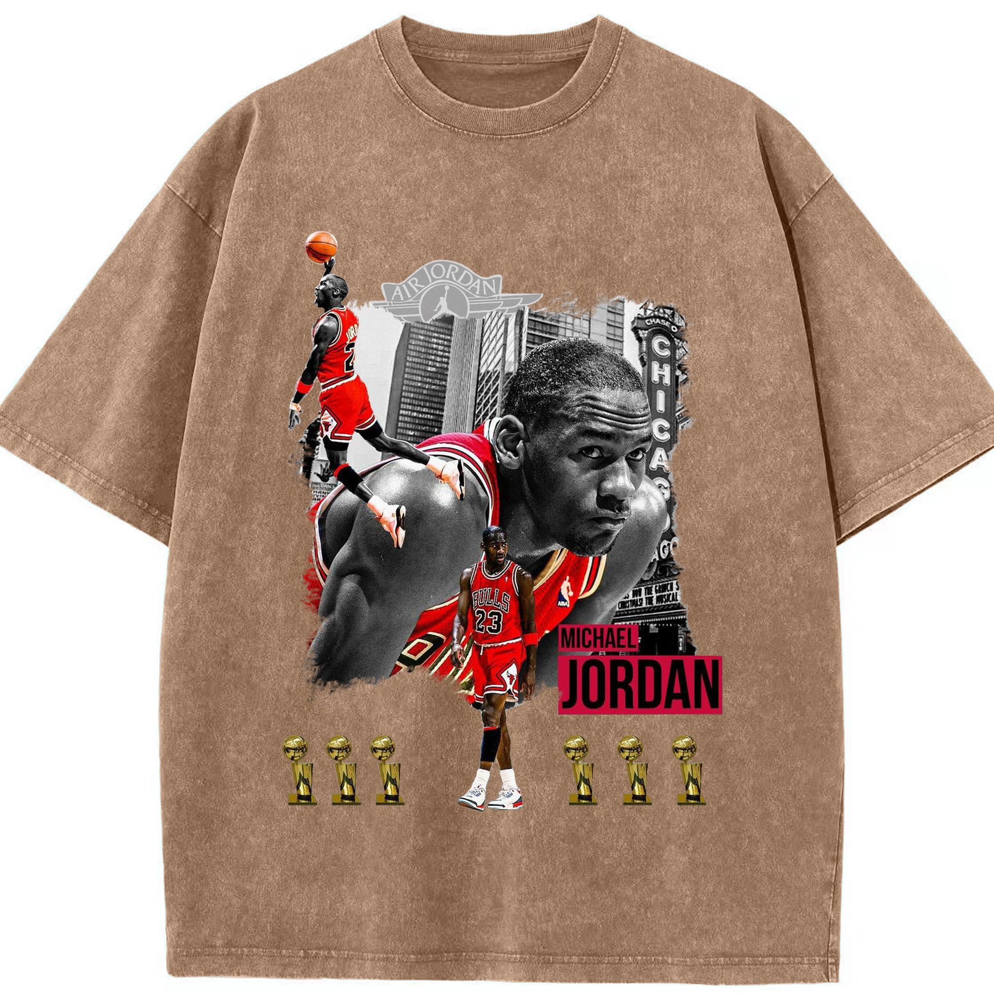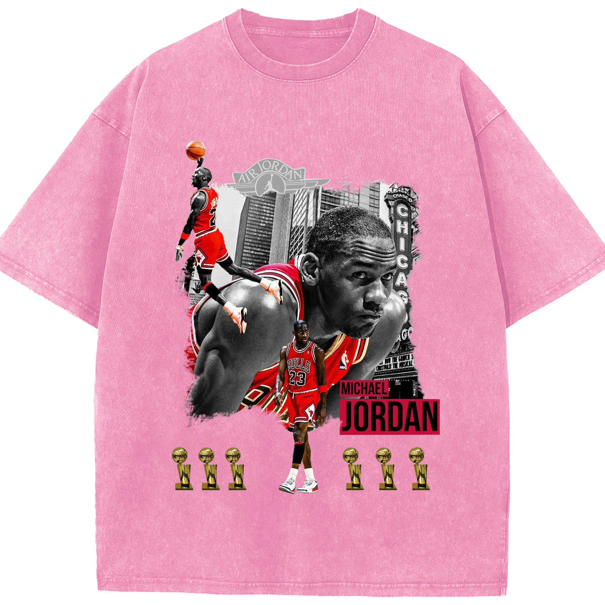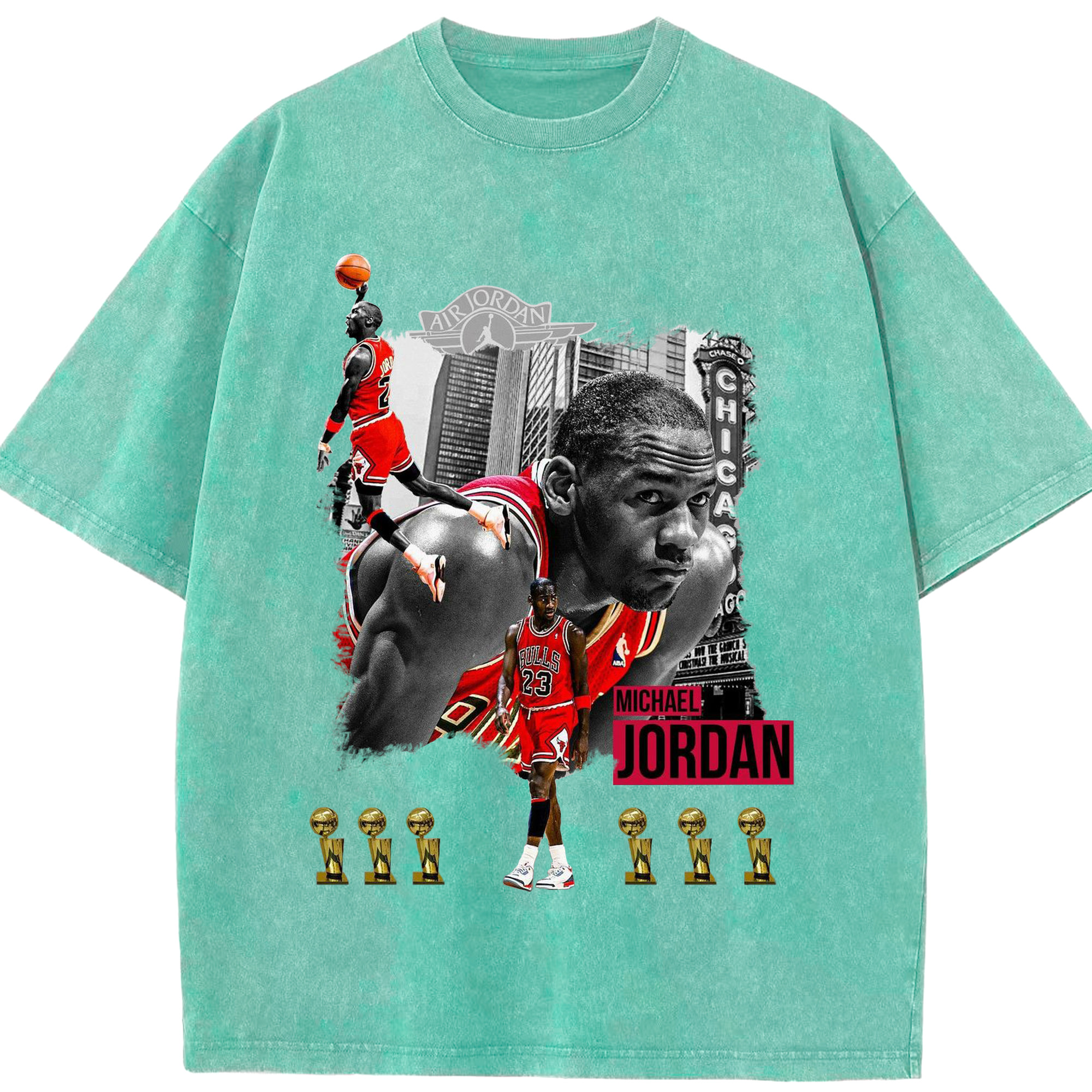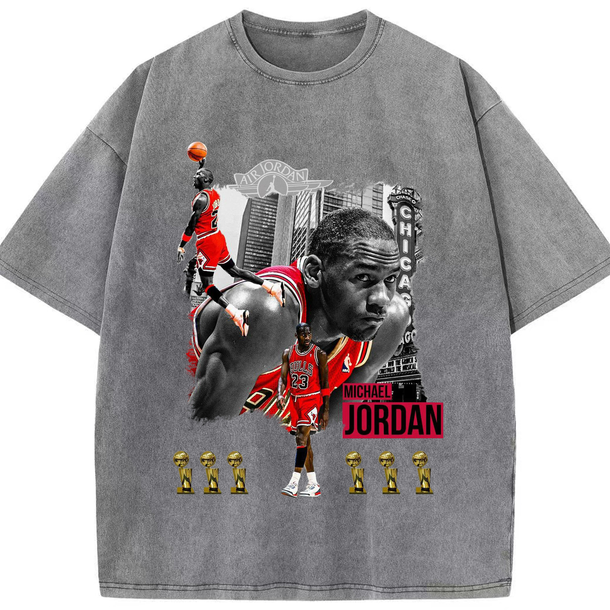 Michael Jordan 6x NBA Champion Shirt - Washed Vintage Look 230g Cotton Oversized T-Shirt With Front Heat Transfer Print – Soft, Lightweight, Stylish Fit – Comfortable Casual Wear For Sports & Everyday Use