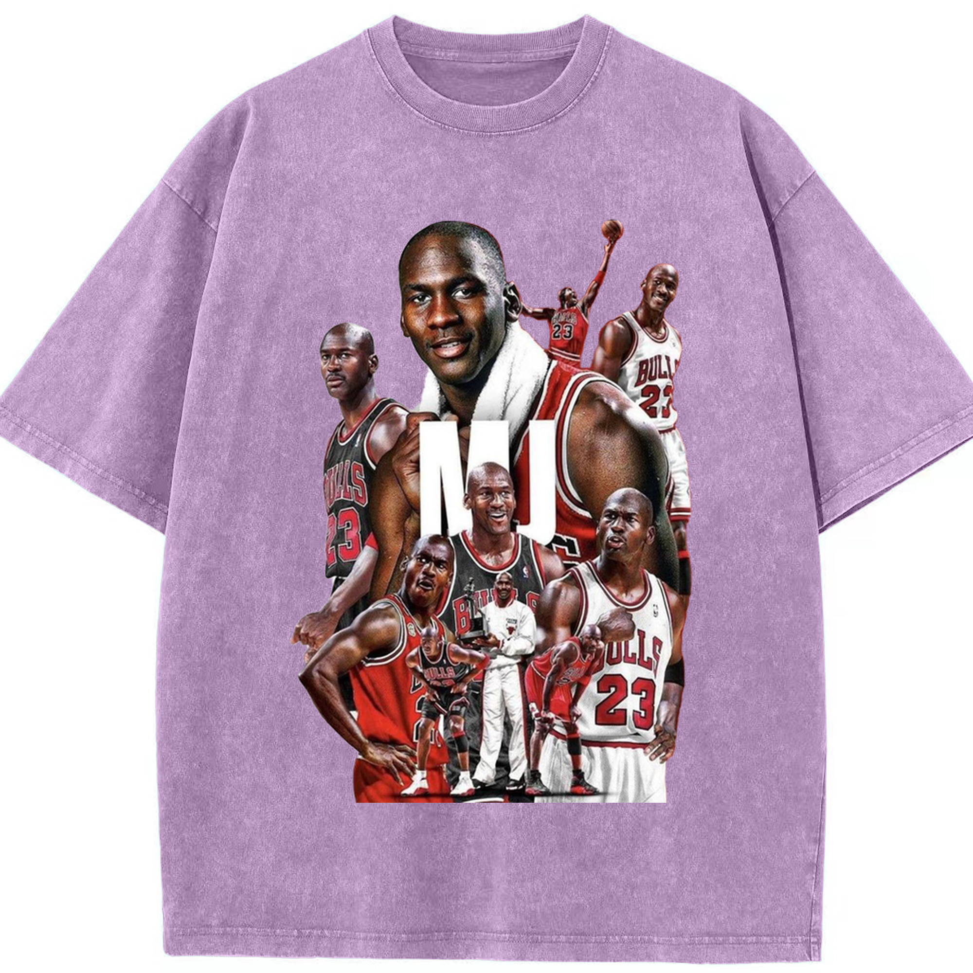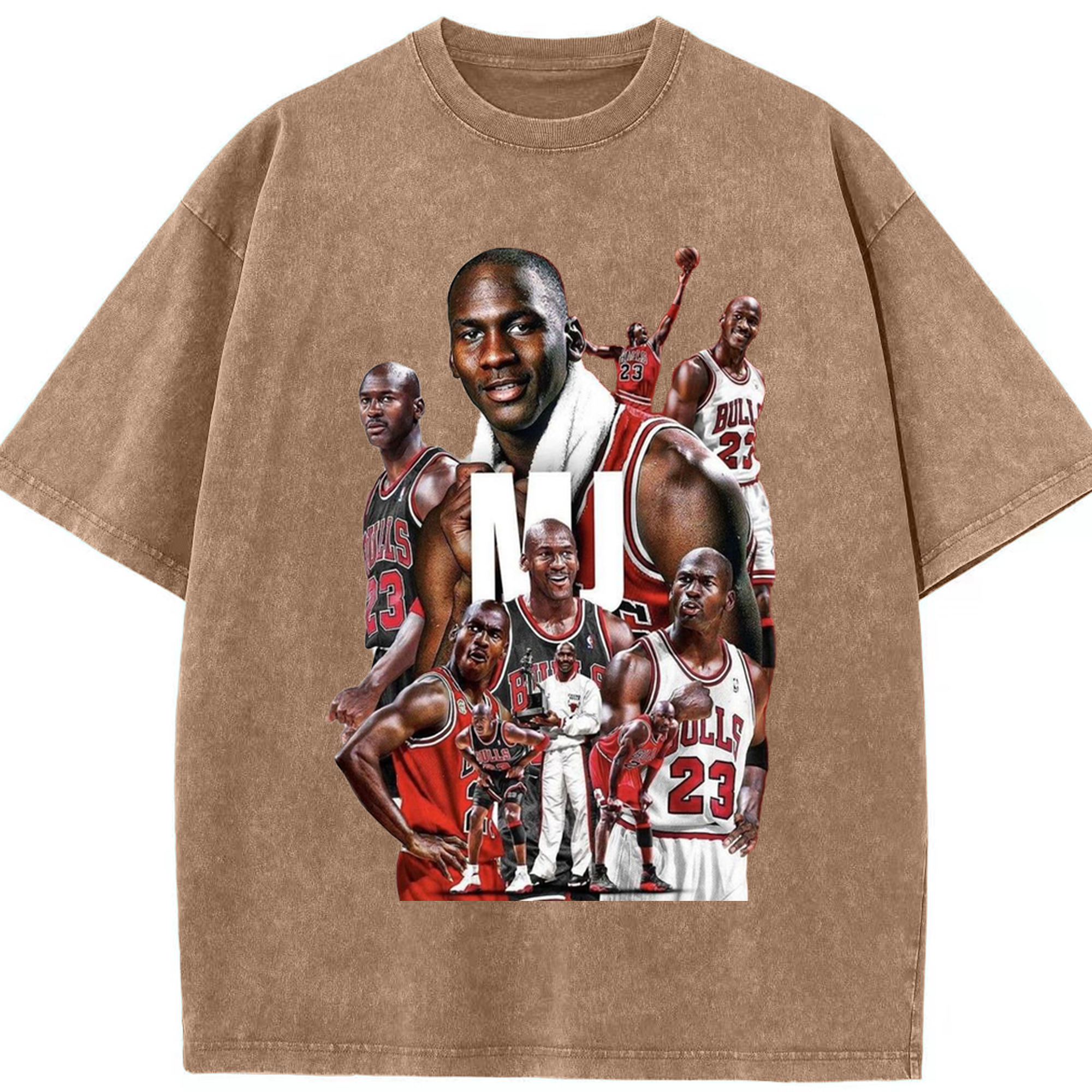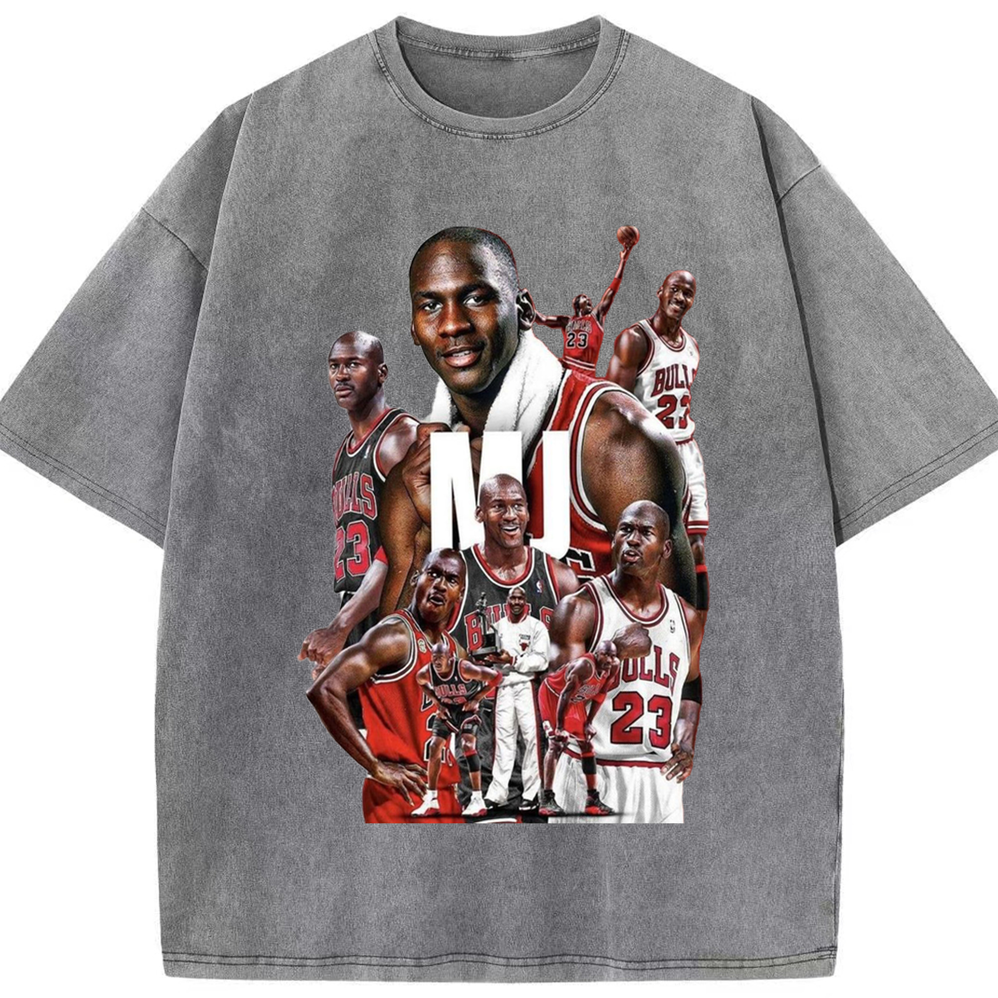 MJ Career Collage Tribute Shirt - Washed Vintage Look 230g Cotton Oversized T-Shirt With Front Heat Transfer Print – Soft, Lightweight, Stylish Fit – Comfortable Casual Wear For Sports & Everyday Use