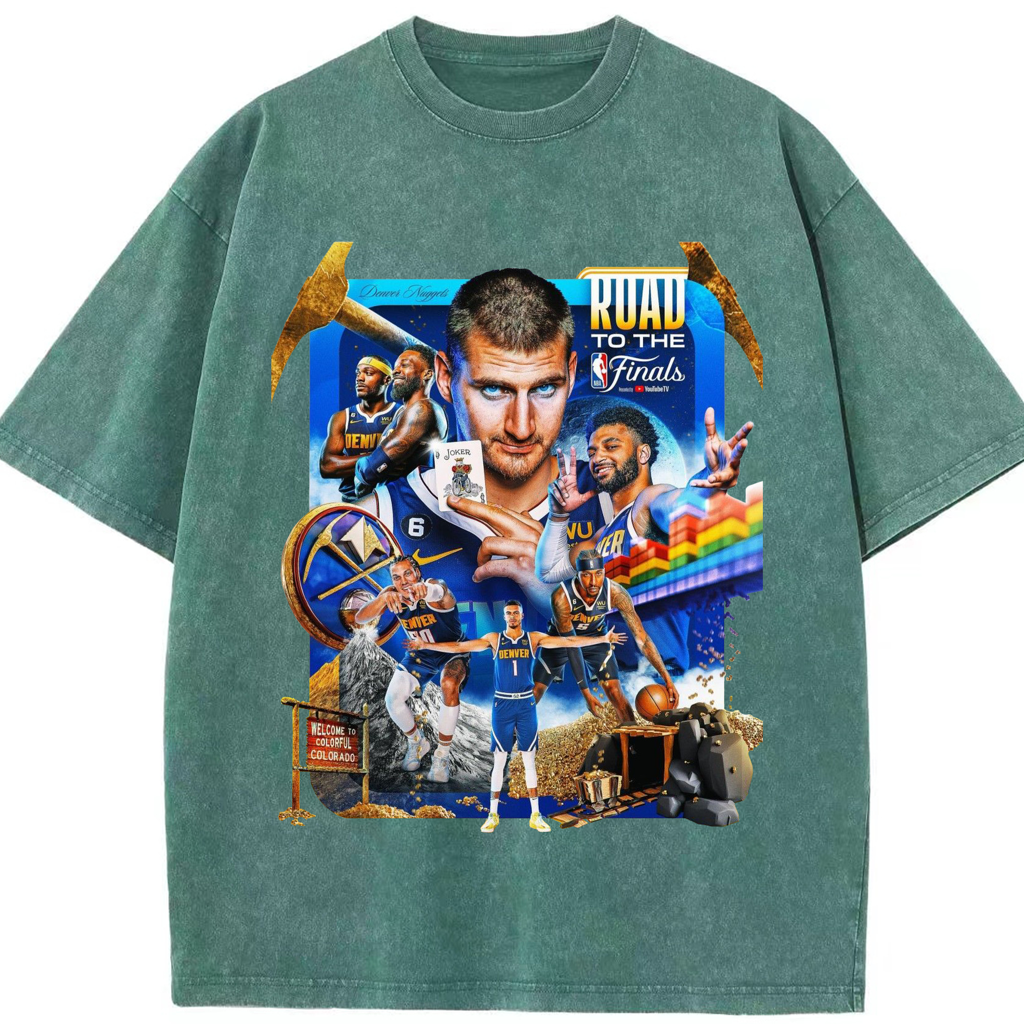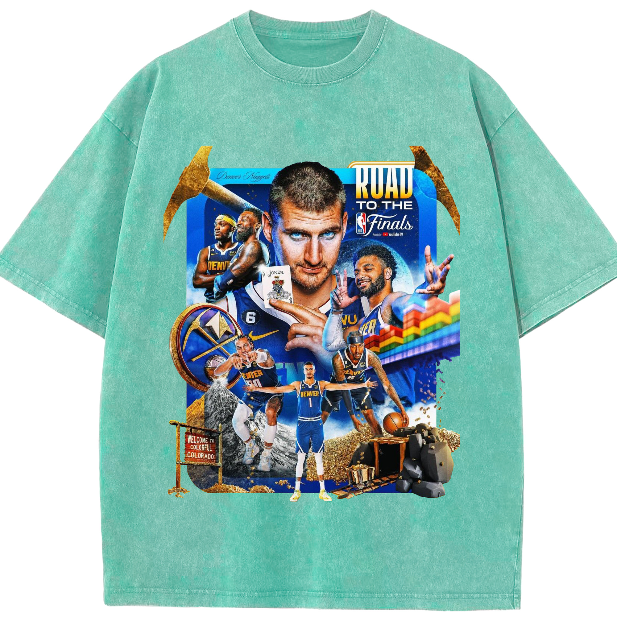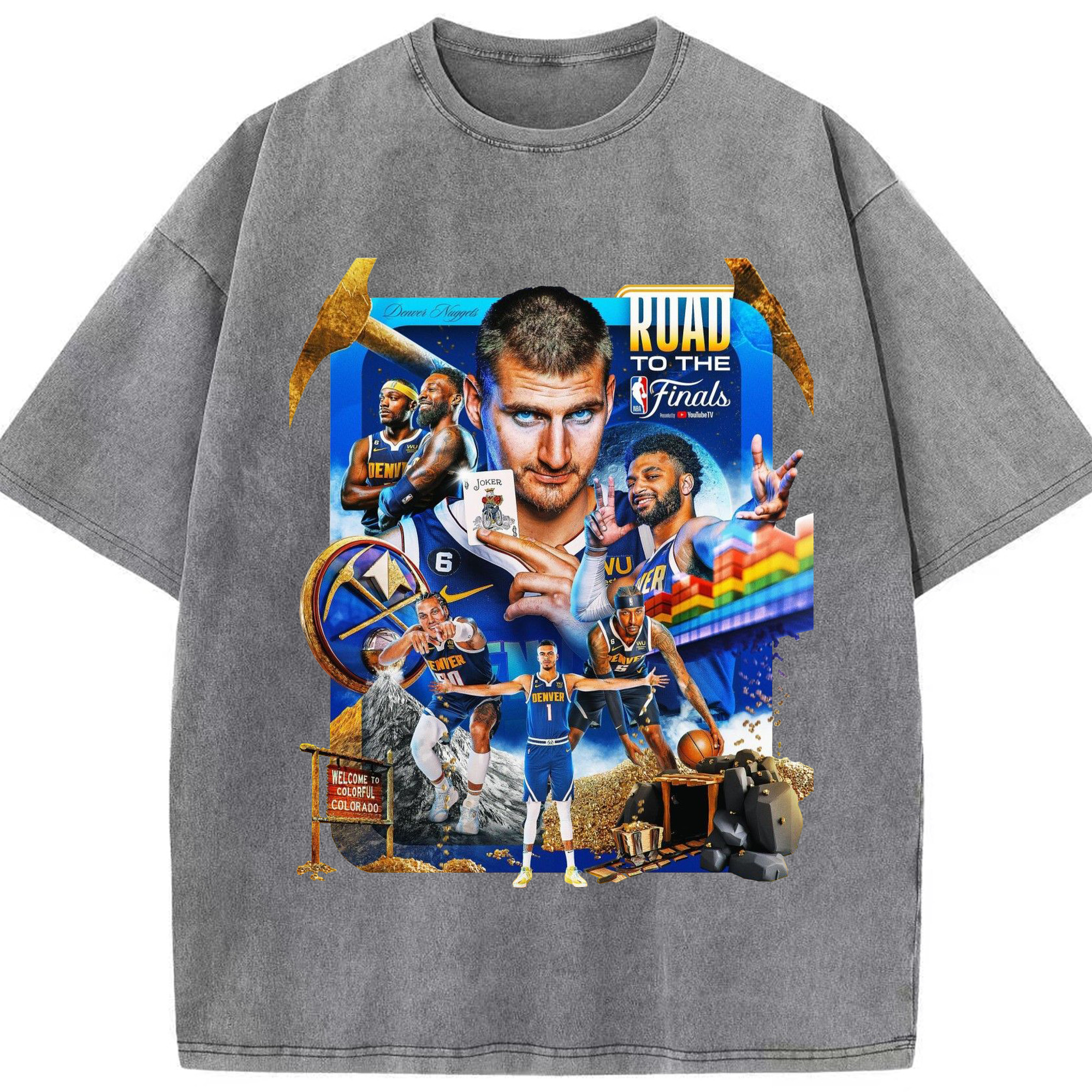 Nikola Jokić Denver Nuggets Road to the Finals Shirt - Washed Vintage Look 230g Cotton Oversized T-Shirt With Front Heat Transfer Print – Soft, Lightweight, Stylish Fit – Comfortable Casual Wear For Sports & Everyday Use