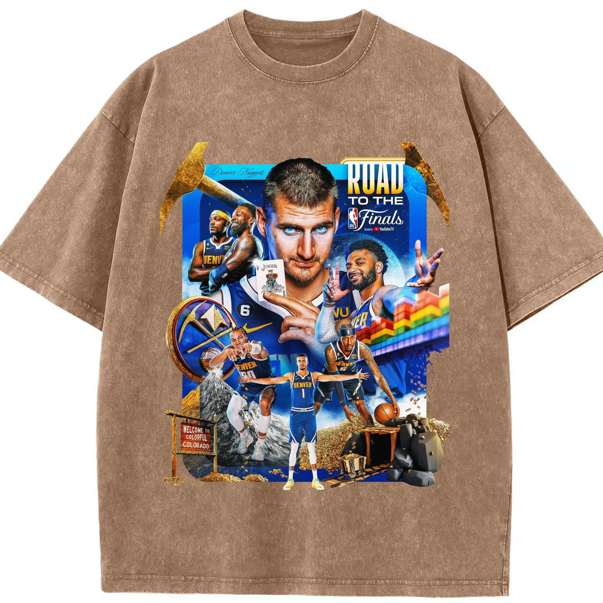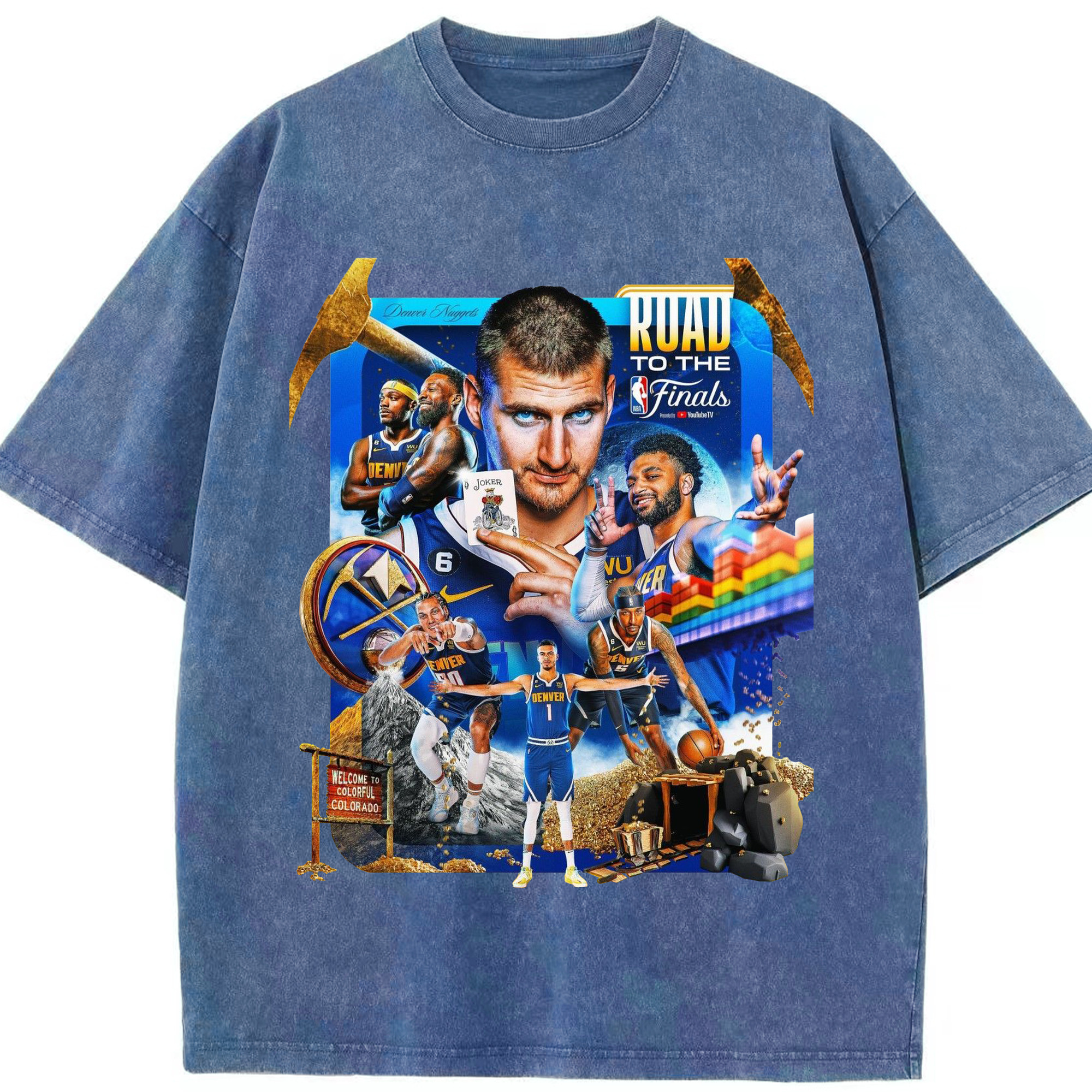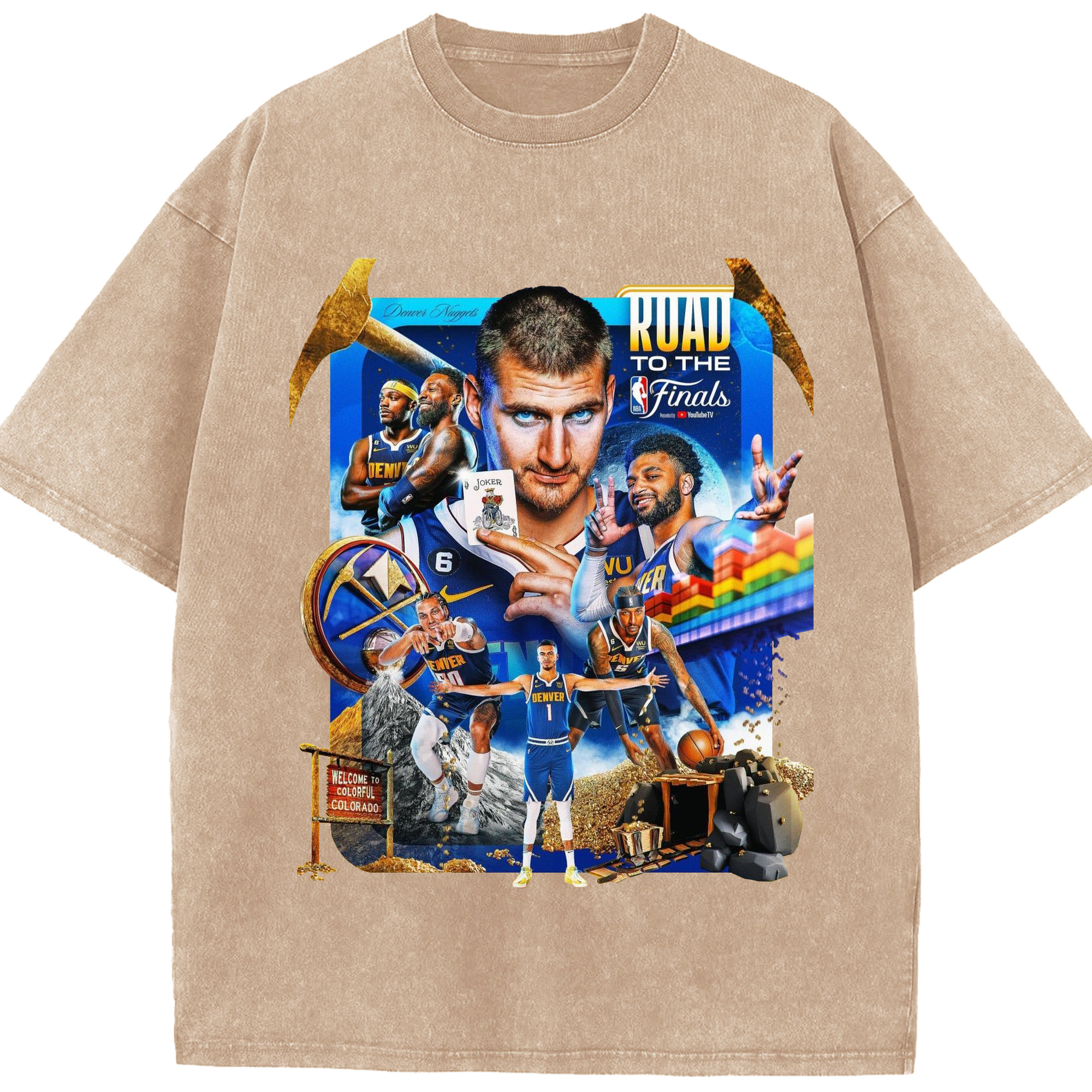 Nikola Jokić Denver Nuggets Road to the Finals Shirt - Washed Vintage Look 230g Cotton Oversized T-Shirt With Front Heat Transfer Print – Soft, Lightweight, Stylish Fit – Comfortable Casual Wear For Sports & Everyday Use